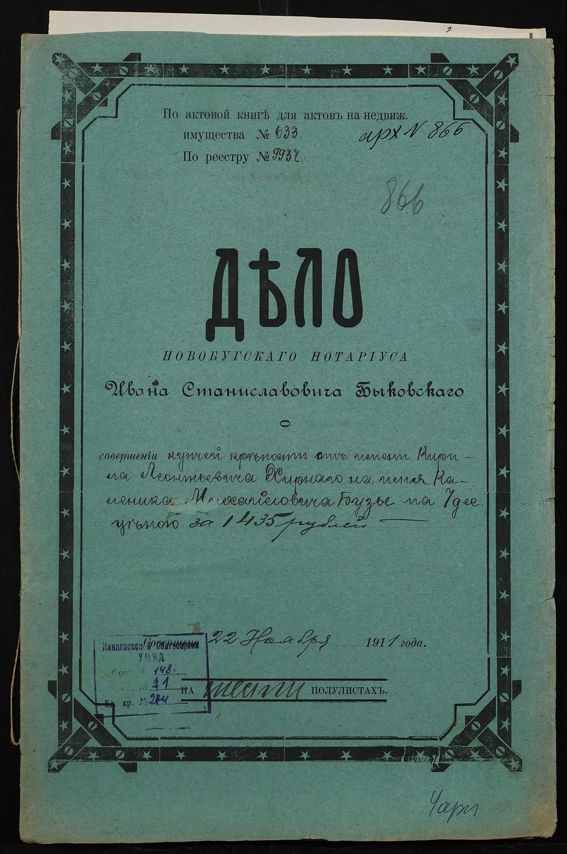 ◦ ◦ Фонд № 148 “Контора новобузького нотаріуса Биковського Івана Станіславовича”