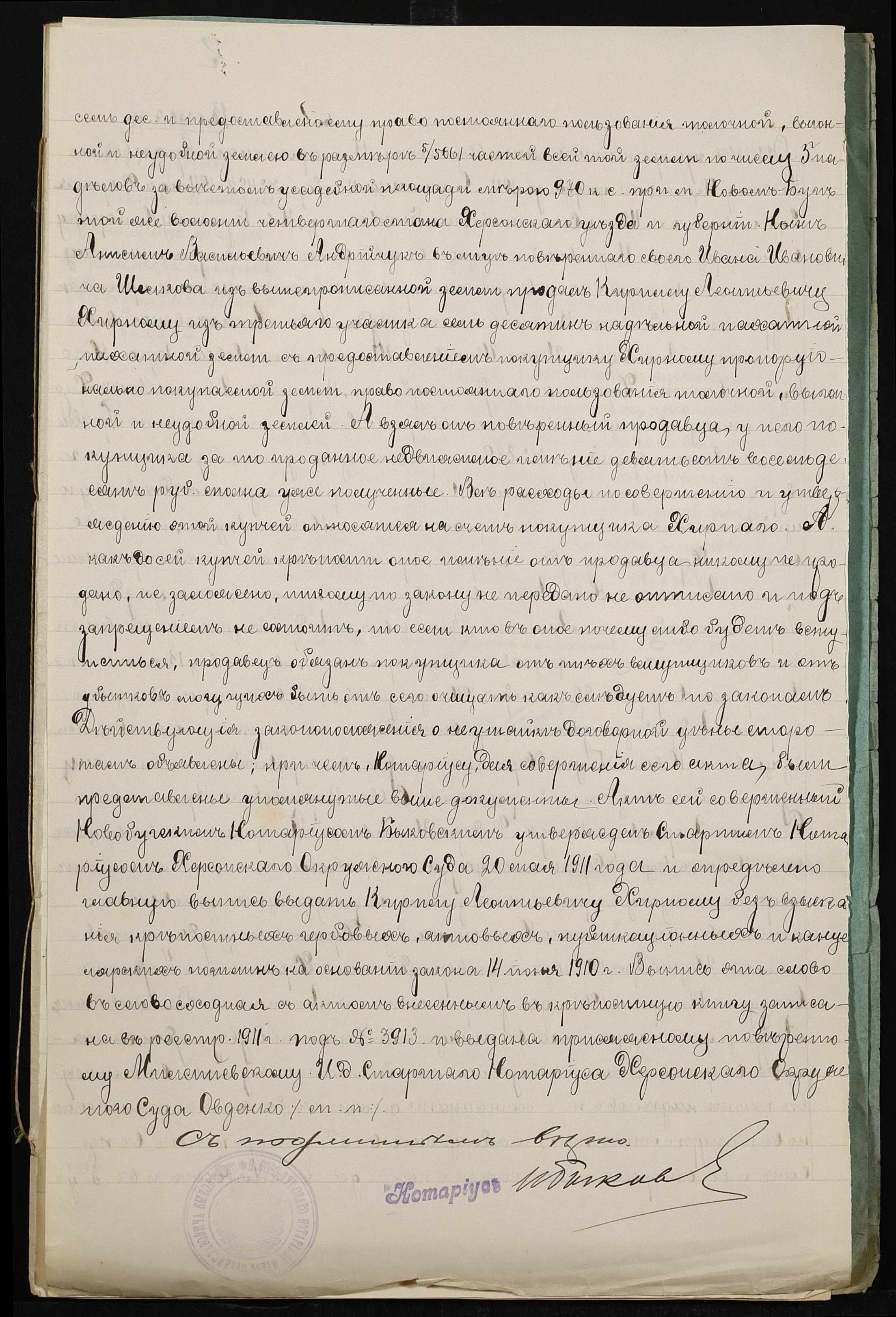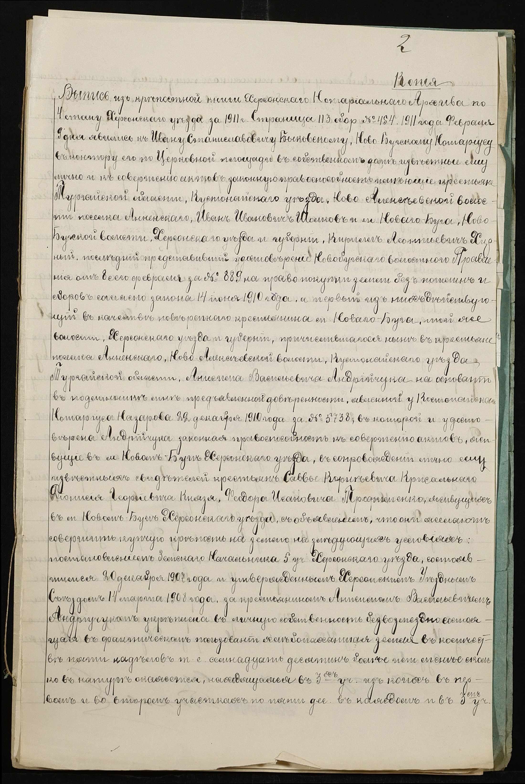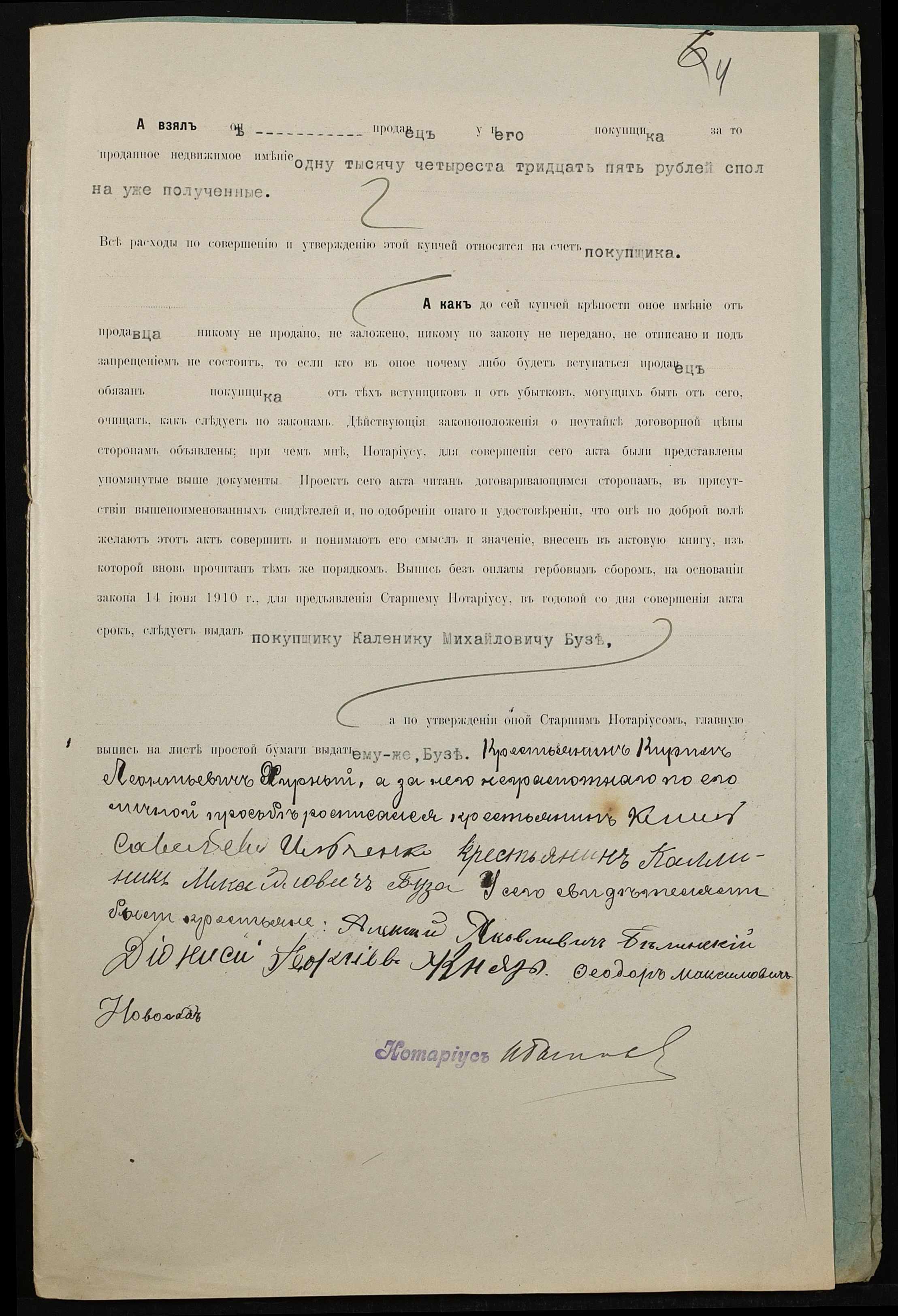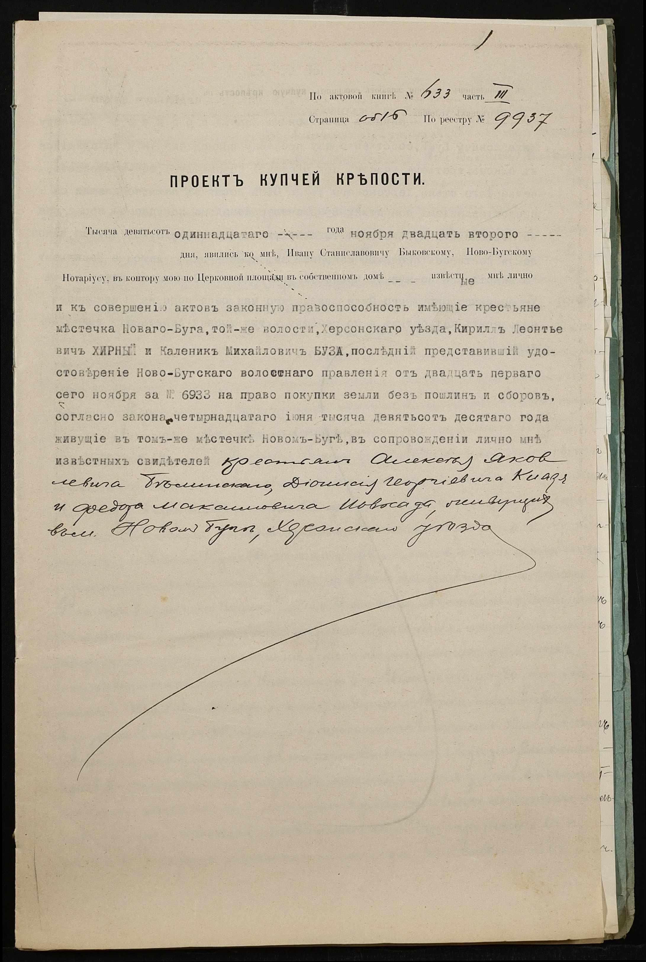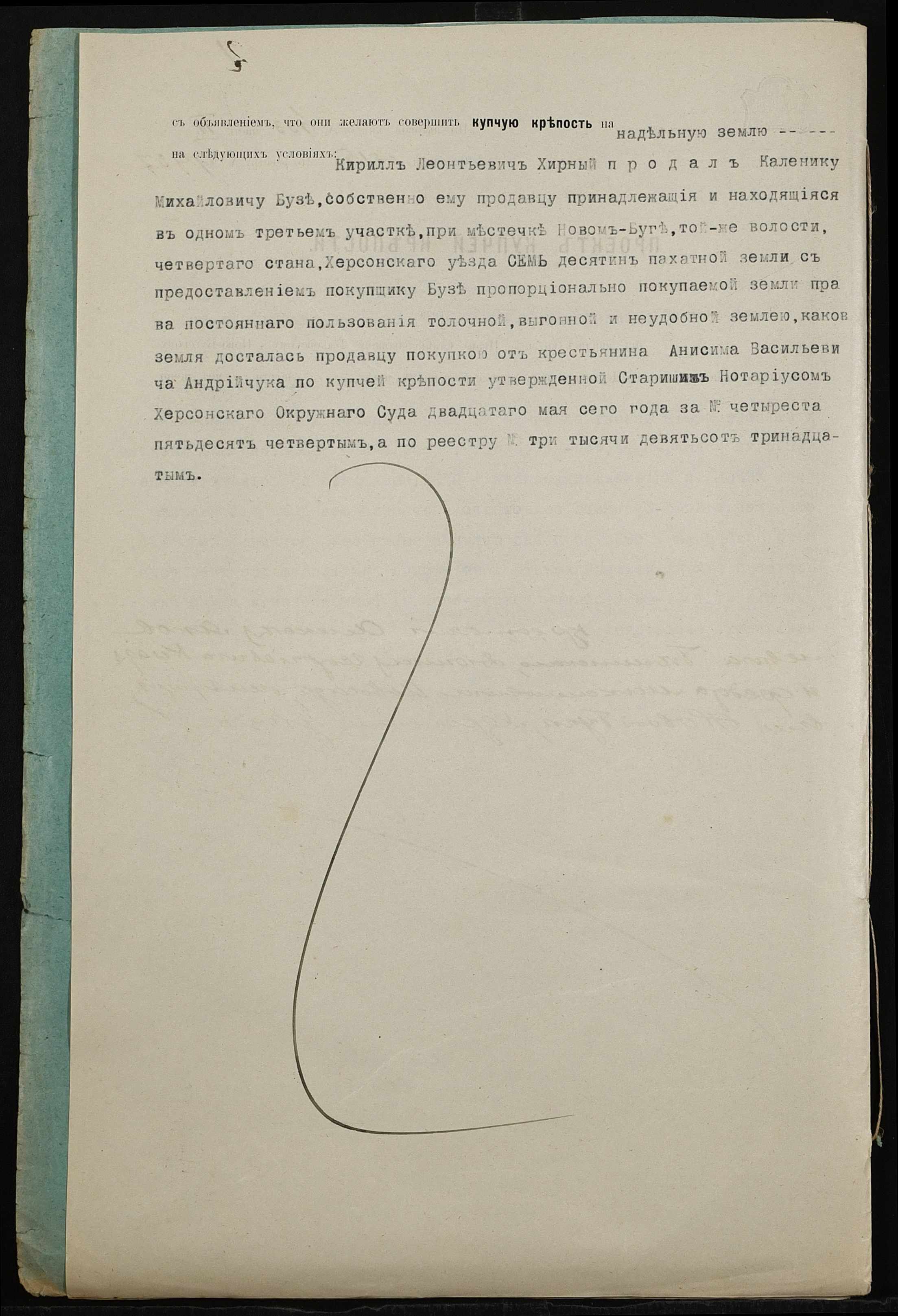 • • • • Справа № 274 “Справа про вчинення купчої про продаж землі селянином Хірним Кирилом Леонтійовичем (Хирным Кириллом Леонтьевичем на користь селянина Бузи (Бузы) Каленика Михайловича”