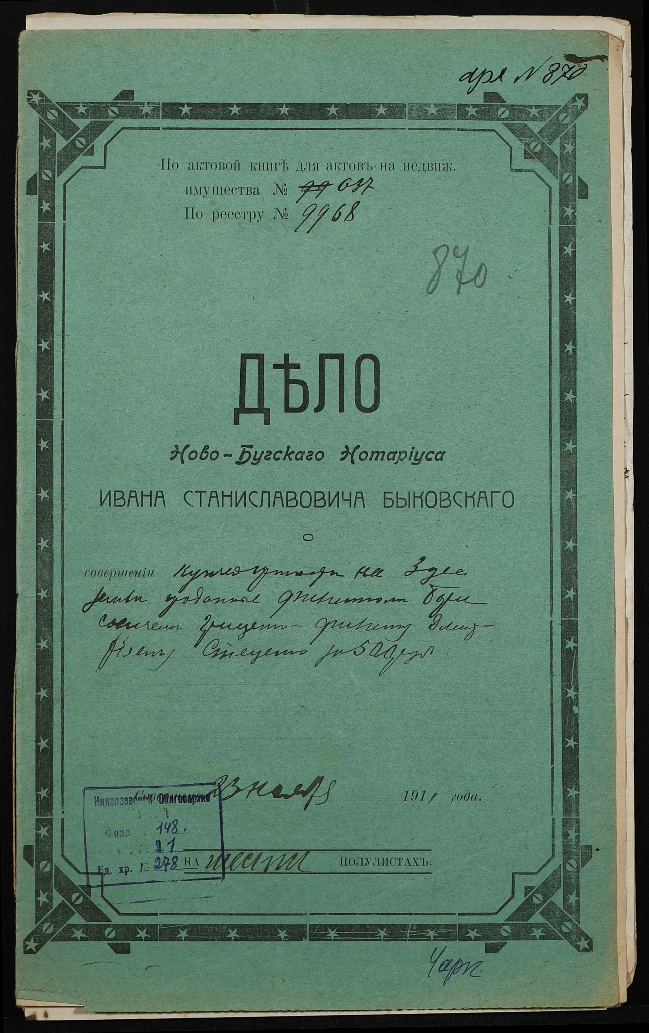 ◦ ◦ Фонд № 148 “Контора новобузького нотаріуса Биковського Івана Станіславовича”