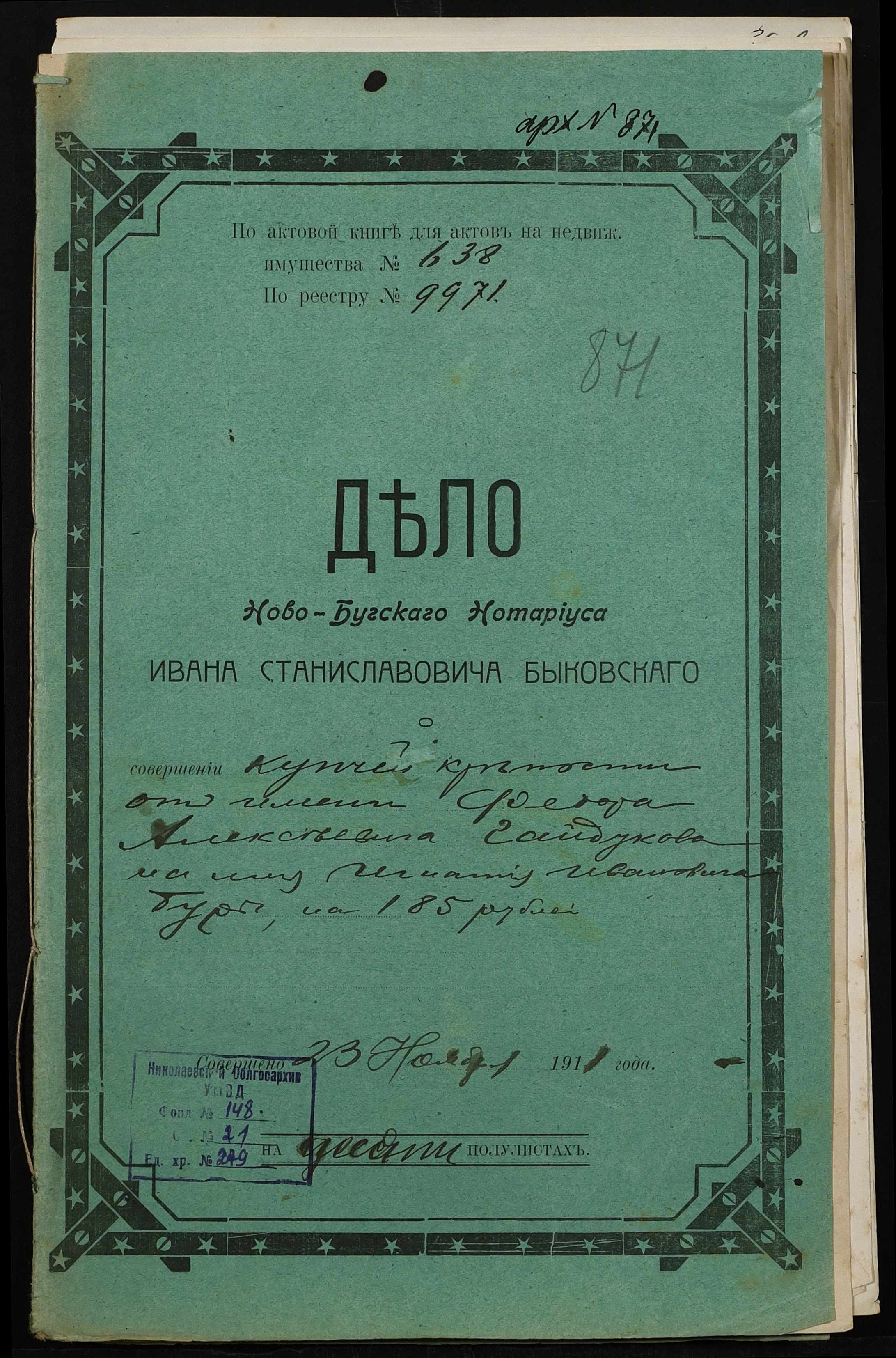 ◦ ◦ Фонд № 148 “Контора новобузького нотаріуса Биковського Івана Станіславовича”