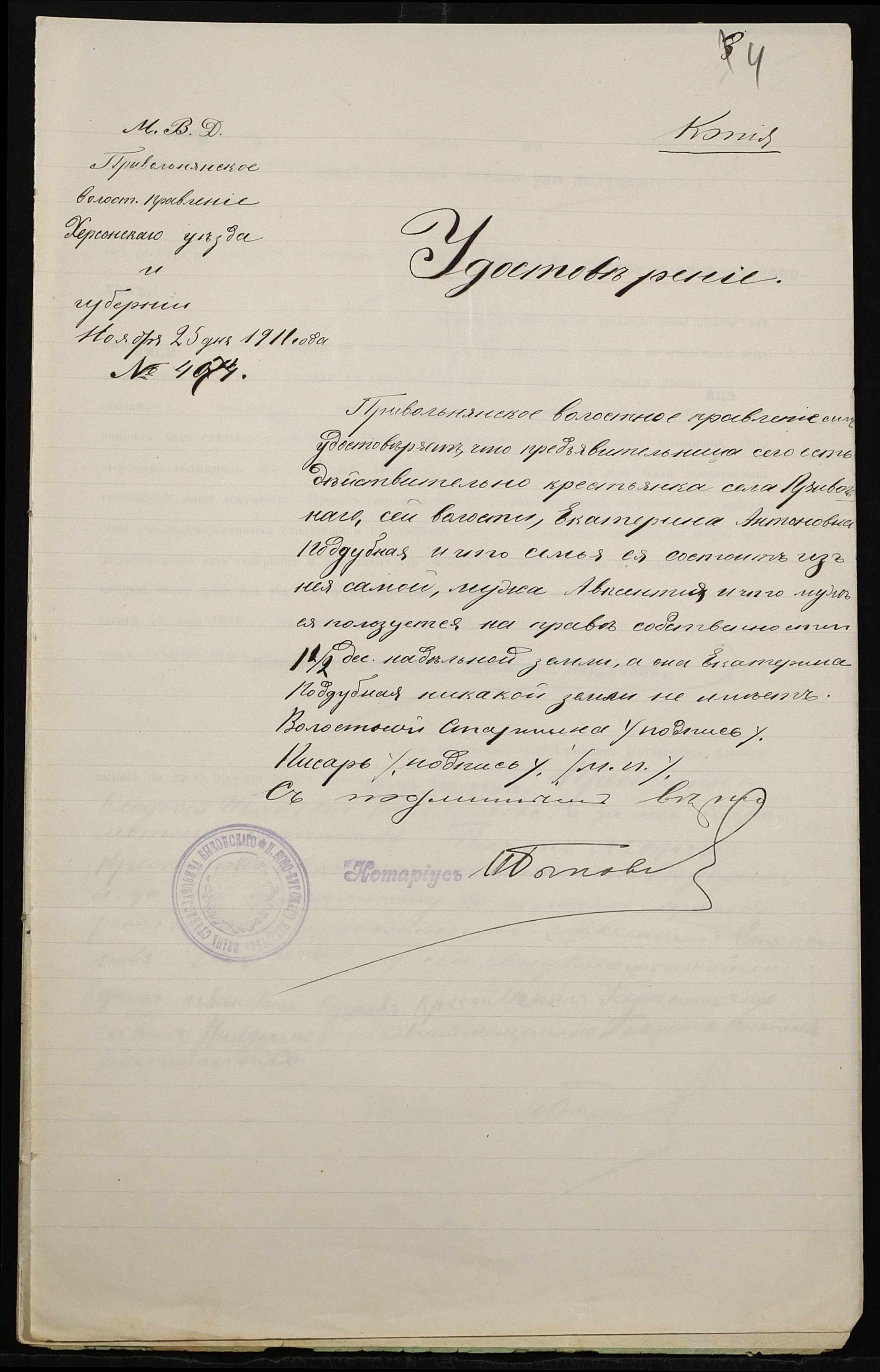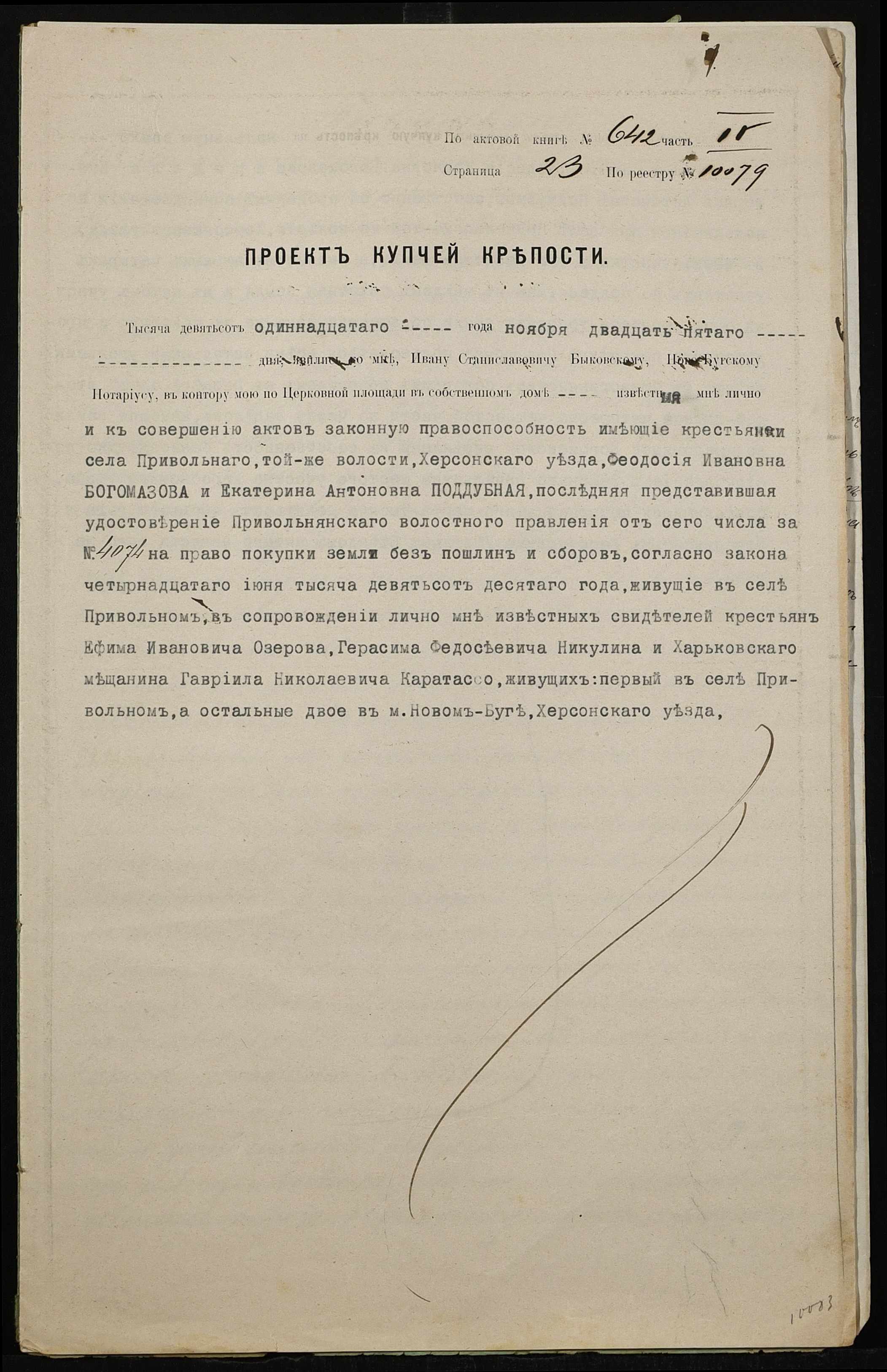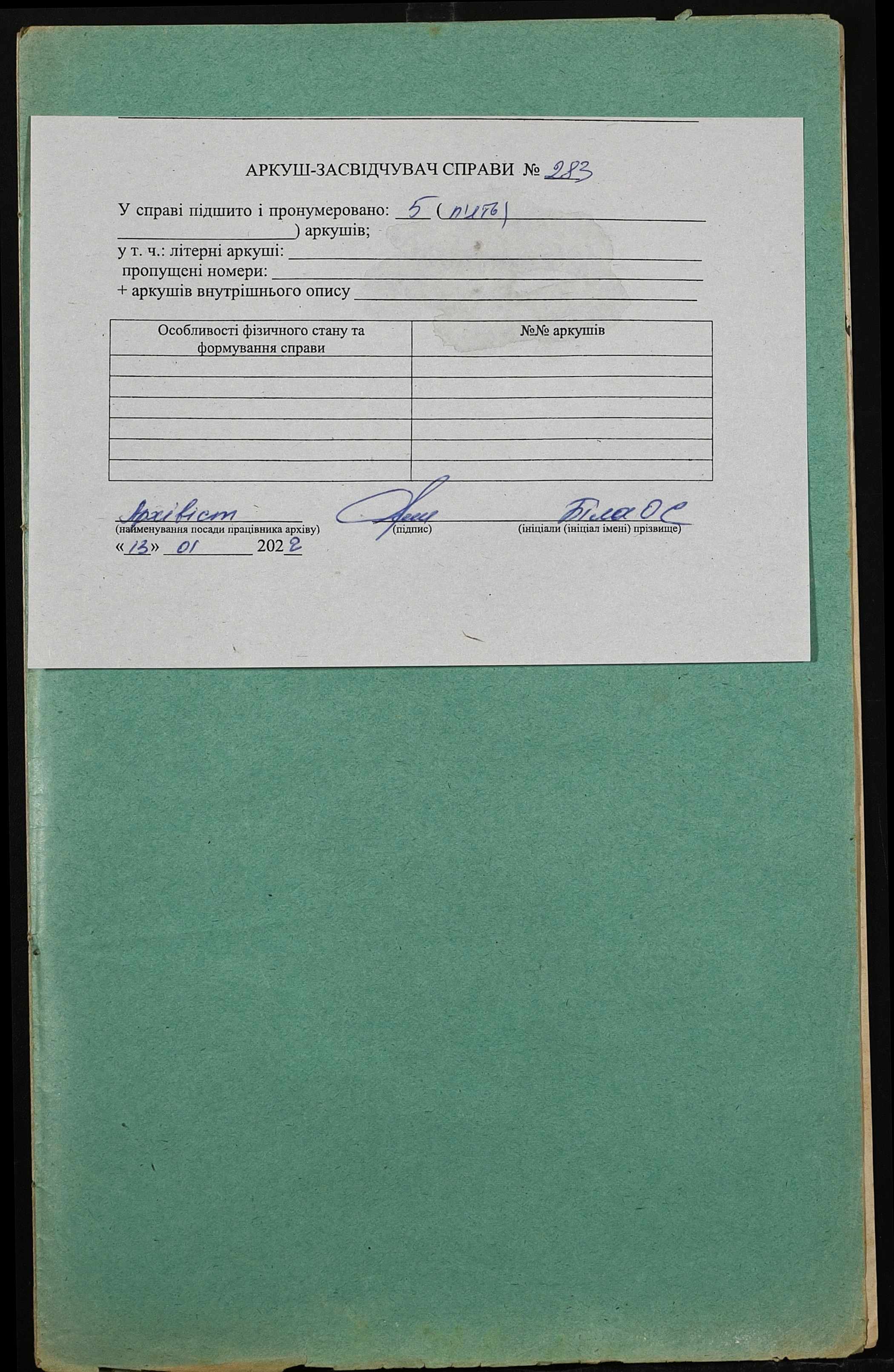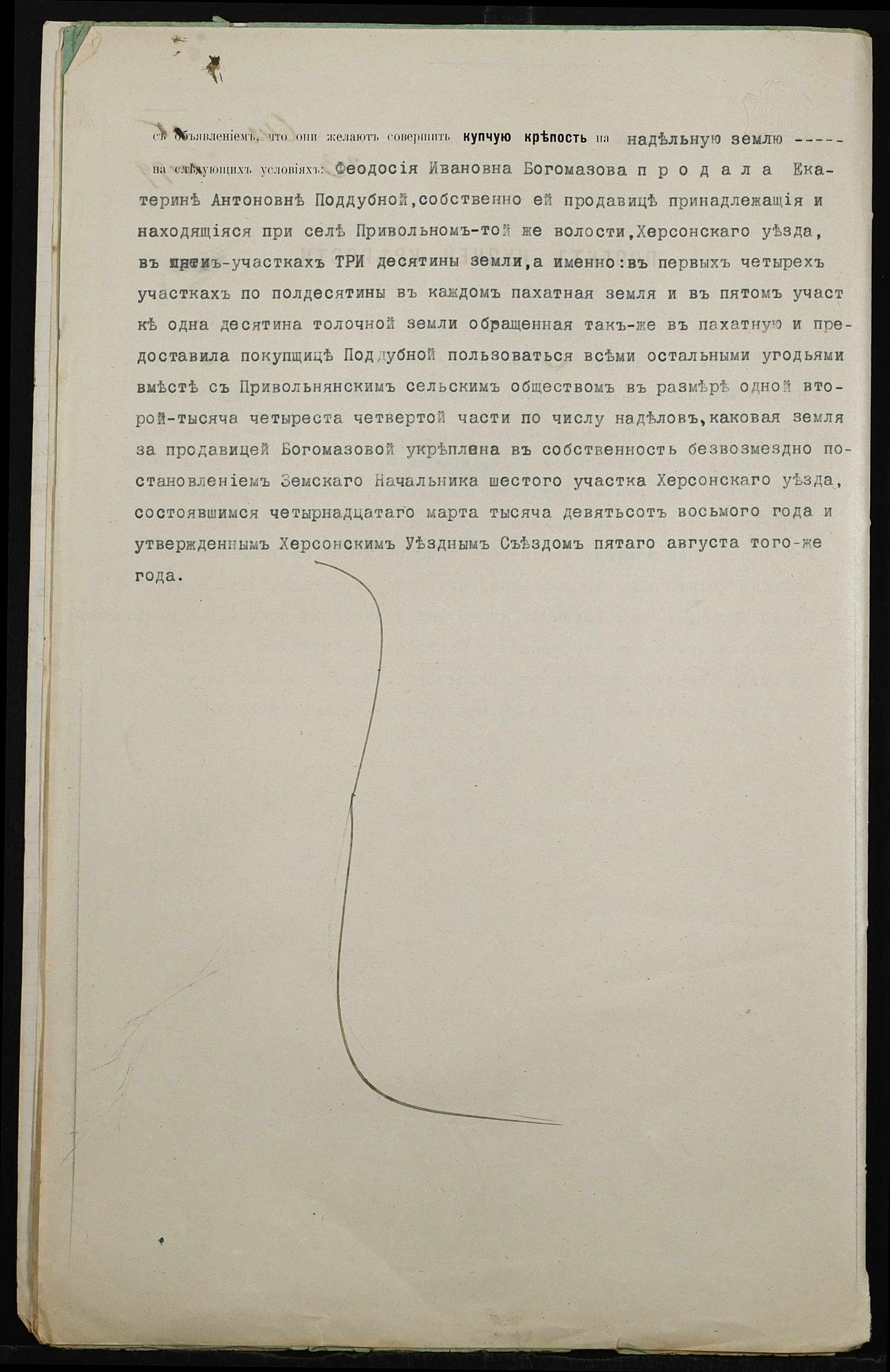 • • • • Справа № 283 “Справа про вчинення купчої про продаж землі селянкою Богомазовою Феодосією Іванівною (Богомазовой Феодосией Ивановной) на користь селянки Піддубної Катерини Антонівни (Поддубной Екатерины Антоновны)”