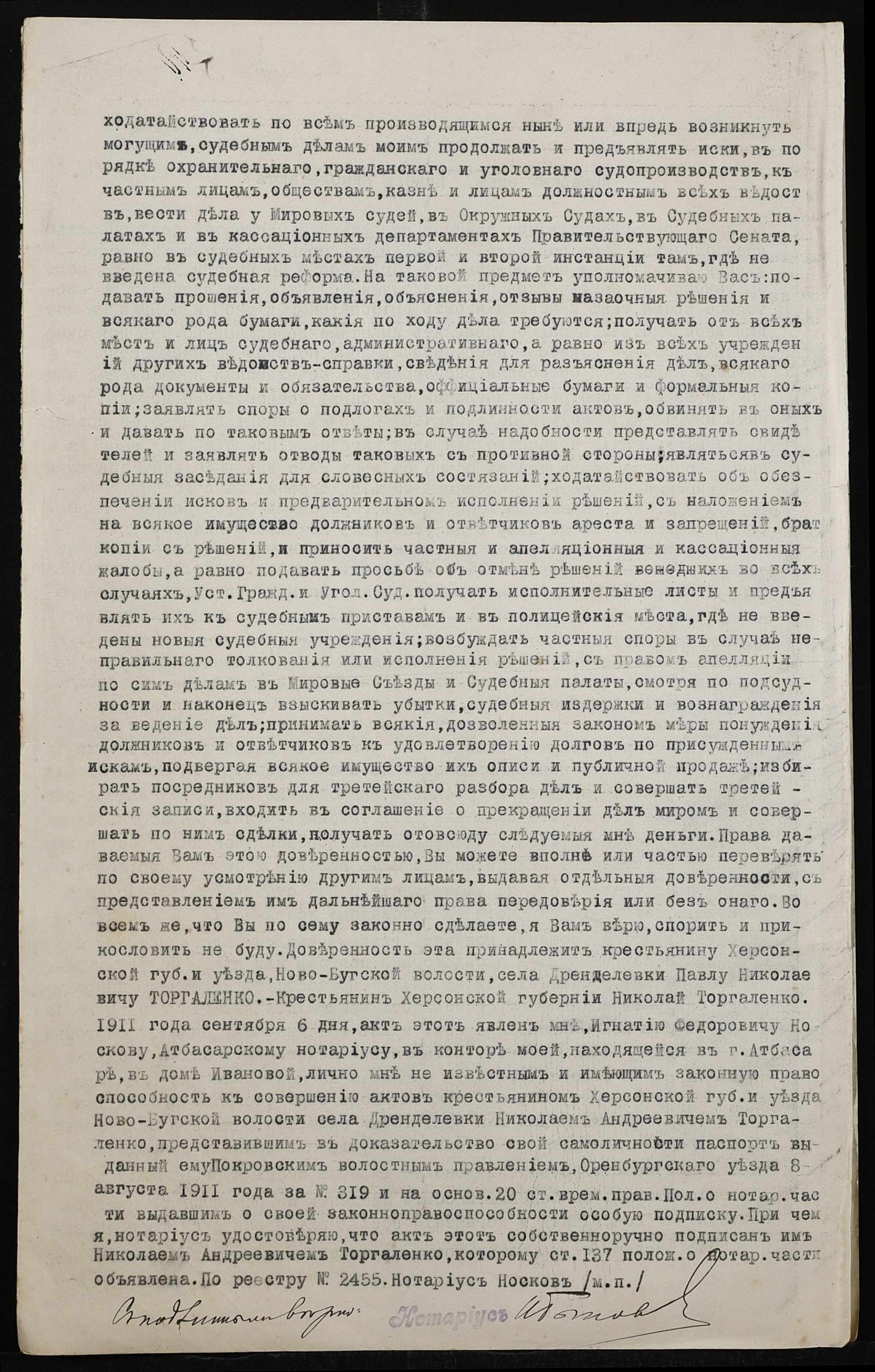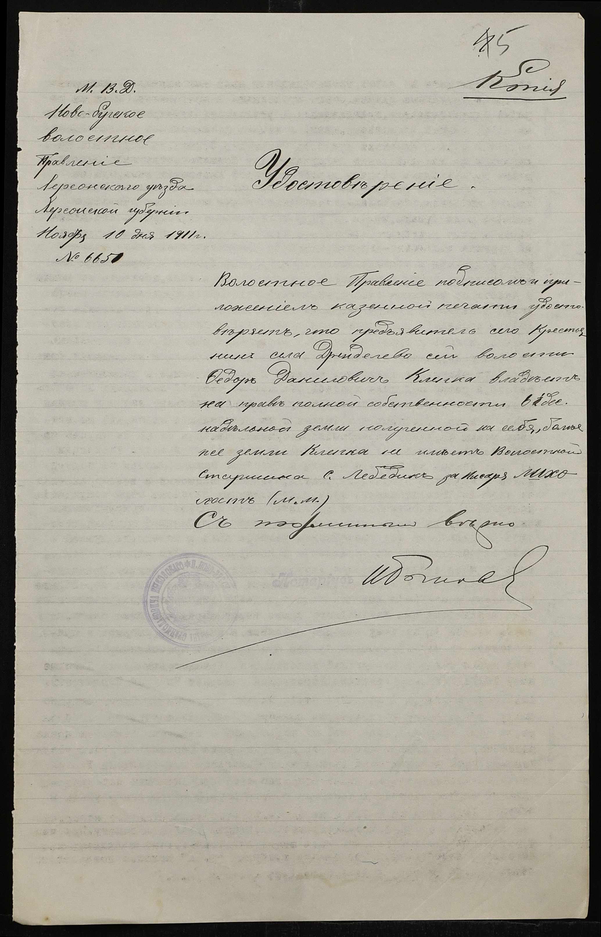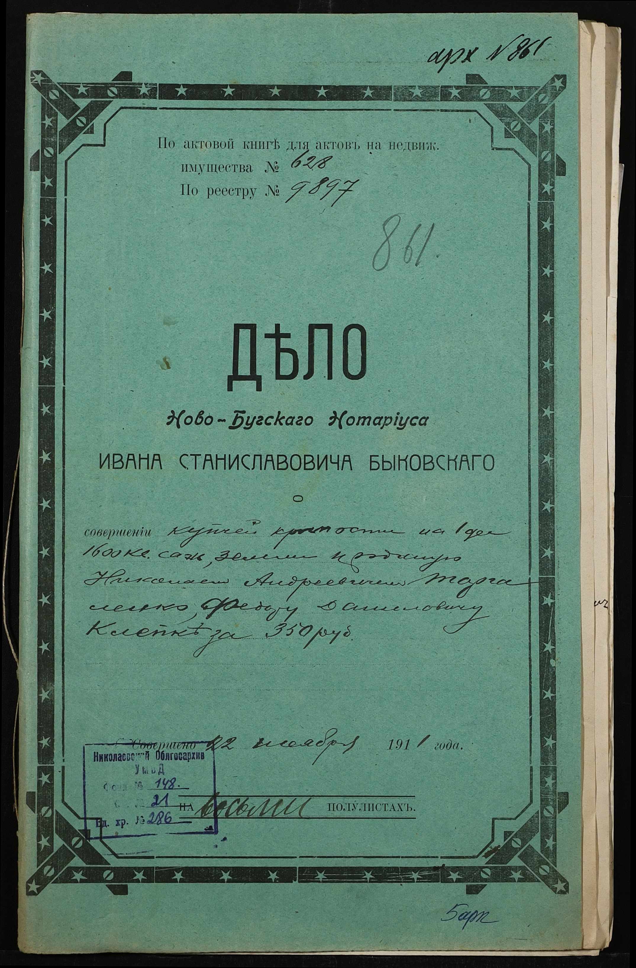 • • • • Справа № 286 “Справа про вчинення купчої про продаж землі селянином Торгаленком Миколою Андрійовичем (Торгаленко Николаем Андреевичем) на користь селянина Клепки Федора Даниловича”