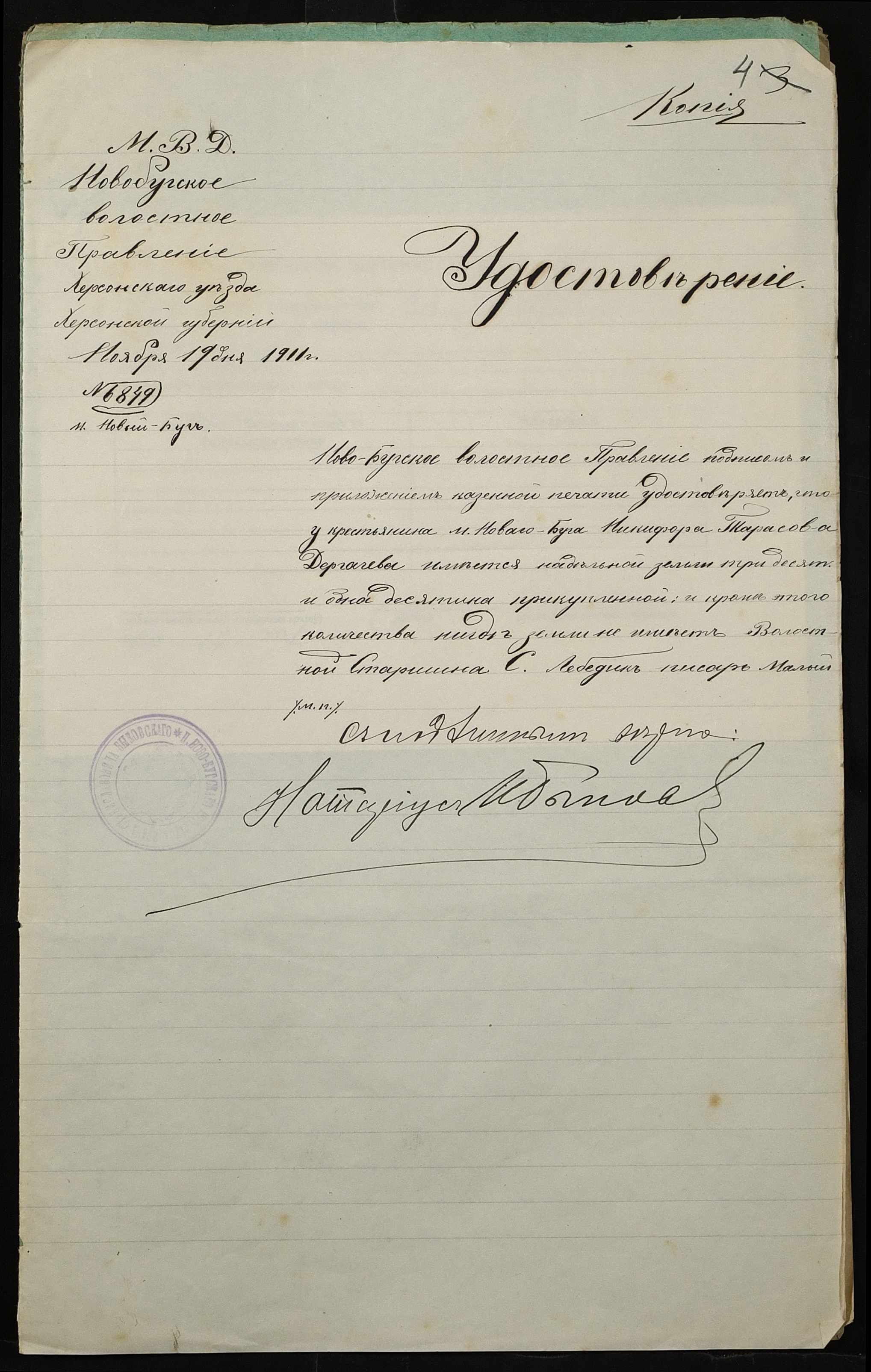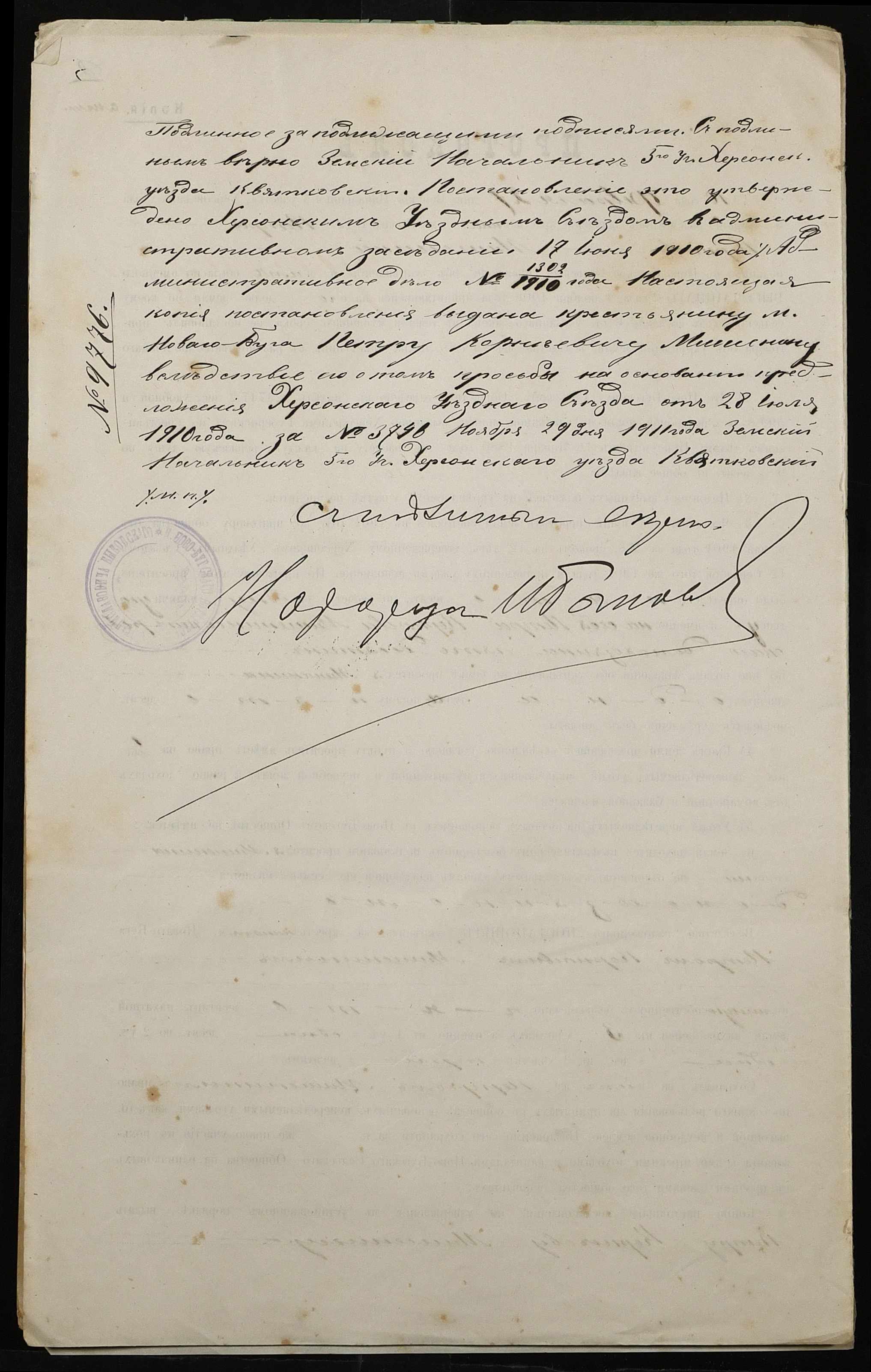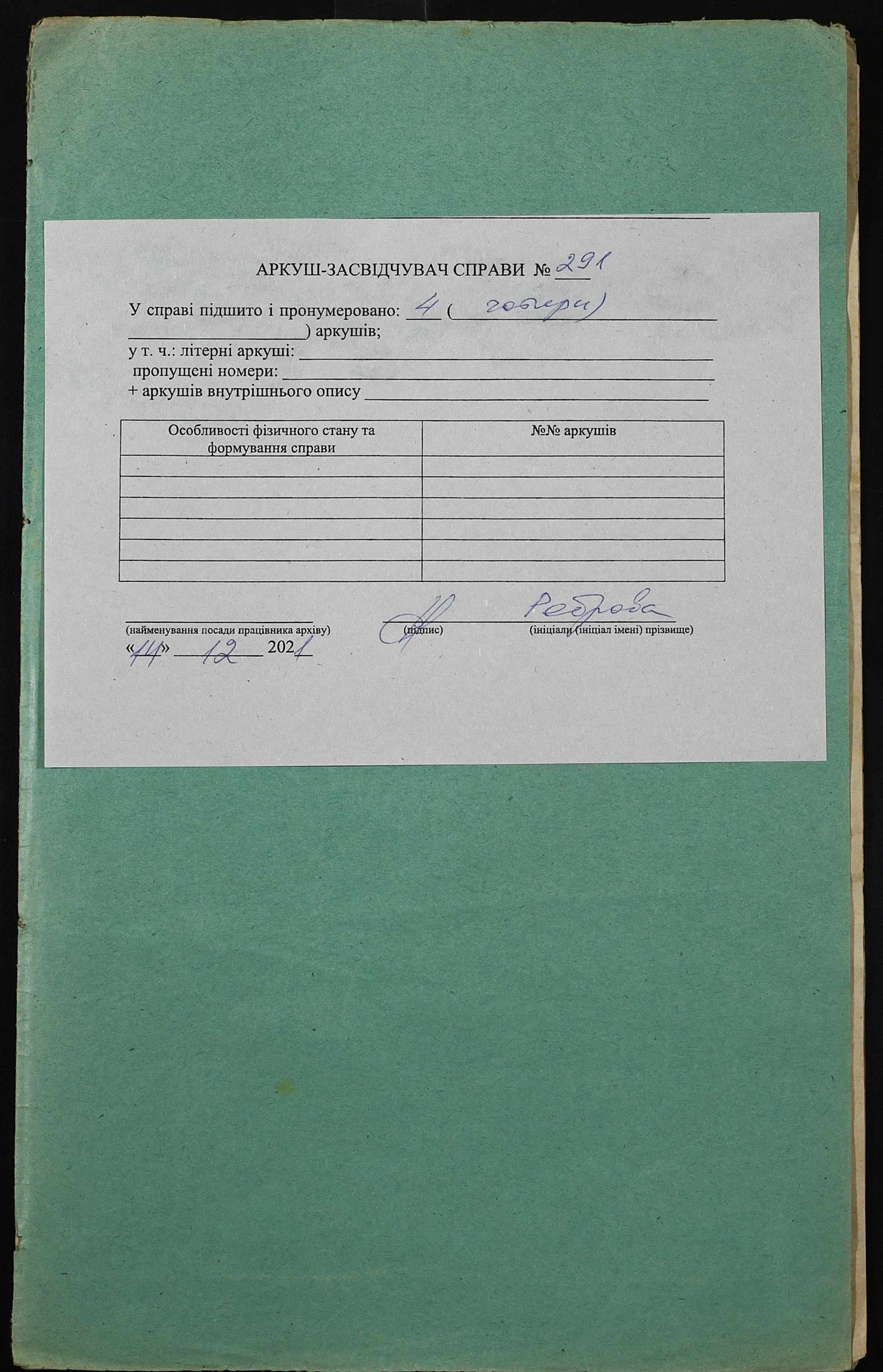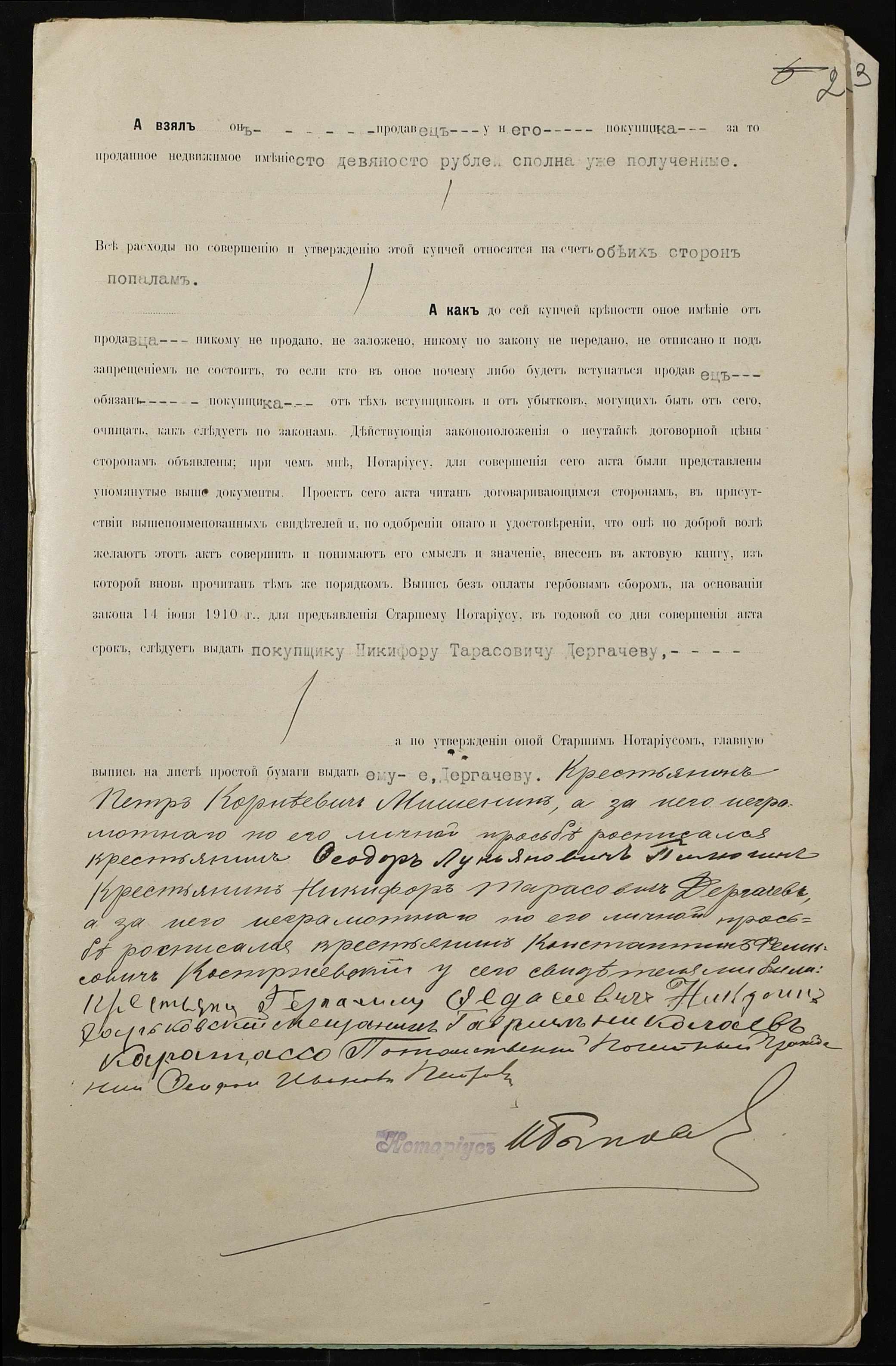 • • • • Справа № 291 “Справа про вчинення купчої про продаж землі селянином Мішеніним (Мишениным) Петром Корнійовичем (Корнеевичем) на користь селянина Дергачова (Дергачева) Никифора Тарасовича”