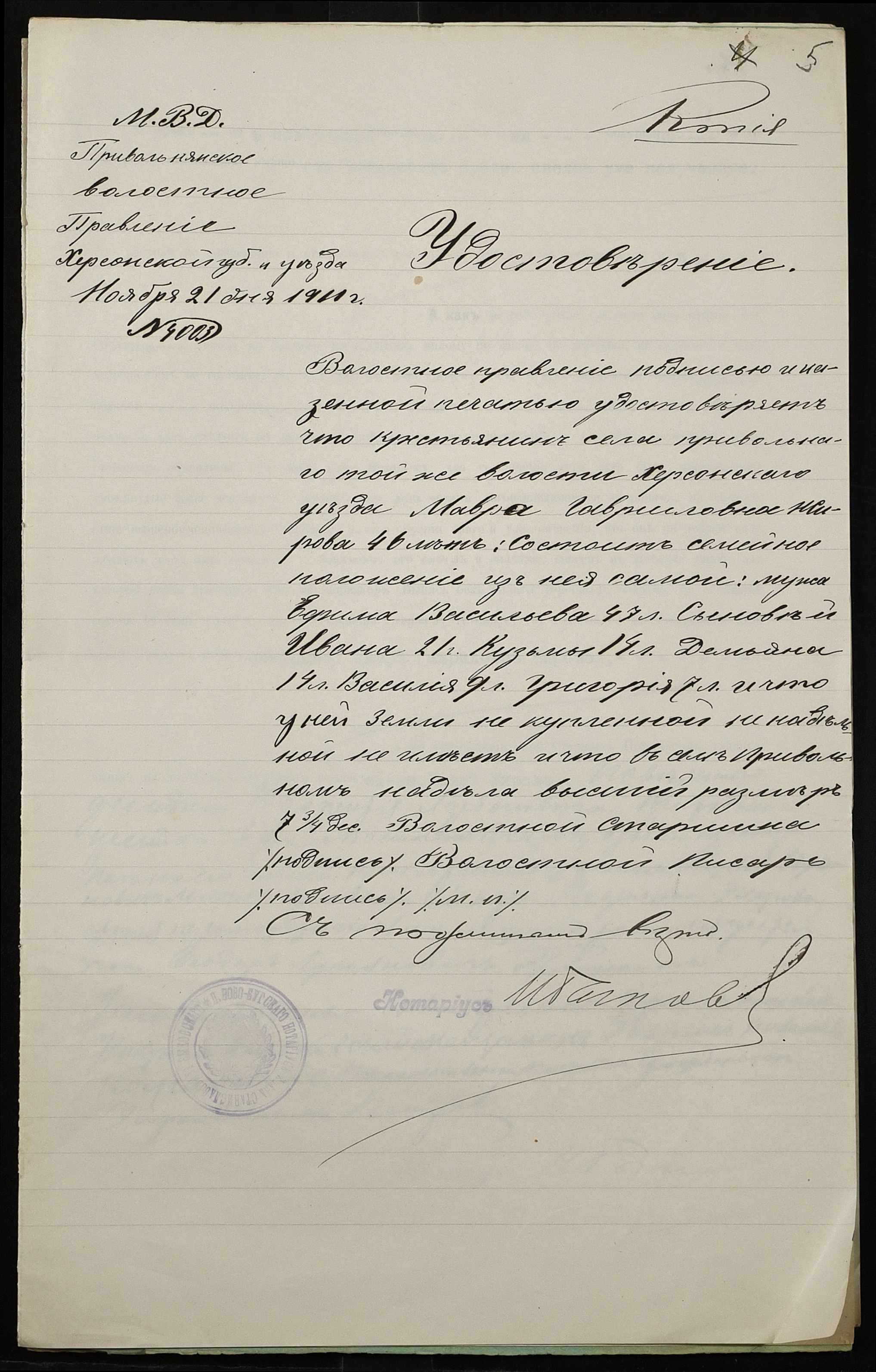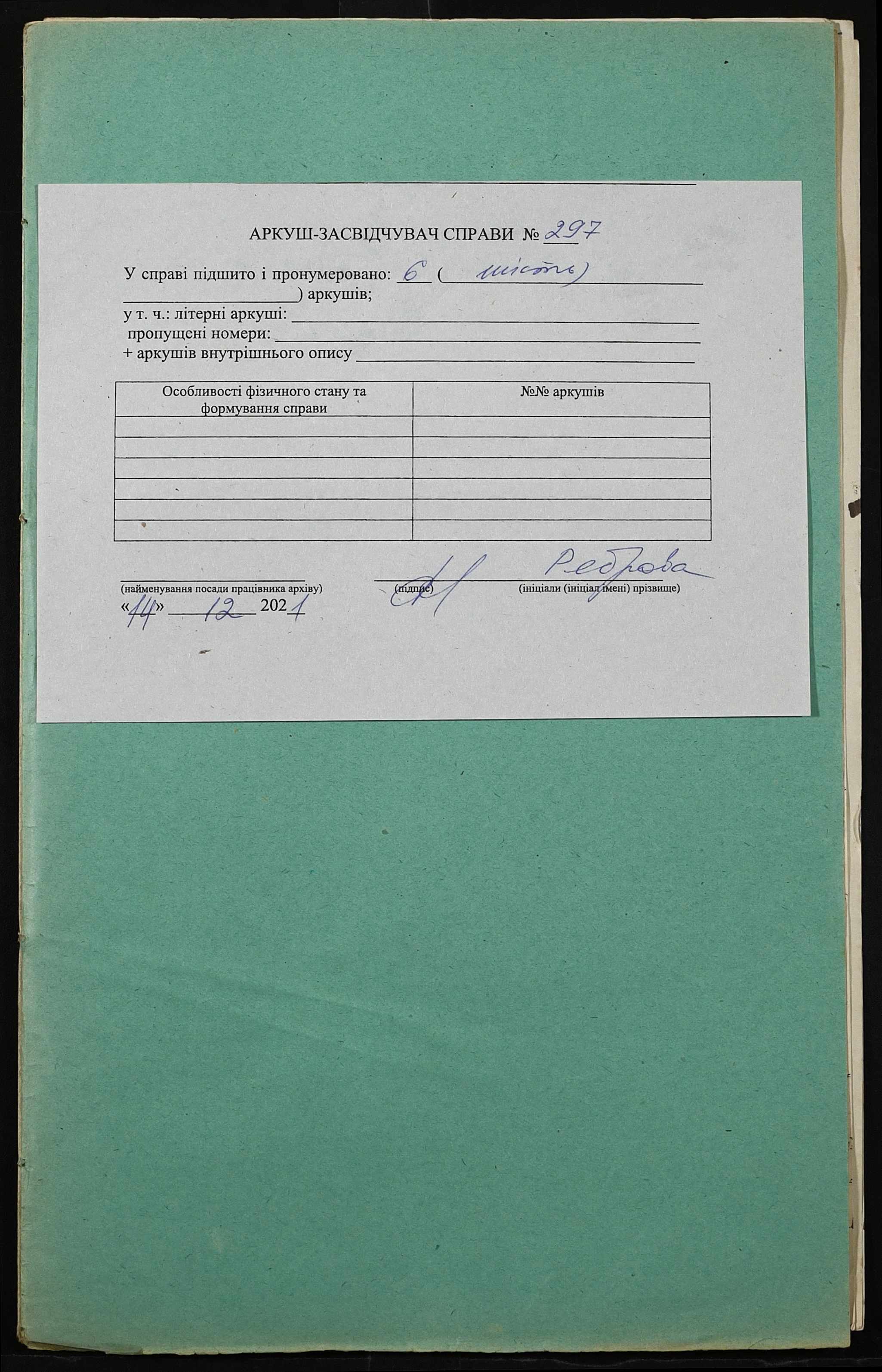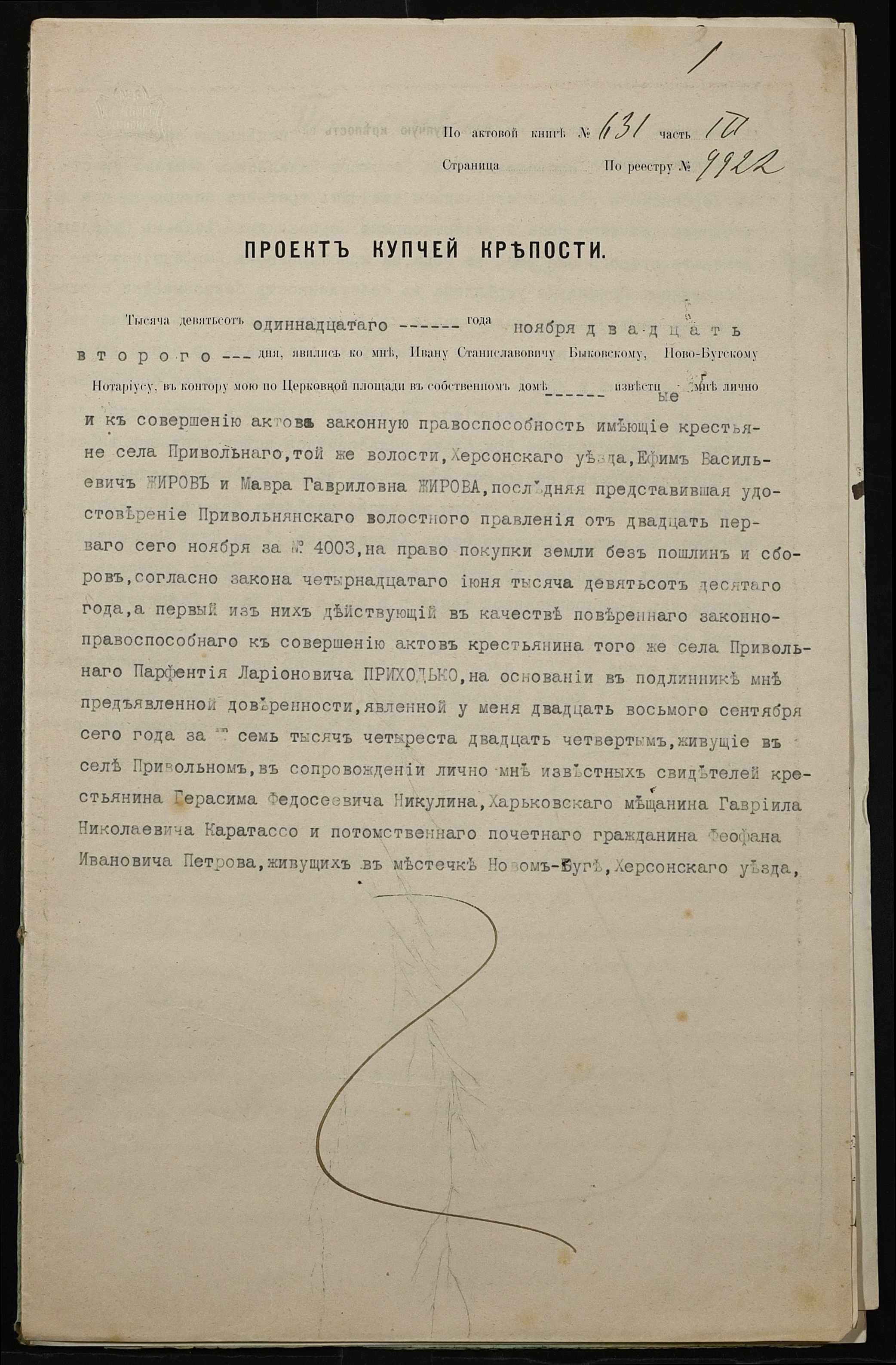 • • • • Справа № 297 “Справа про вчинення купчої про продаж землі селянином Приходьком Парфентієм Ларіоновичем (Приходько Парфентием Ларионовичем) на користь селянки Жирової Маври Гаврилівни (Жировой Мавры Гаврииловны)”