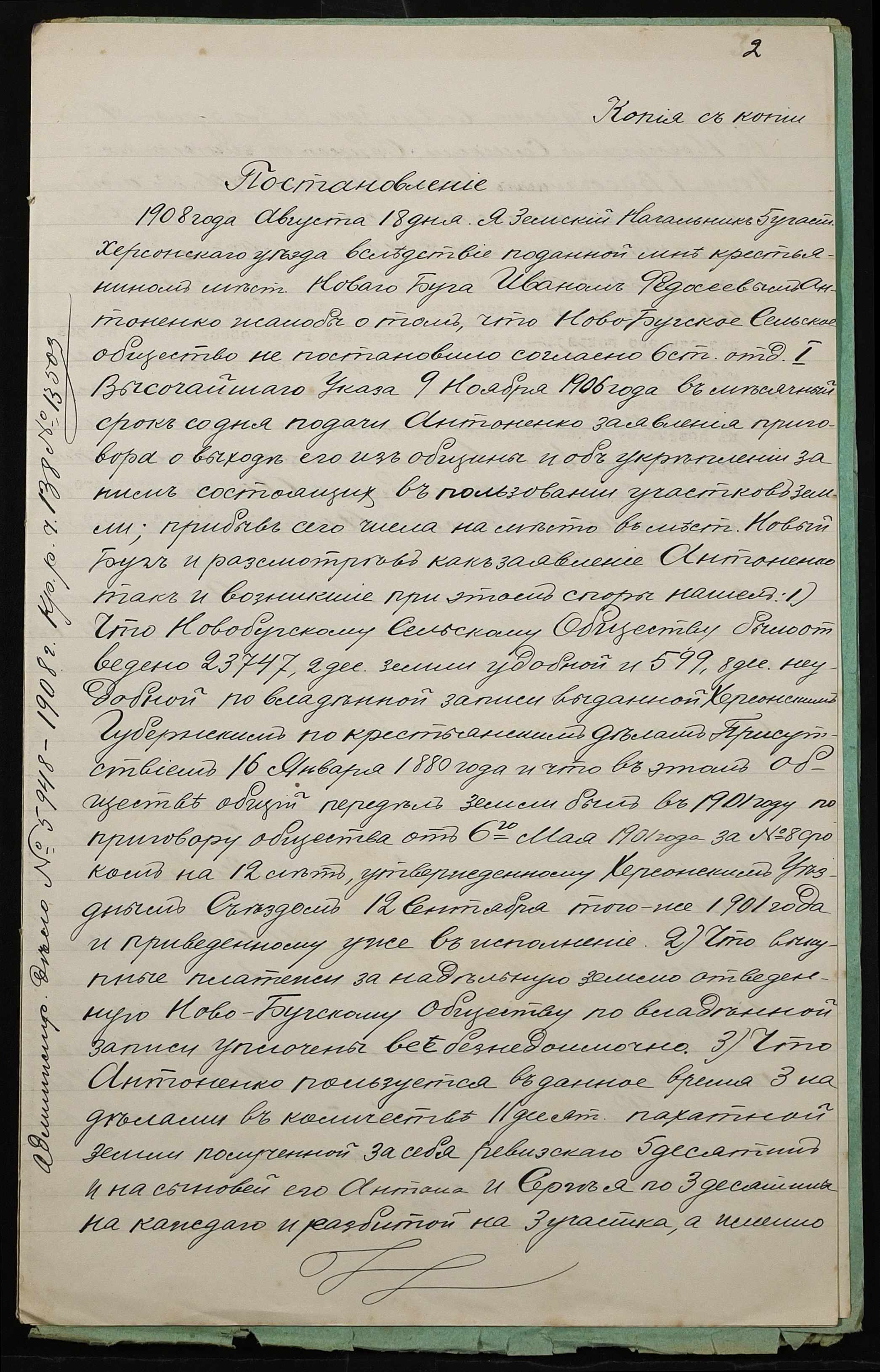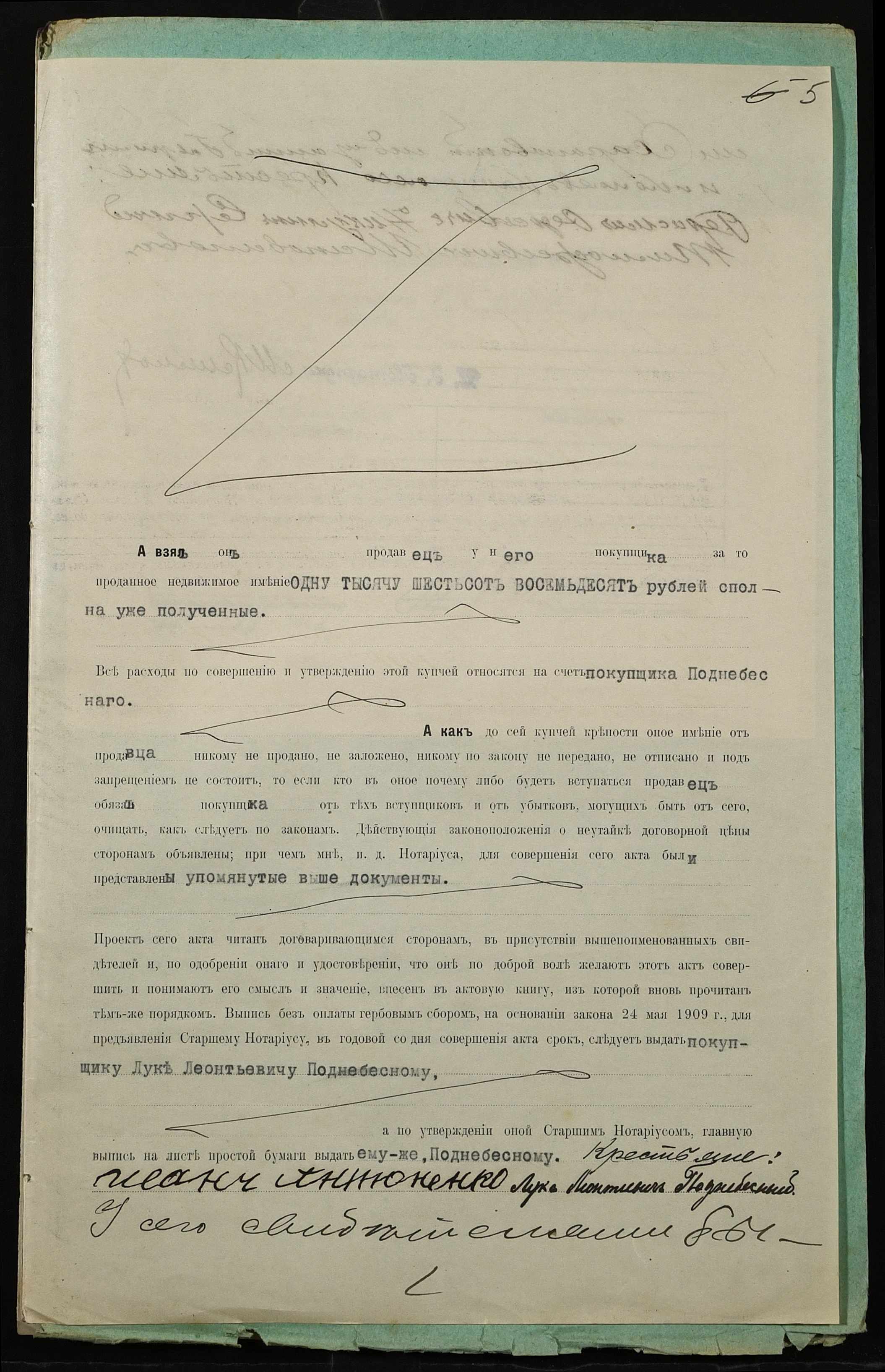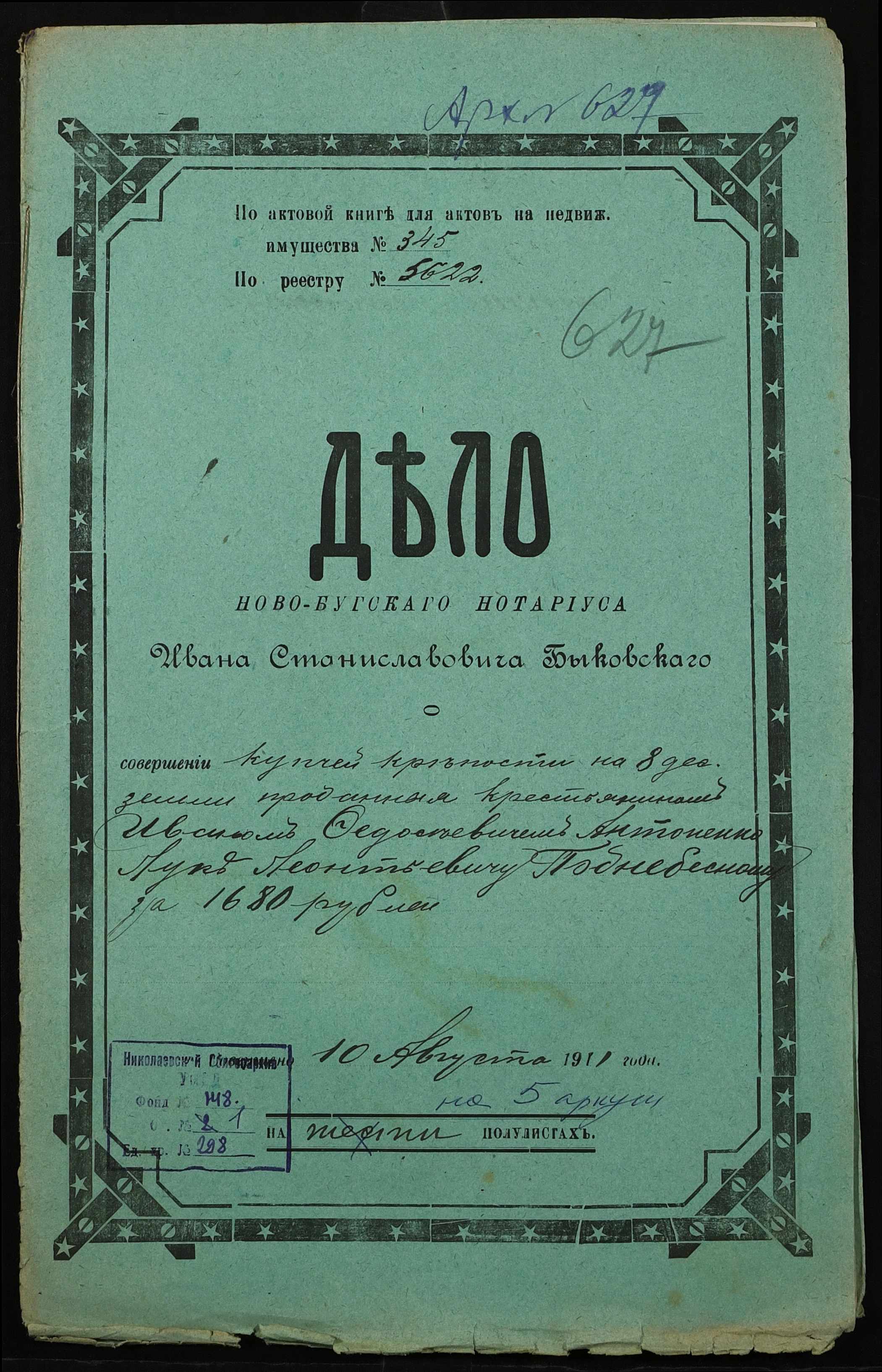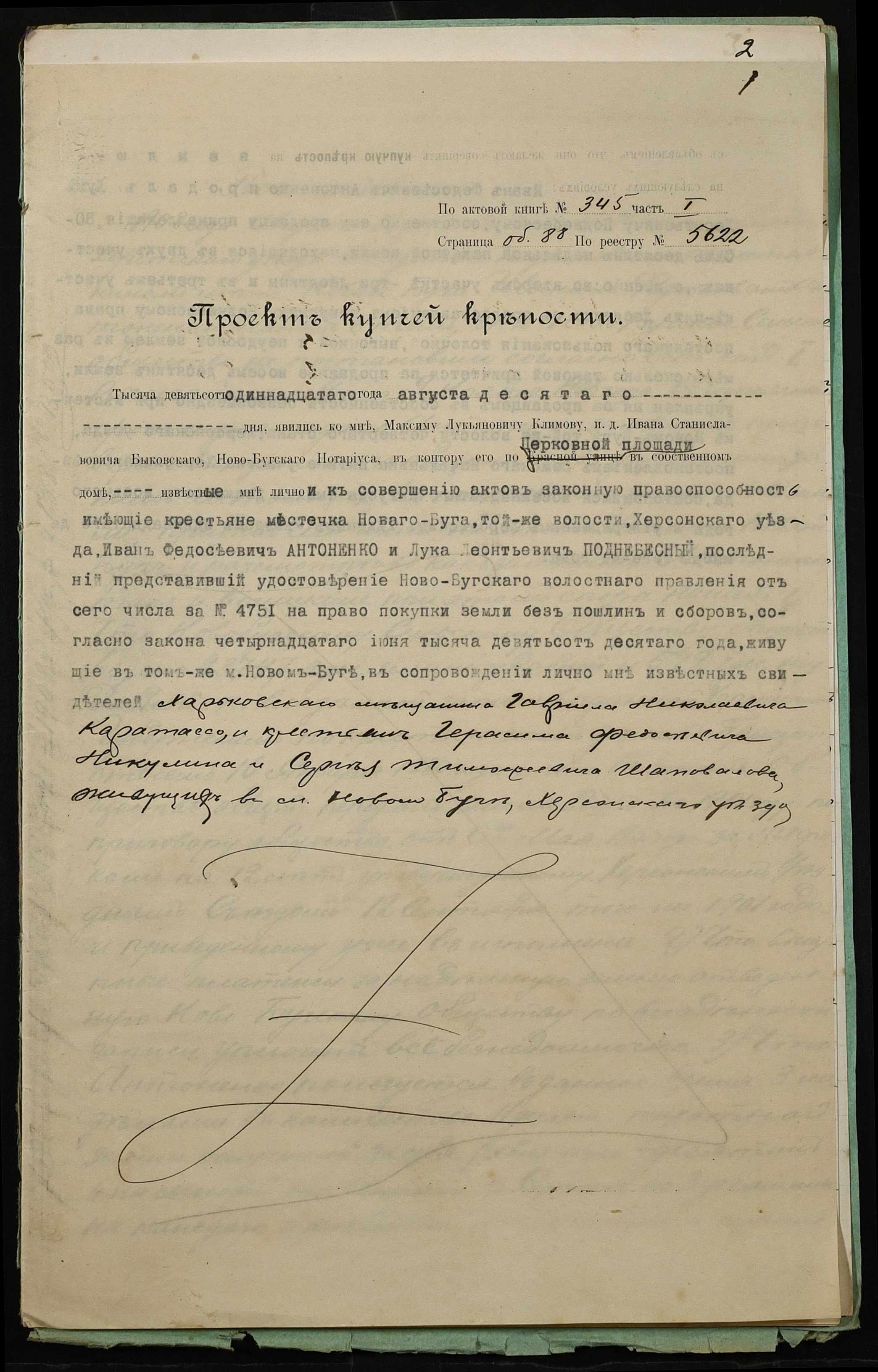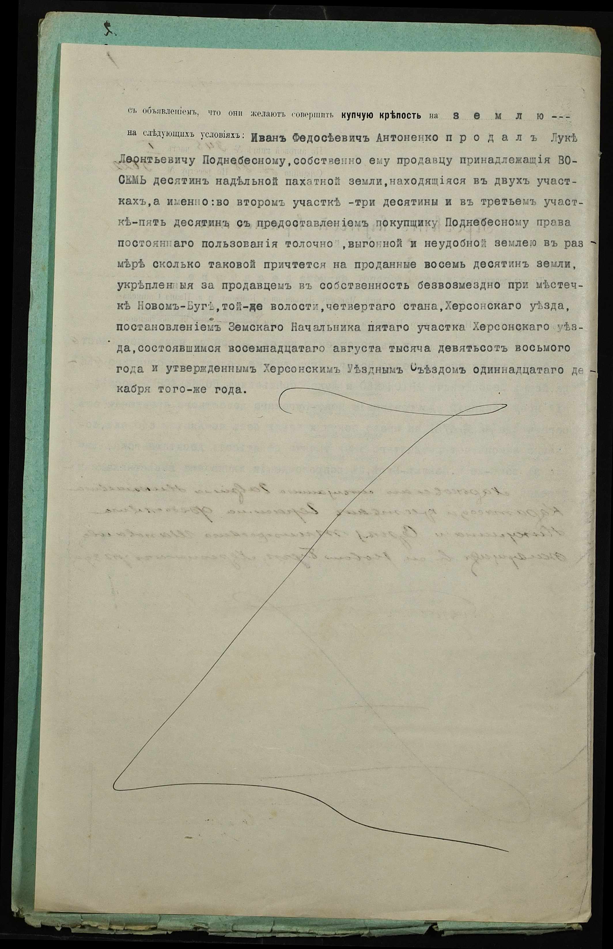 • • • • Справа № 298 “Справа про вчинення купчої про продаж землі селянином Антоненком Іваном Феодосійовичем (Антоненко Иваном Феодосьевичем) на користь селянина Поднебесного Луки Леонтійовича (Леонтьевича)”