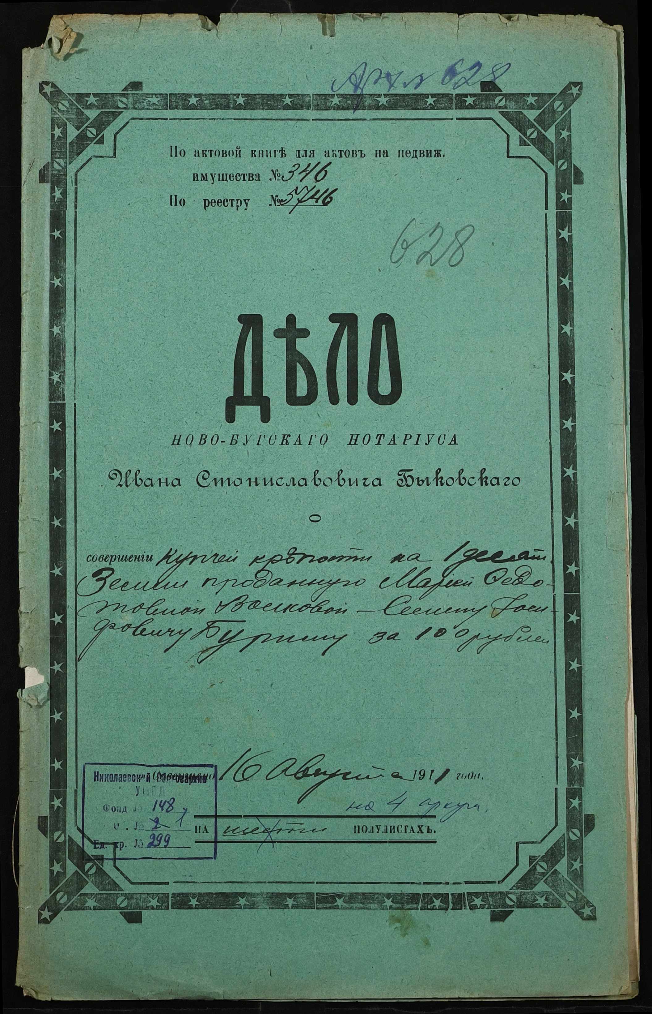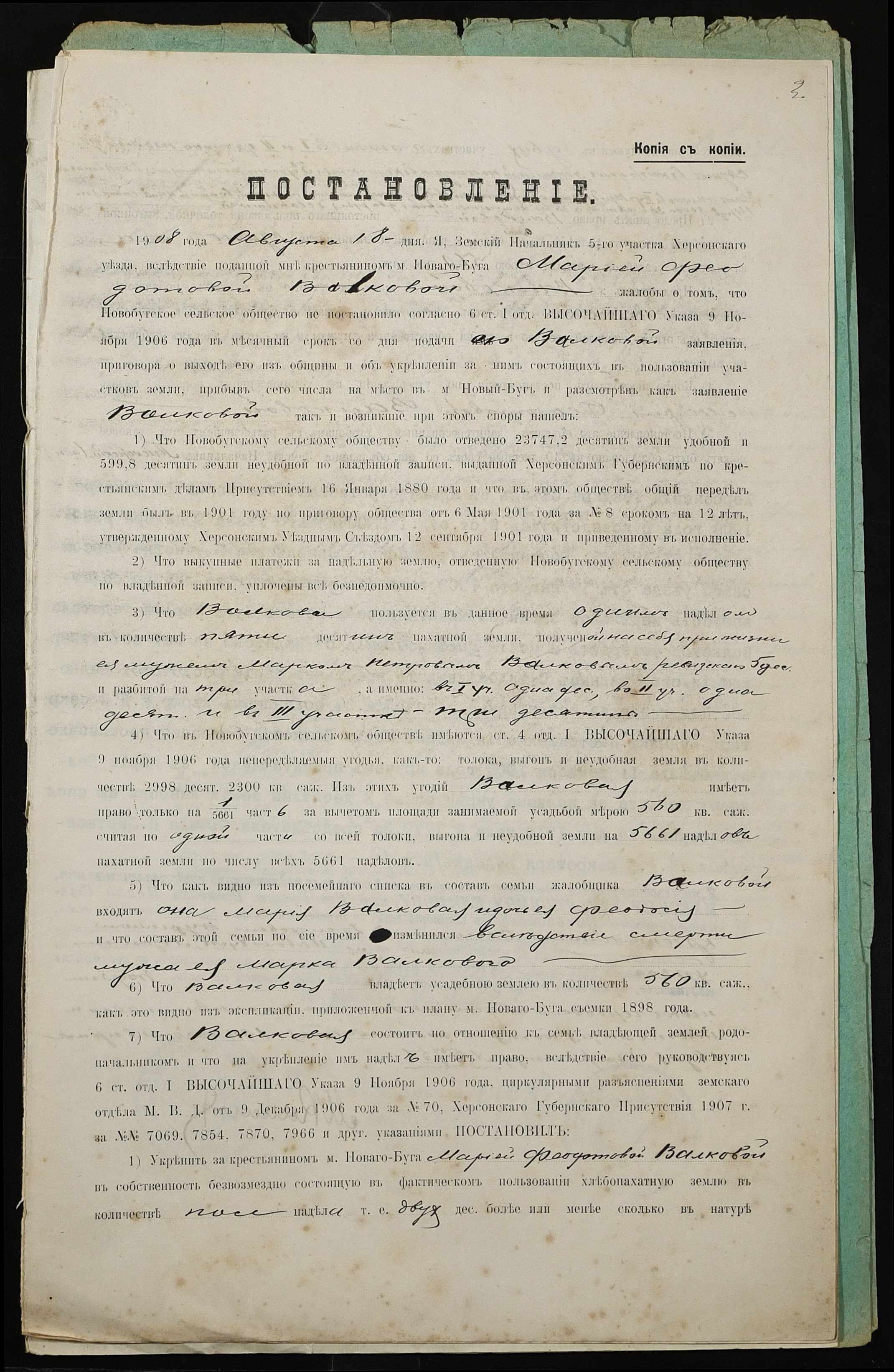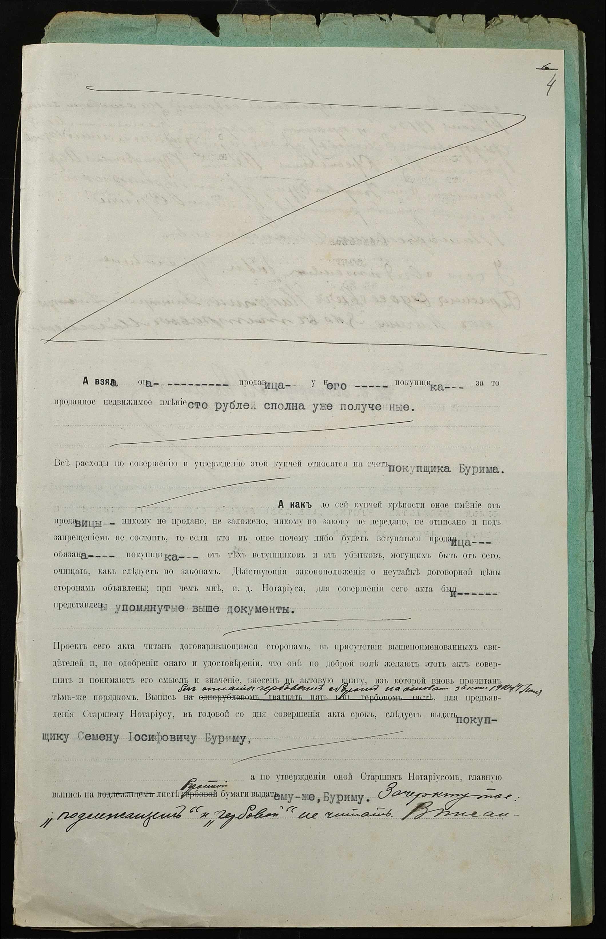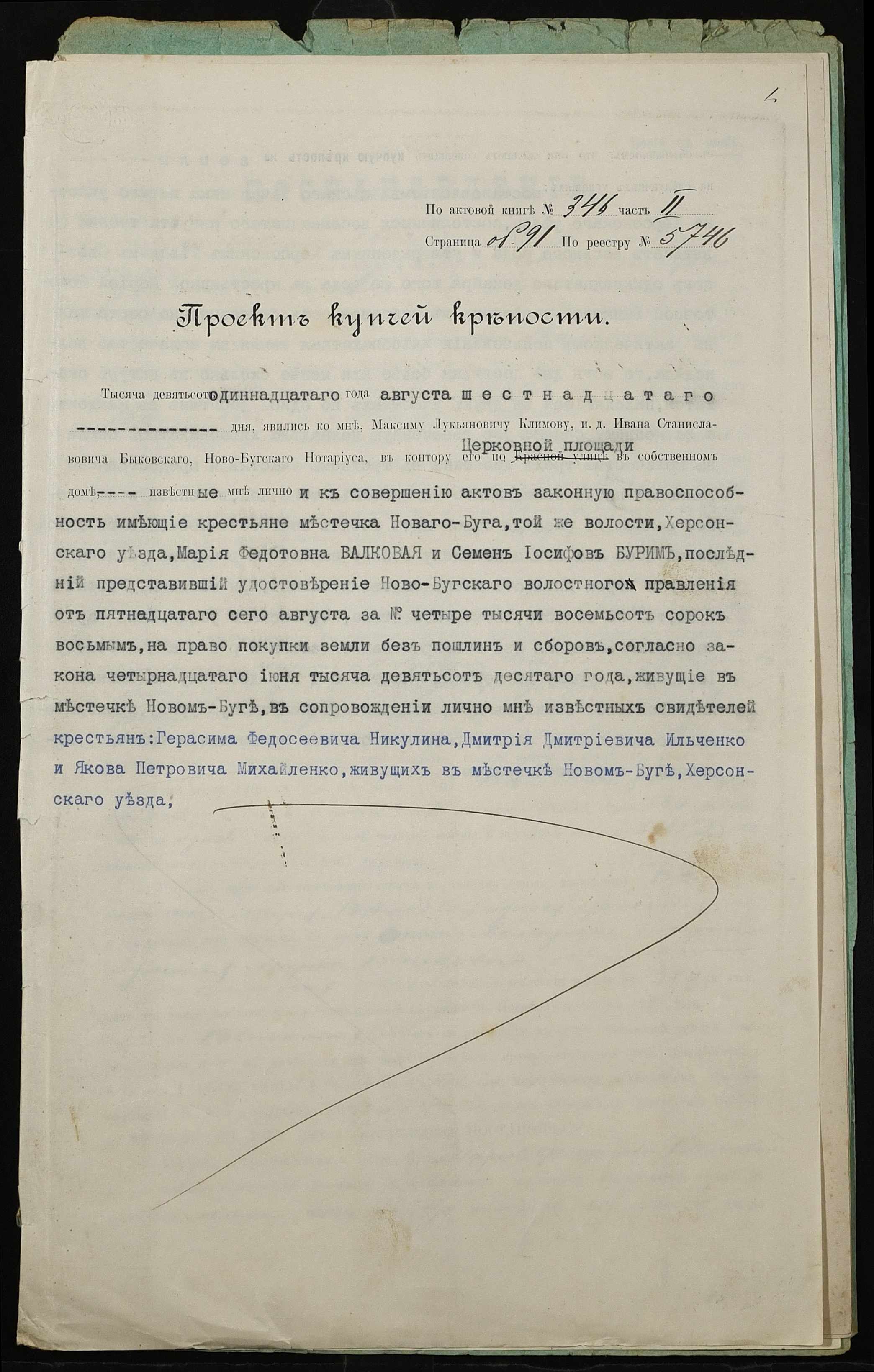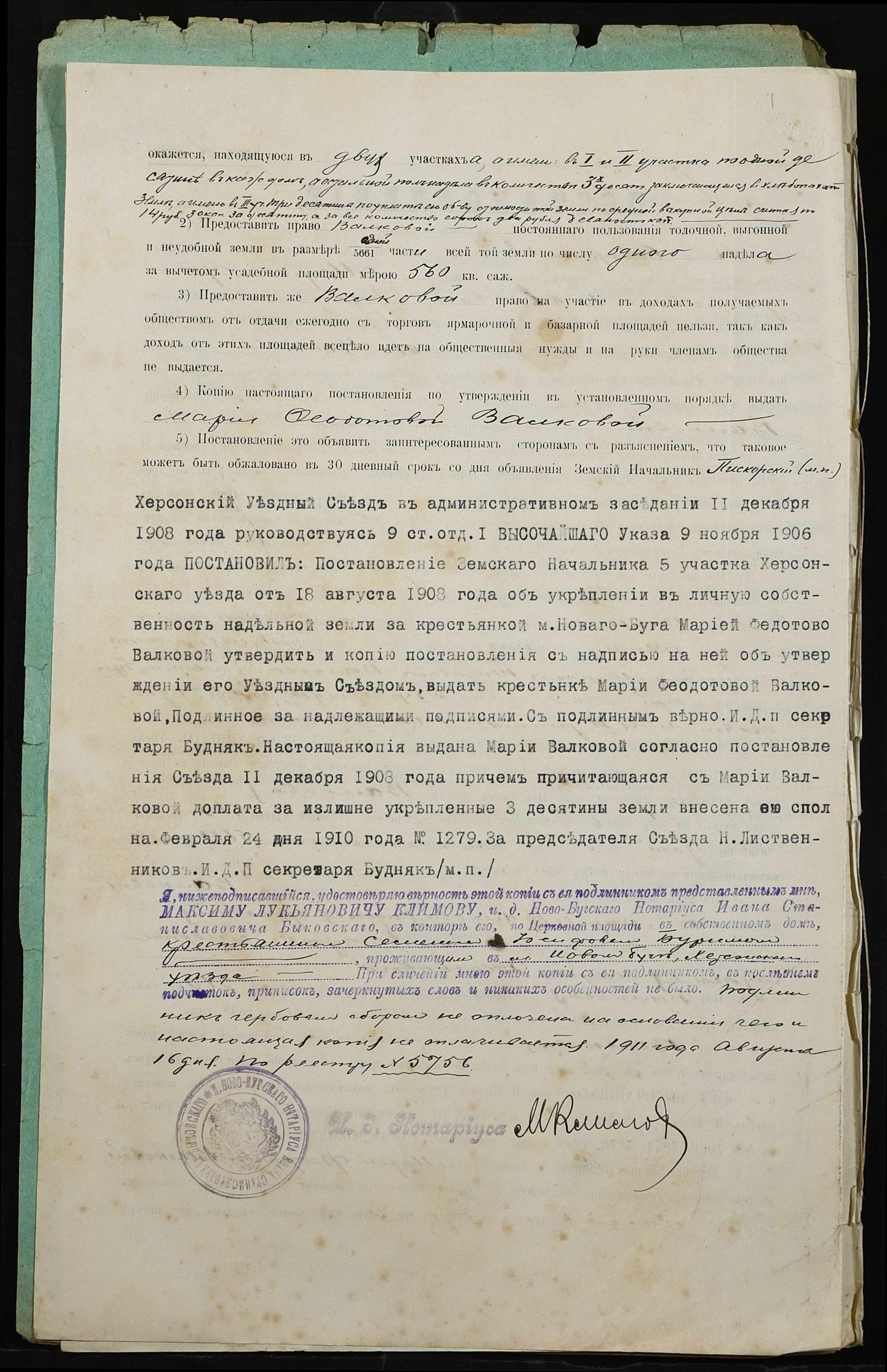 • • • • Справа № 299 “Справа про вчинення купчої про продаж землі селянкою Валковою Марією Федотівною (Валковой Марией Федотовной) на користь селянина Бурима Семена Йосиповича (Иосифовича)”