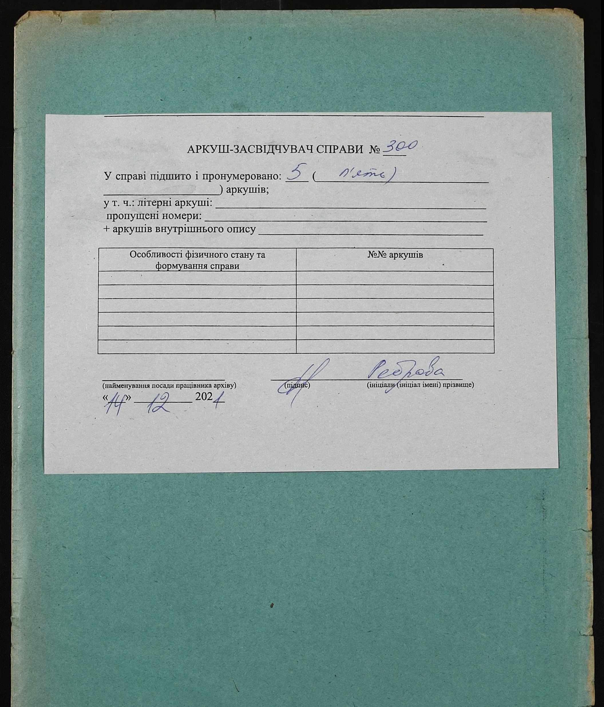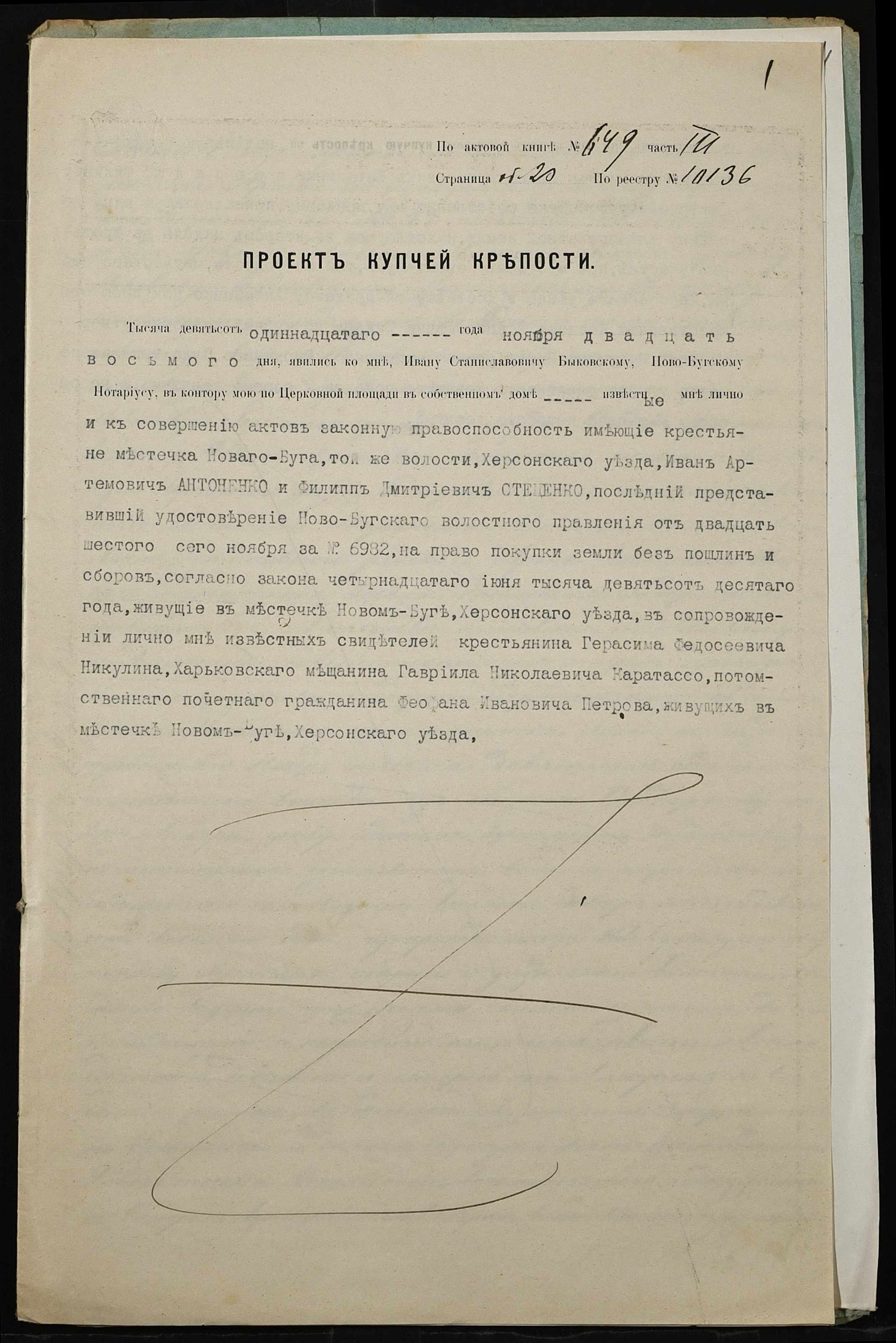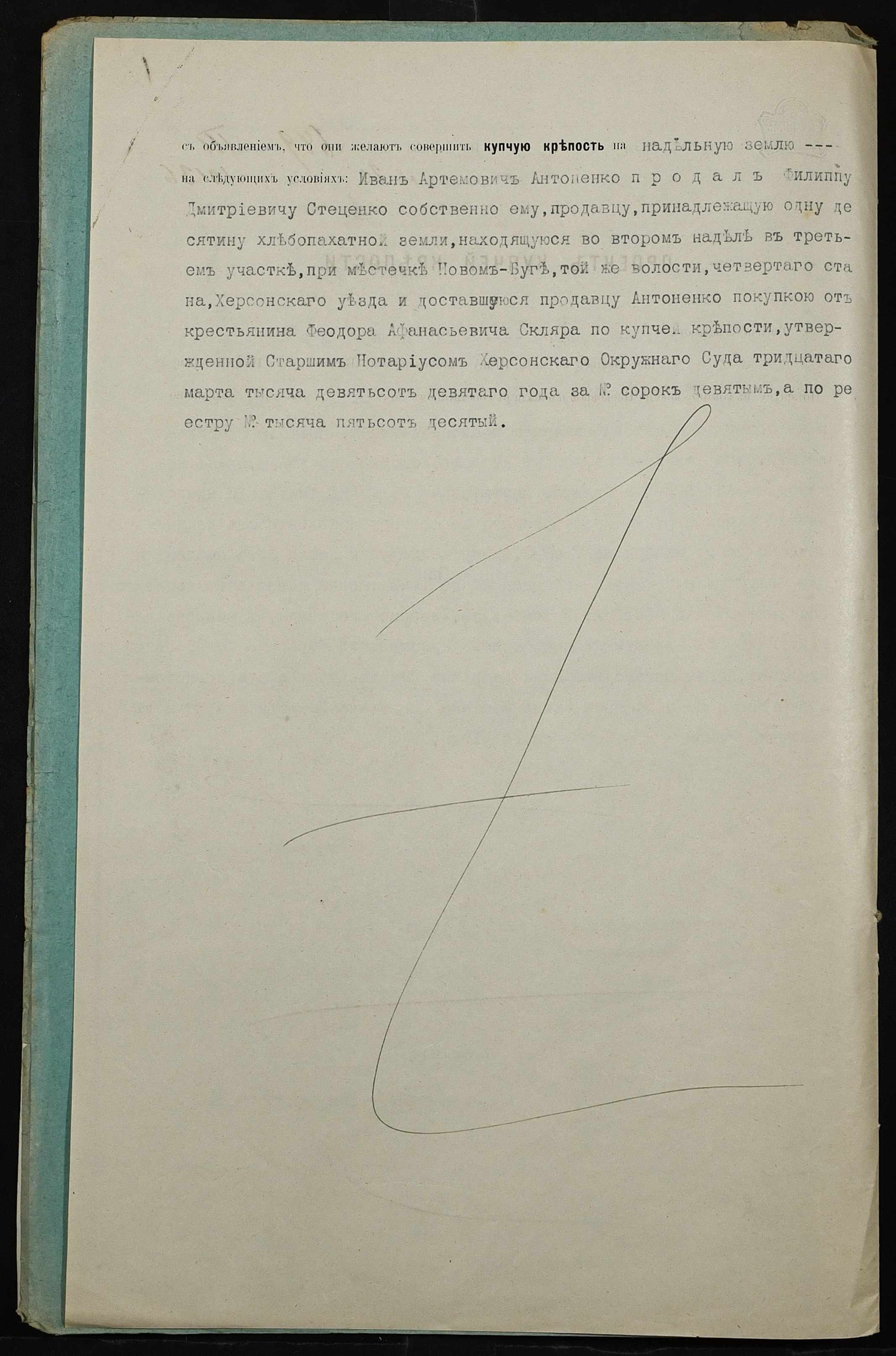 • • • • Справа № 300 “Справа про вчинення купчої про продаж землі селянином Антоненком Іваном (Антоненко Иваном) Артемовичем на користь селянина Стеценка Пилипа Дмитровича (Стеценко Филиппа Дмитриевича)”