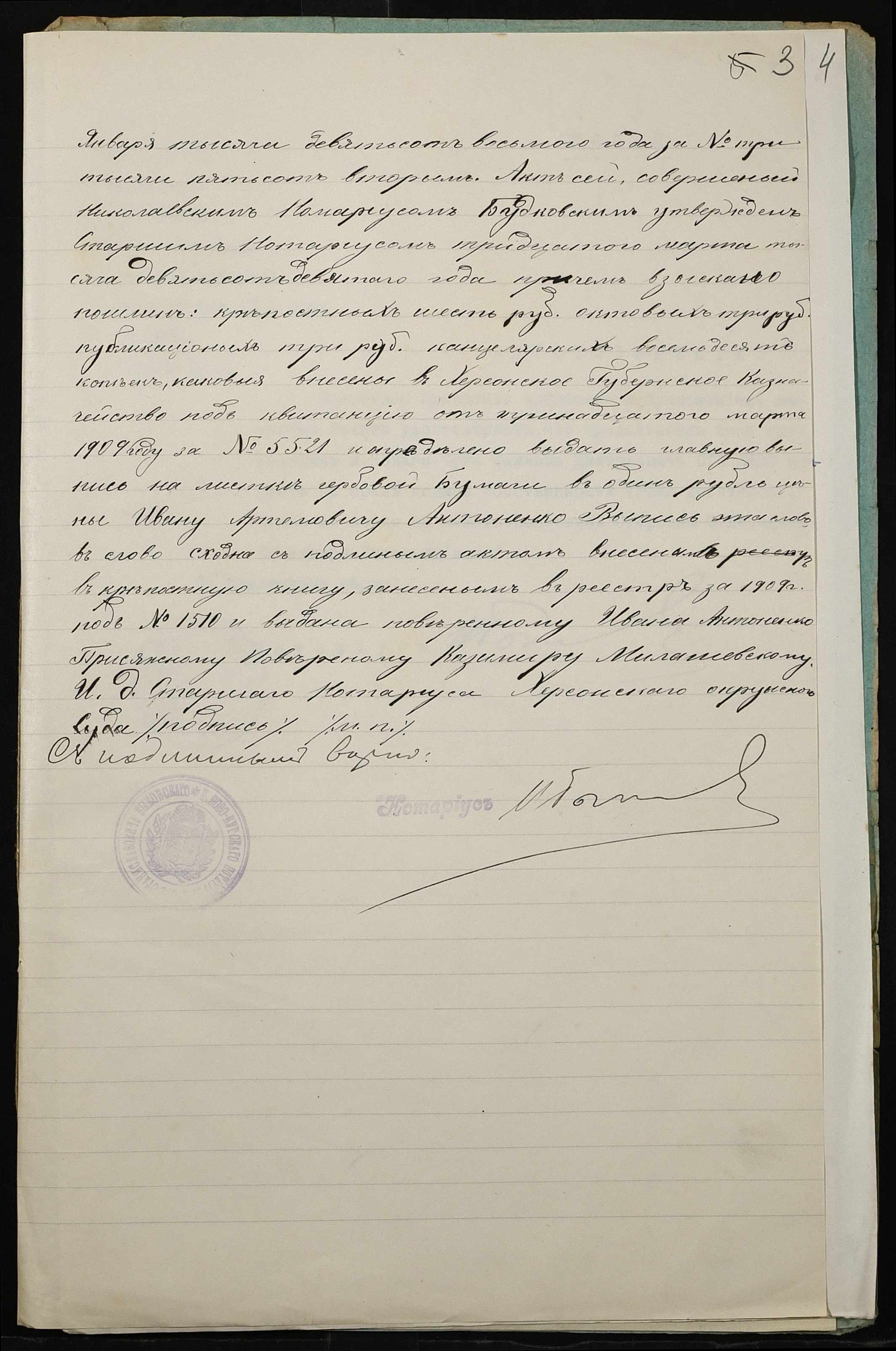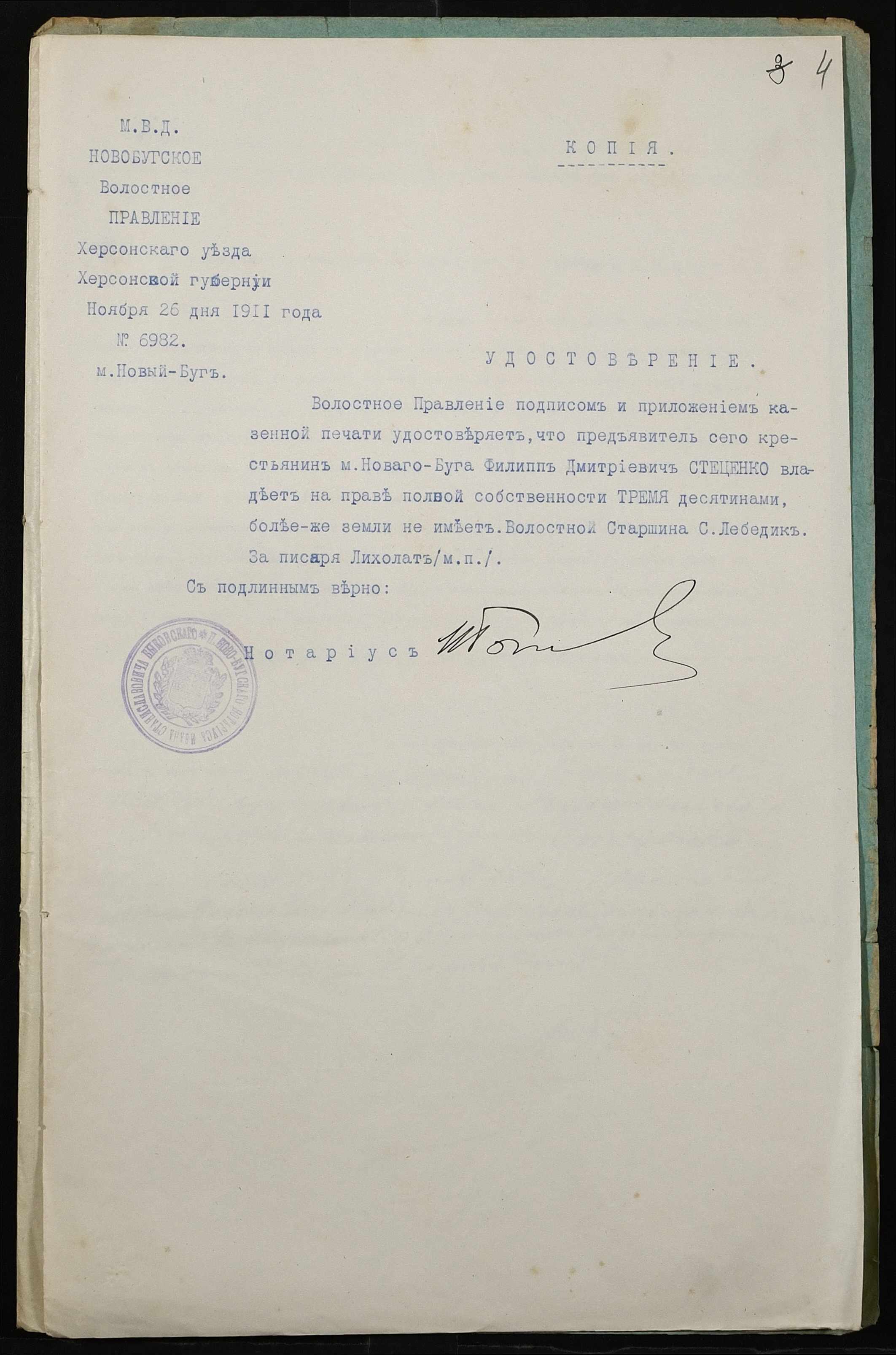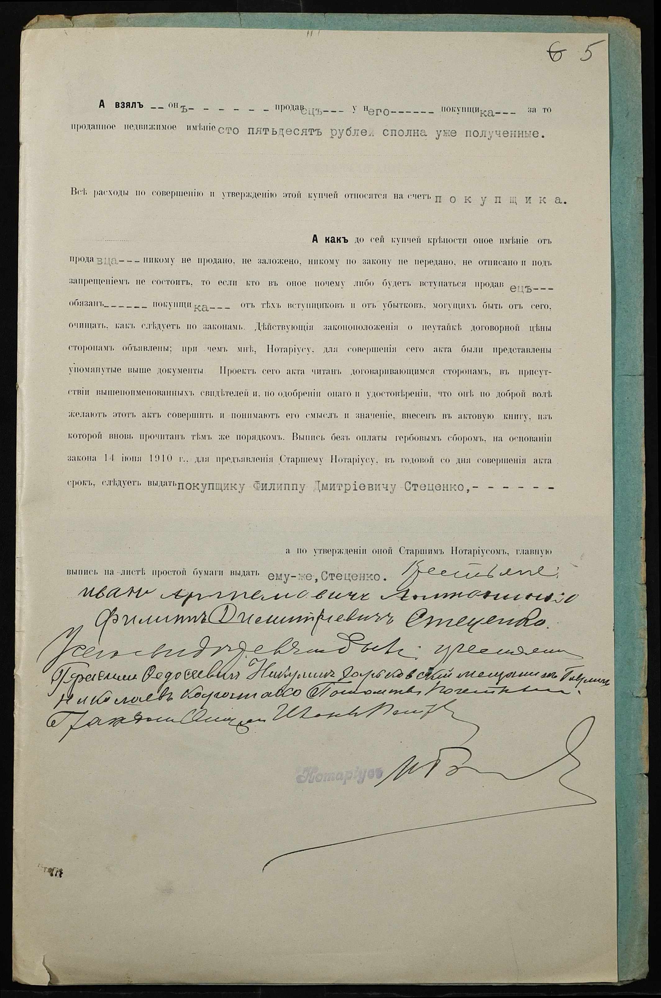 • • • • Справа № 300 “Справа про вчинення купчої про продаж землі селянином Антоненком Іваном (Антоненко Иваном) Артемовичем на користь селянина Стеценка Пилипа Дмитровича (Стеценко Филиппа Дмитриевича)”