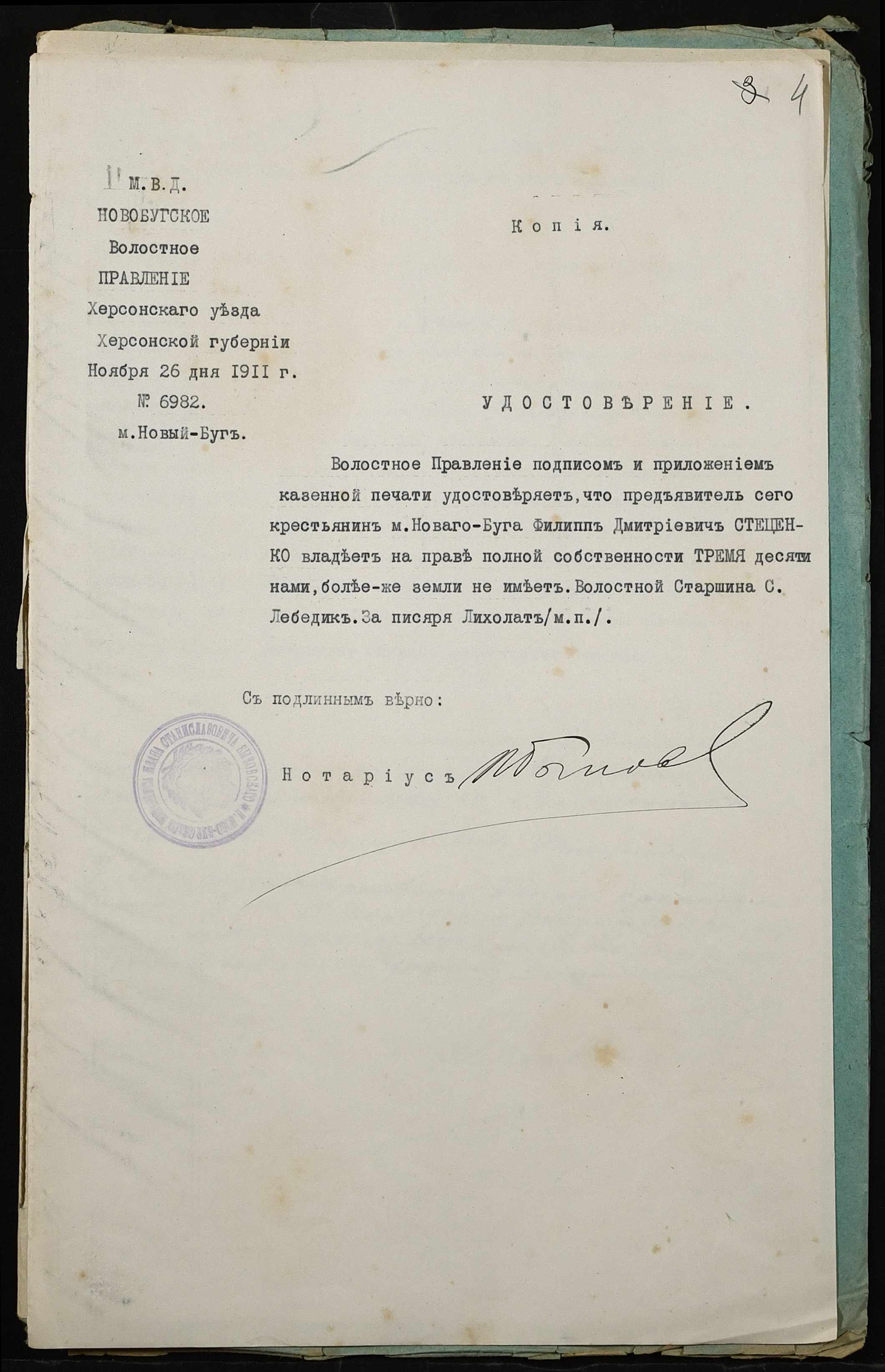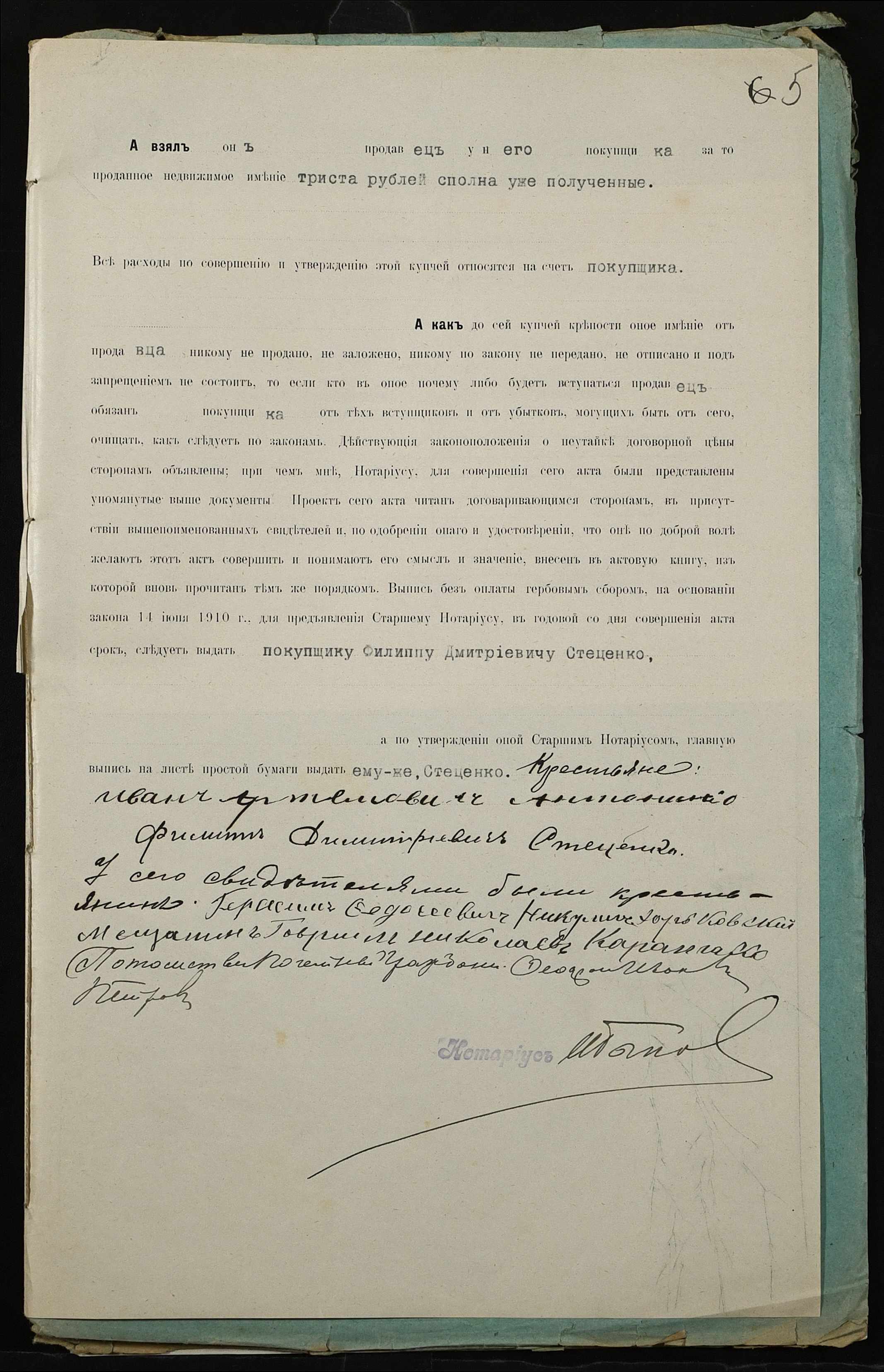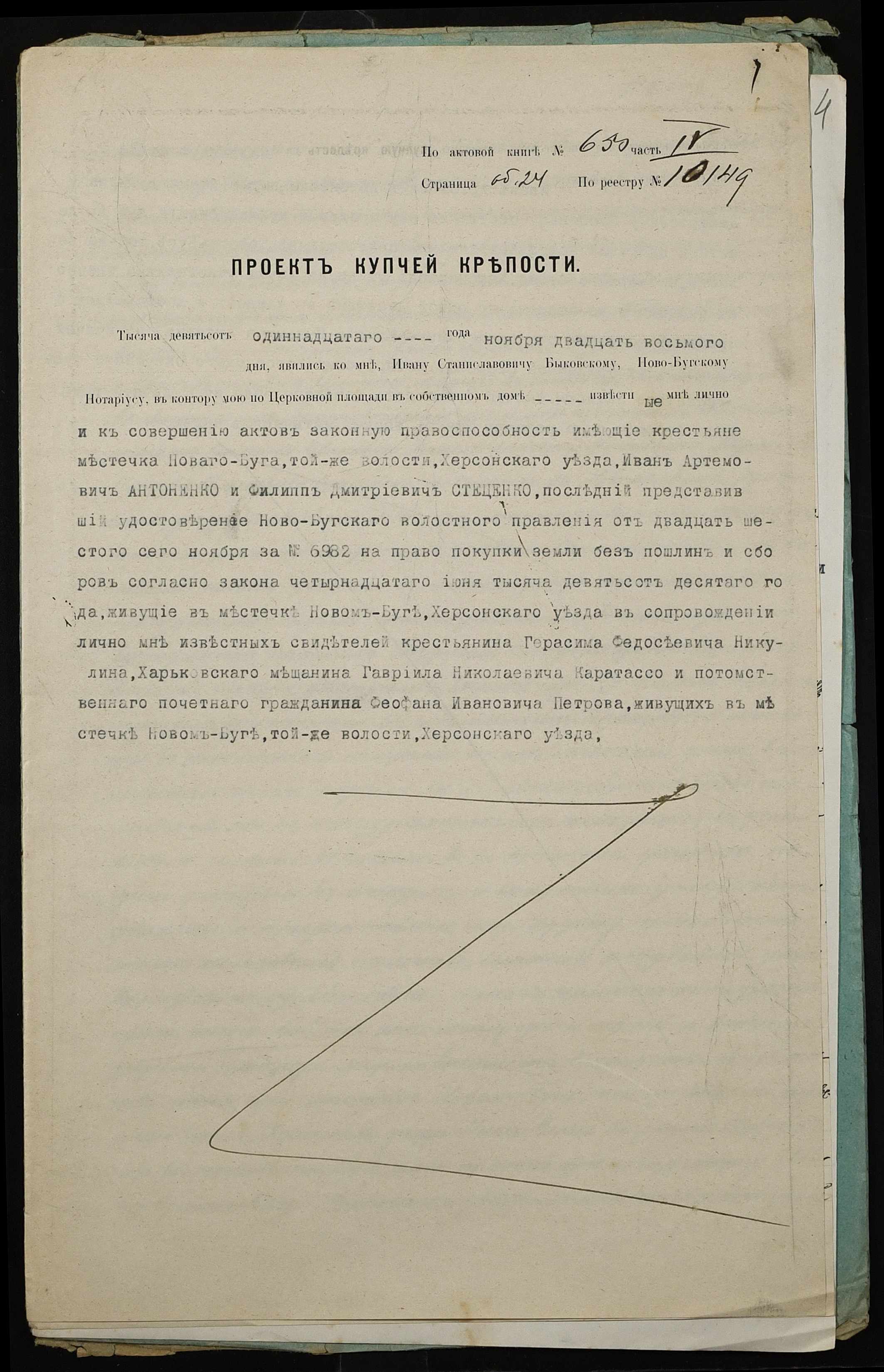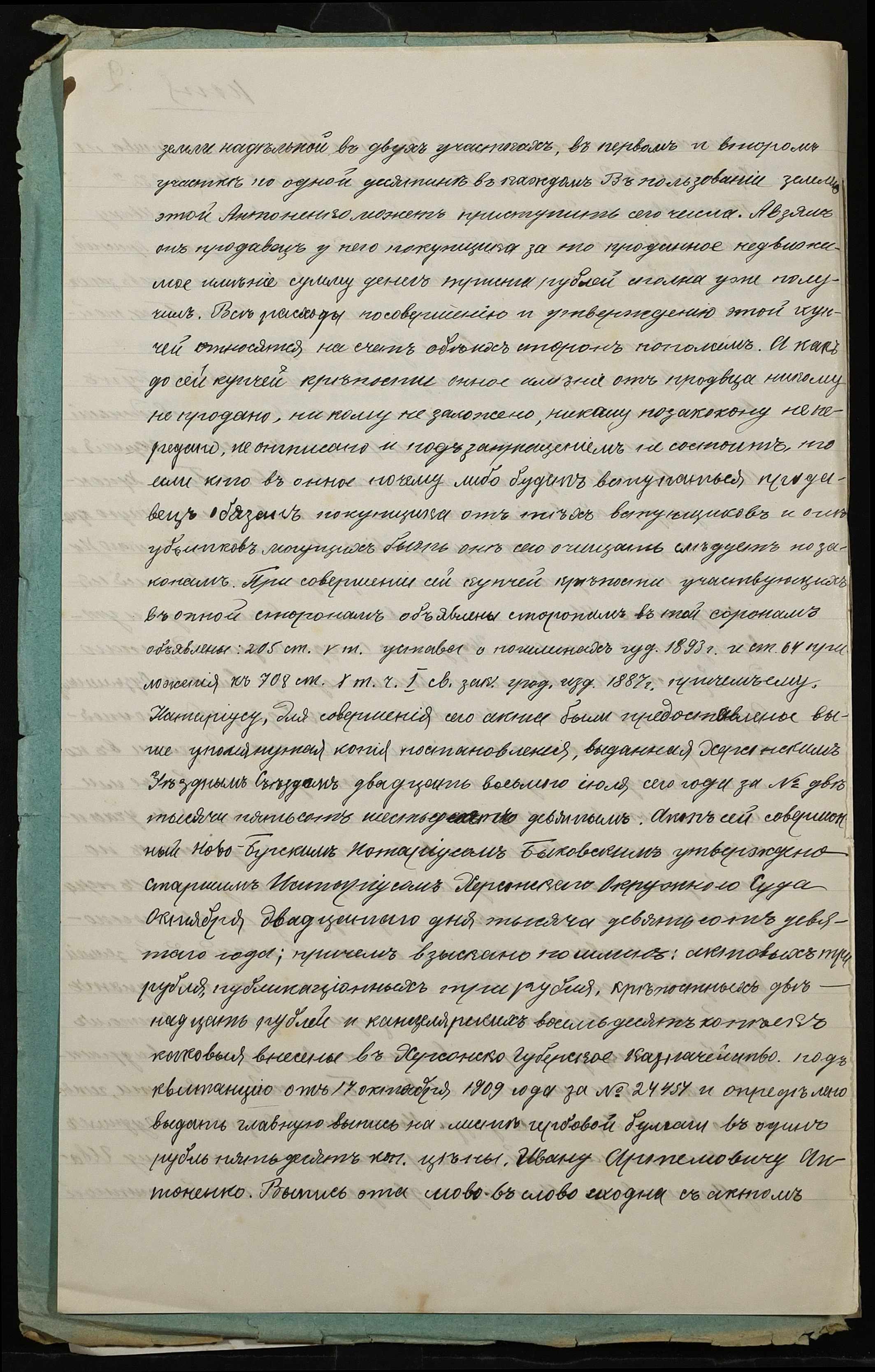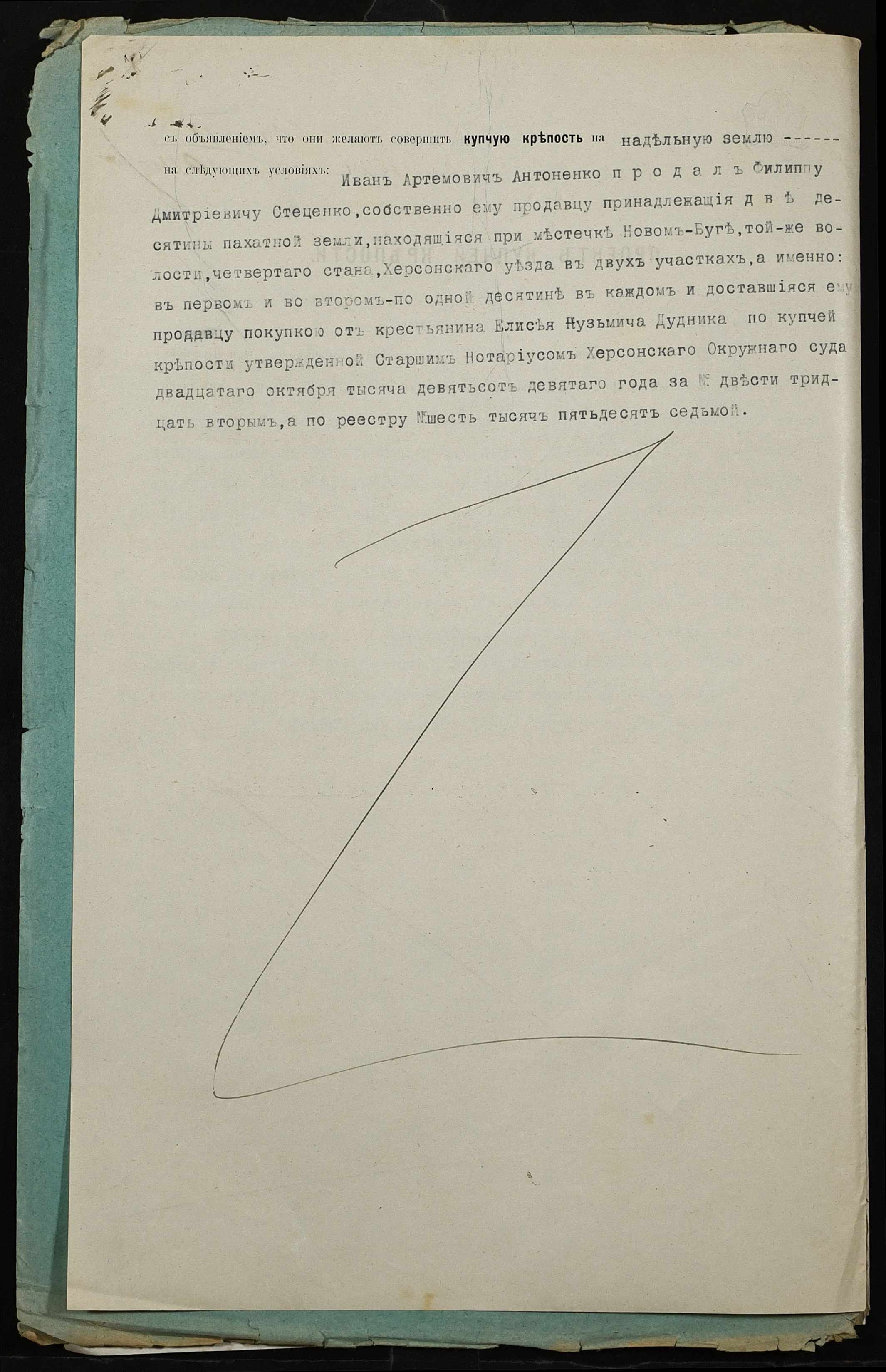 • • • • Справа № 301 “Справа про вчинення купчої про продаж землі селянином Антоненком Іваном (Антоненко Иваном) Артемовичем на користь селянина Стеценка Пилипа Дмитровича (Стеценко Филиппа Дмитриевича)”