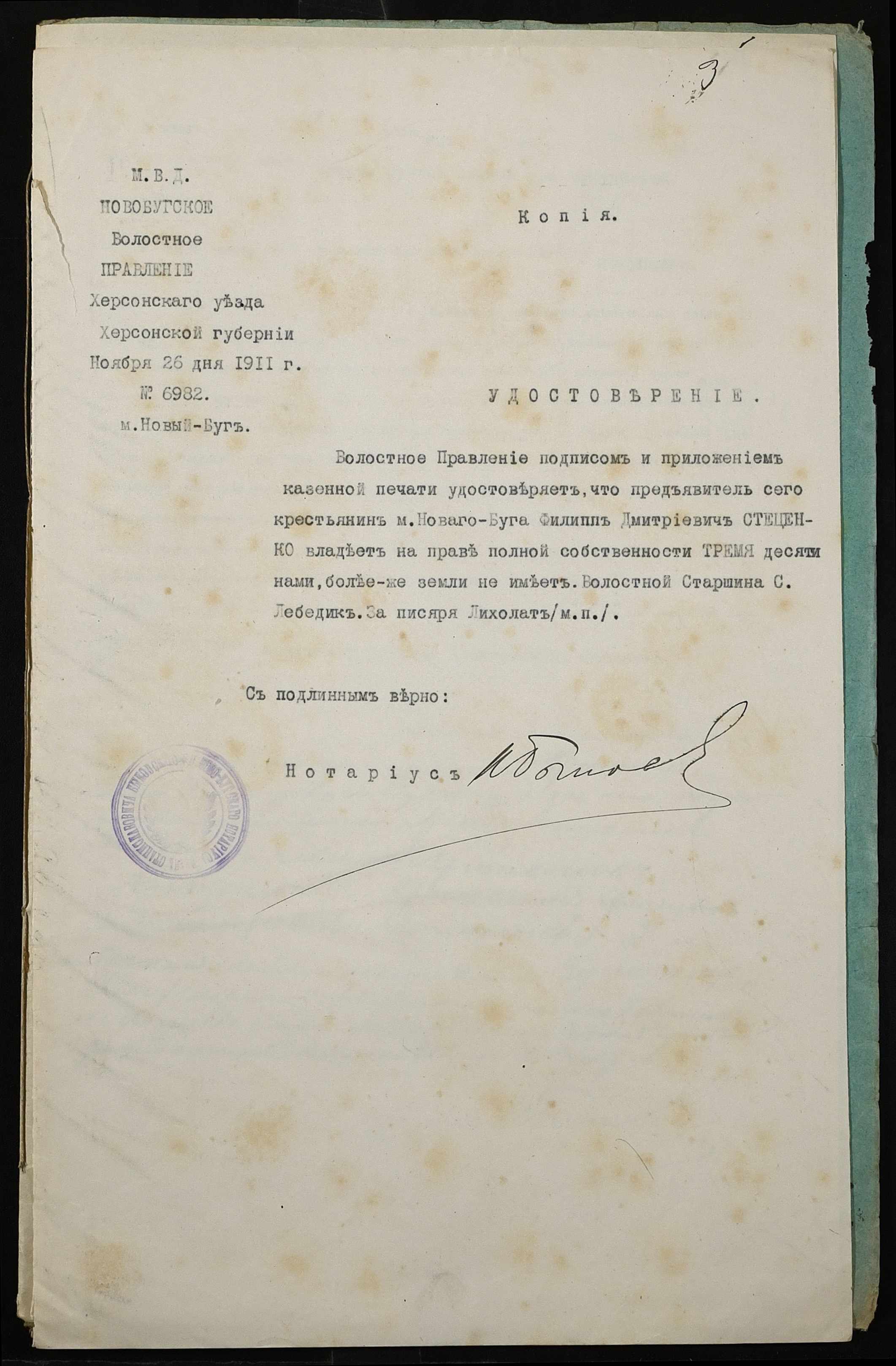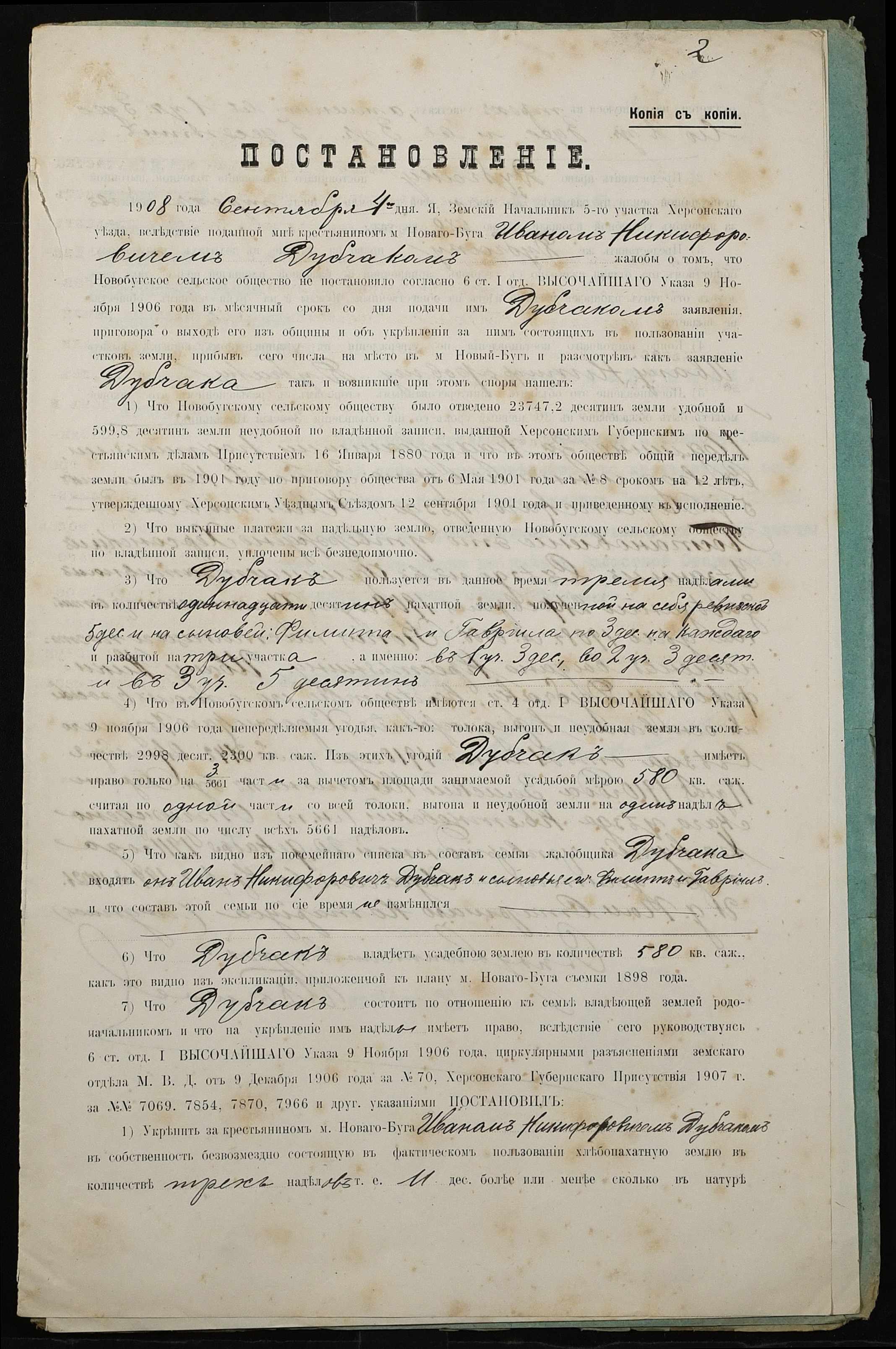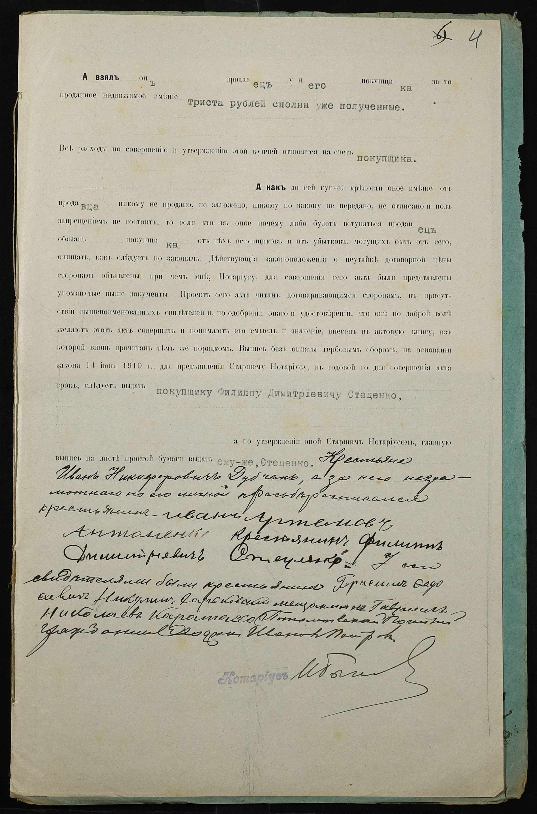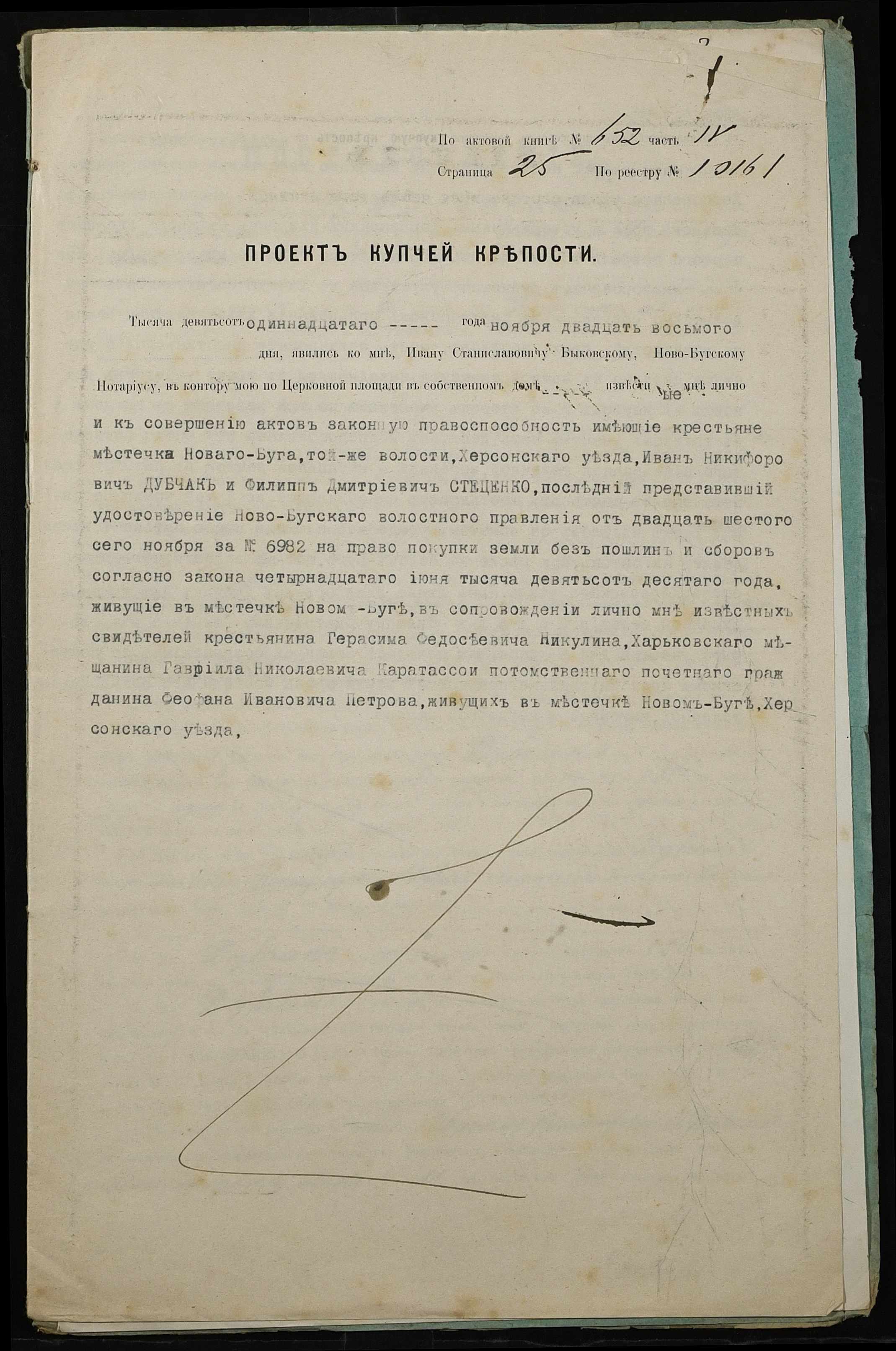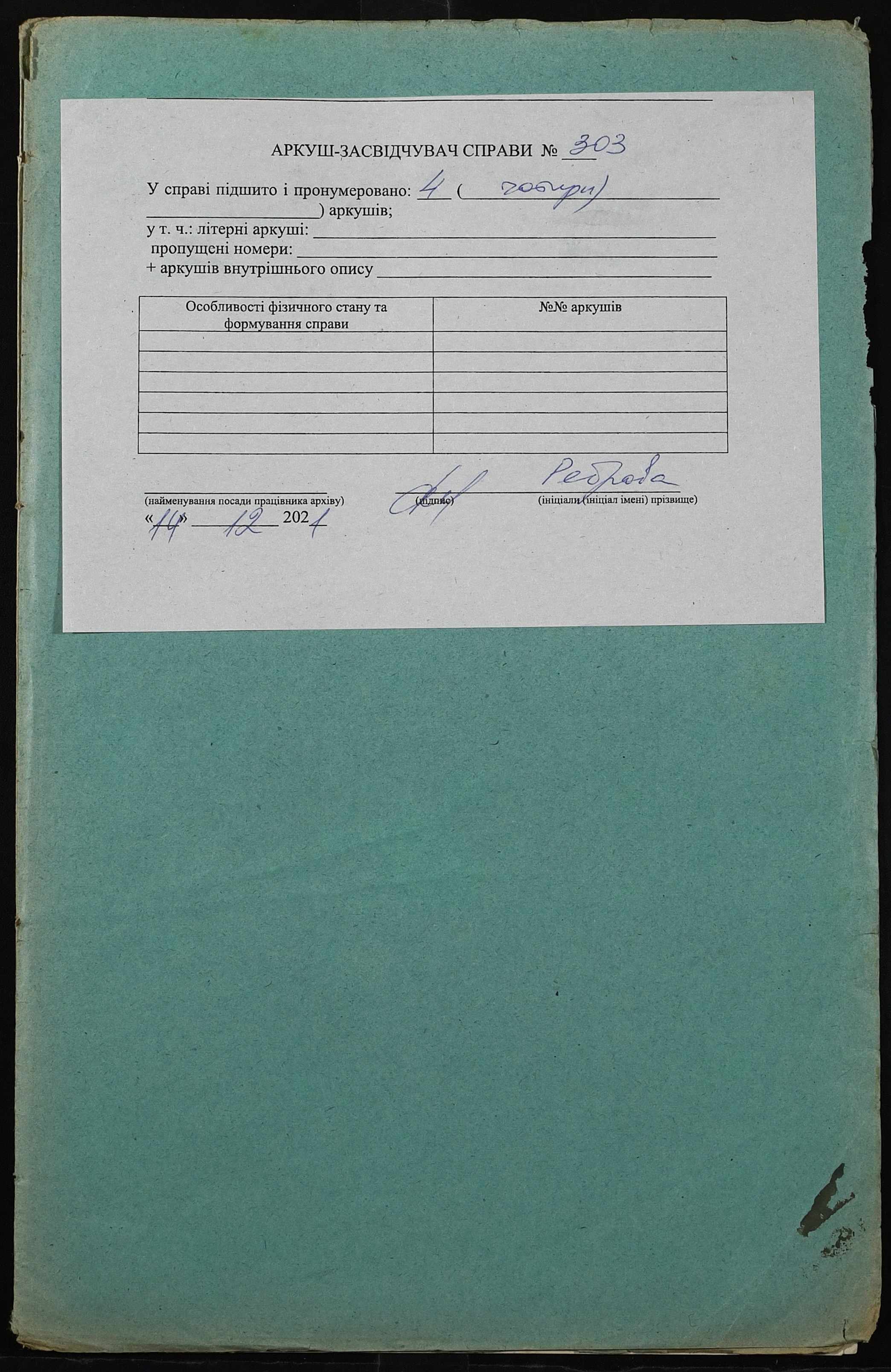 • • • • Справа № 303 “Справа про вчинення купчої про продаж землі селянином Дубчаком Іваном (Иваном) Никифоровичем на користь селянина Стеценка Пилипа Дмитровича (Стеценко Филиппа Дмитриевича)”