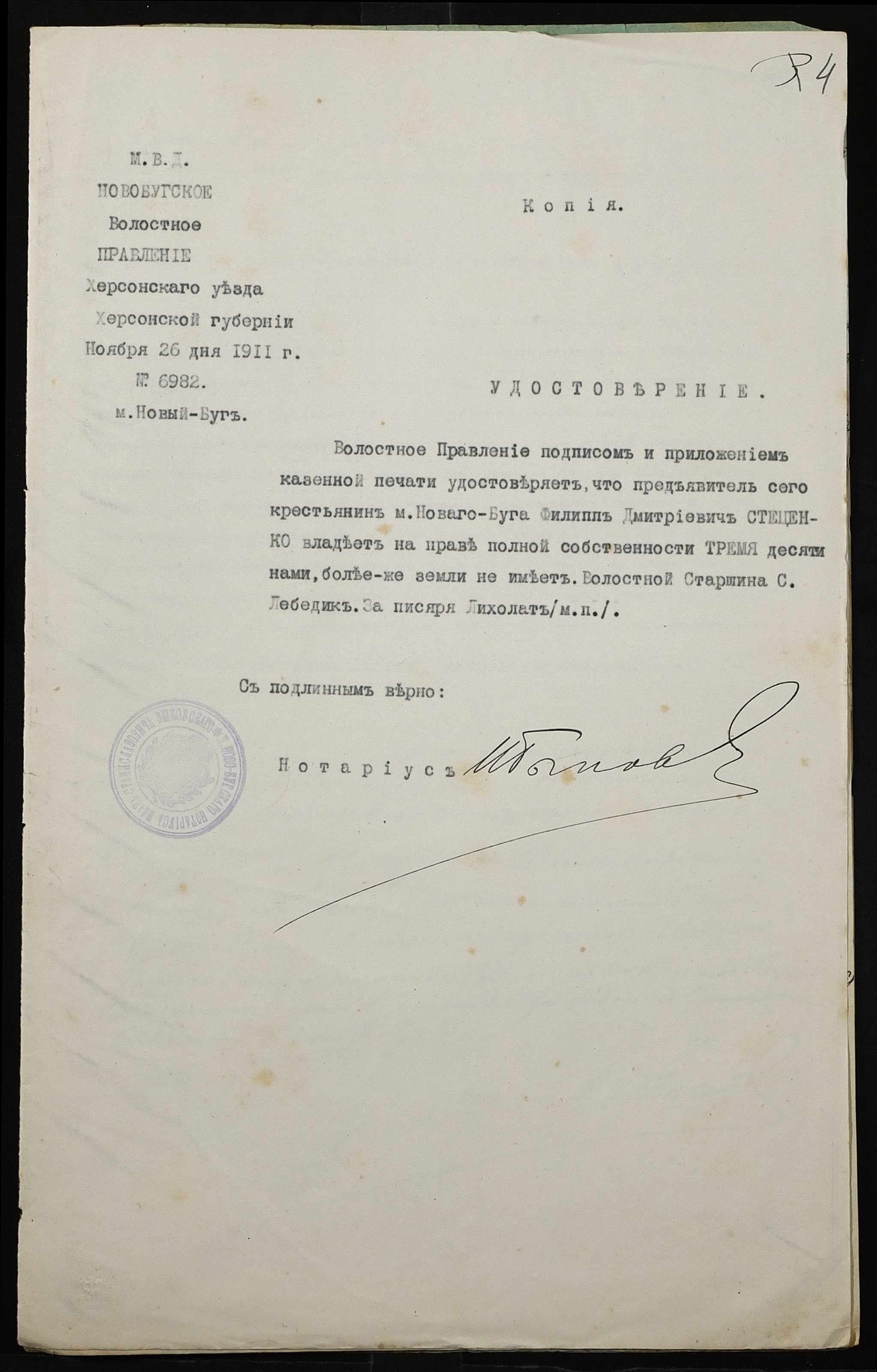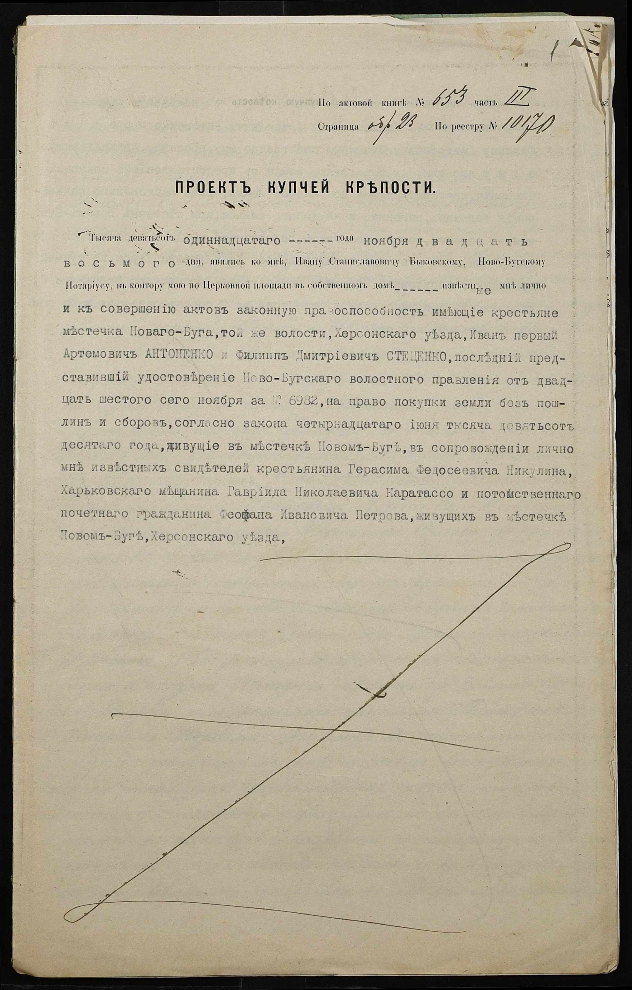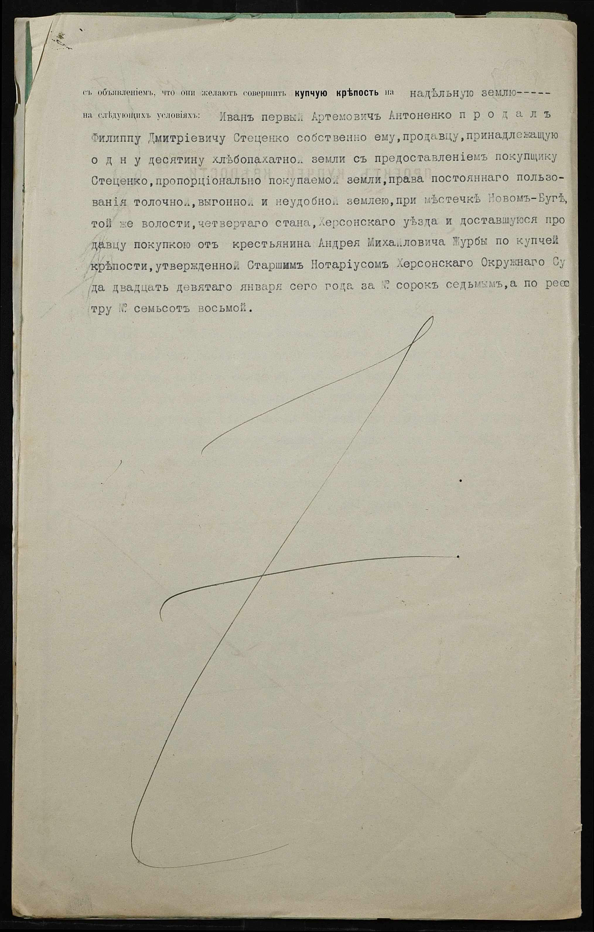 • • • • Справа № 304 “Справа про вчинення купчої про продаж землі селянином Антоненком Іваном (Антоненко Иваном) Артемовичем на користь селянина Стеценка Пилипа Дмитровича (Стеценко Филиппа Дмитриевича)”