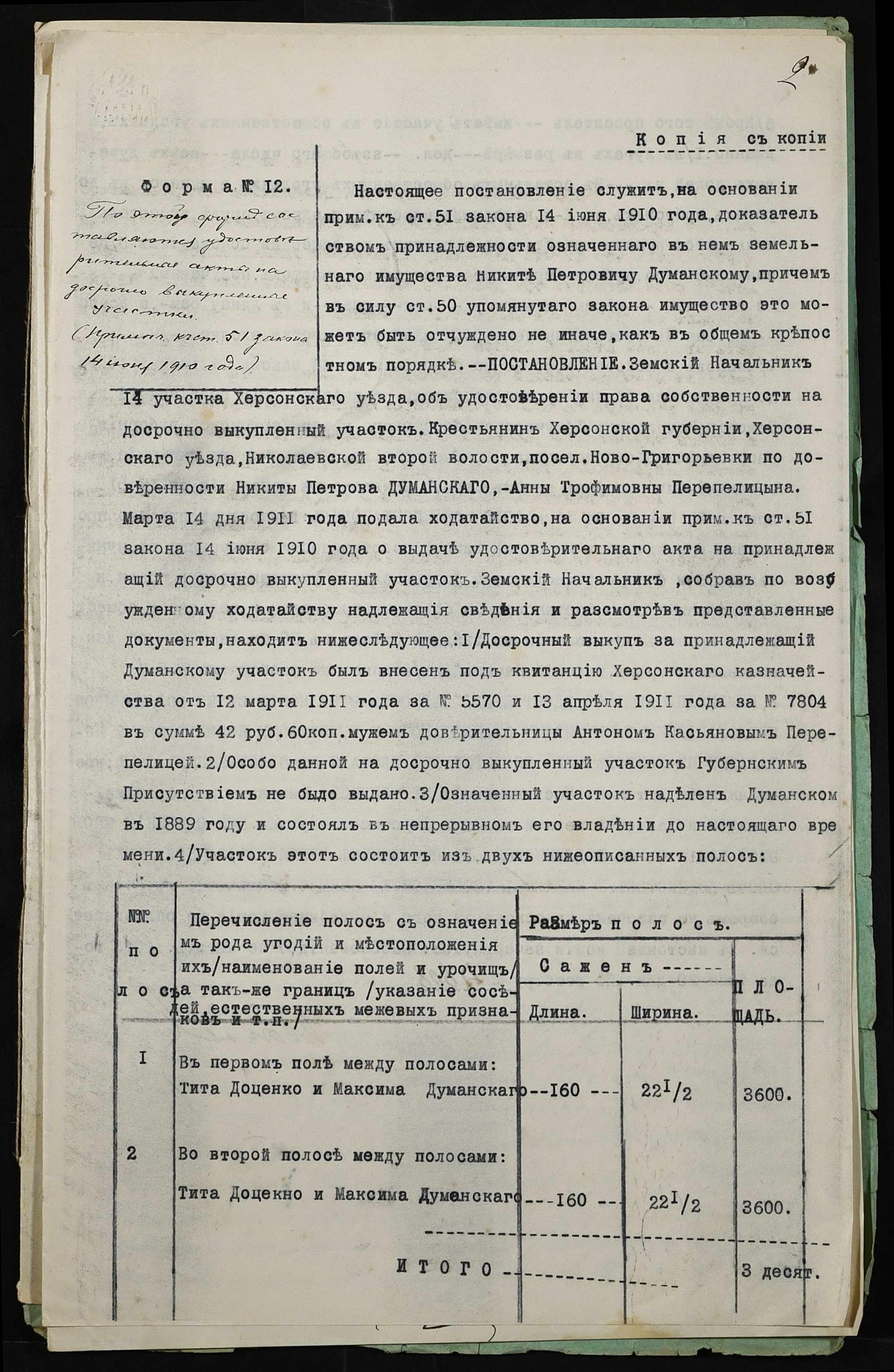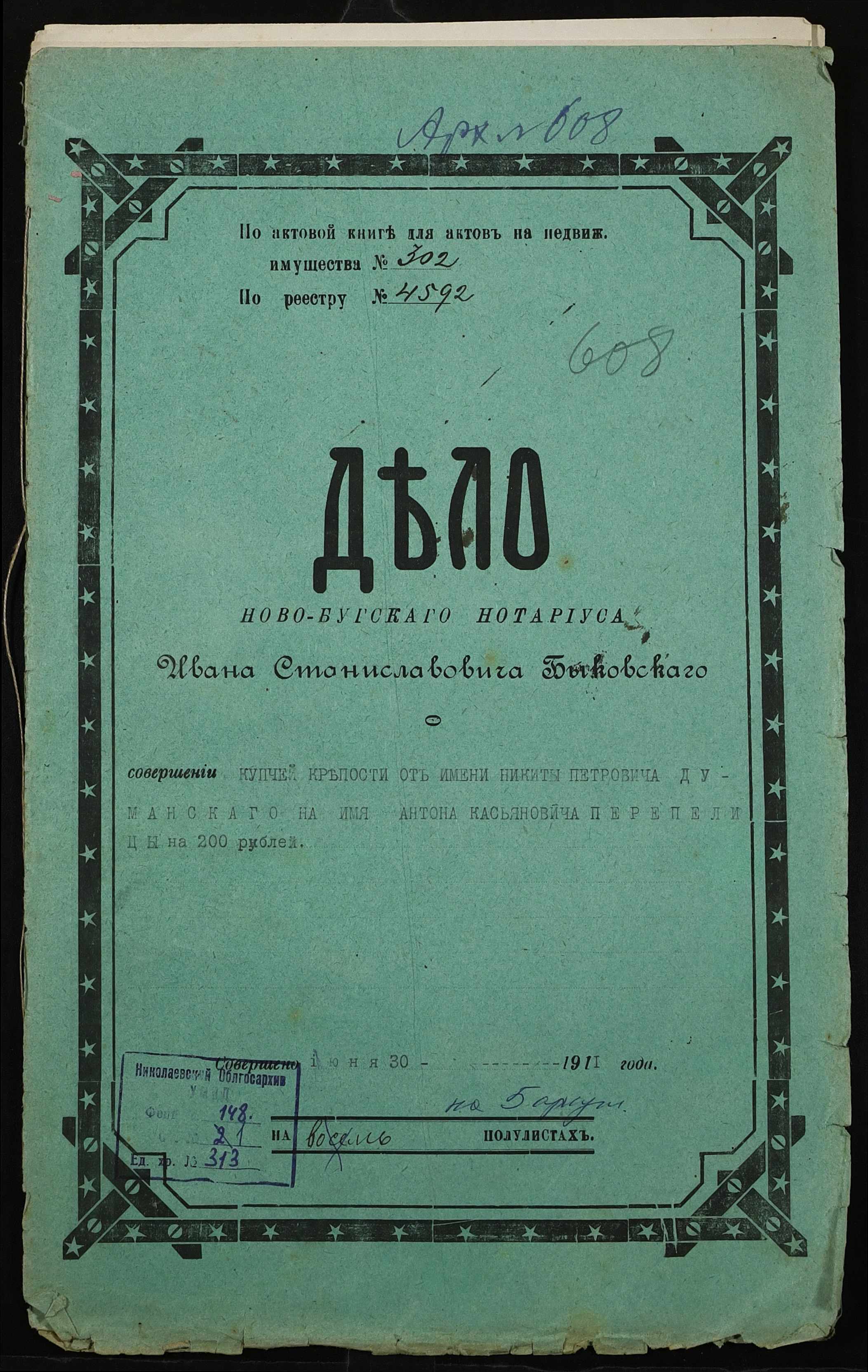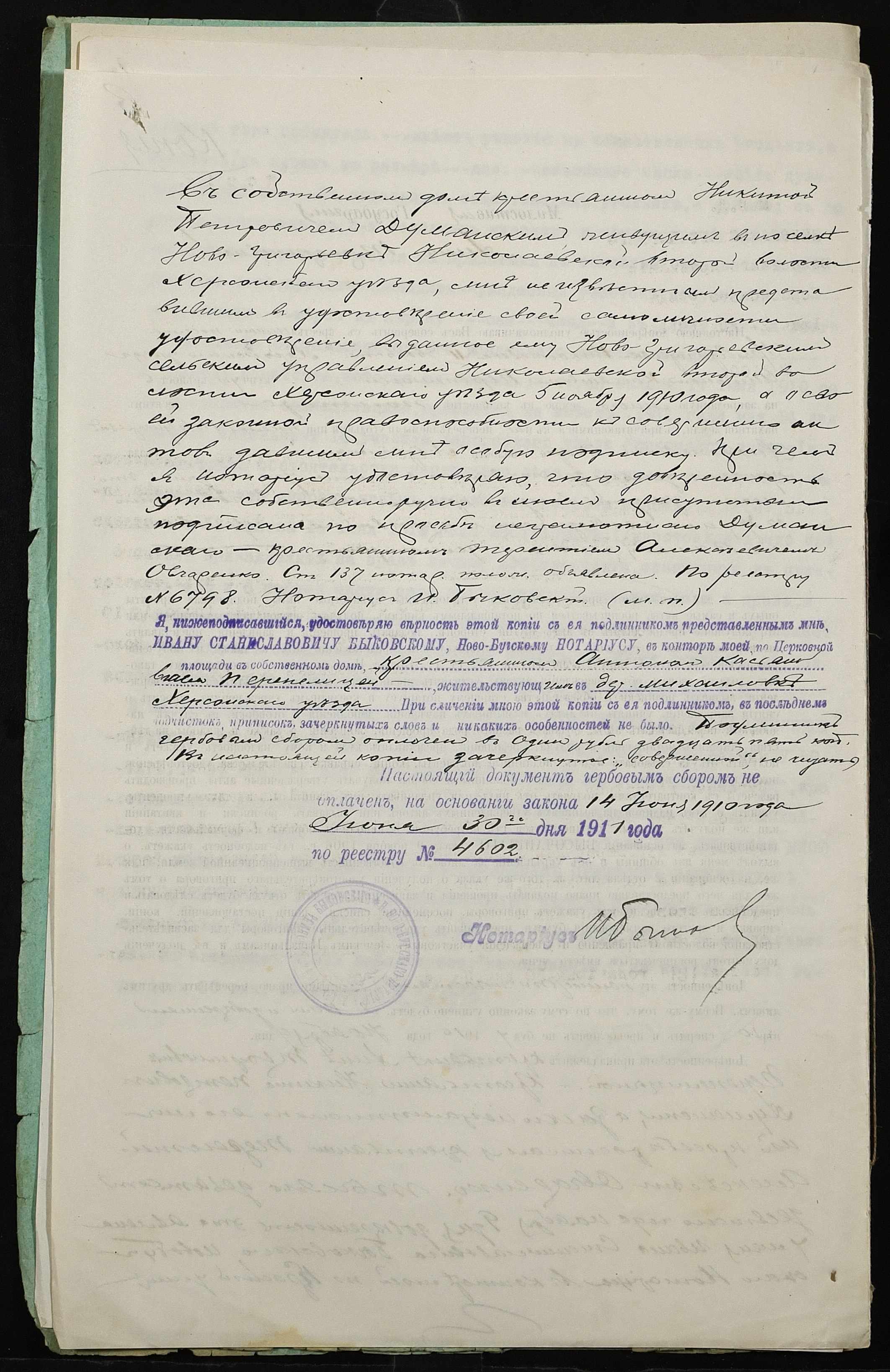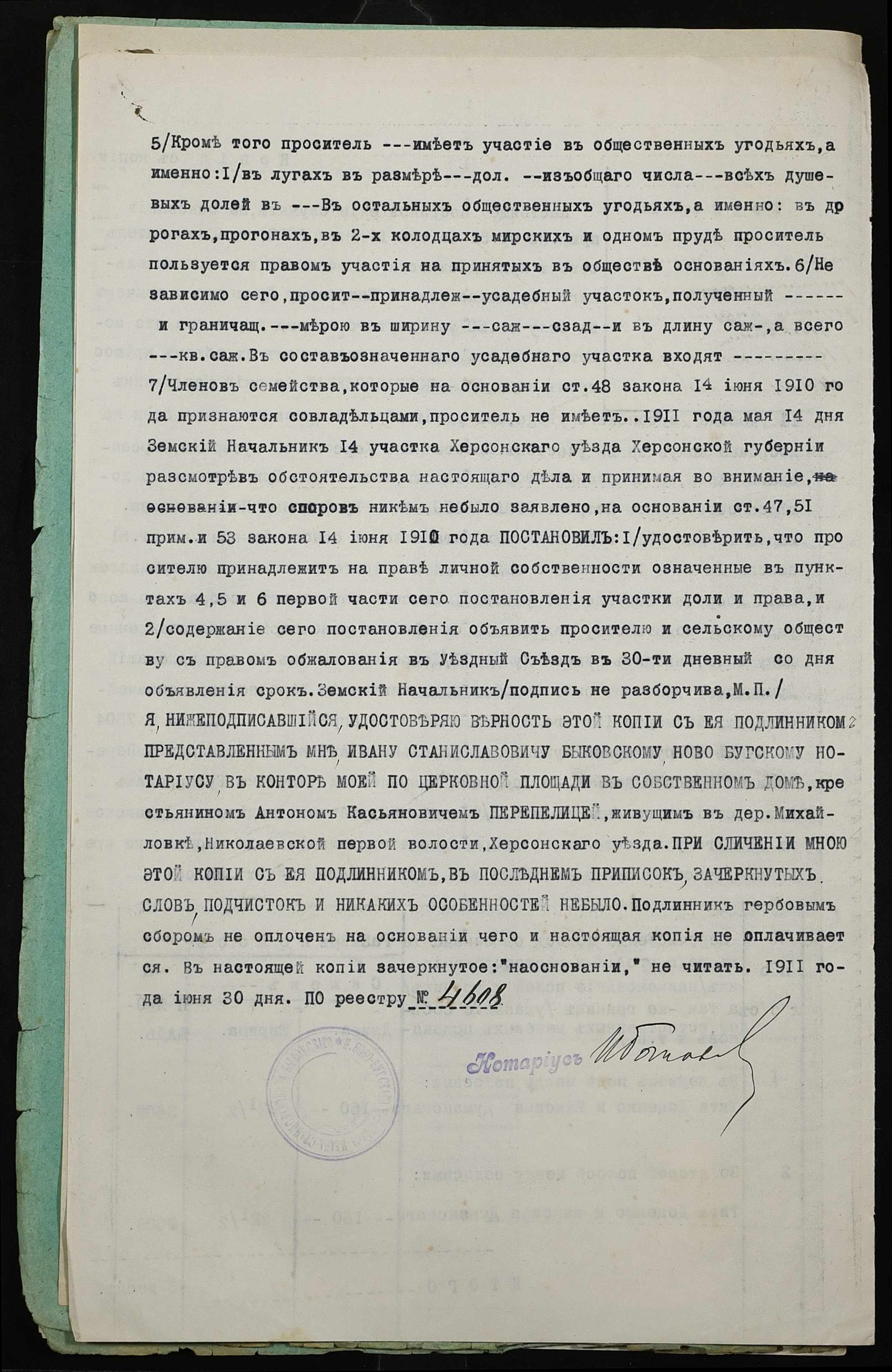 • • • • Справа № 313 “Справа про вчинення купчої про продаж землі селянином Думанським Микитою (Думанским Никитой) Петровичем на користь селянина Перепелиці (Перепелицы) Антона Касьяновича”