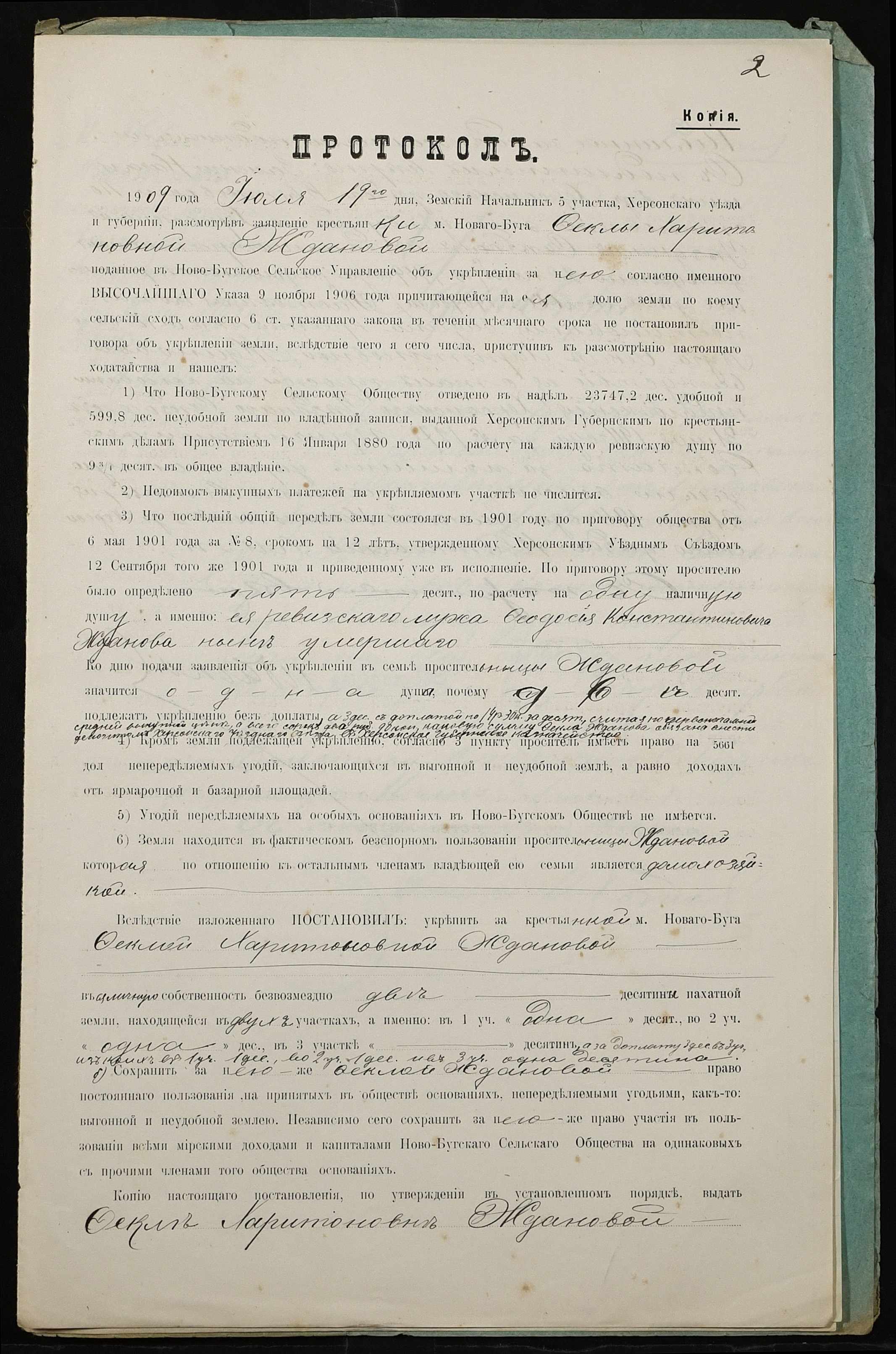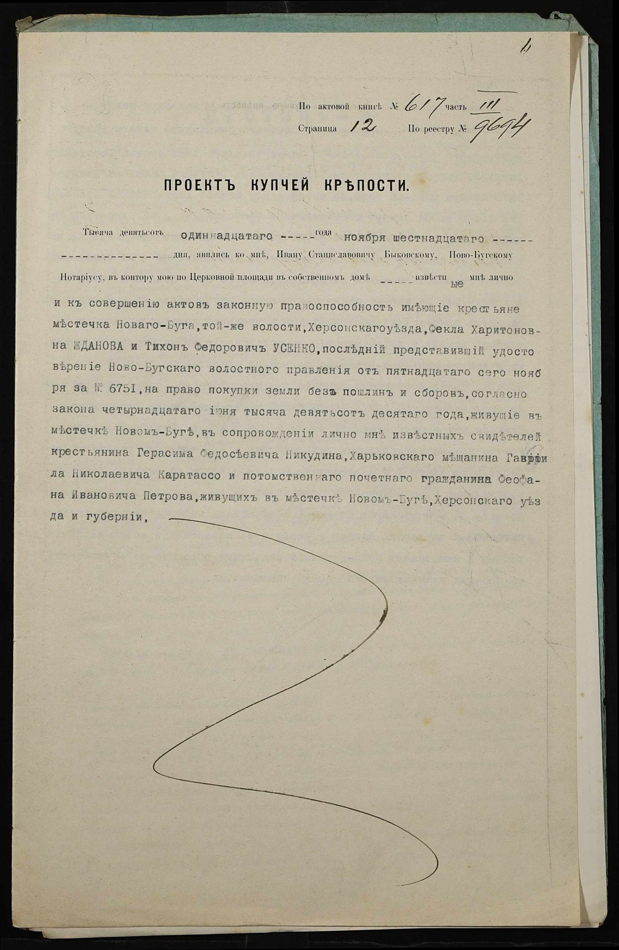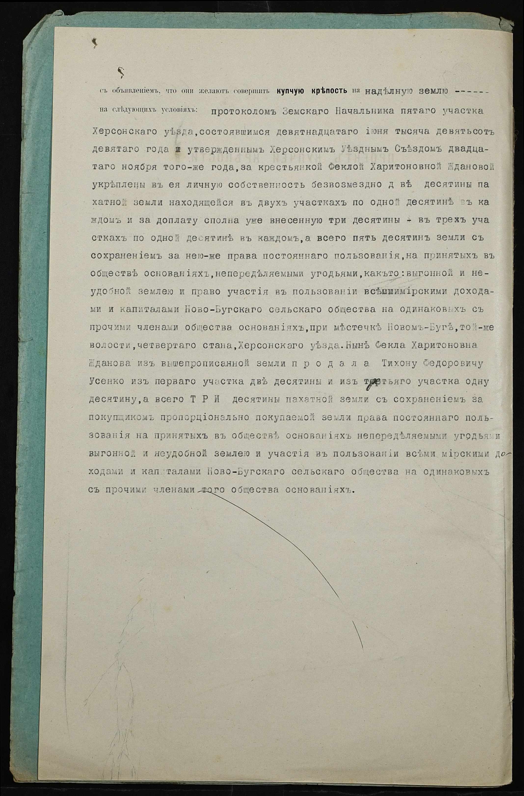 • • • • Справа № 326 “Справа про вчинення купчої про продаж землі селянкою Ждановою Теклею Харитонівною (Ждановой Феклой Харитоновной) на користь селянина Усенка (Усенко) Тихона Федоровича”