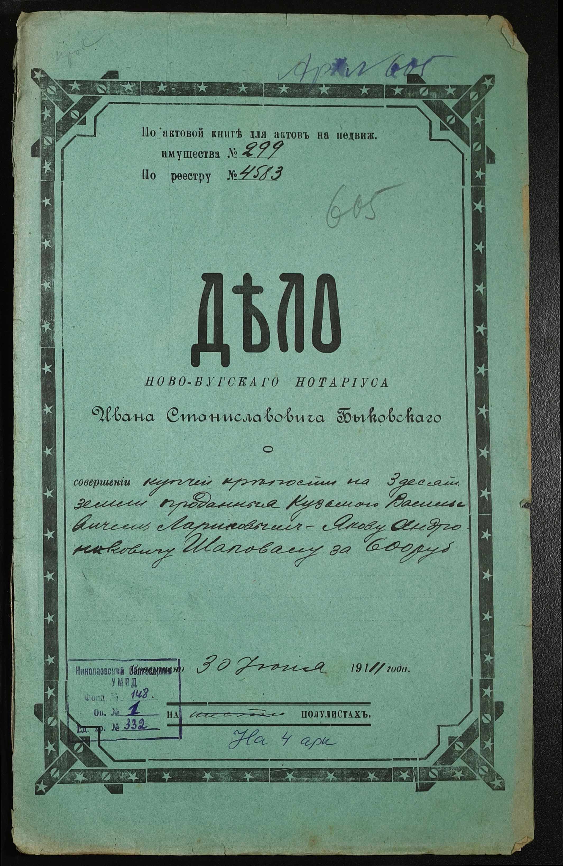 ◦ ◦ Фонд № 148 “Контора новобузького нотаріуса Биковського Івана Станіславовича”