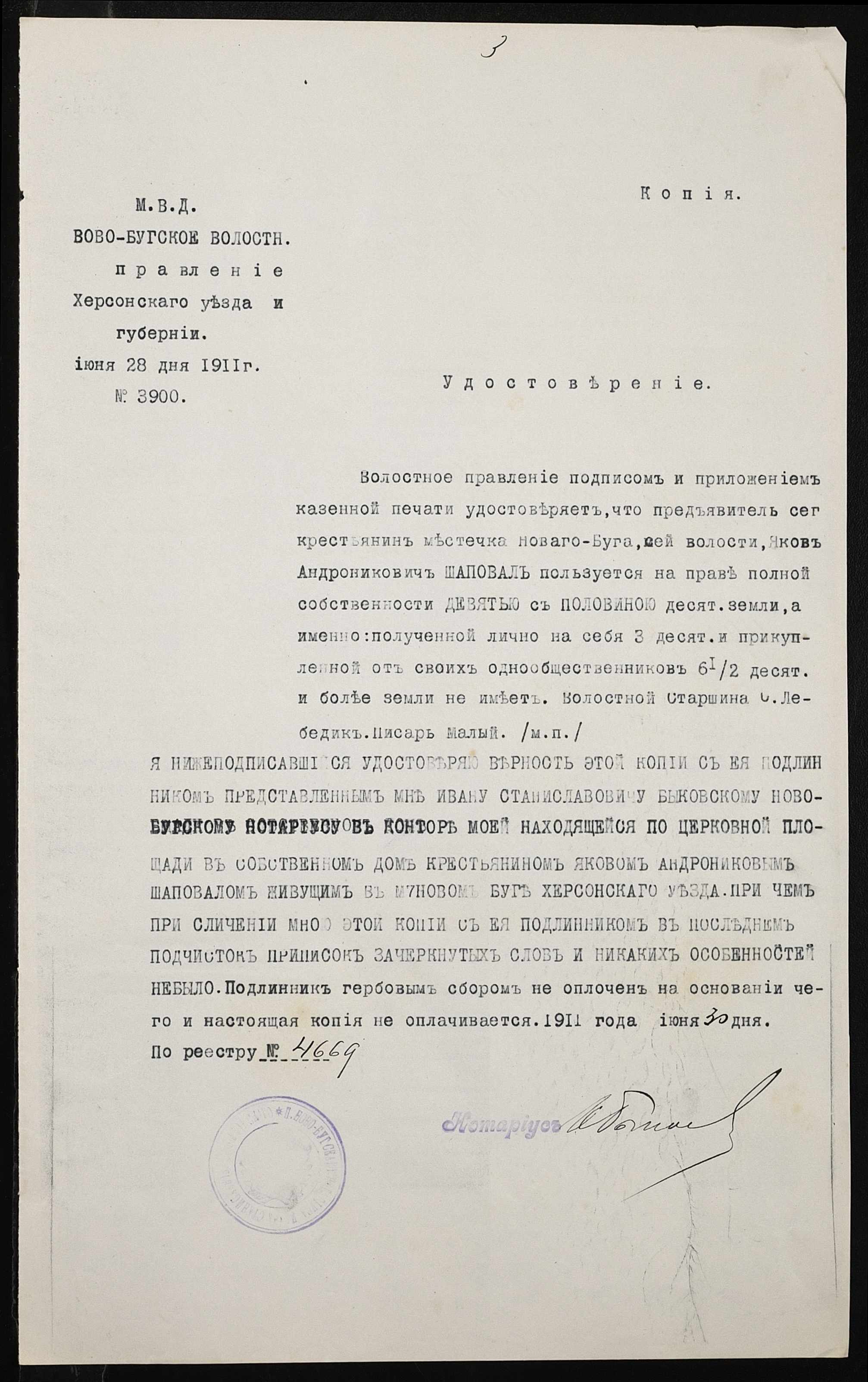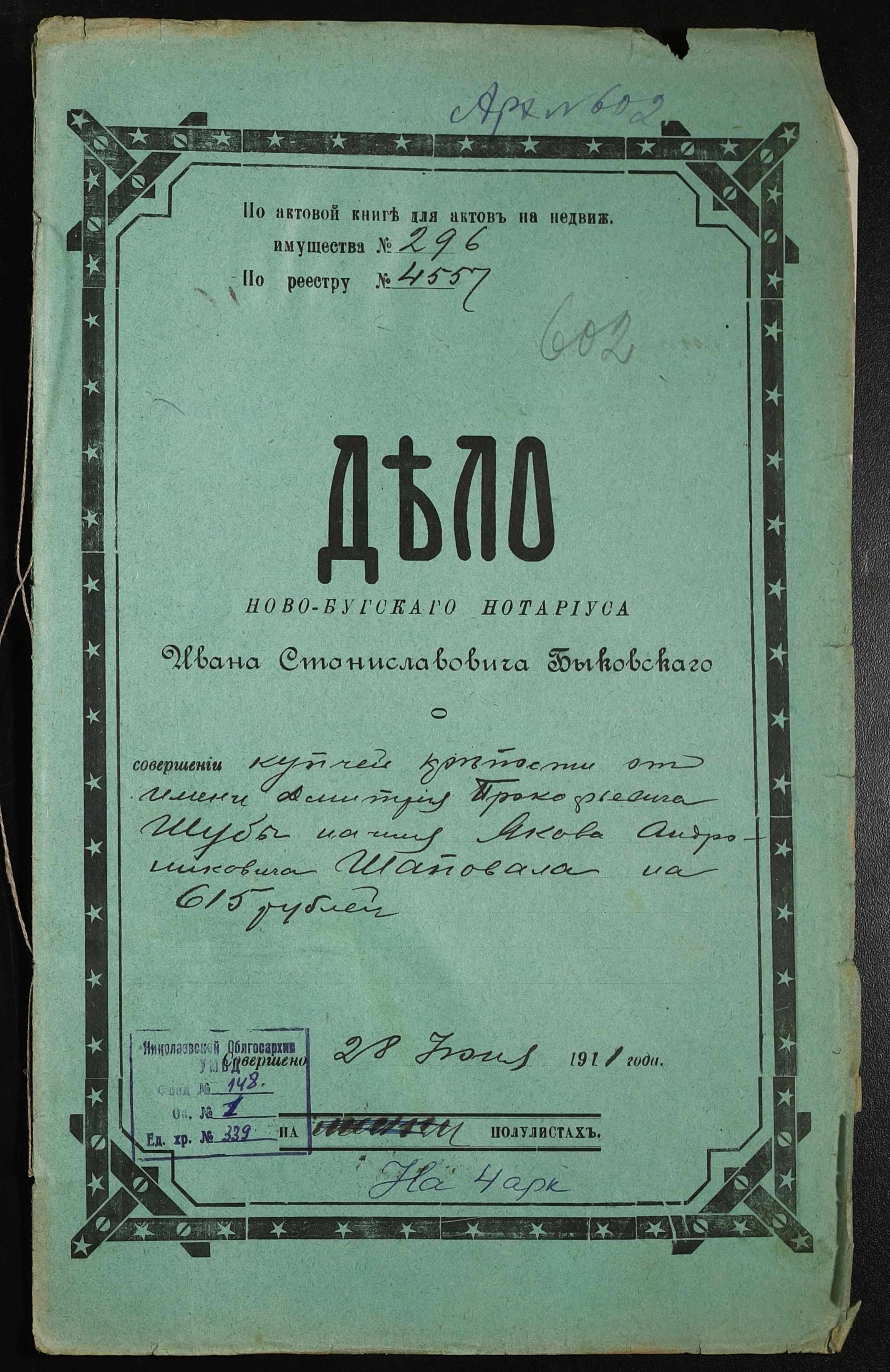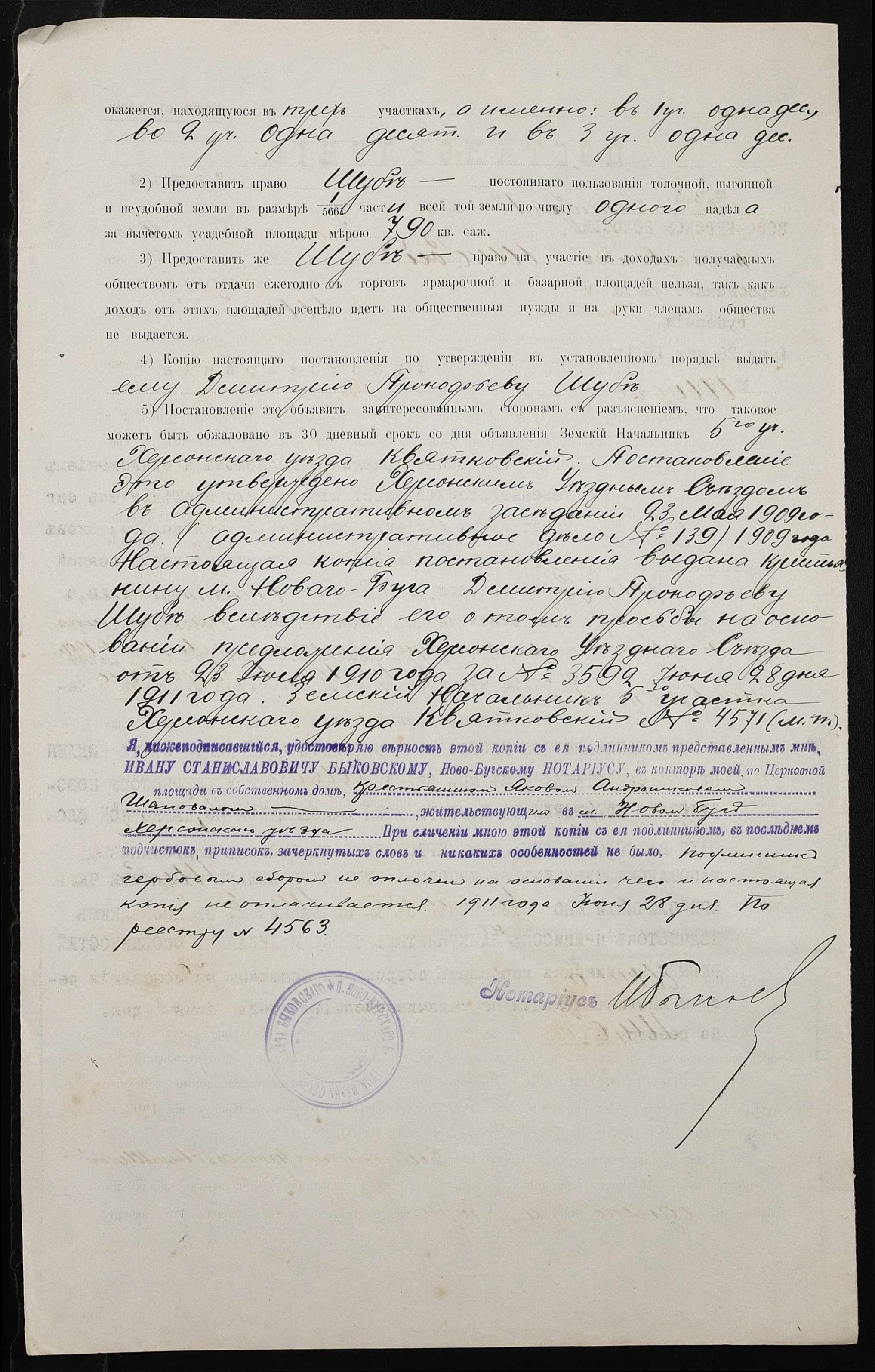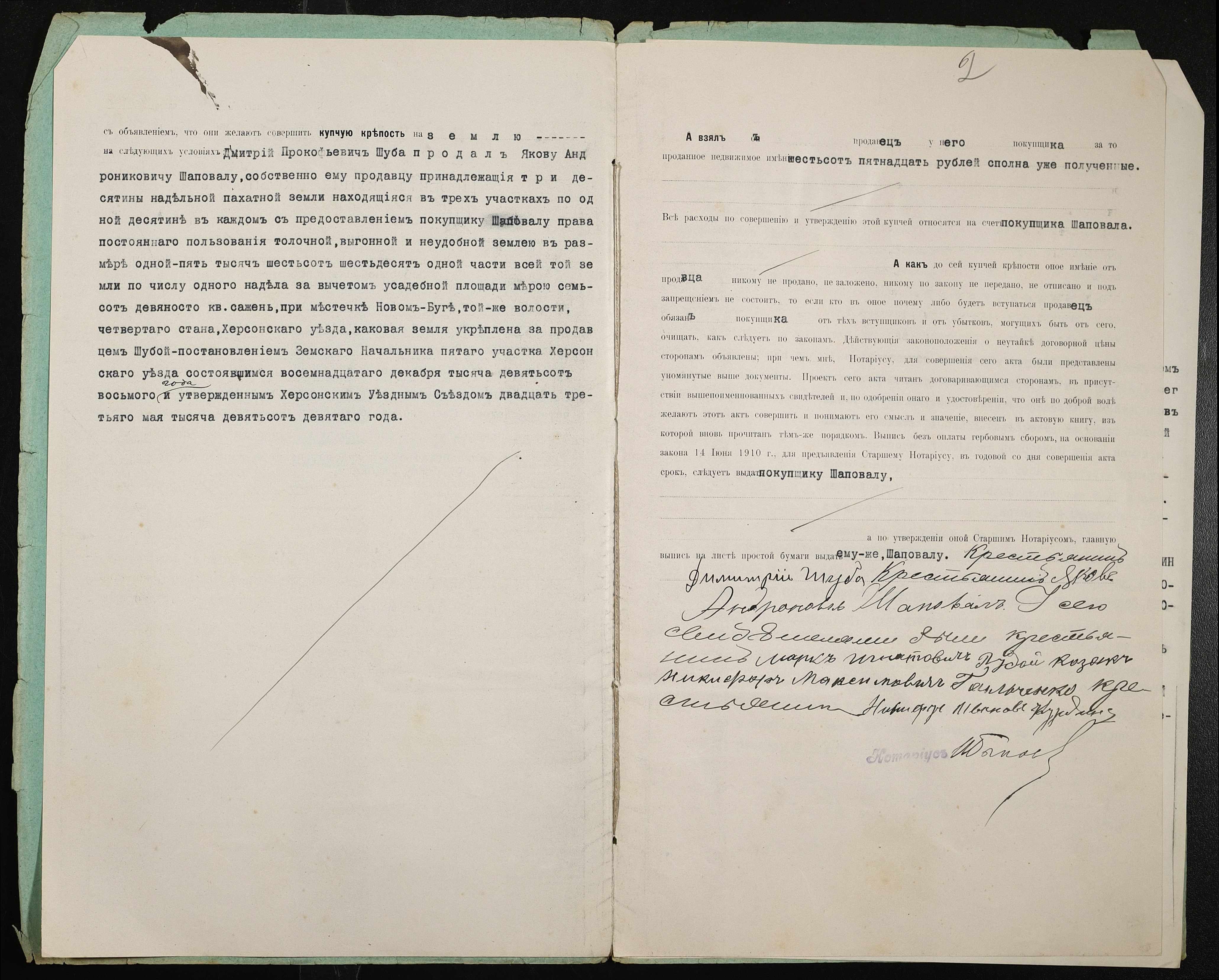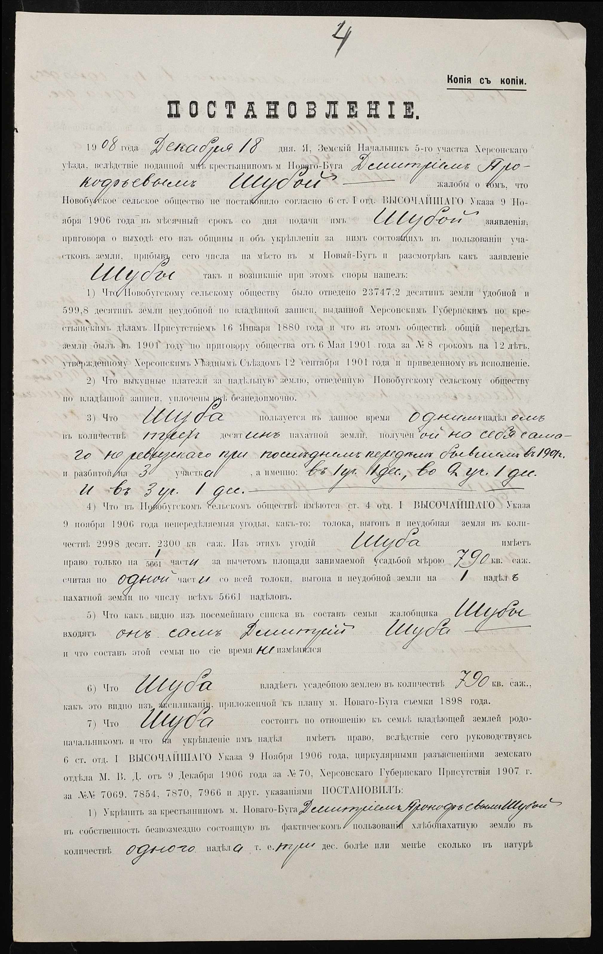 • • • • Справа № 339 “Справа про вчинення купчої про продаж землі селянином Шубою Дмитром Прокоповичем (Шубой Дмитрием Прокофьевичем) на користь селянина Шаповала Якова Андроновича”