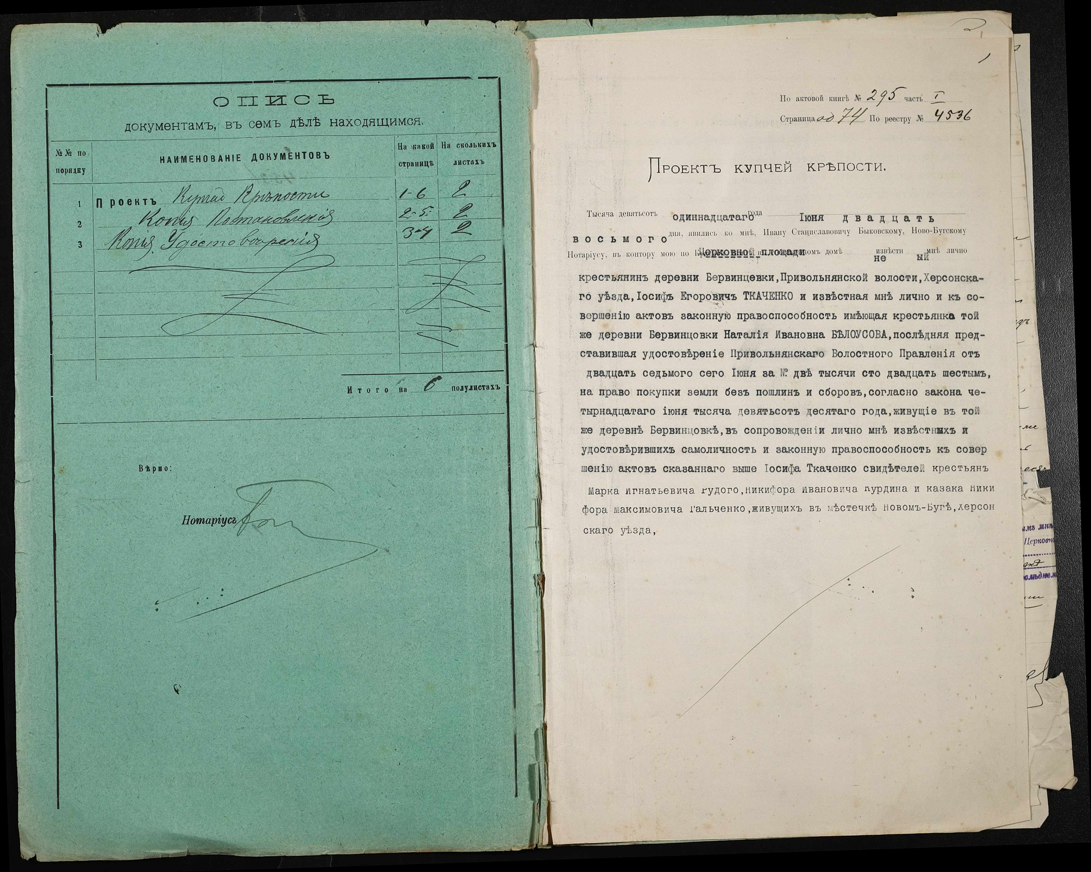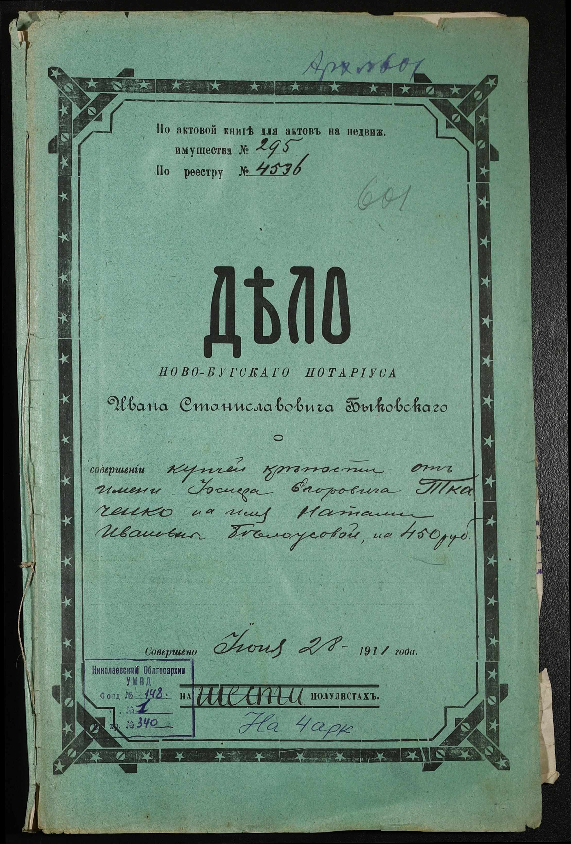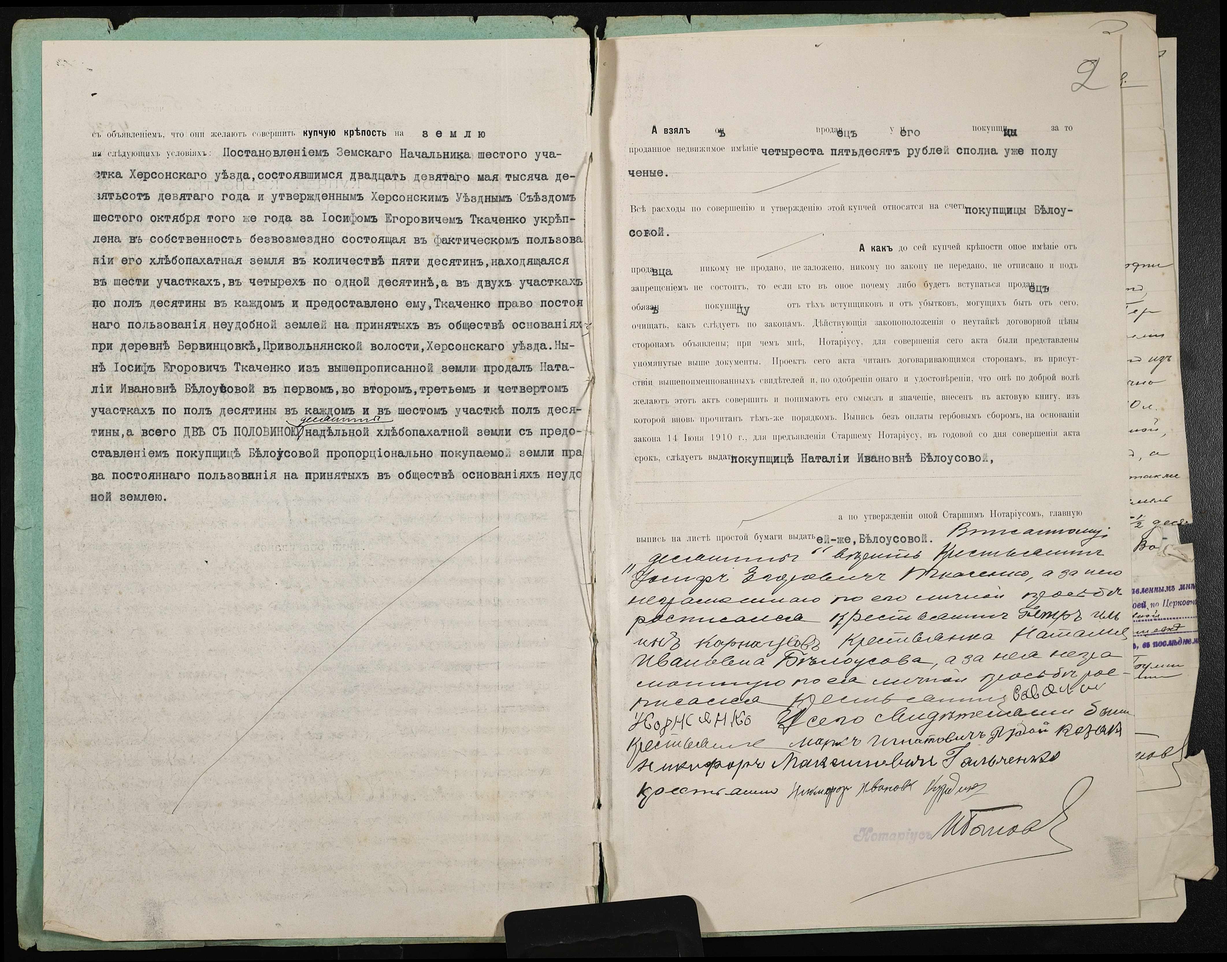 • • • • Справа № 340 “Справа про вчинення купчої про продаж землі селянином Ткаченком Йосипом Єгоровичем (Ткаченко Иосифом Егоровичем) на користь селянки Бєлоусової Наталії Іванівни (Белоусовой Наталии Ивановны)”