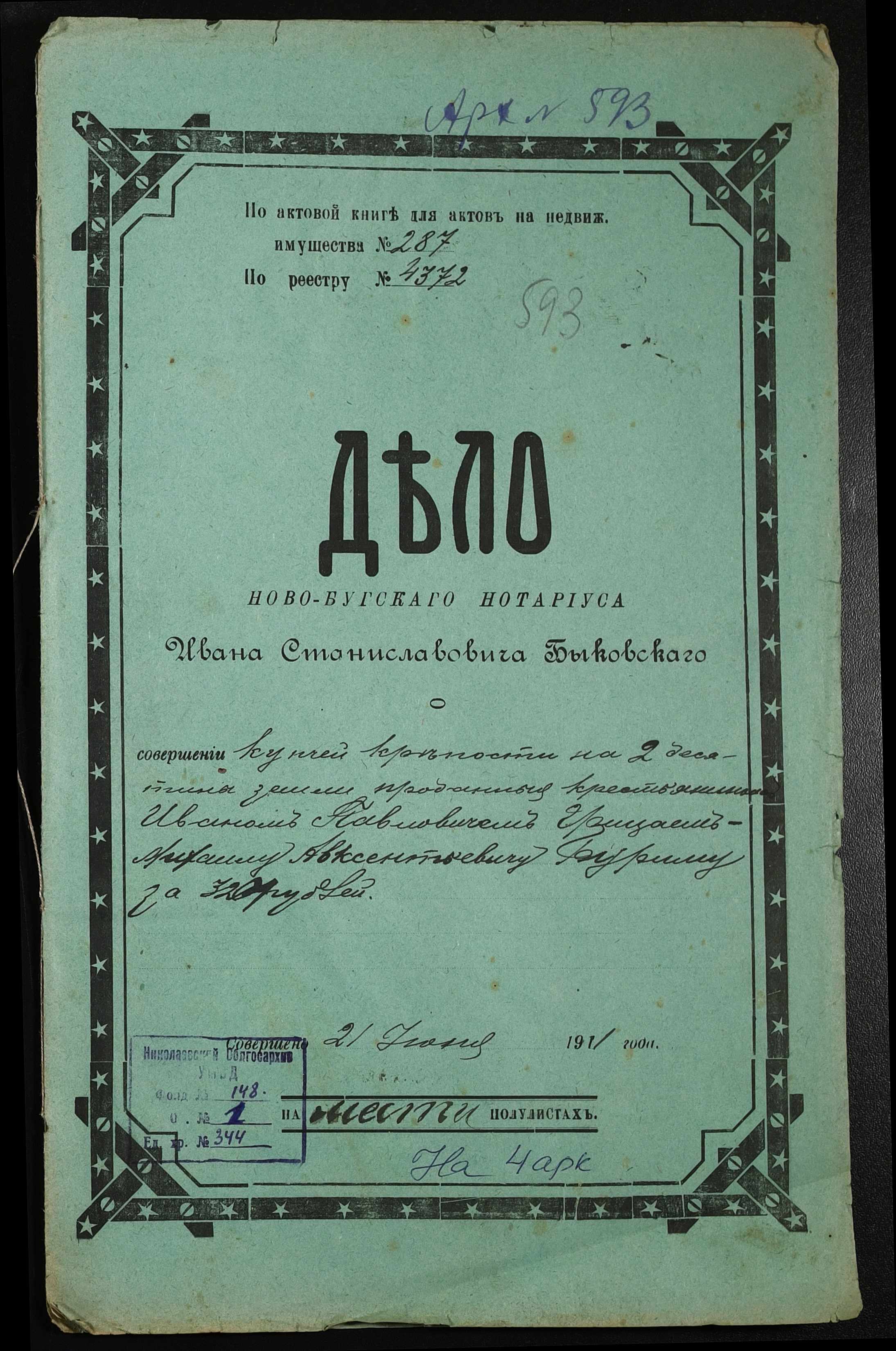 ◦ ◦ Фонд № 148 “Контора новобузького нотаріуса Биковського Івана Станіславовича”