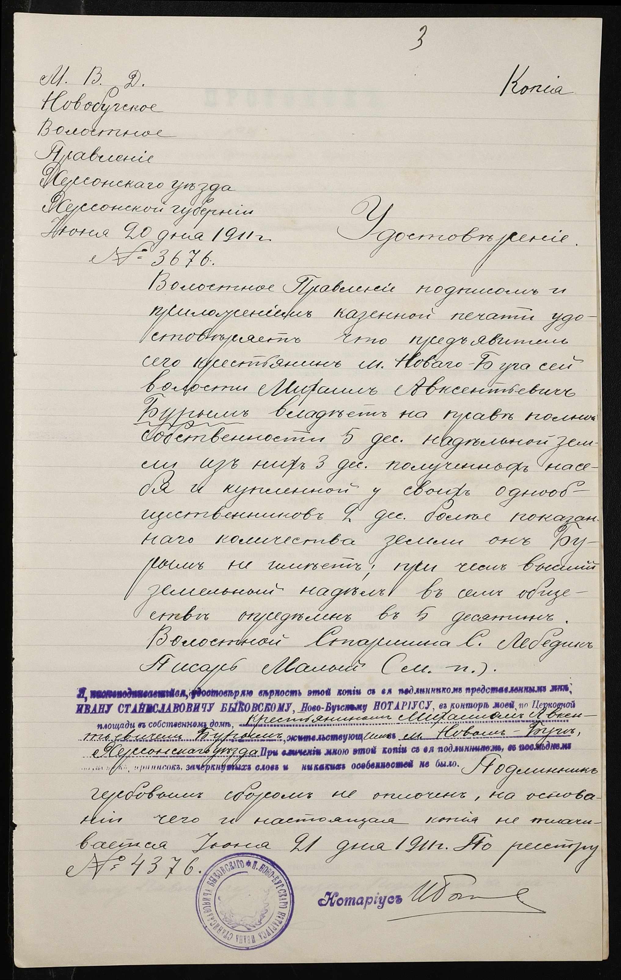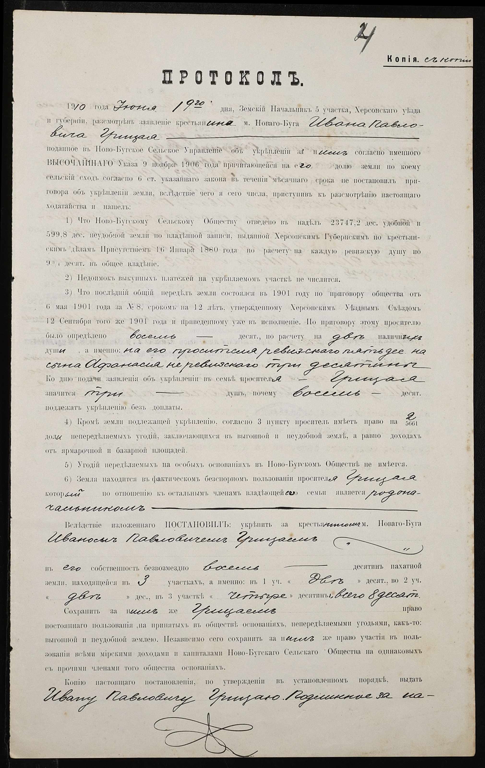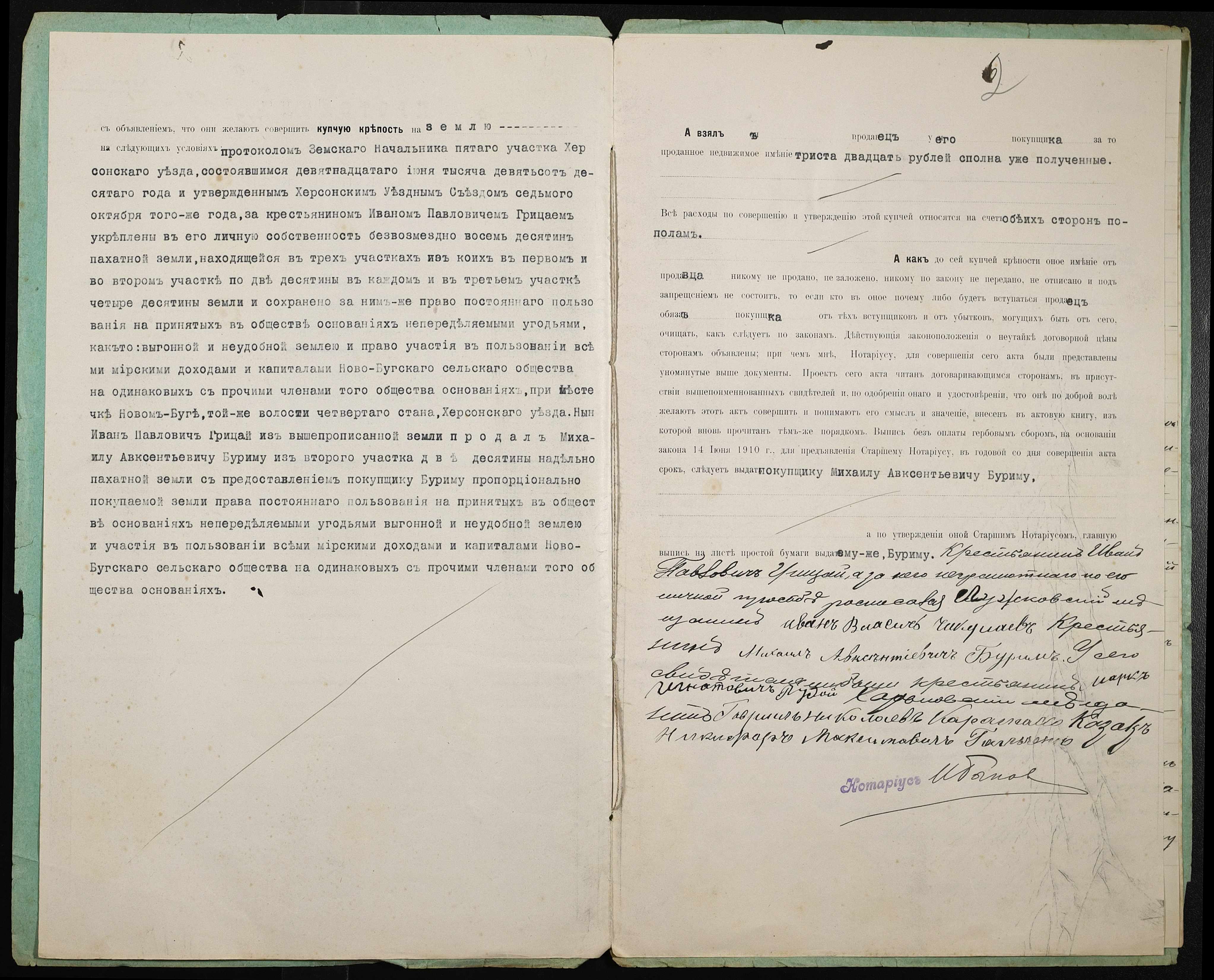 • • • • Справа № 344 “Справа про вчинення купчої про продаж землі селянином Грицаєм Іваном (Грицаем Иваном) Павловичем на користь селянина Бурима Михайла Овксентійовича (Михаила Авксентьевича)”