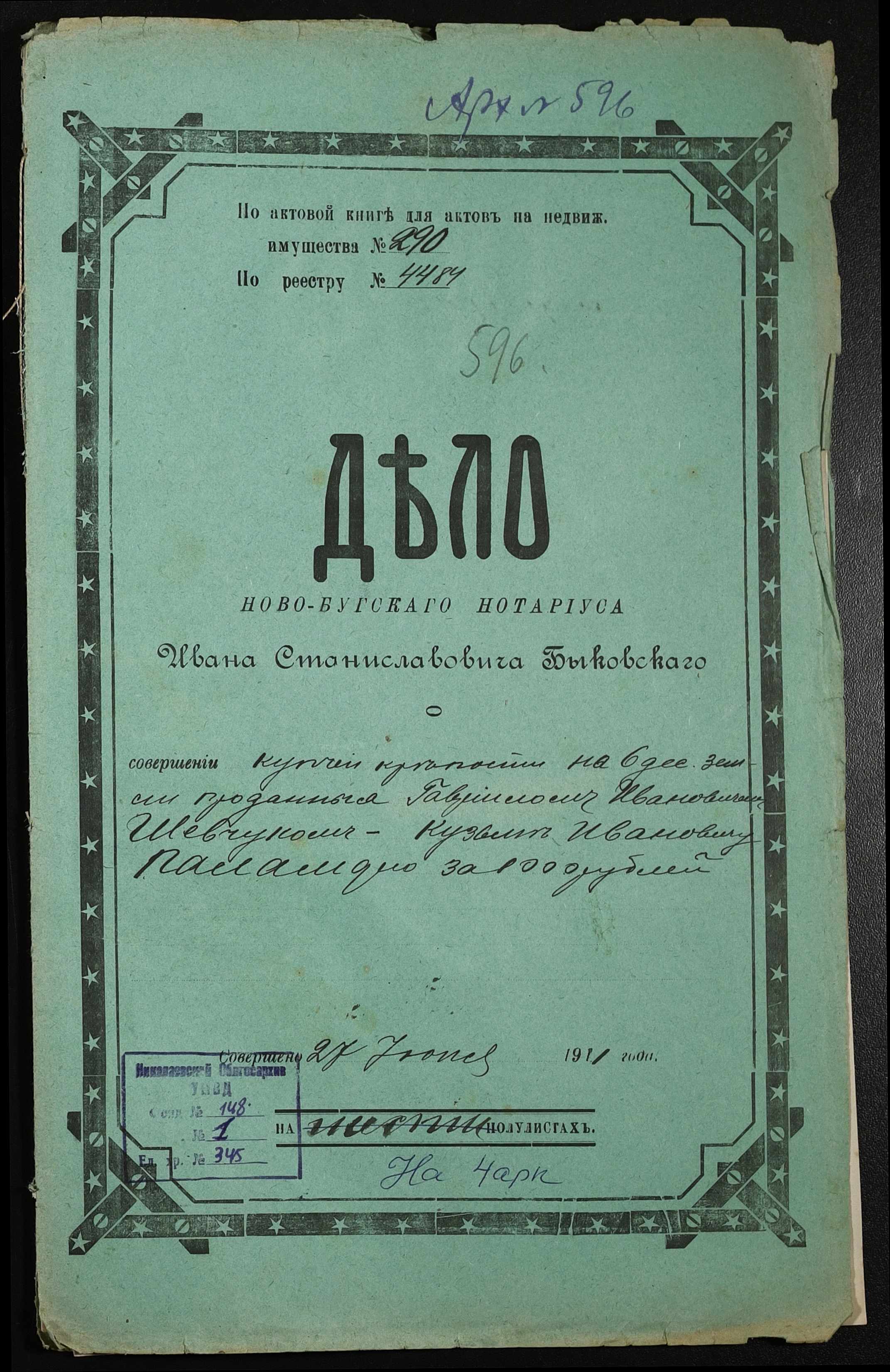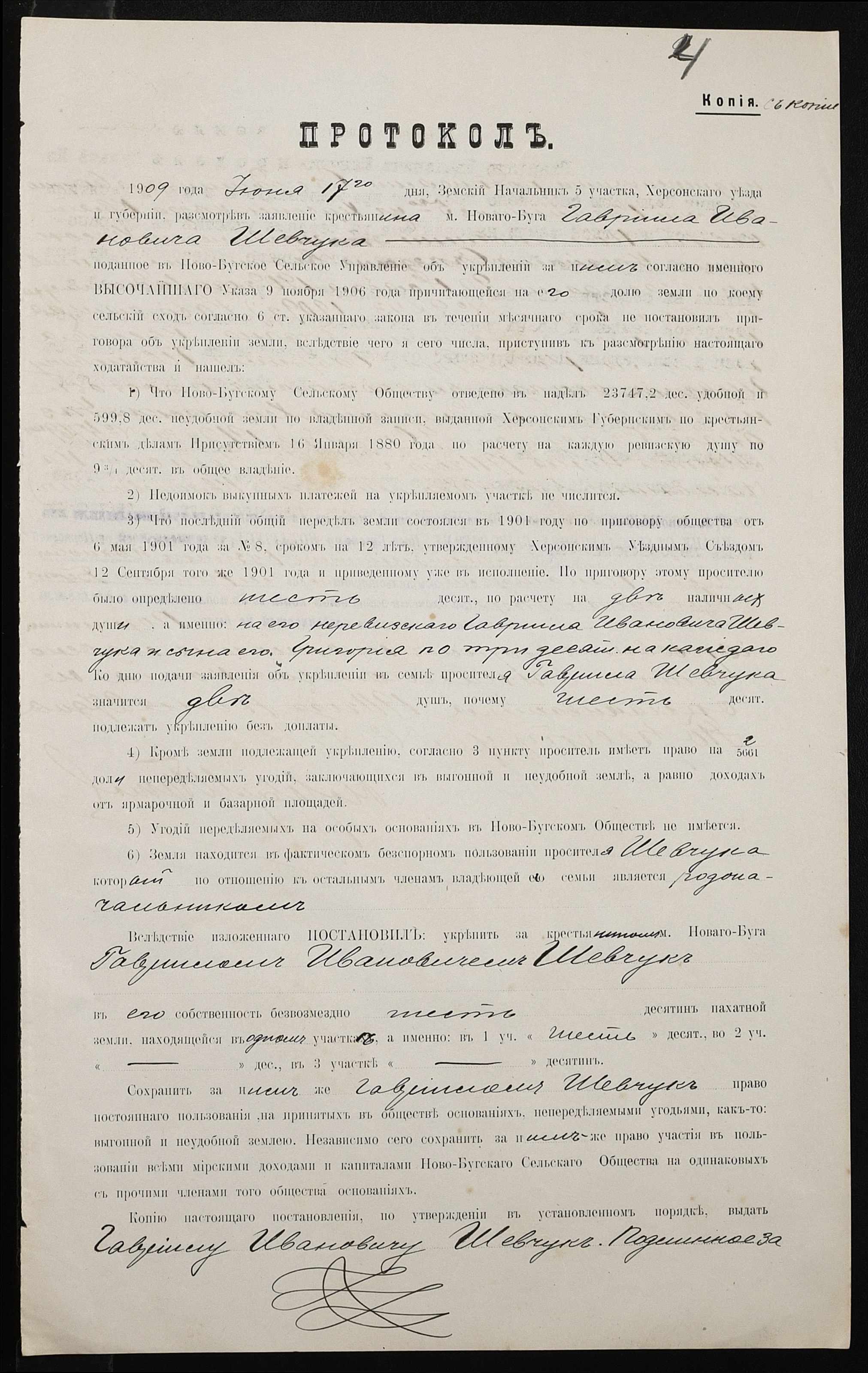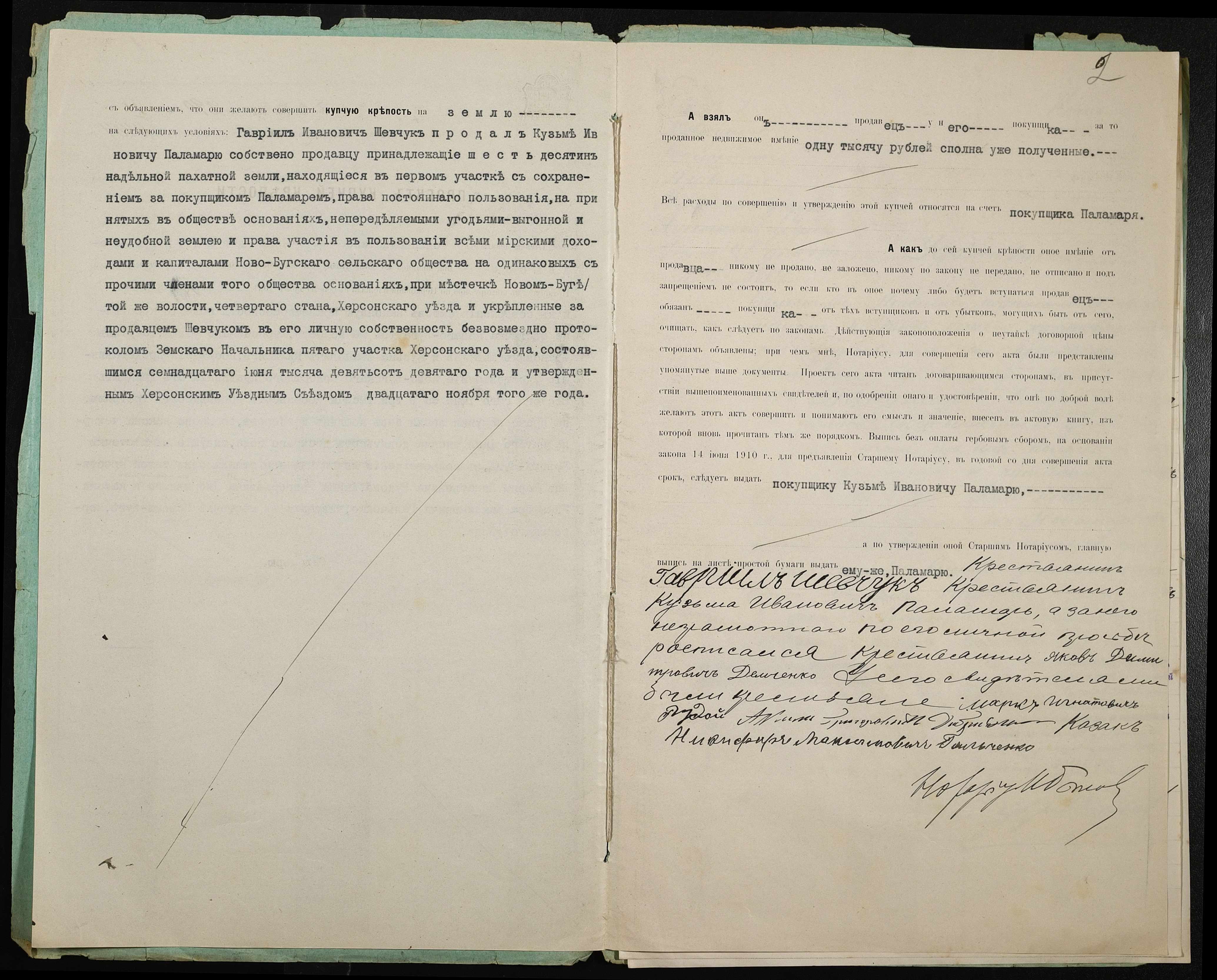 • • • • Справа № 345 “Справа про вчинення купчої про продаж землі селянином Шевчуком Гаврилом Івановичем (Гавриилом Ивановичем) на користь селянина Паламаря Кузьми Івановича (Кузьмы Ивановича)”