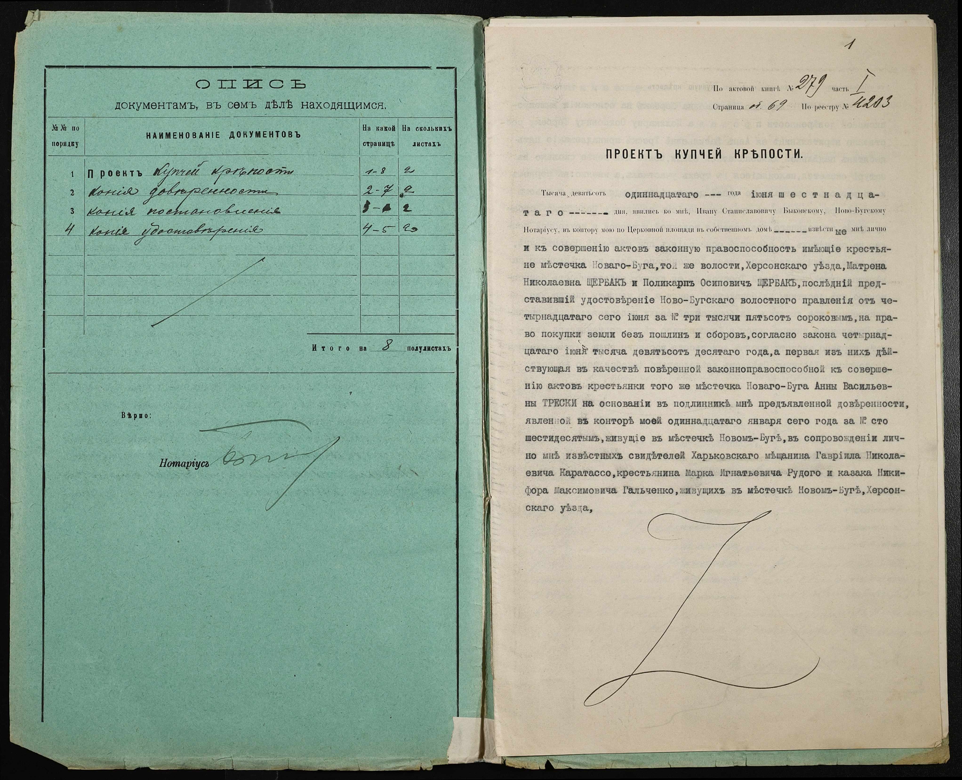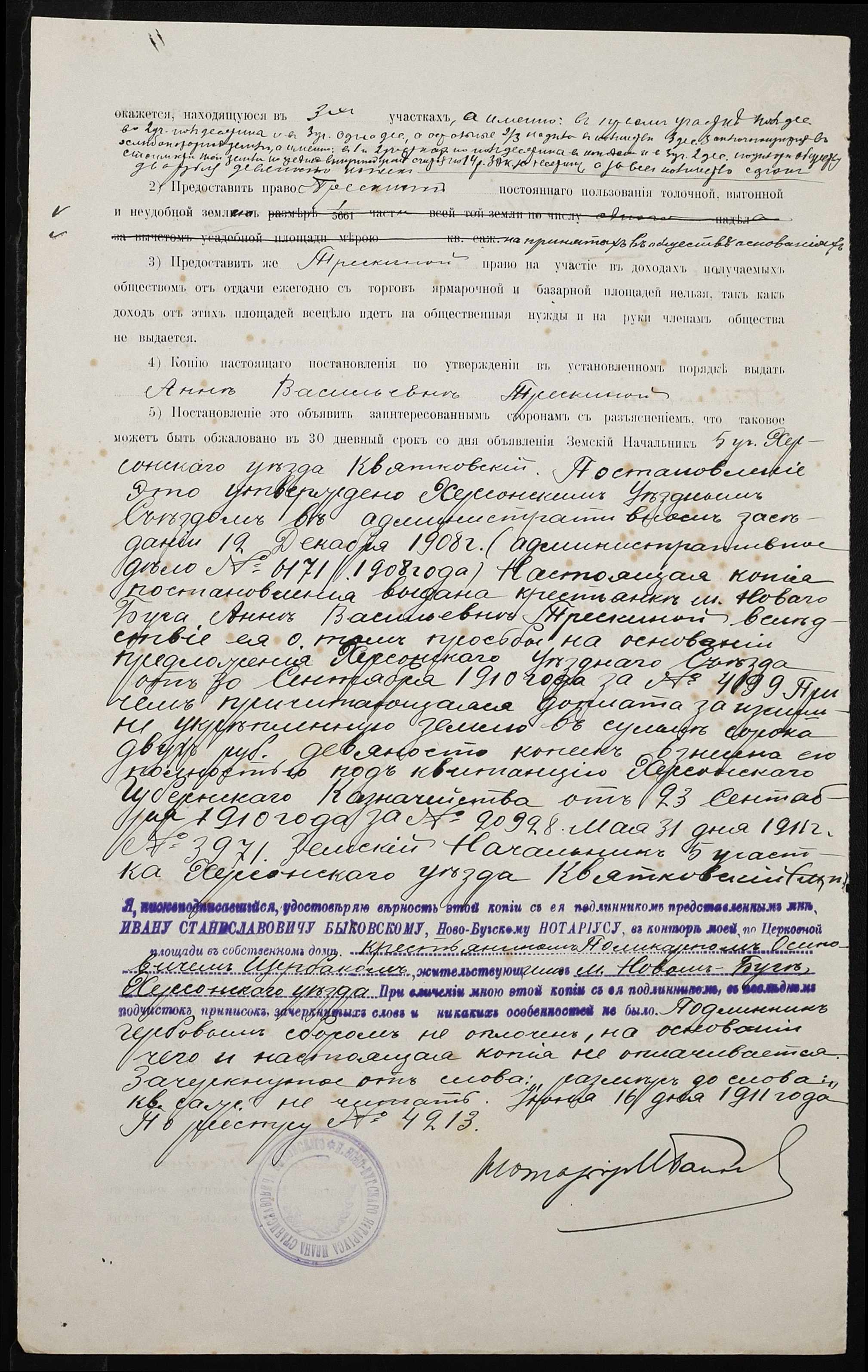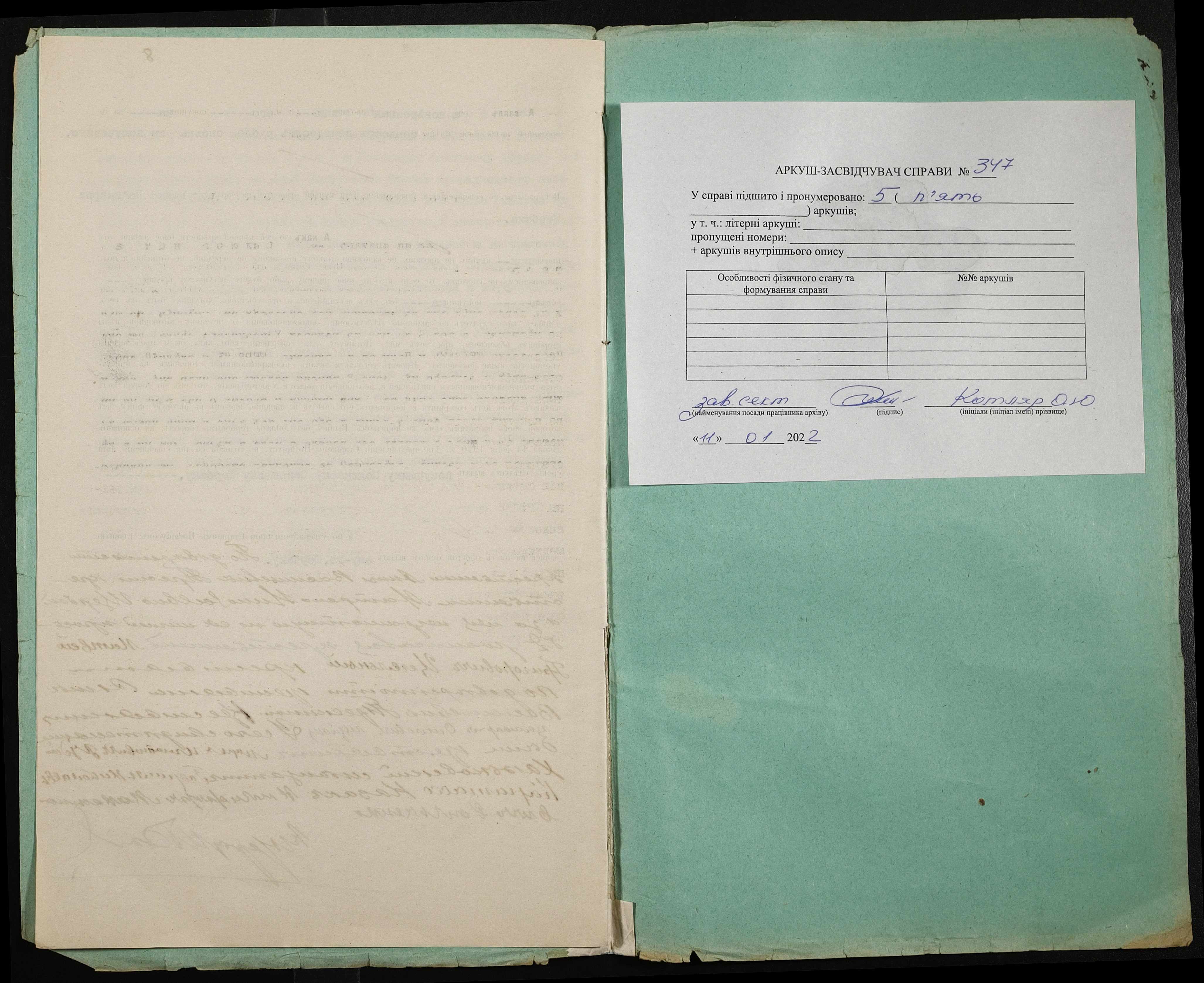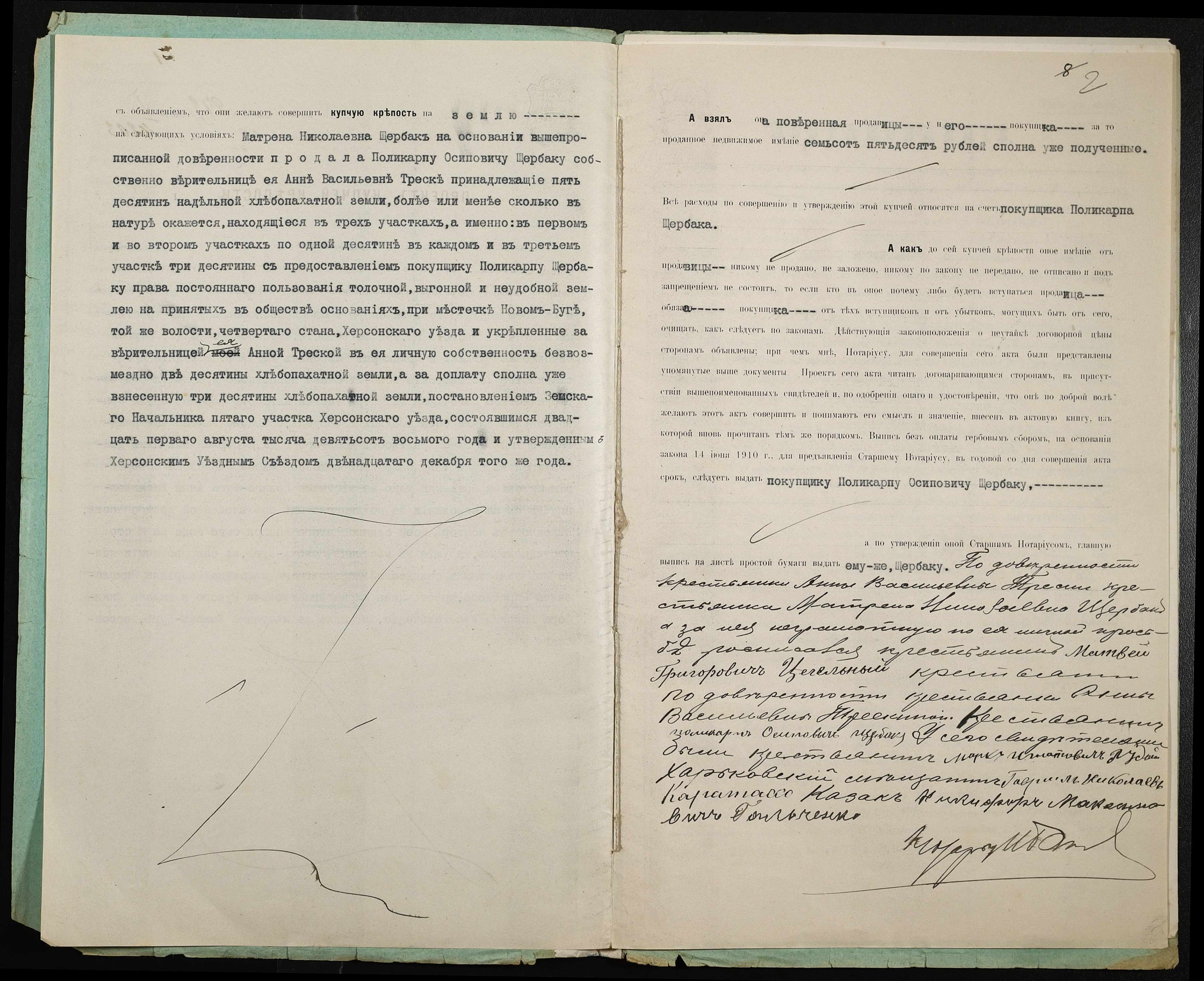 • • • • Справа № 347 “Справа про вчинення купчої про продаж землі селянкою Трескою Ганною Василівною (Треской Анной Васильевной) на користь селянина Щербака Полікарпа (Поликарпа) Осиповича”