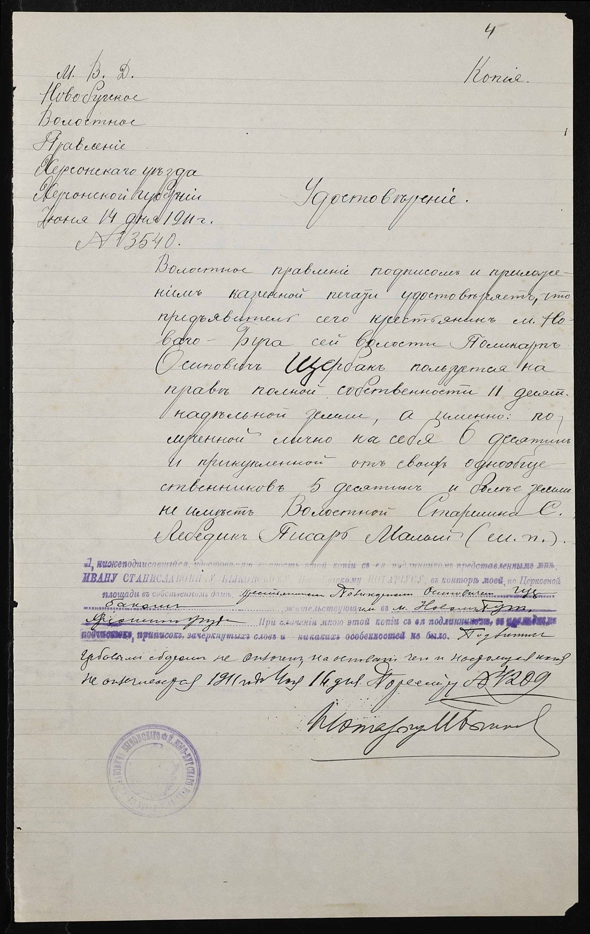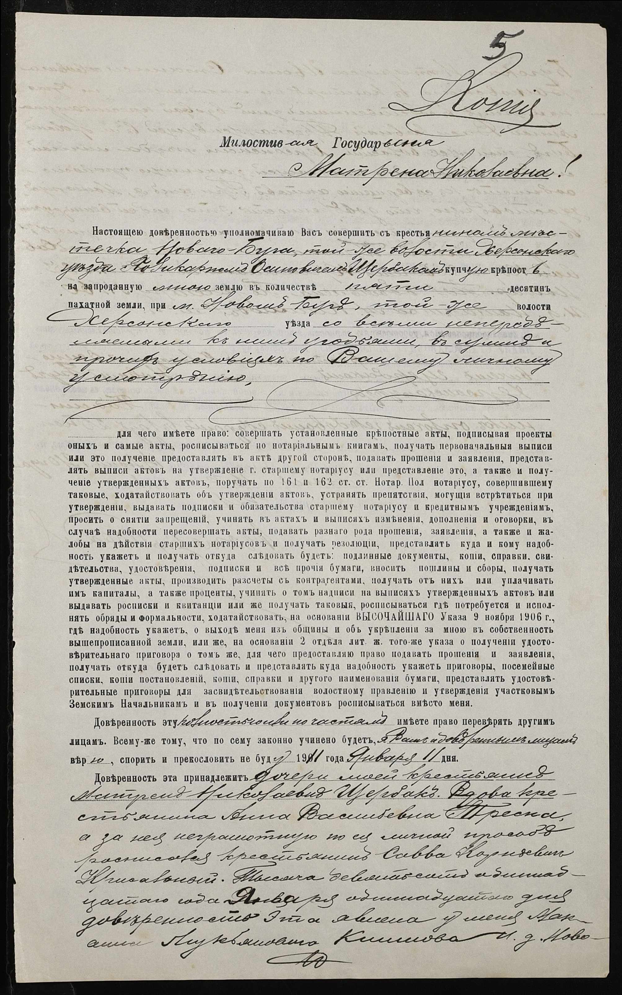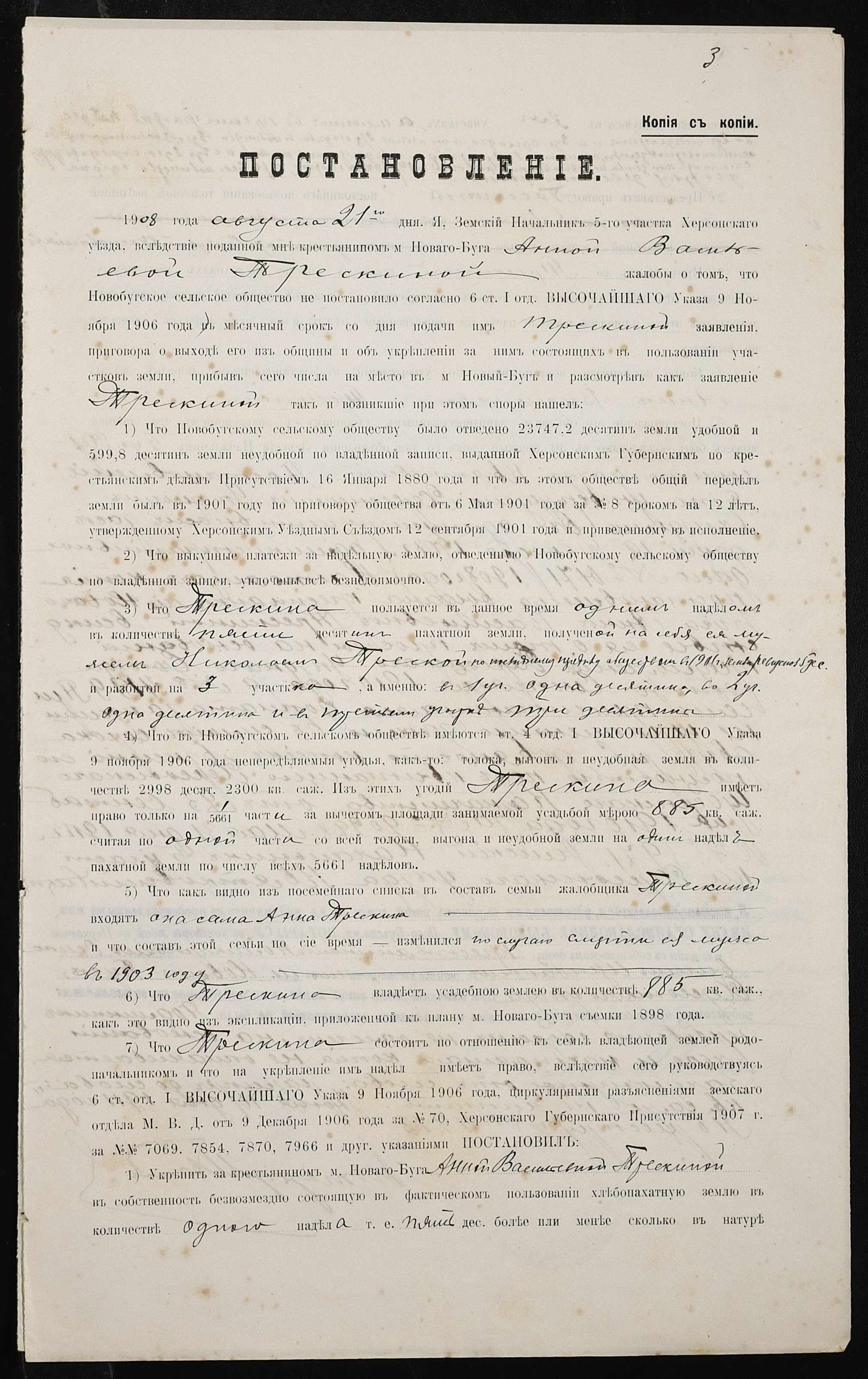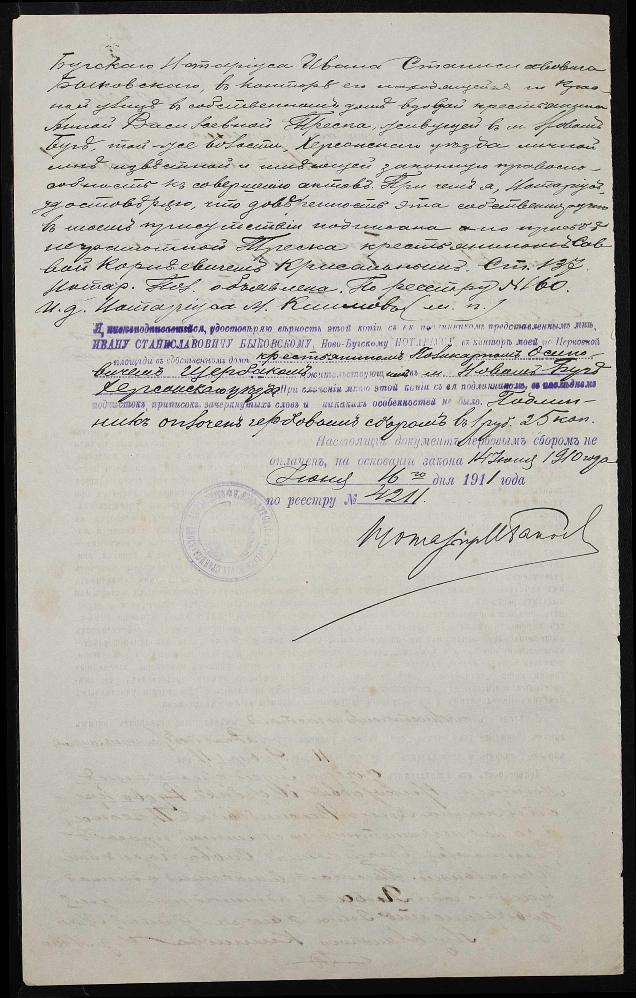 • • • • Справа № 347 “Справа про вчинення купчої про продаж землі селянкою Трескою Ганною Василівною (Треской Анной Васильевной) на користь селянина Щербака Полікарпа (Поликарпа) Осиповича”