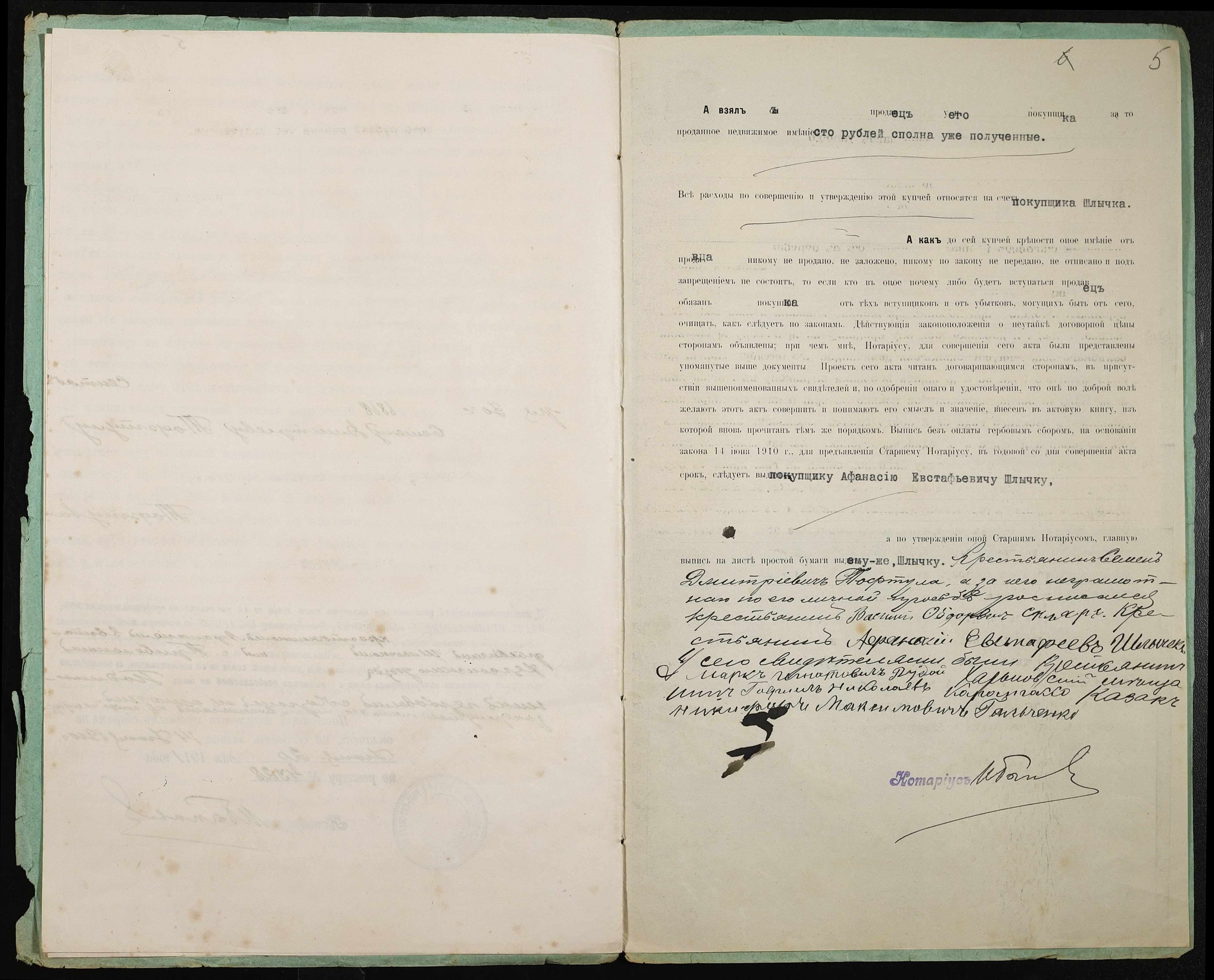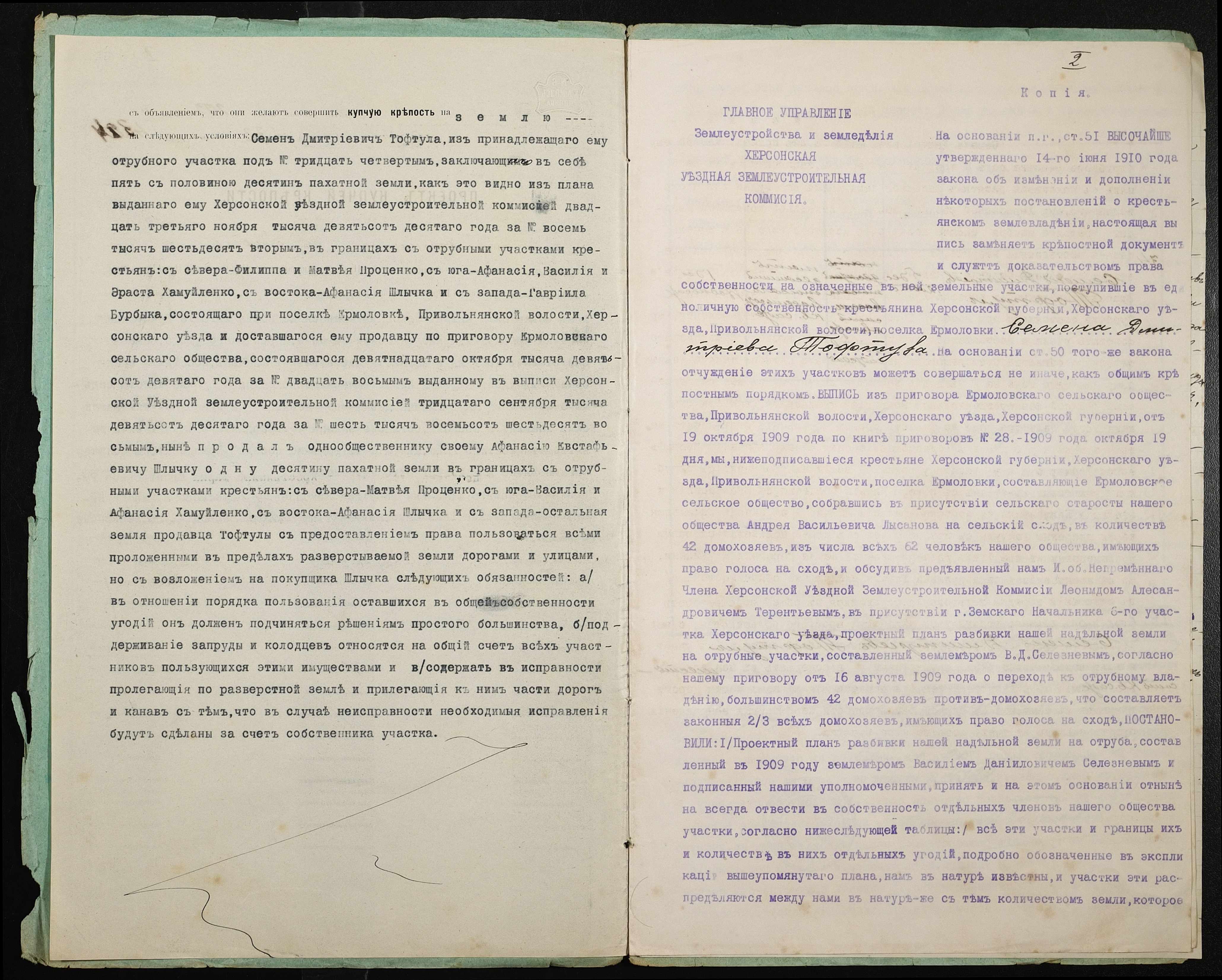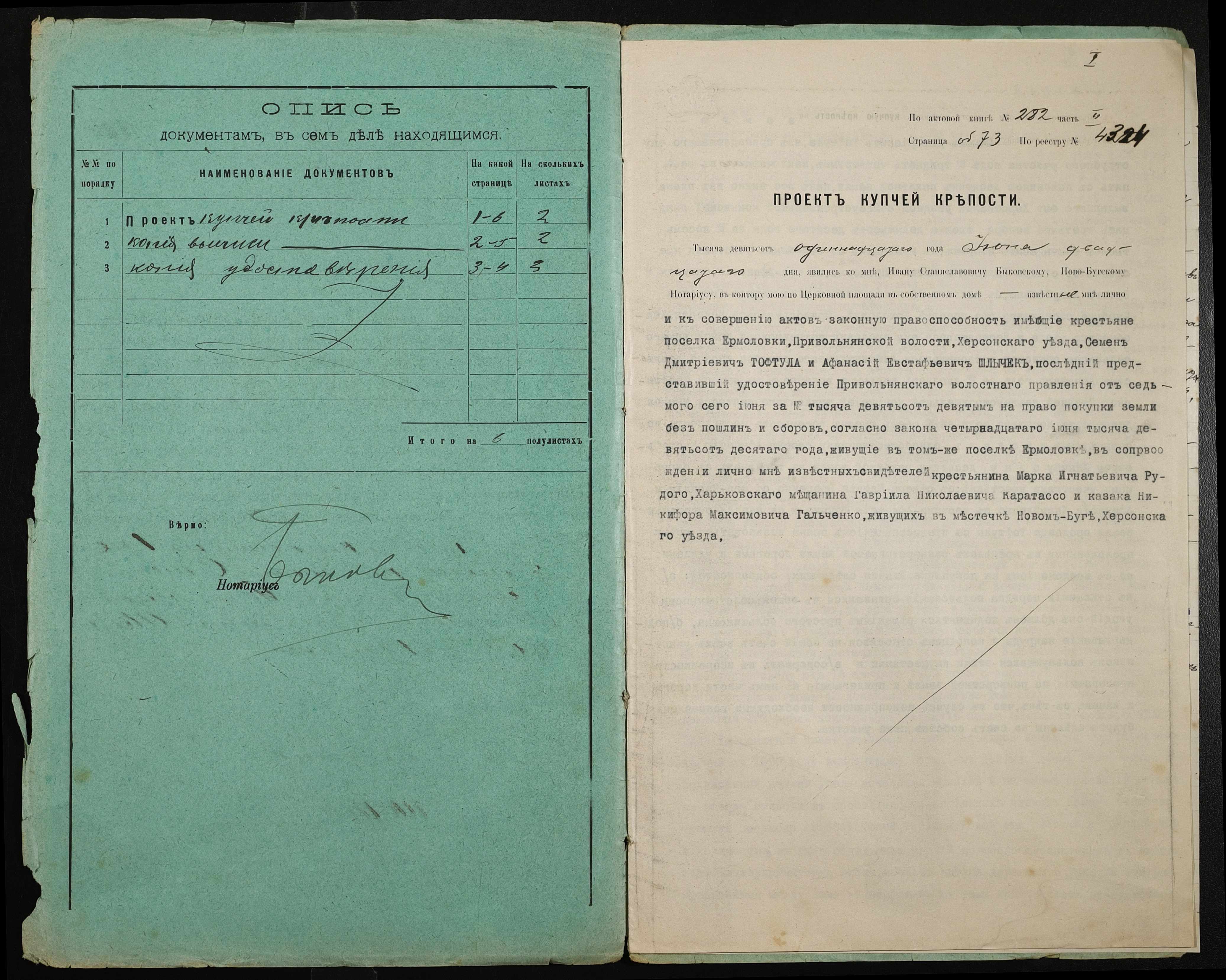 • • • • Справа № 348 “Справа про вчинення купчої про продаж землі селянином Тофтулою (Тофтулой) Семеном Дмитровичем (Дмитриевичем) на користь селянина Шличека Опанаса Євстафійовича (Шлычека Афанасия Евстафьевича)”