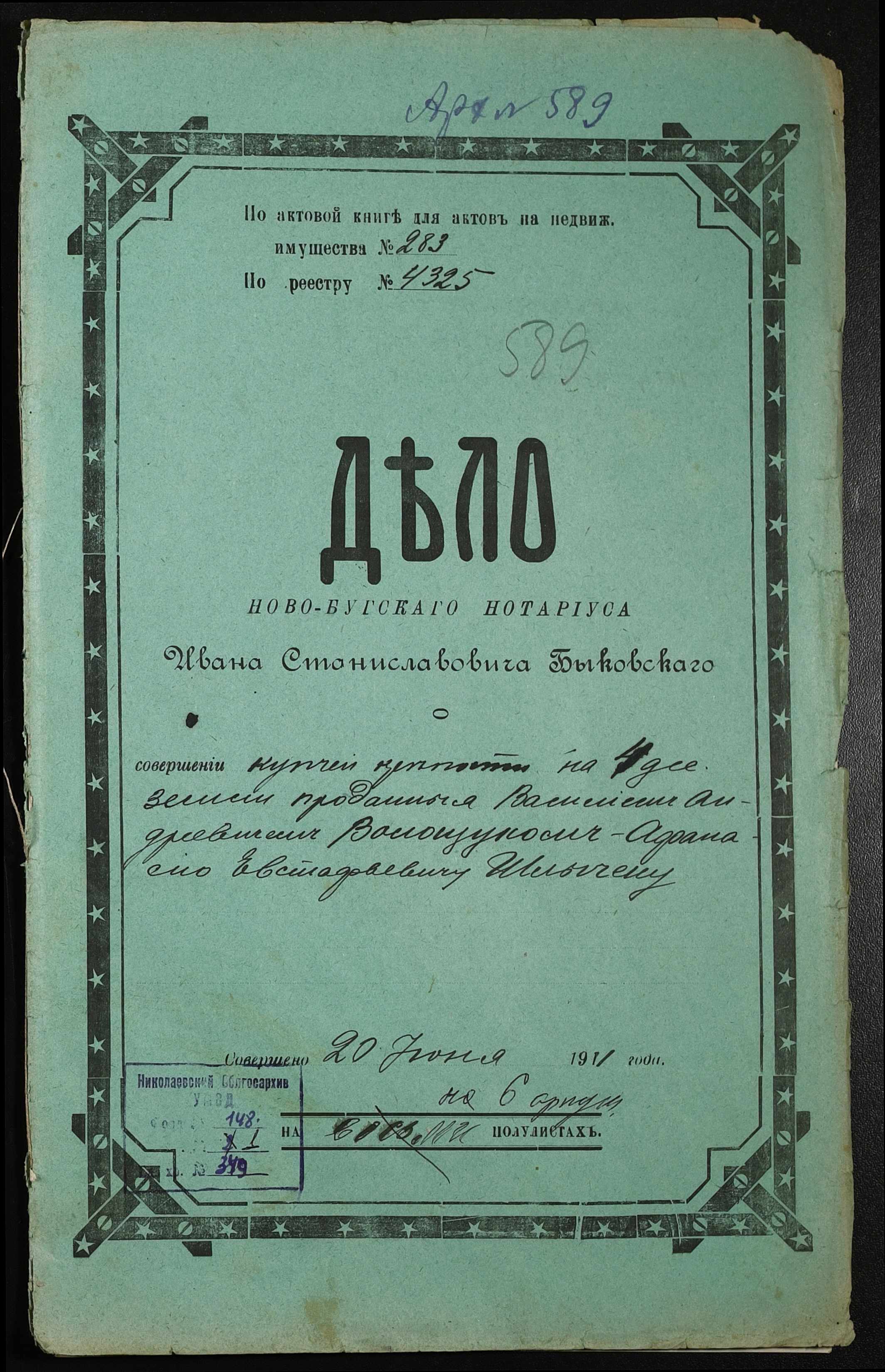 ◦ ◦ Фонд № 148 “Контора новобузького нотаріуса Биковського Івана Станіславовича”