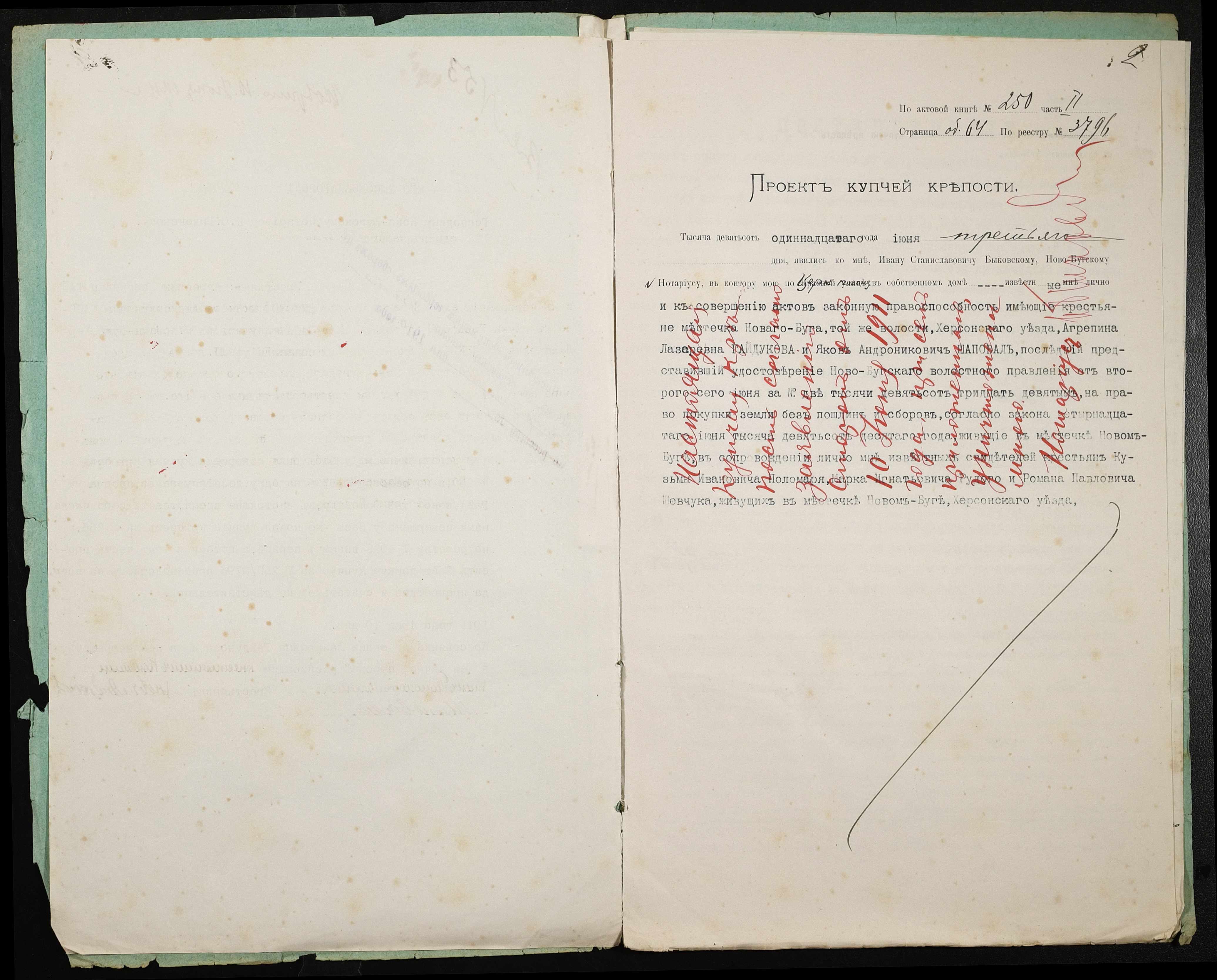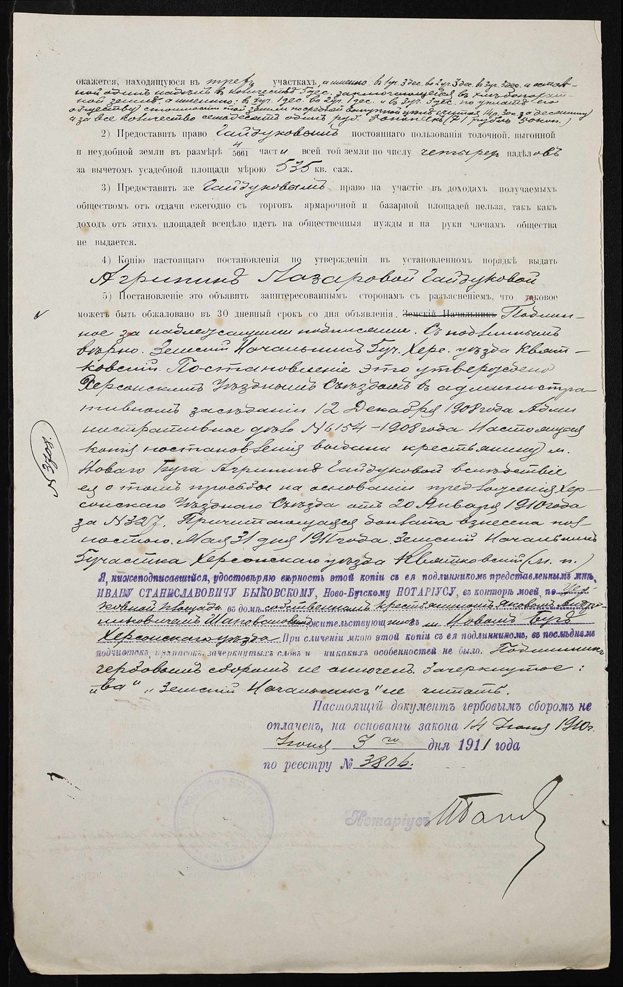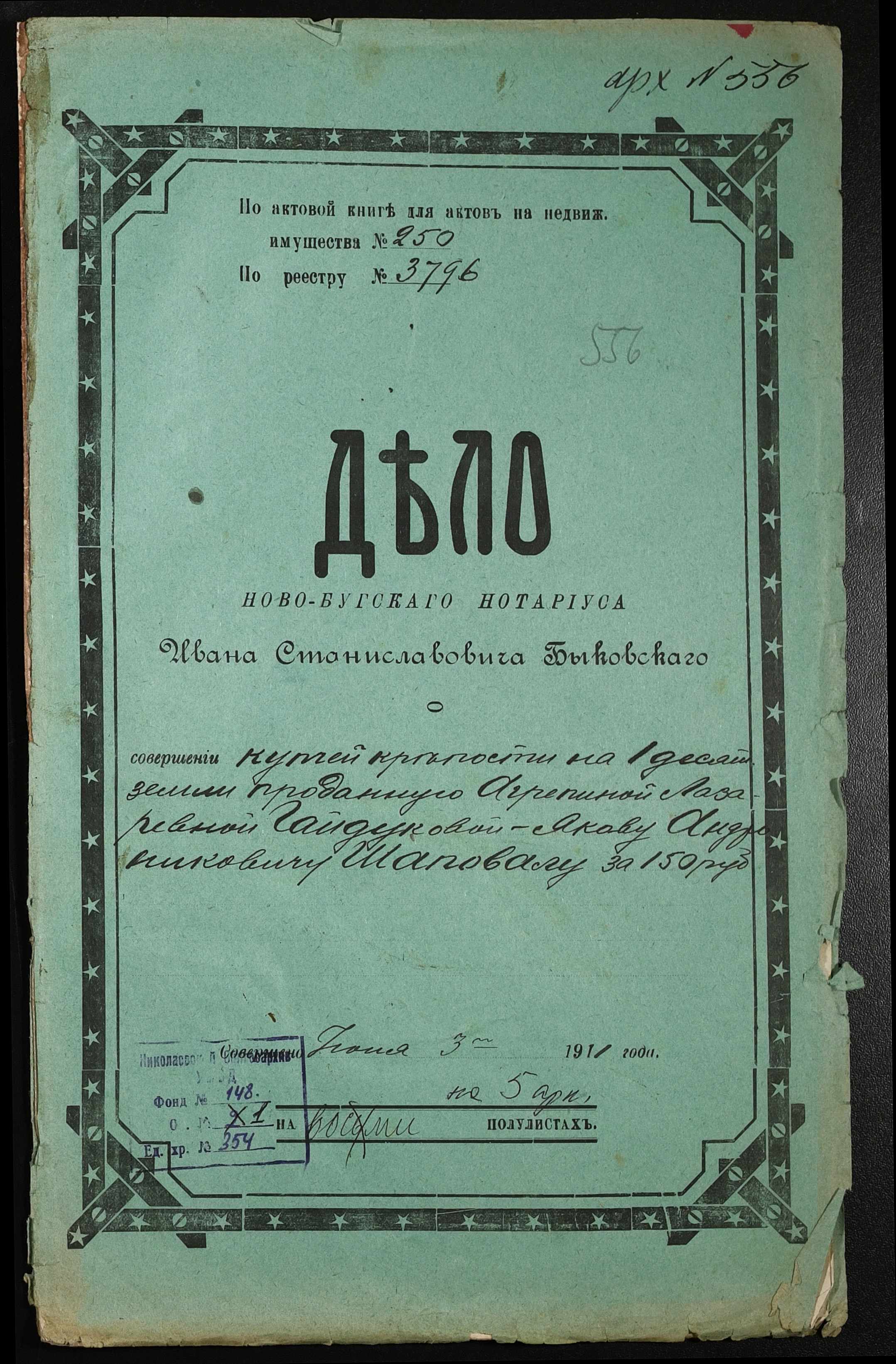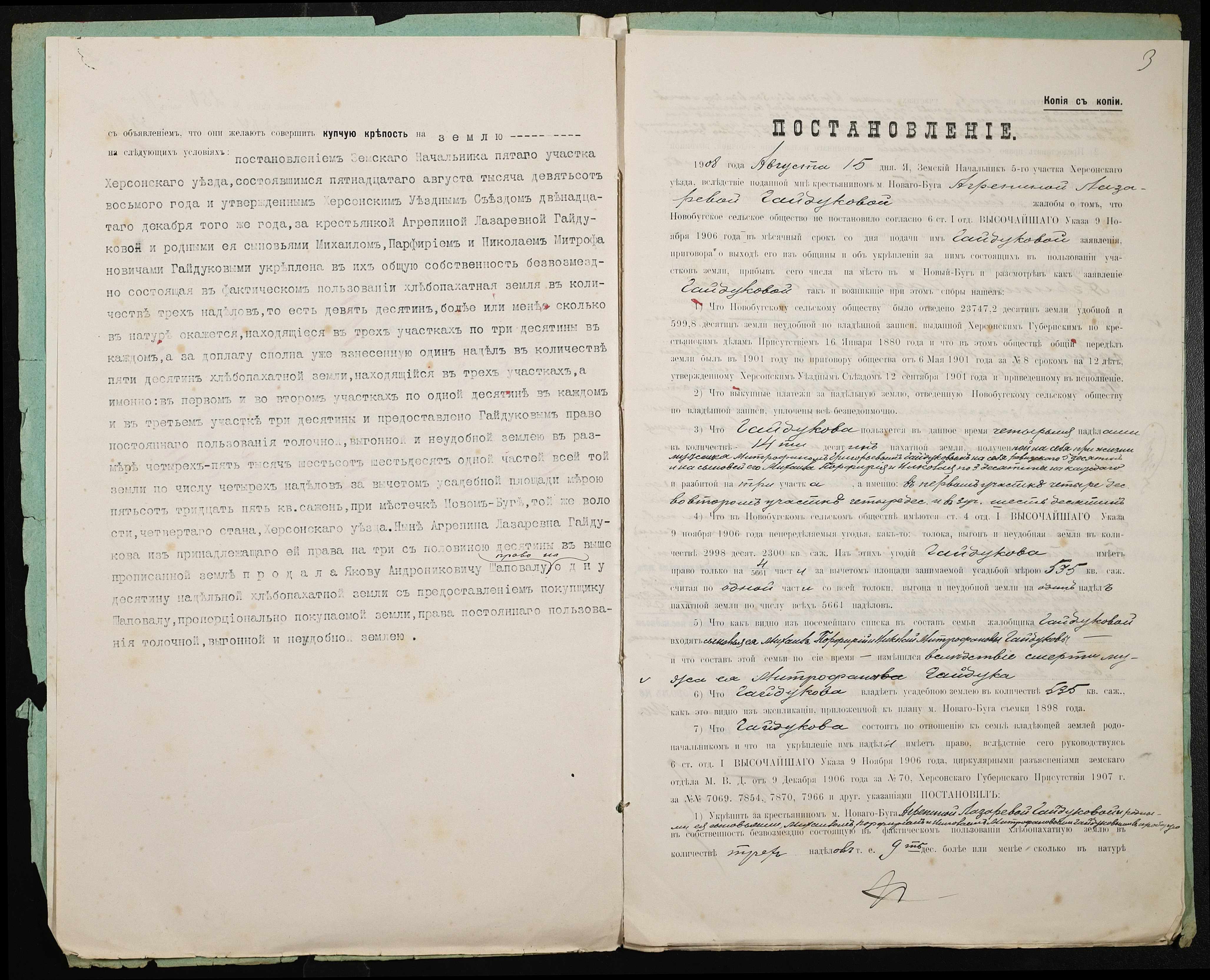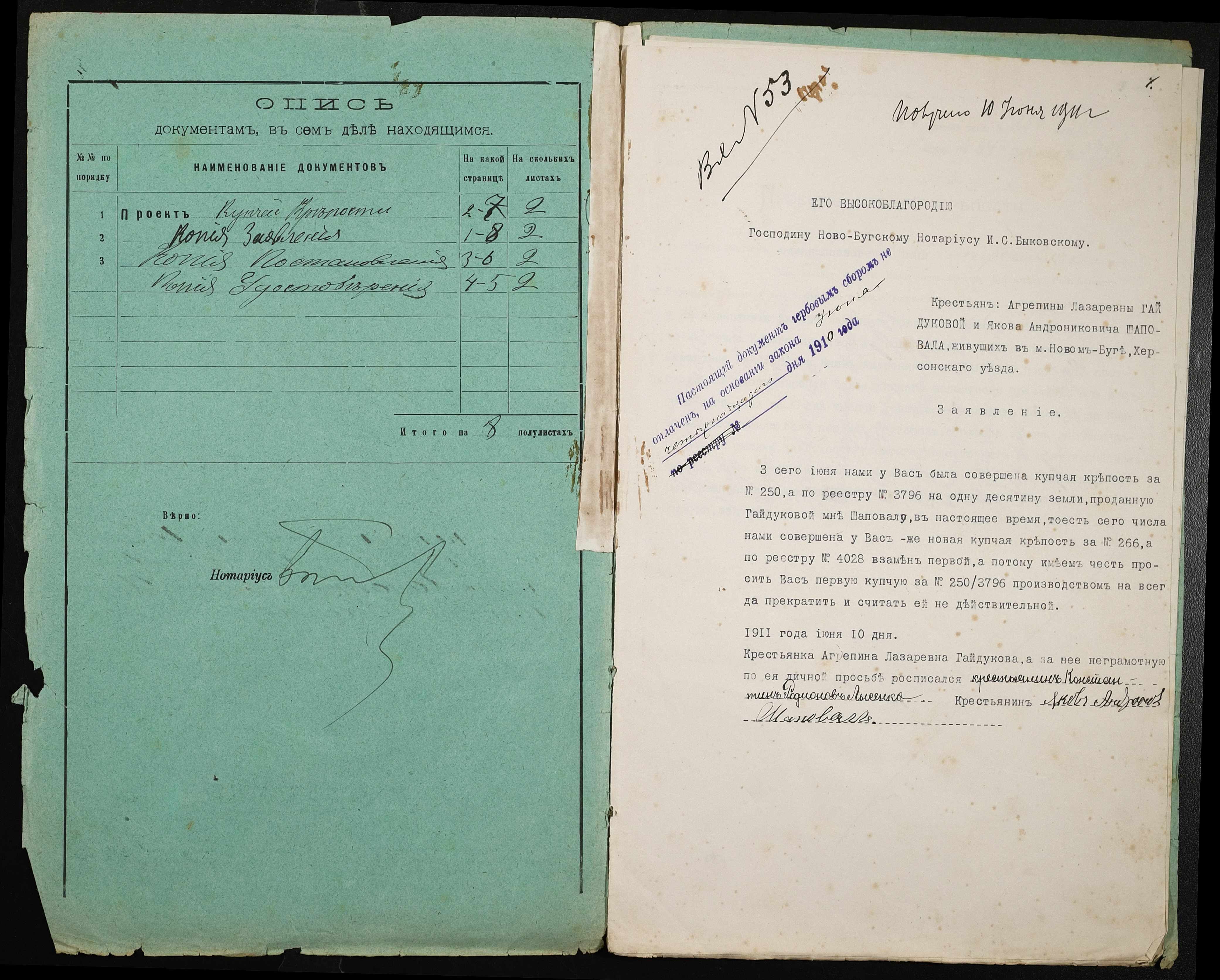 • • • • Справа № 354 “Справа про вчинення купчої про продаж землі селянином Гайдуковою Горпиною Лазарівною (Гайдуковой Агрепиной Лазаревной) на користь селянина Шаповала Якова Андрониковича”