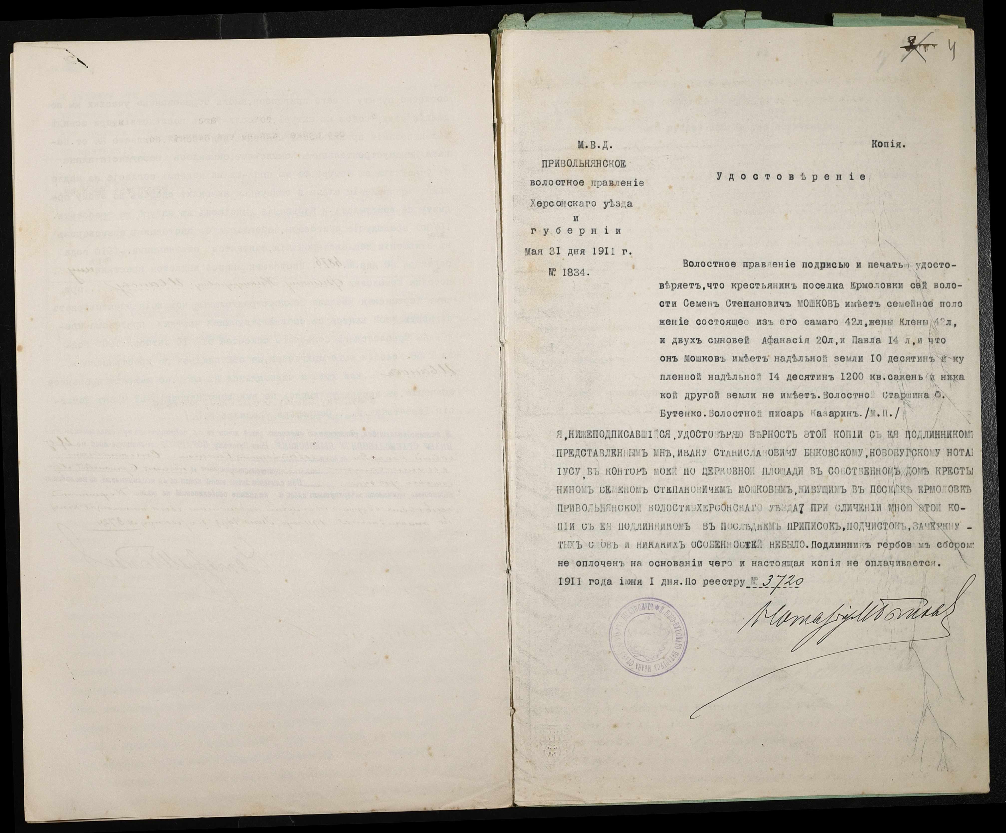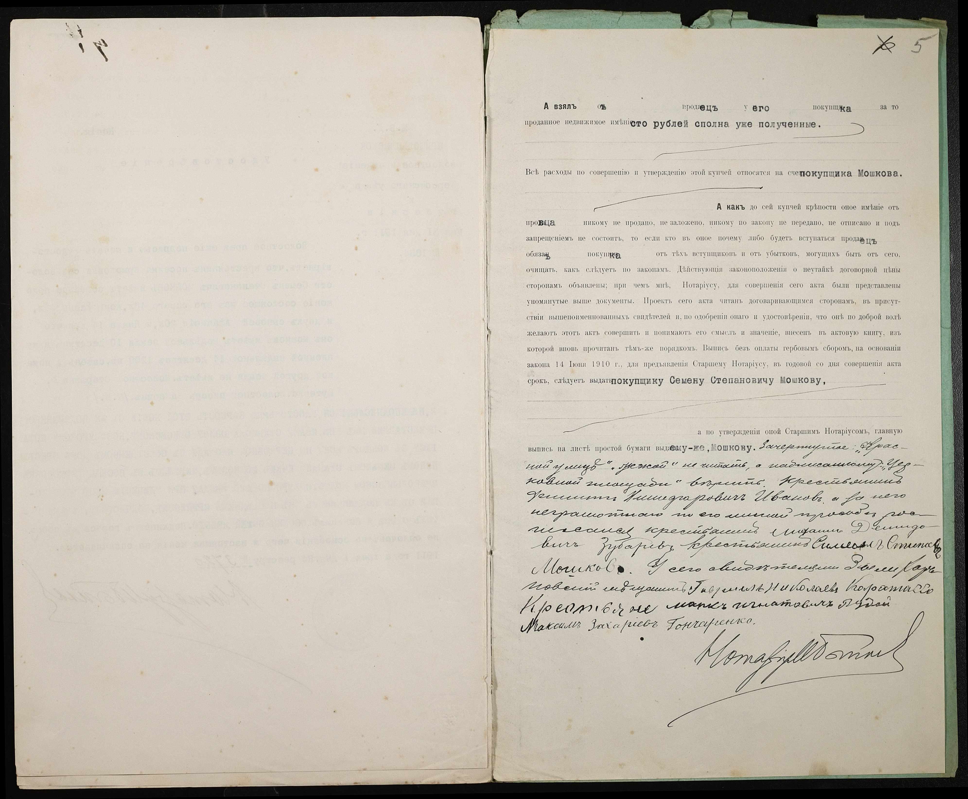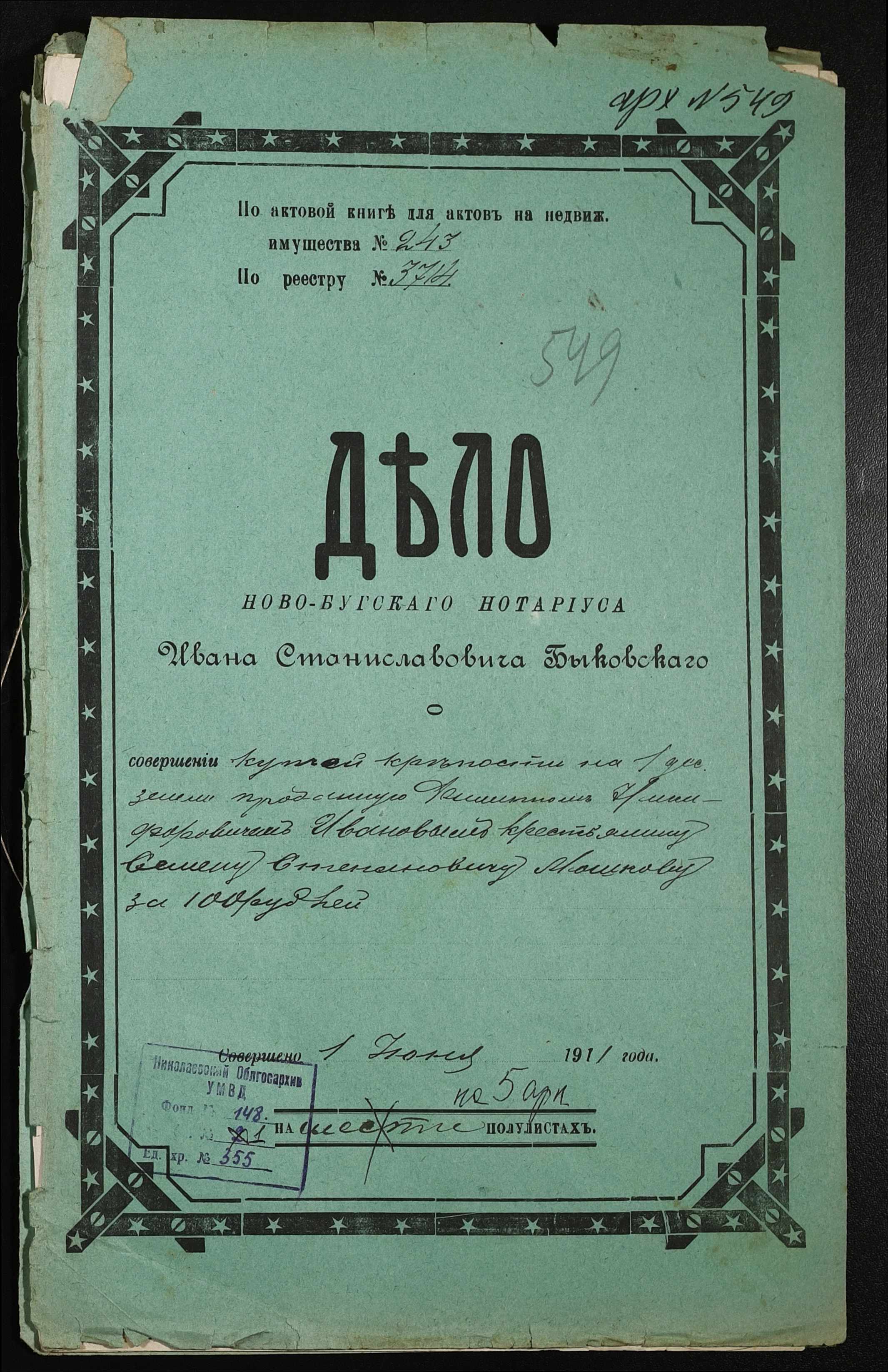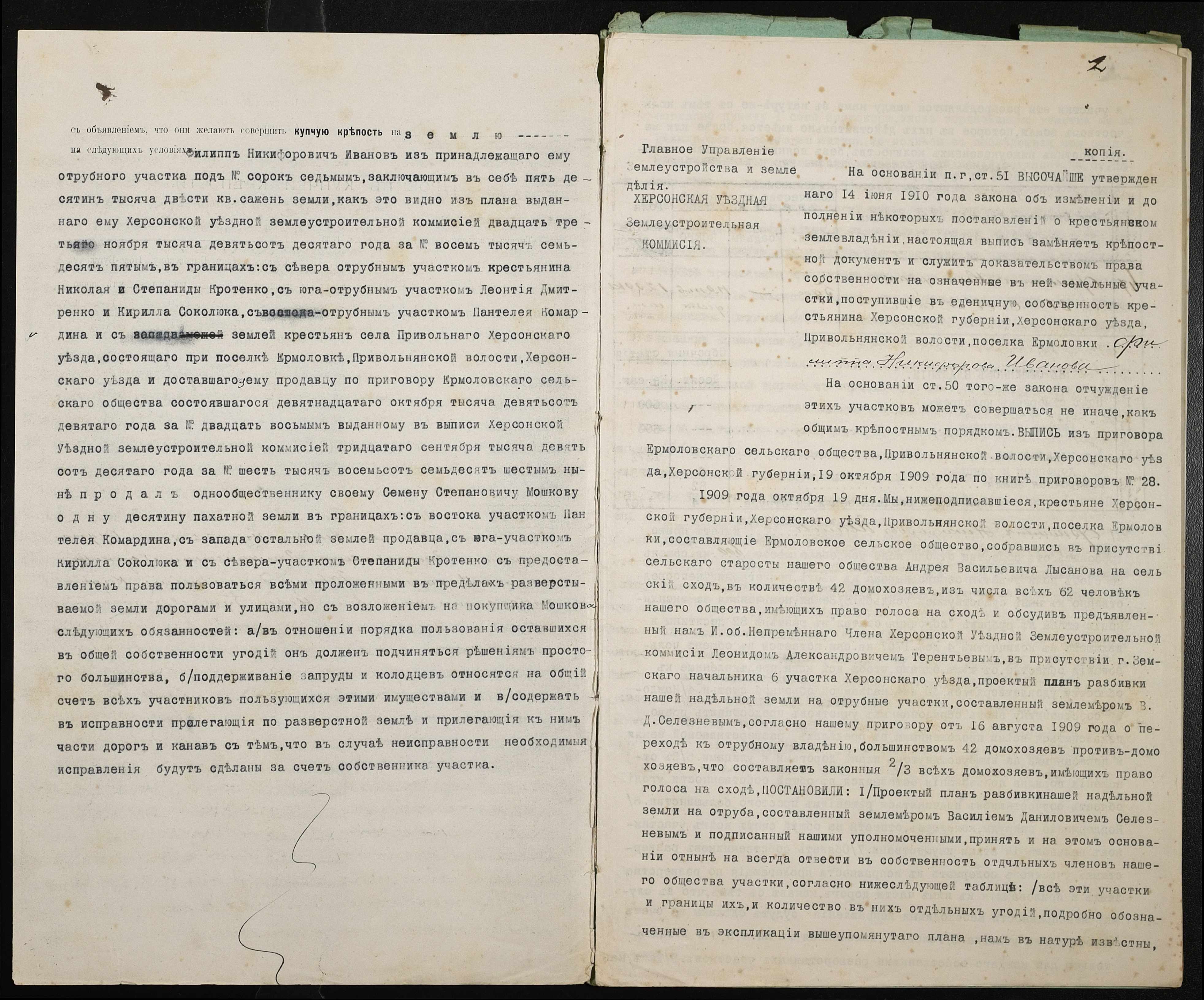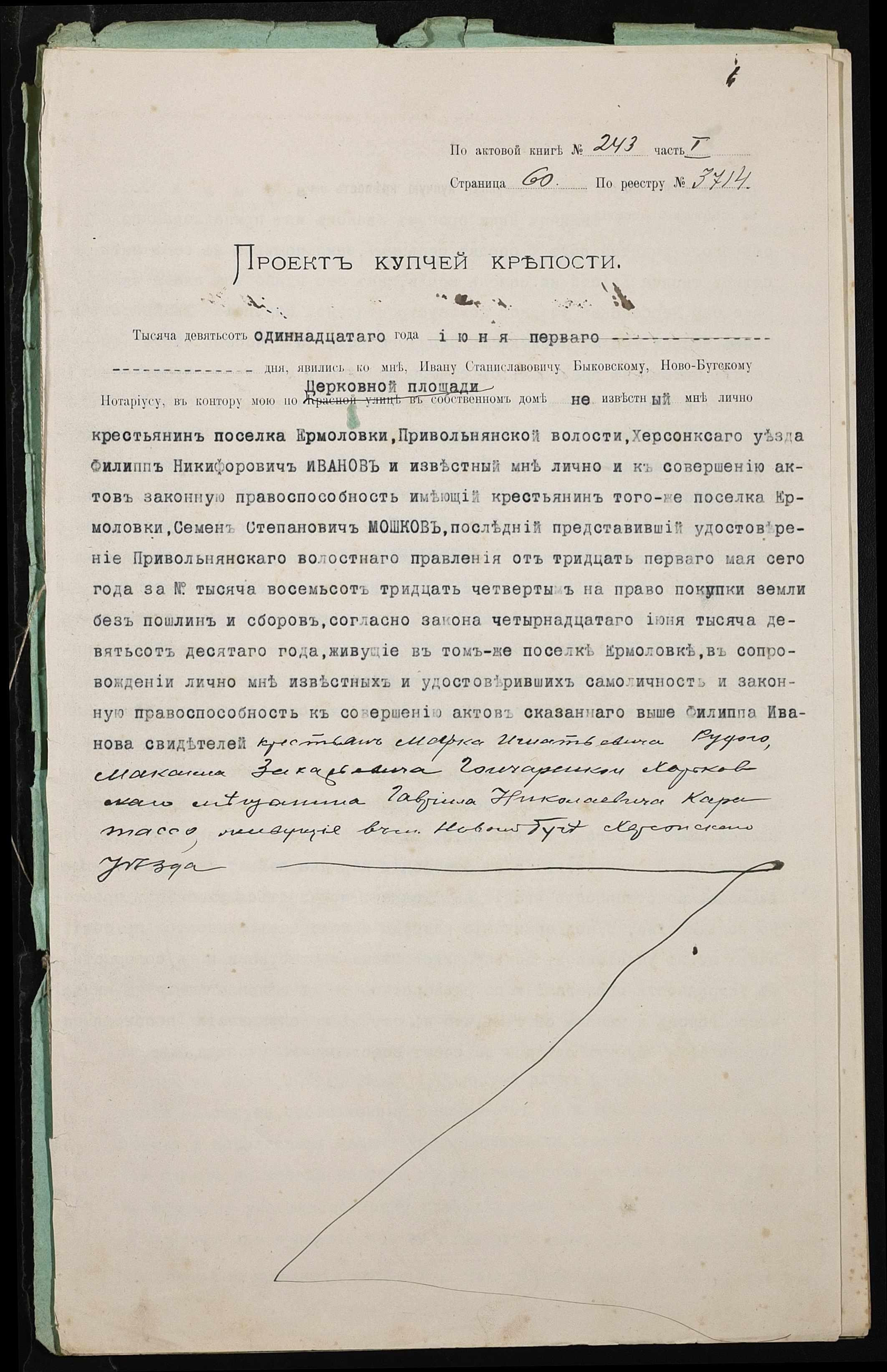 • • • • Справа № 355 “Справа про вчинення купчої про продаж землі селянином Івановим Пилипом (Ивановым Филиппом) Никифоровичем на користь селянина Мошкова Семена Степановича”