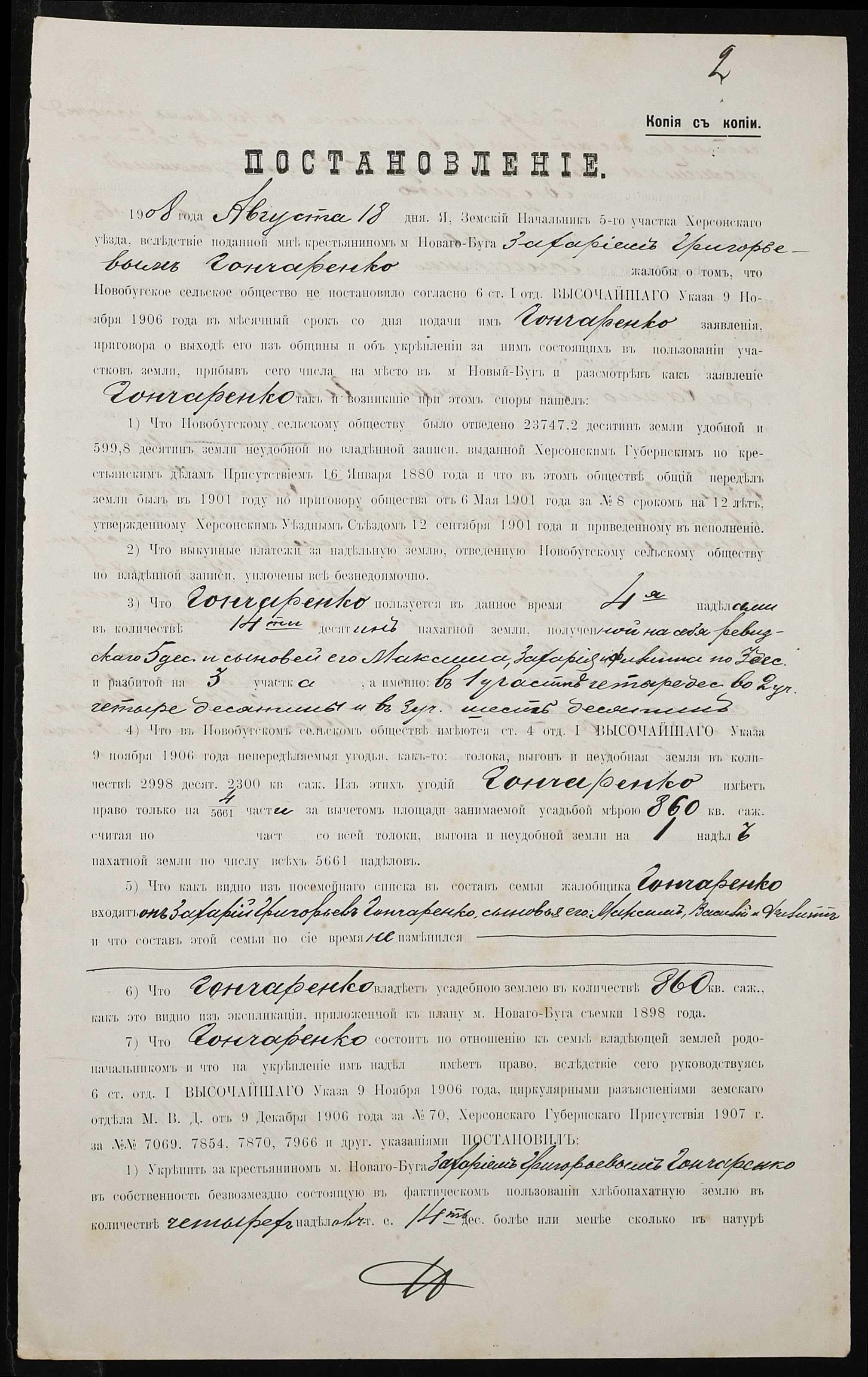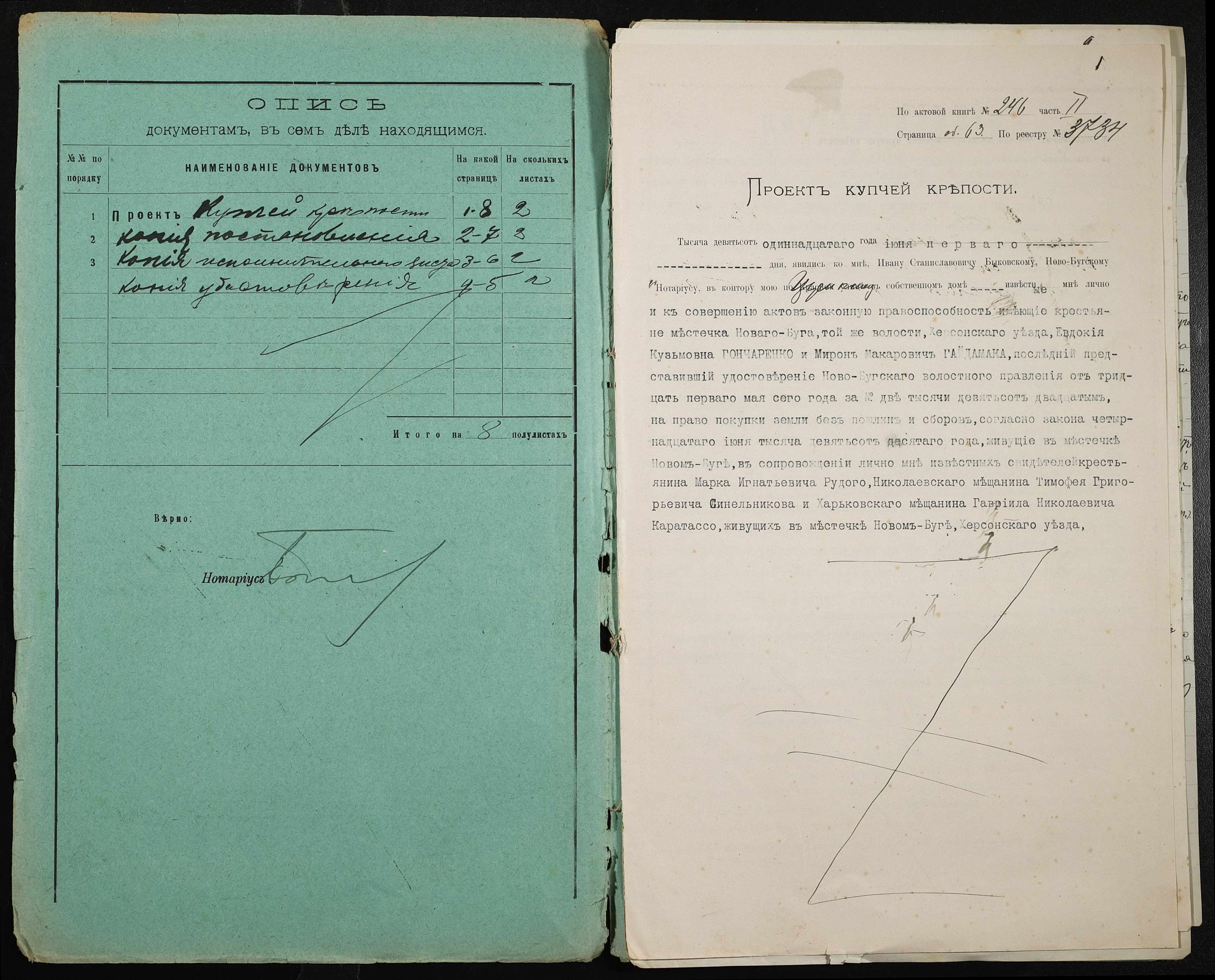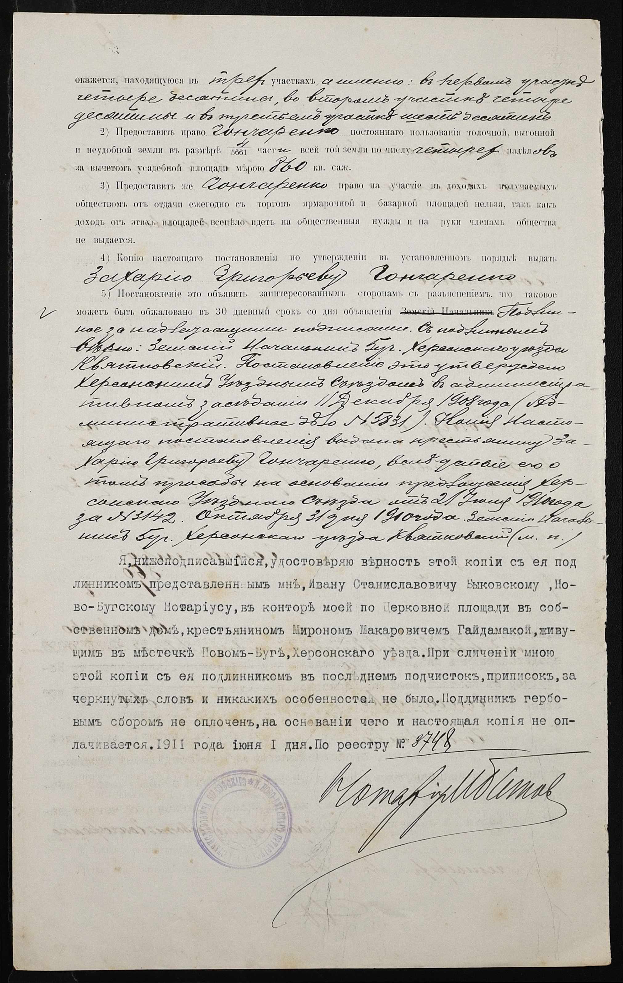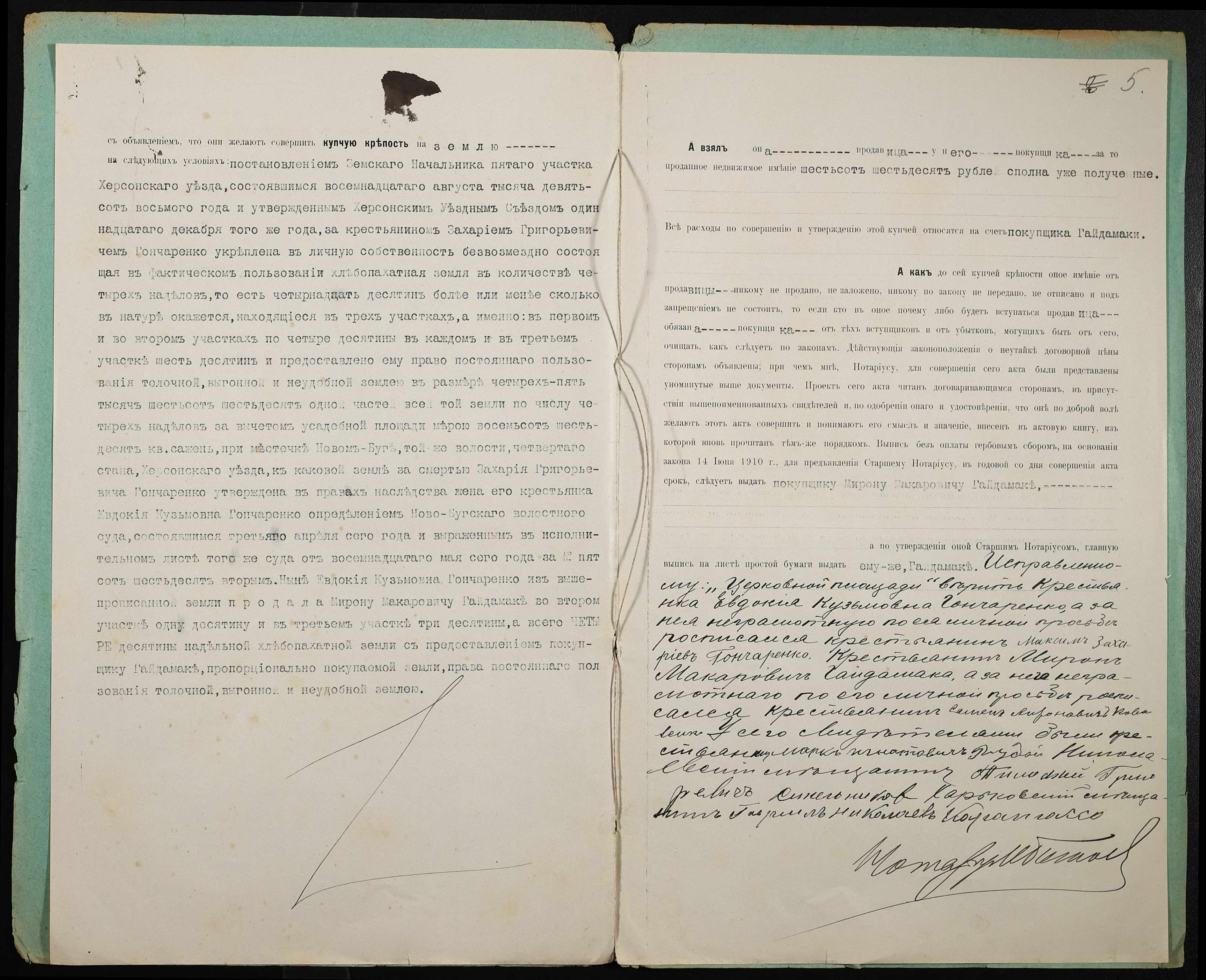 • • • • Справа № 358 “Справа про вчинення купчої про продаж землі селянкою Гончаренко Євдокією Кузьмівною (Евдокией Кузьминичной) на користь селянина Гайдамаки Мирона Макаровича”