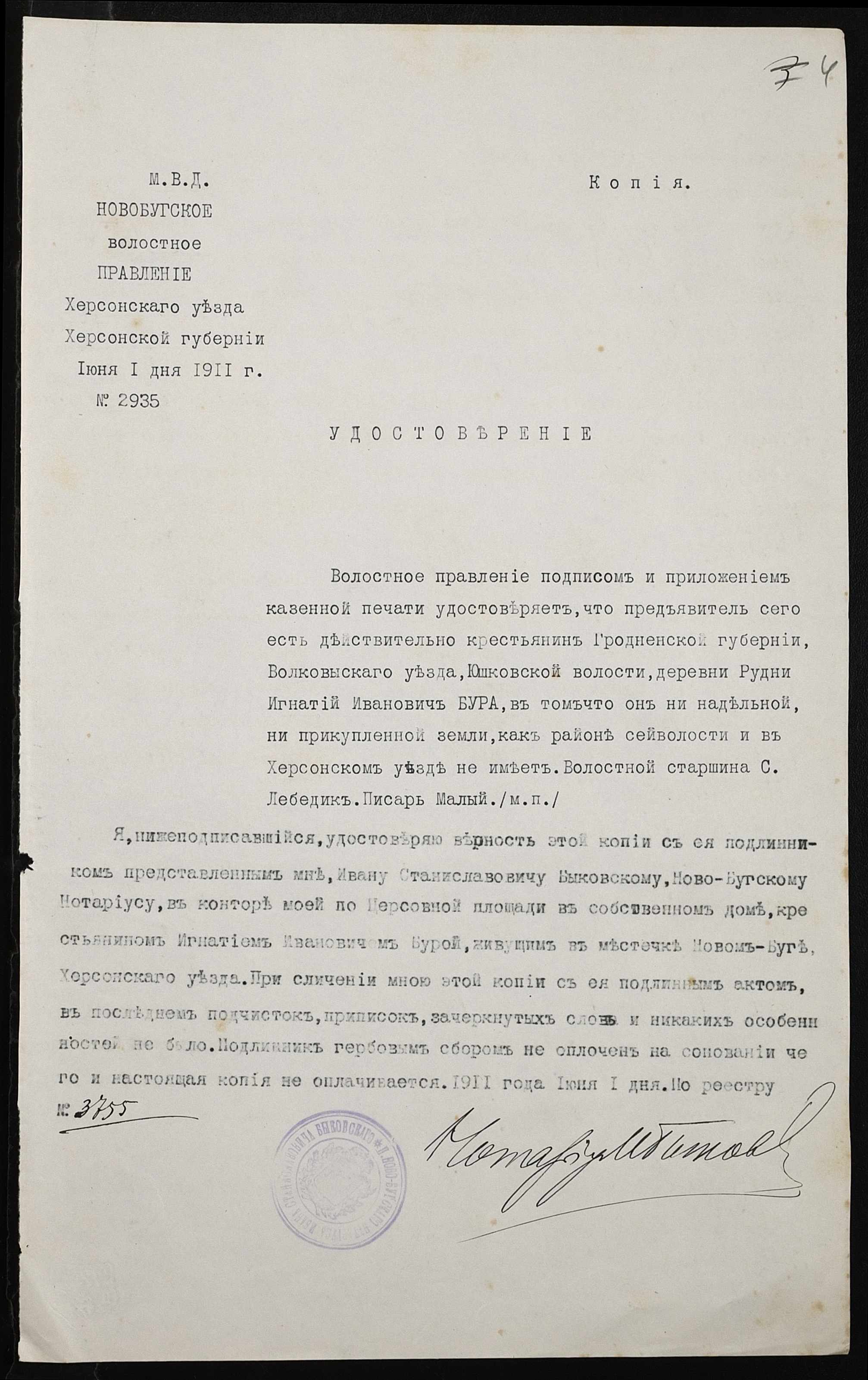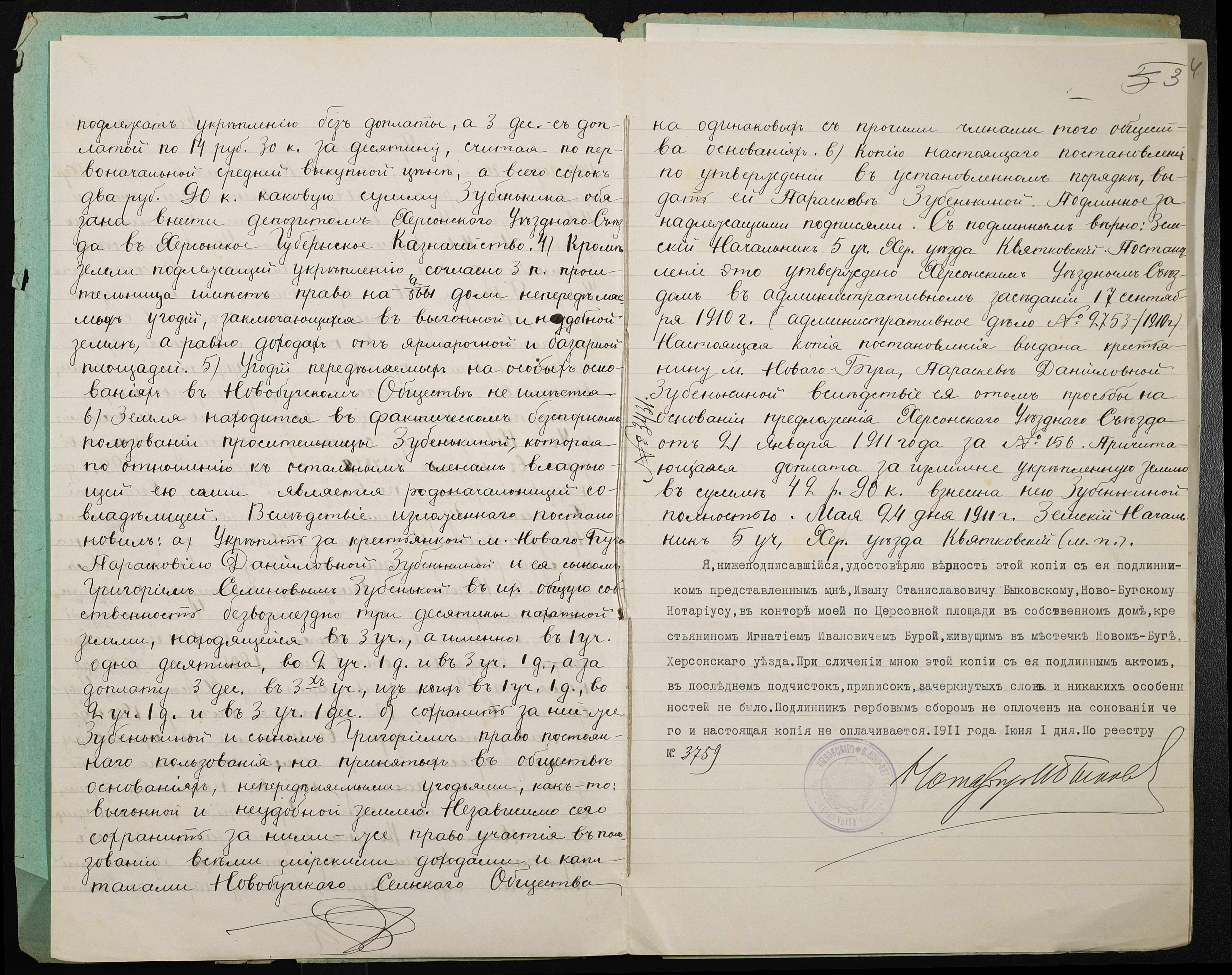 • • • • Справа № 359 “Справа про вчинення купчої про продаж землі селянкою Зубенькіною Парасковією Данилівною (Зубенькиной Прасковьей Даниловной) на користь селянина Бури Гната Івановича (Буры Игната Ивановича)”