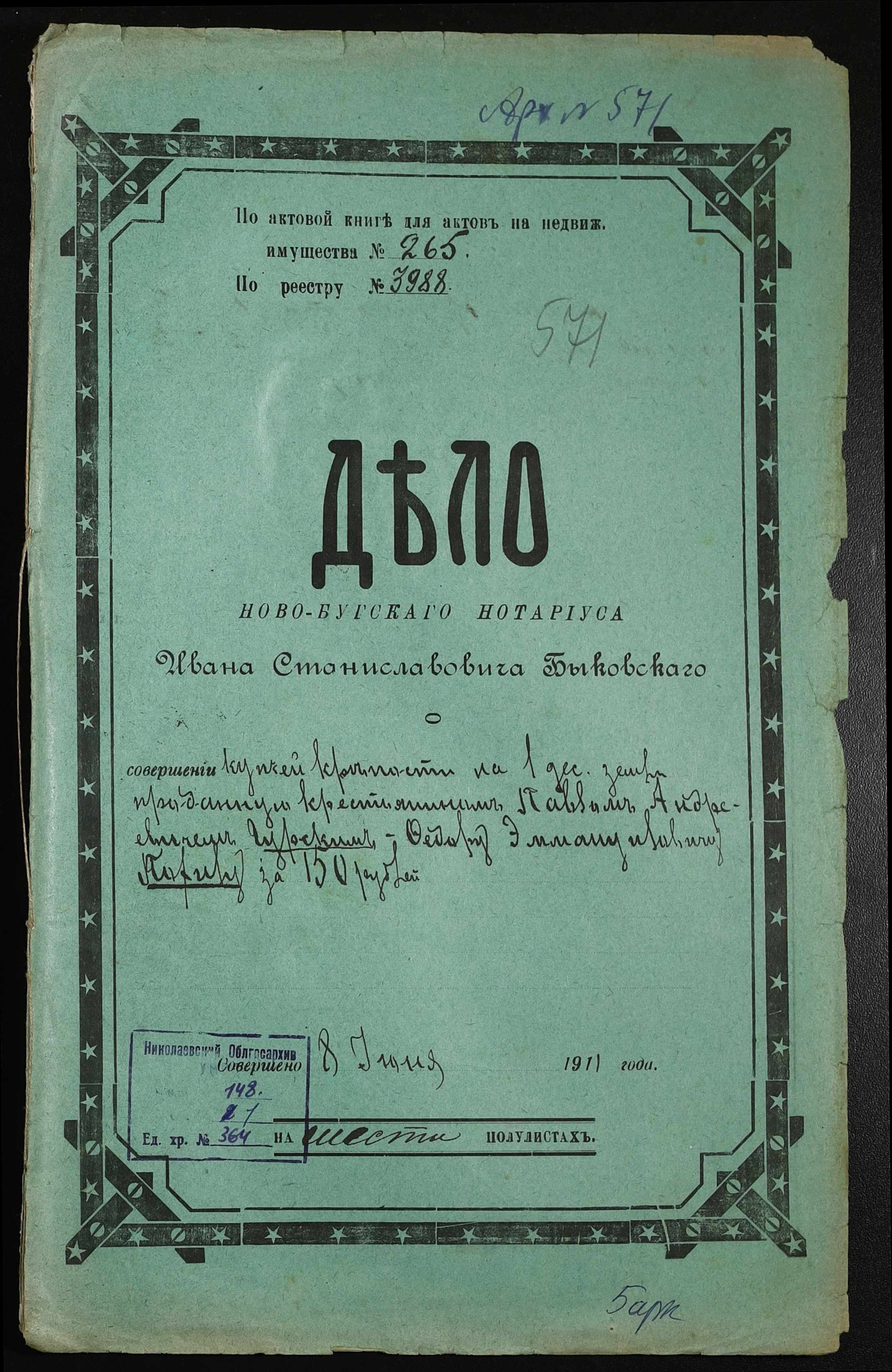 ◦ ◦ Фонд № 148 “Контора новобузького нотаріуса Биковського Івана Станіславовича”