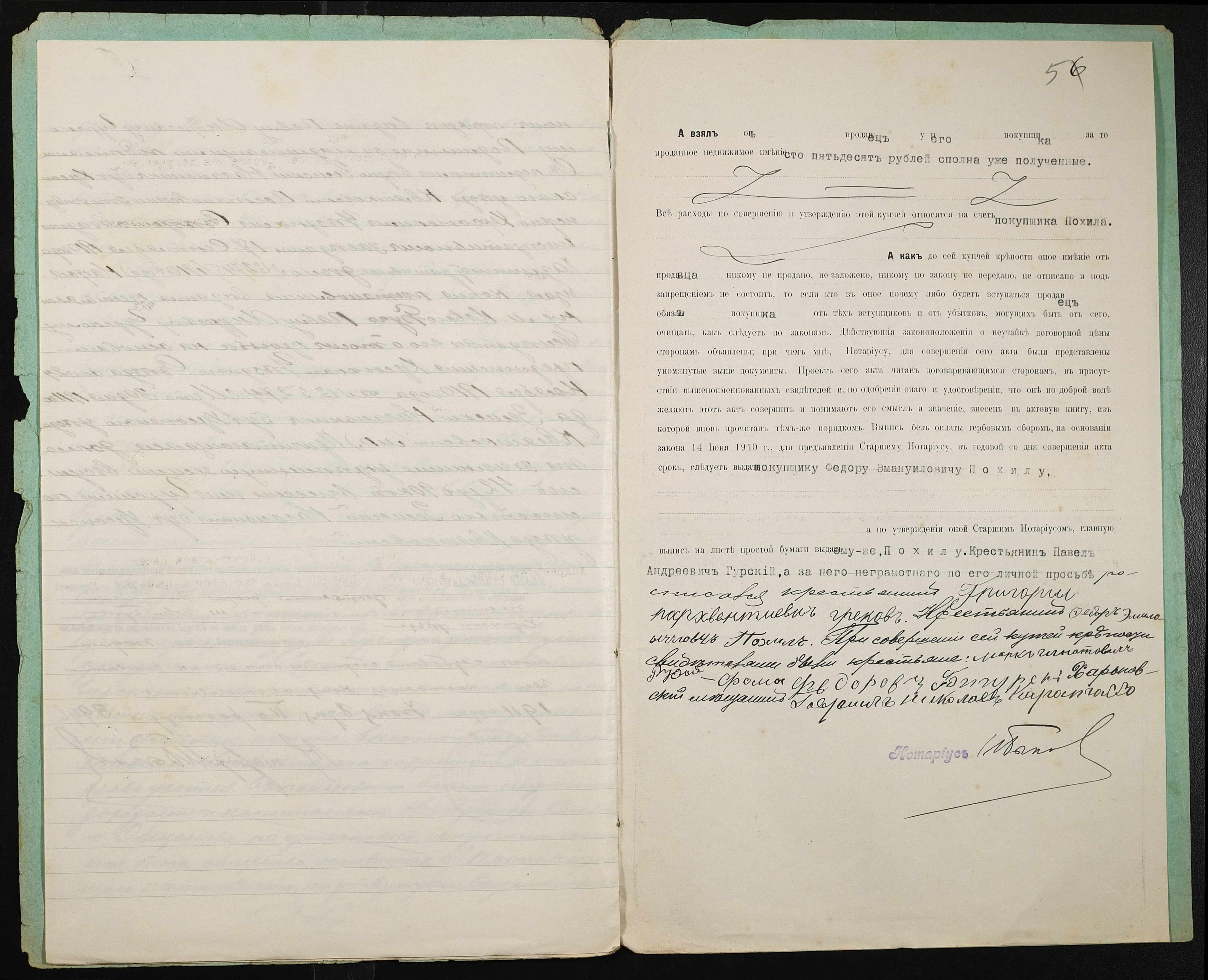 • • • • Справа № 364 “Справа про вчинення купчої про продаж землі селянином Гурським (Гурским) Павлом Андрійовичем (Андреевичем) на користь селянина Похила Федора Еммануїловича (Эммануиловича)”