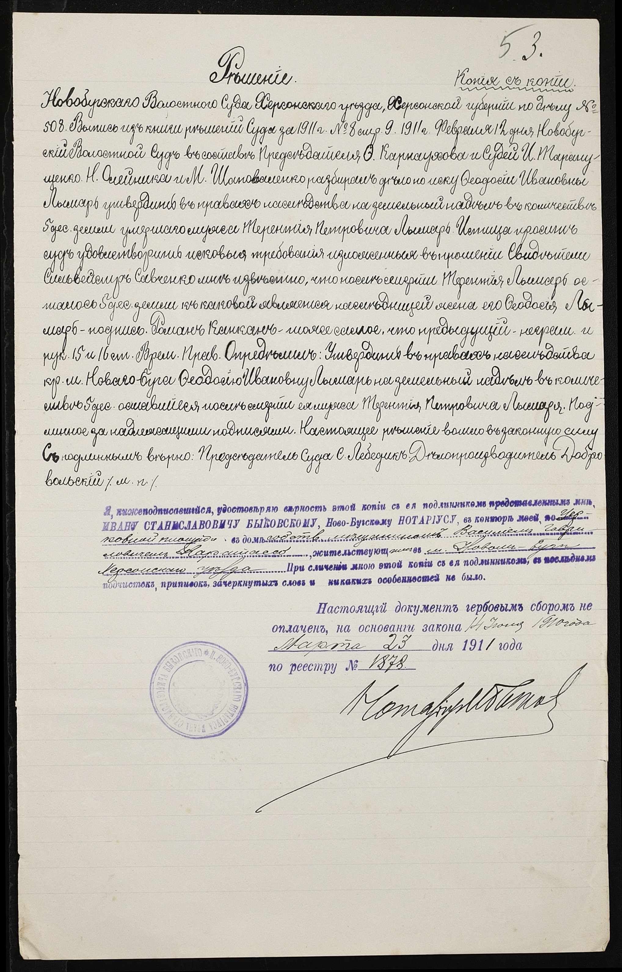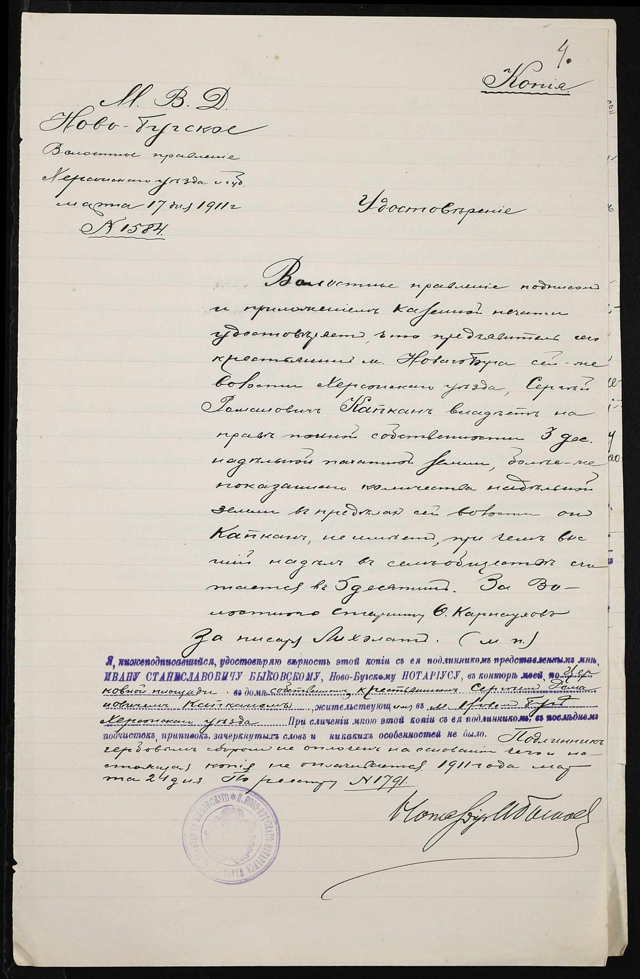 • • • • Справа № 365 “Справа про вчинення купчої про продаж землі селянином Гурським (Гурским) Павлом Андрійовичем (Андреевичем) на користь селянина Похила Федора Еммануїловича (Эммануиловича)”