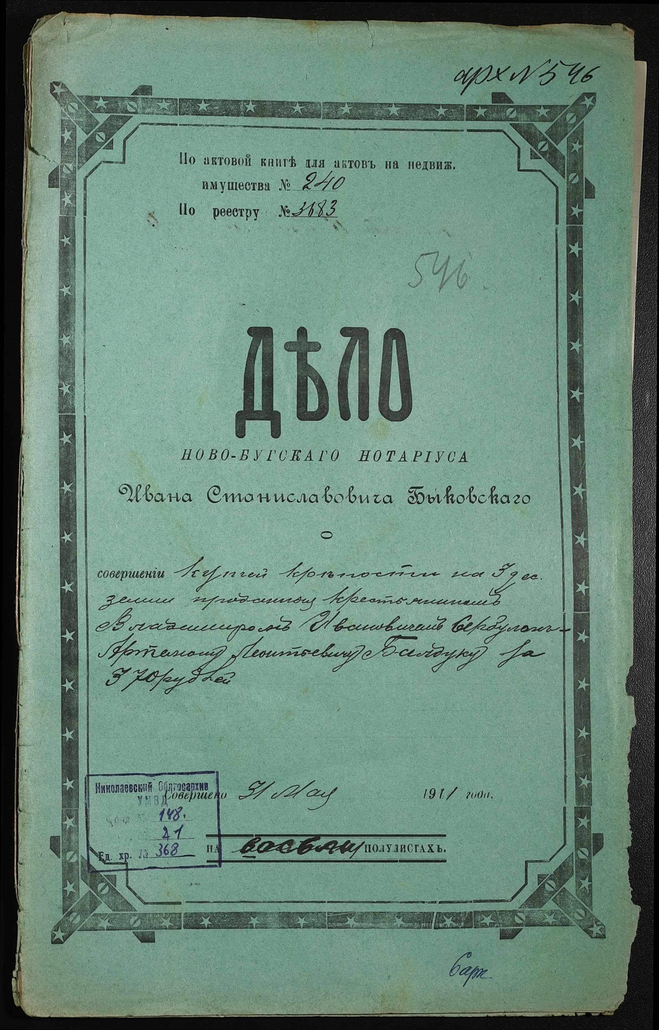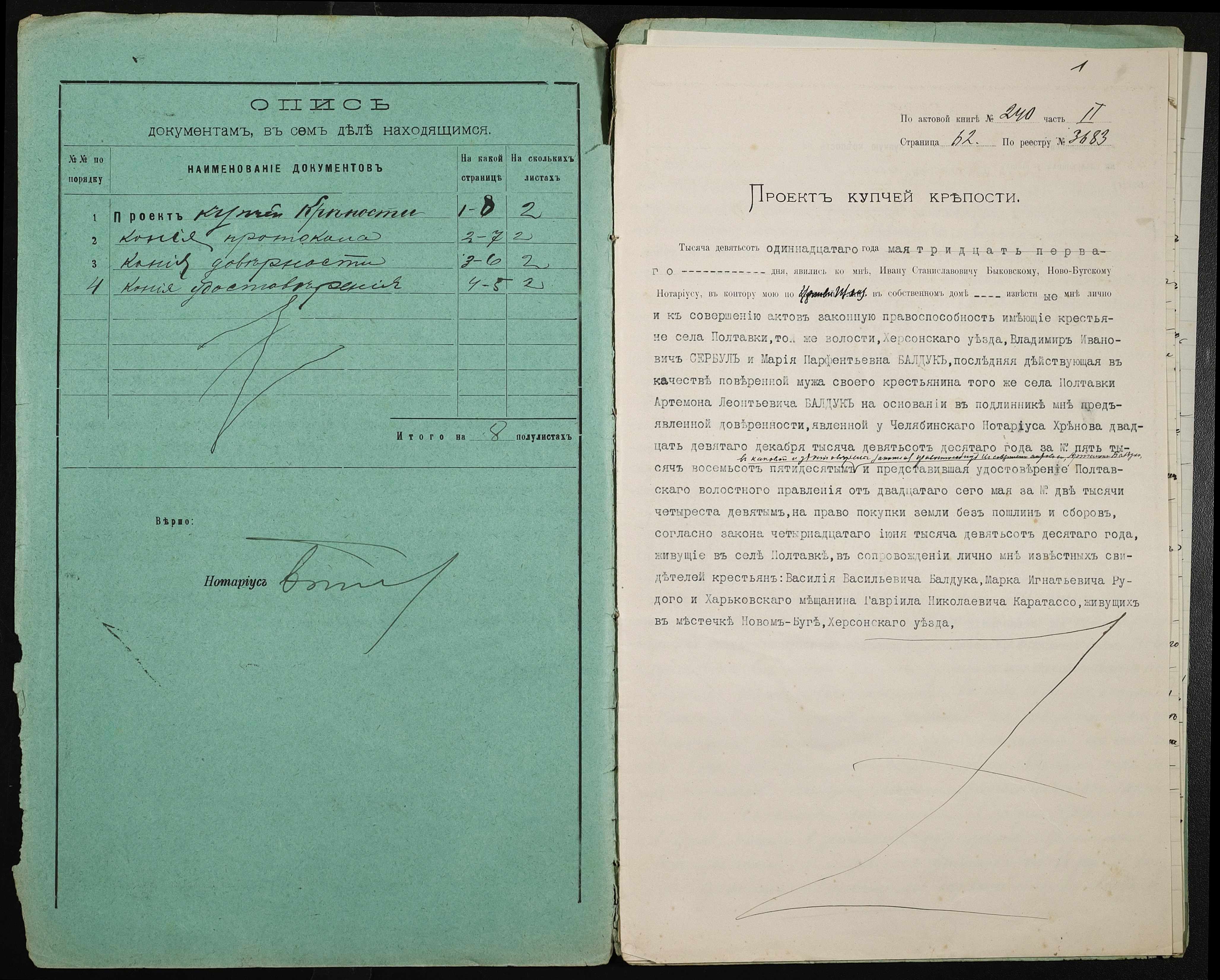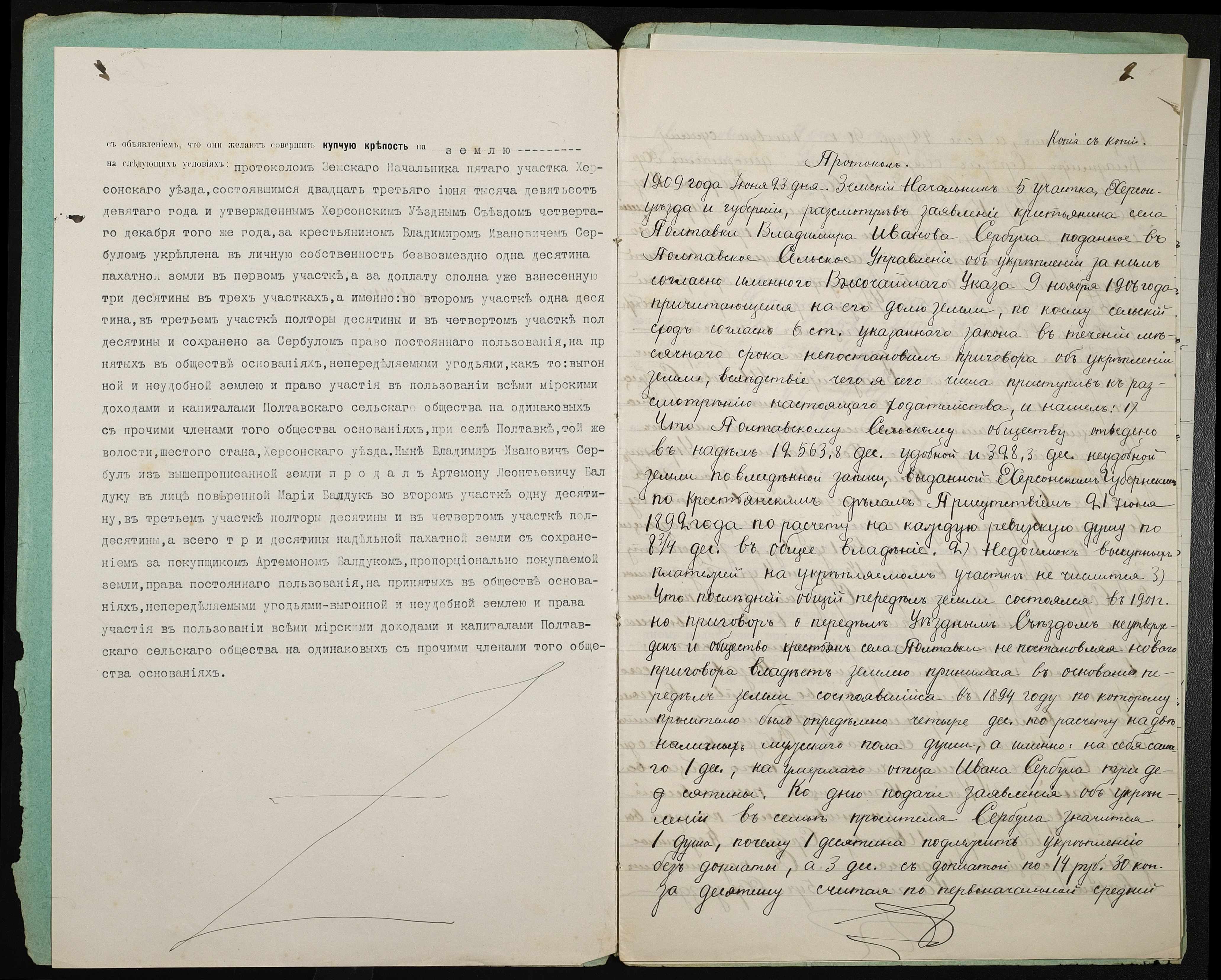 • • • • Справа № 368 “Справа про вчинення купчої про продаж землі селянином Сербулом Володимиром Івановичем (Владимиром Ивановичем) на користь селянина Балдука Артемона Леонтійовича (Леонтьевича)”