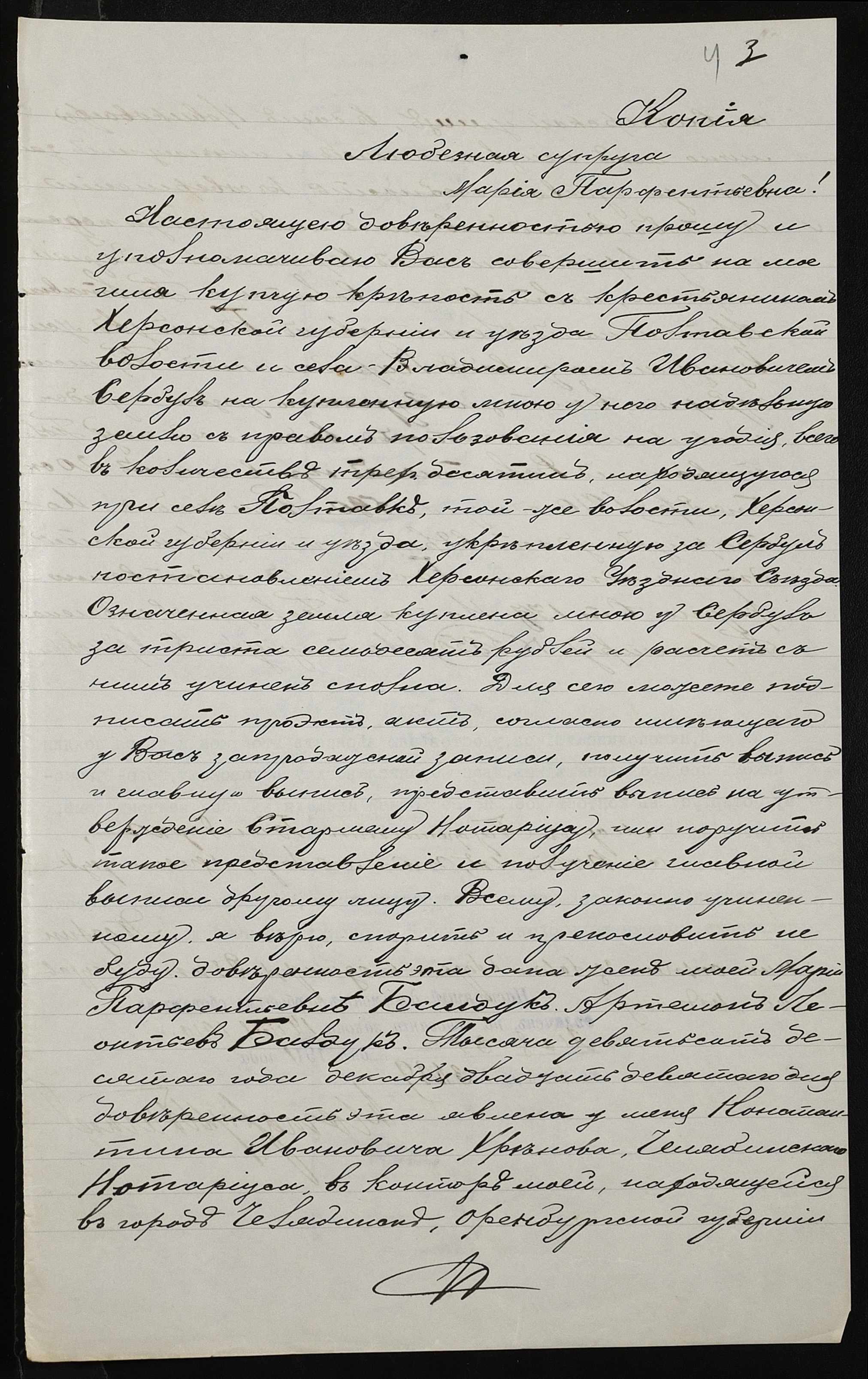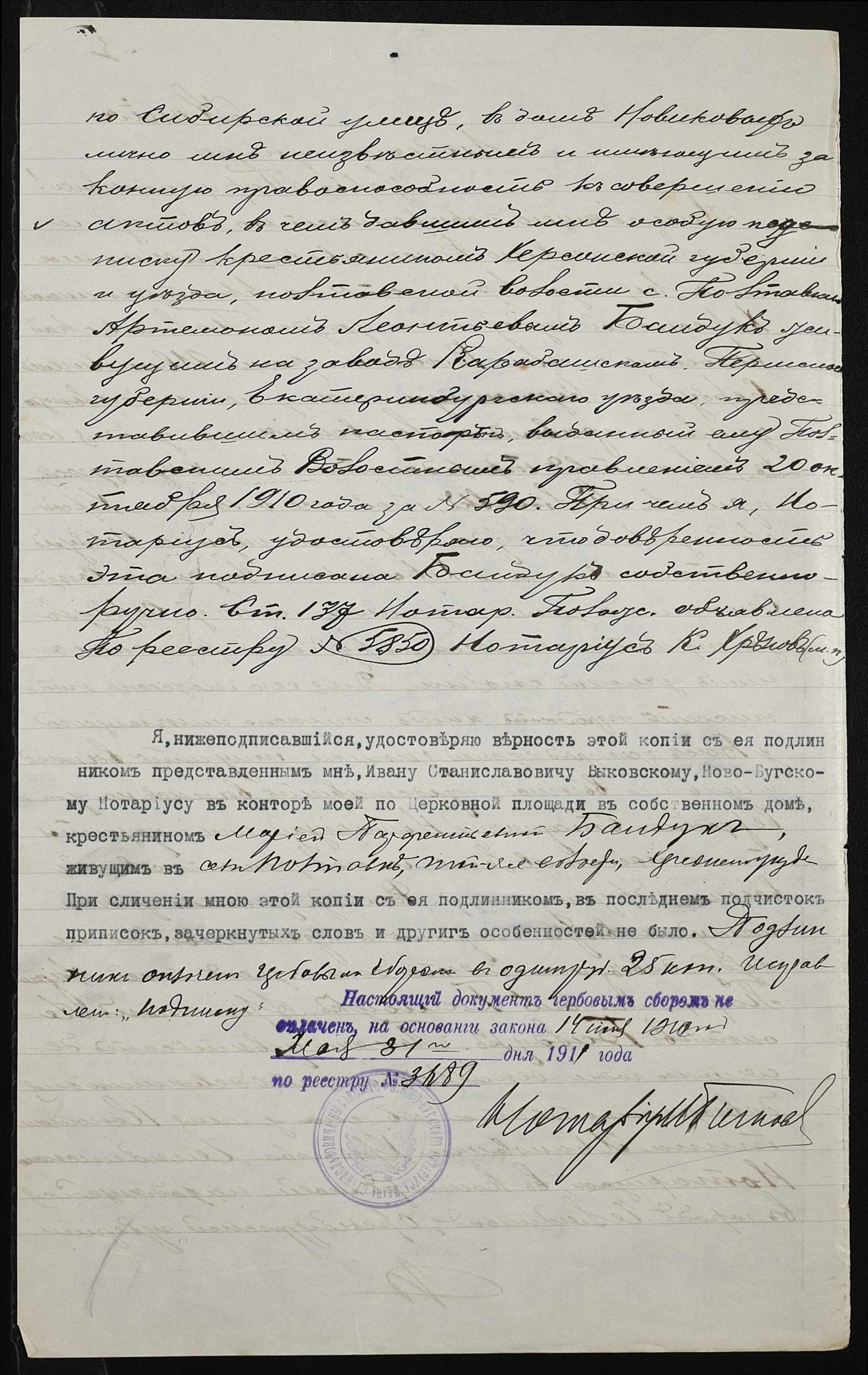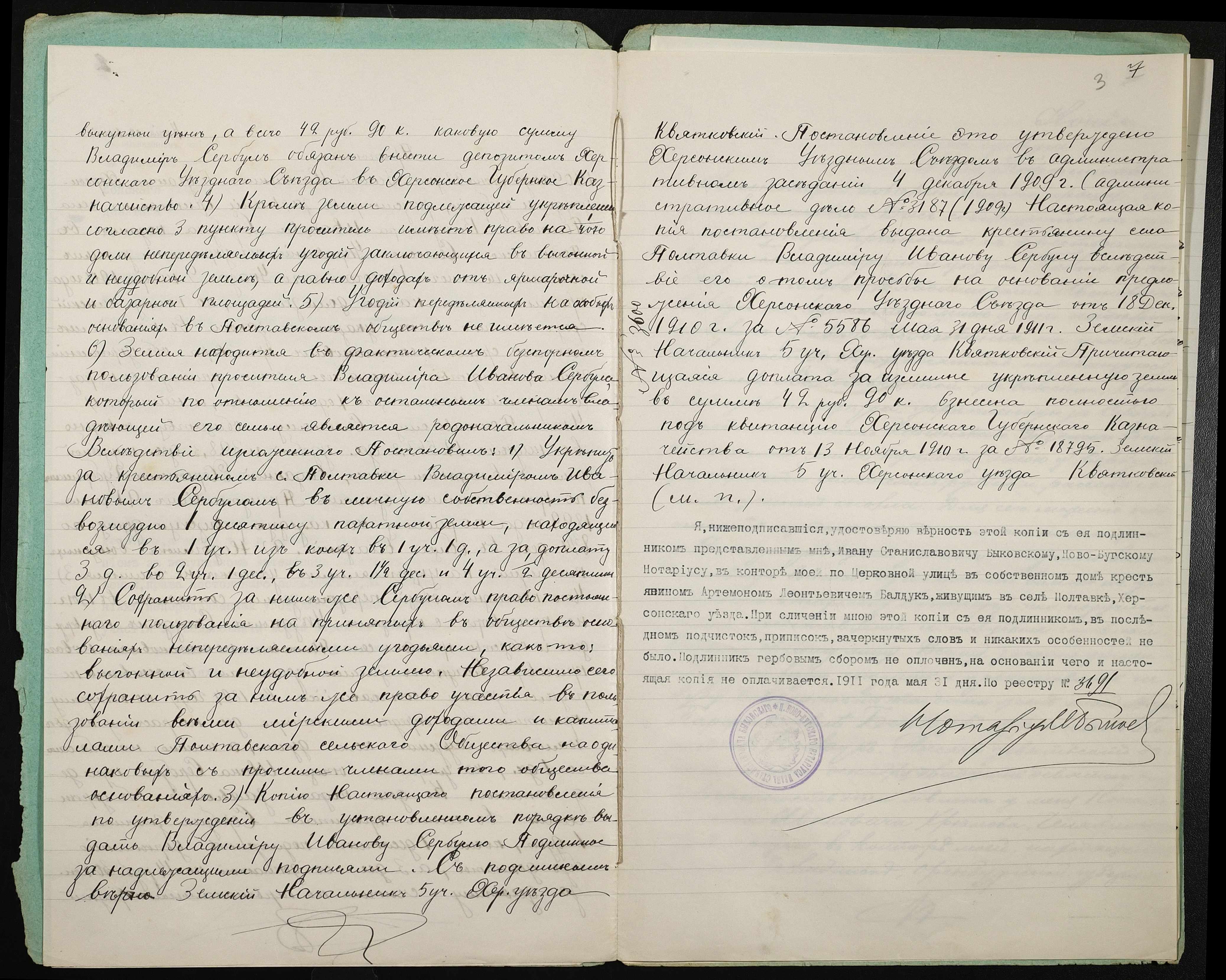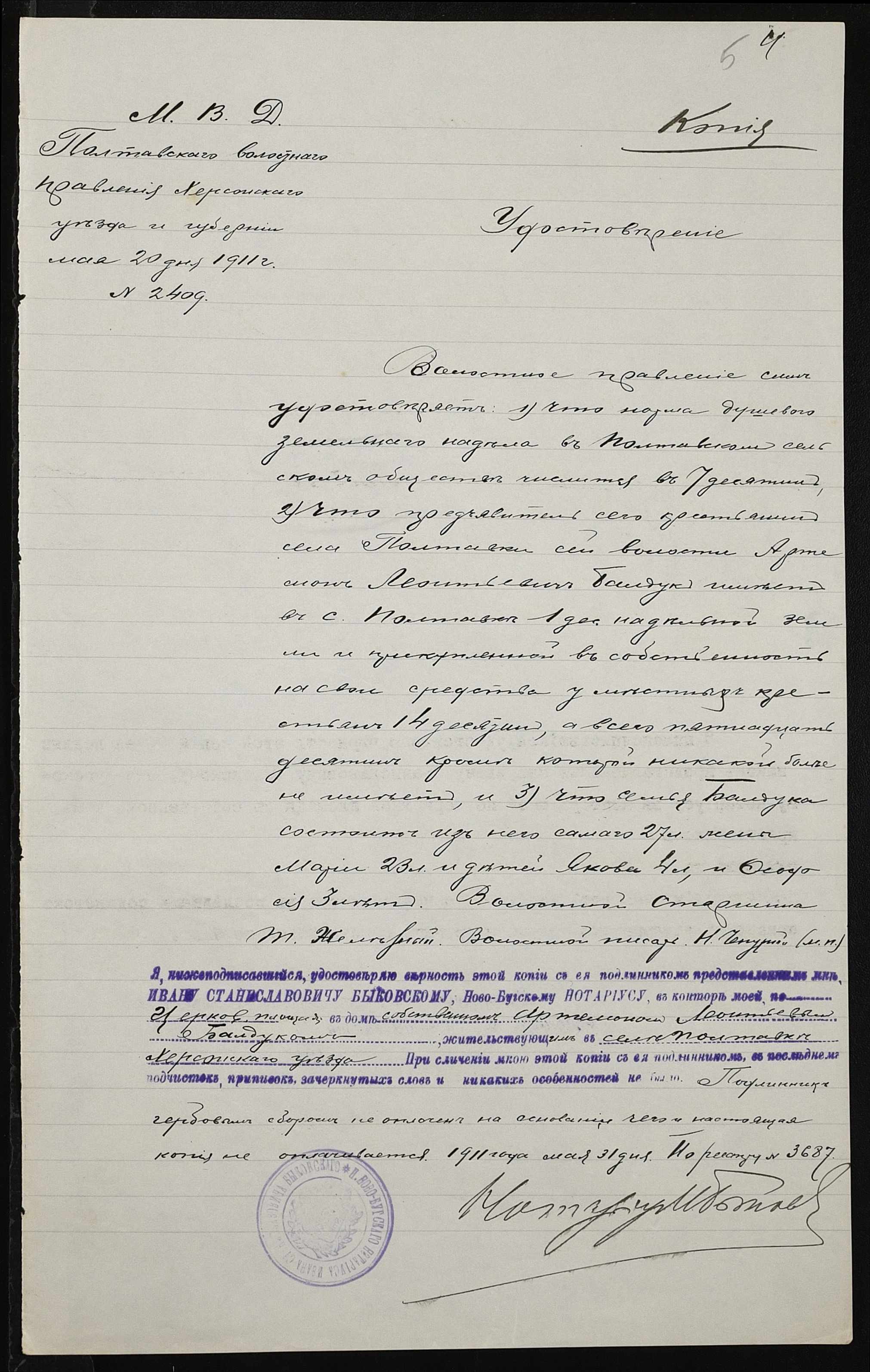 • • • • Справа № 368 “Справа про вчинення купчої про продаж землі селянином Сербулом Володимиром Івановичем (Владимиром Ивановичем) на користь селянина Балдука Артемона Леонтійовича (Леонтьевича)”