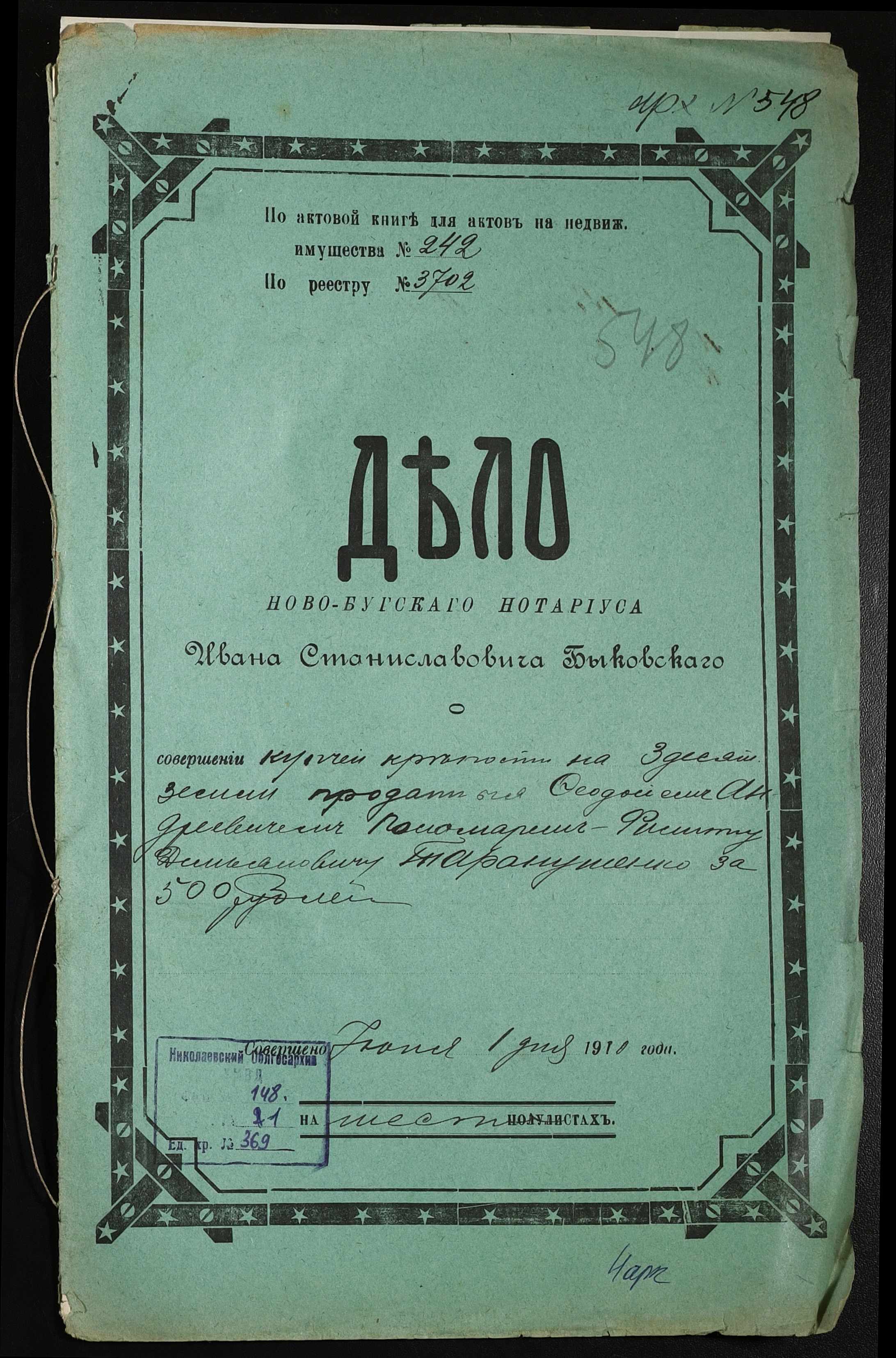 ◦ ◦ Фонд № 148 “Контора новобузького нотаріуса Биковського Івана Станіславовича”