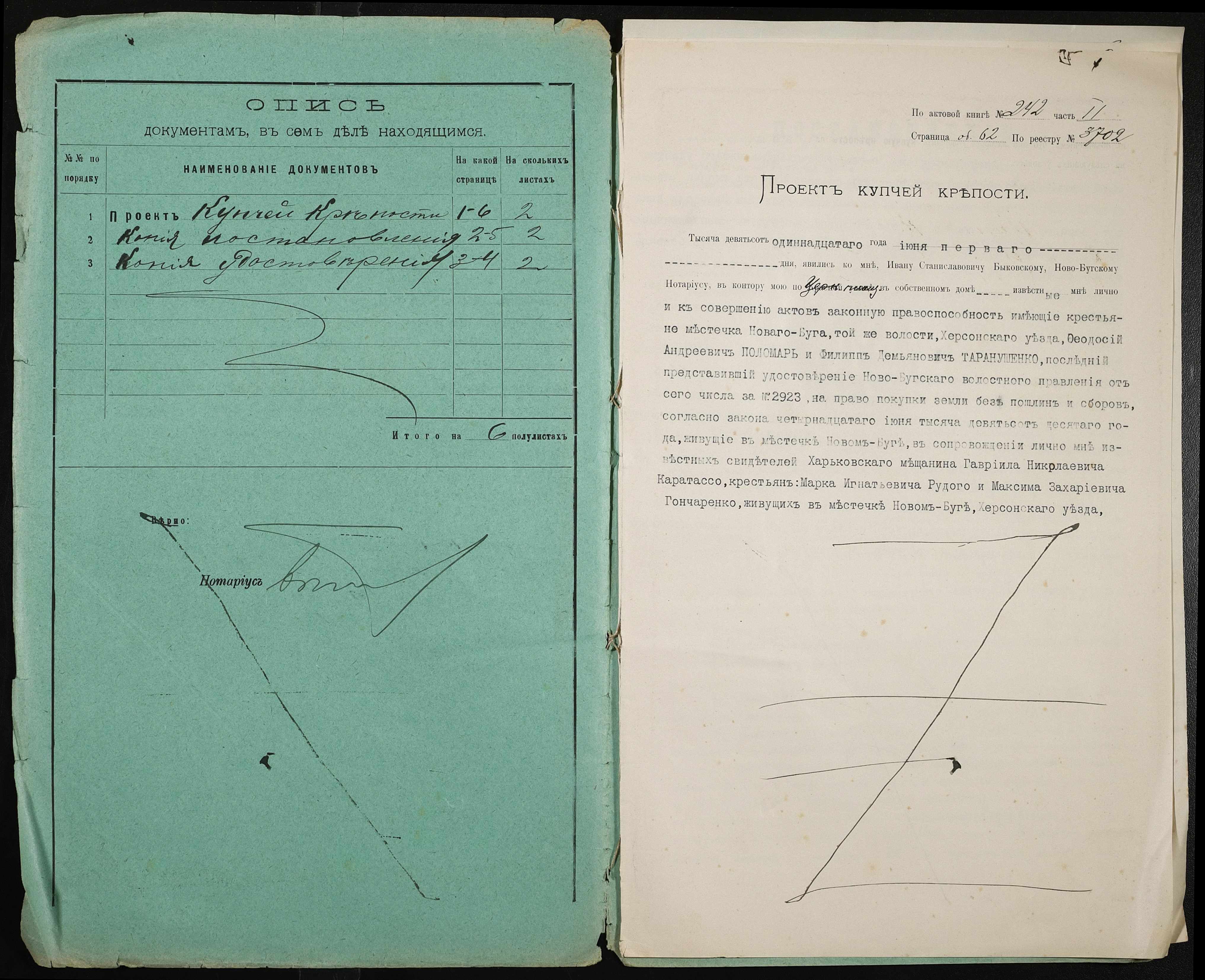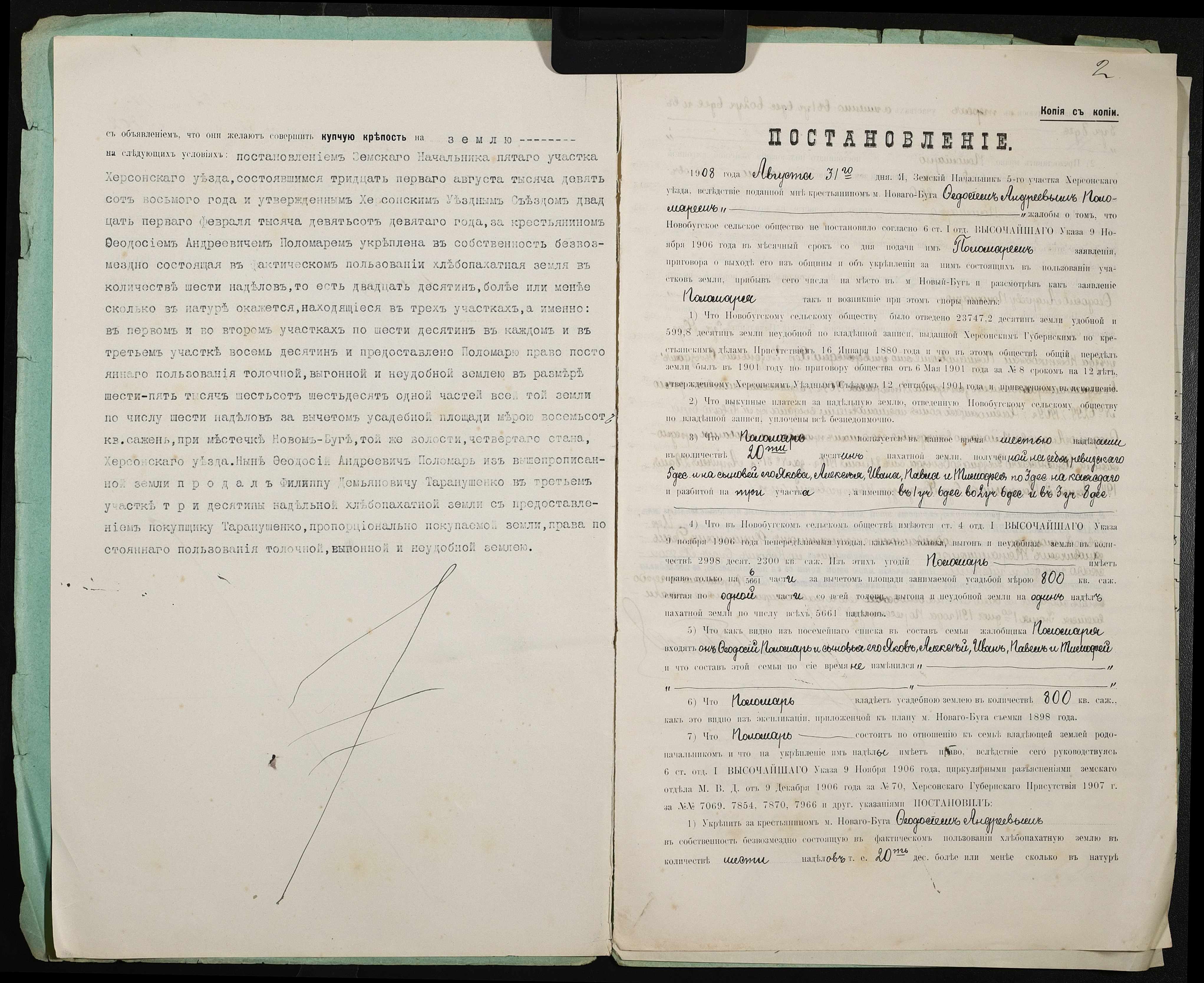 • • • • Справа № 369 “Справа про вчинення купчої про продаж землі селянином Поломарем Феодосієм Андрійовичем (Феодосием Андреевичем) на користь селянина Таранушенка Пилипа Дем’яновича (Таранущенко Филиппа Демьяновича)”