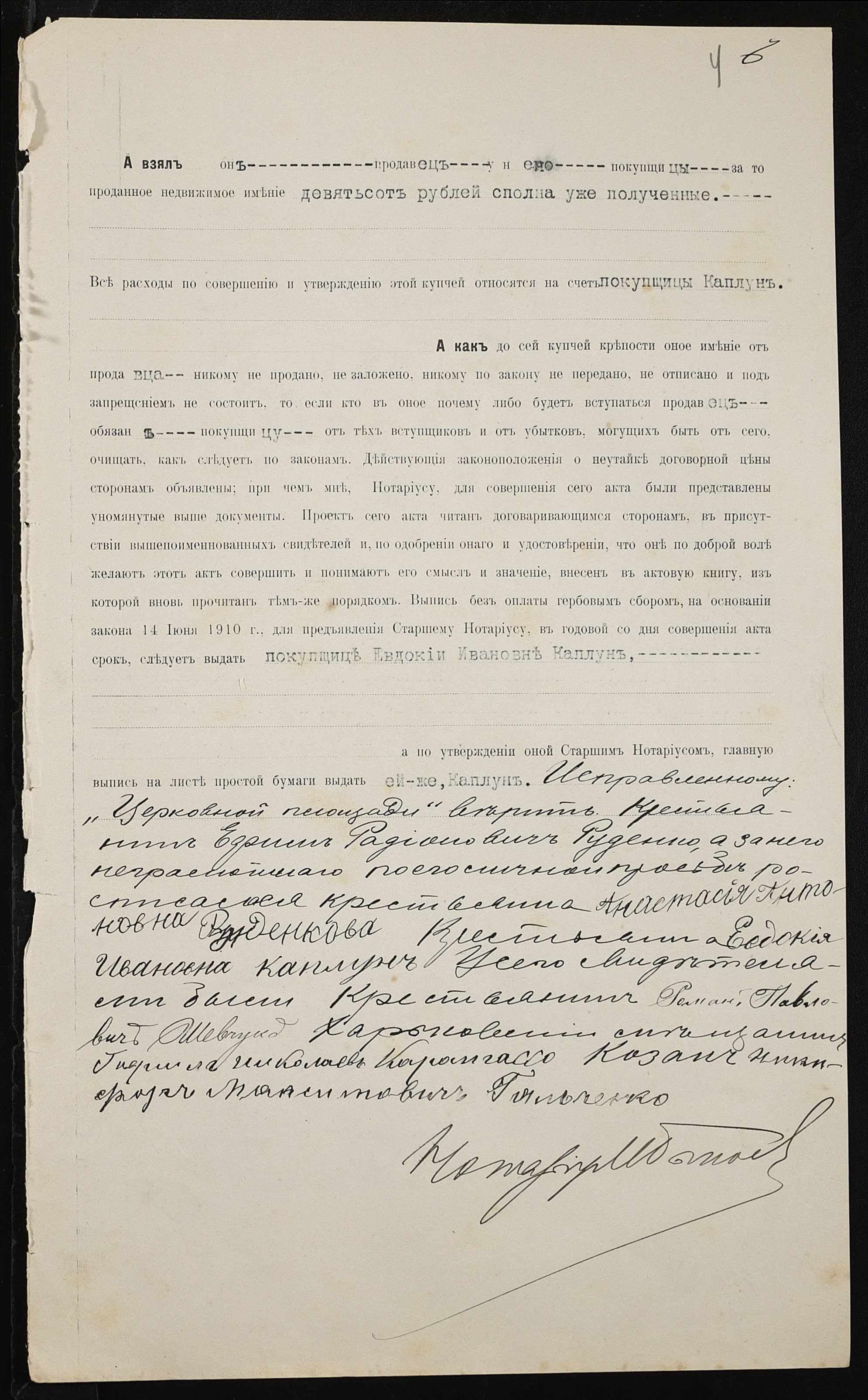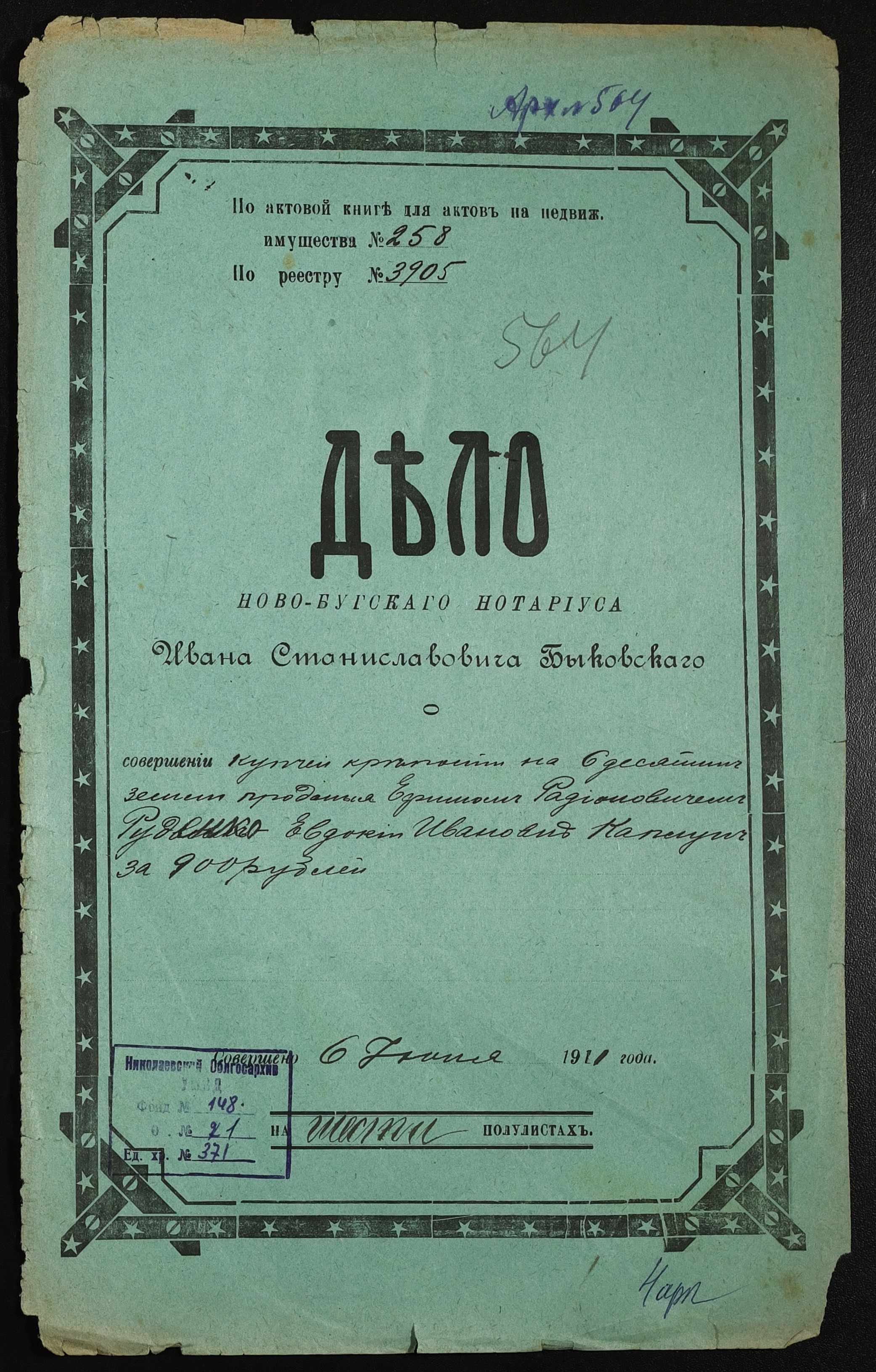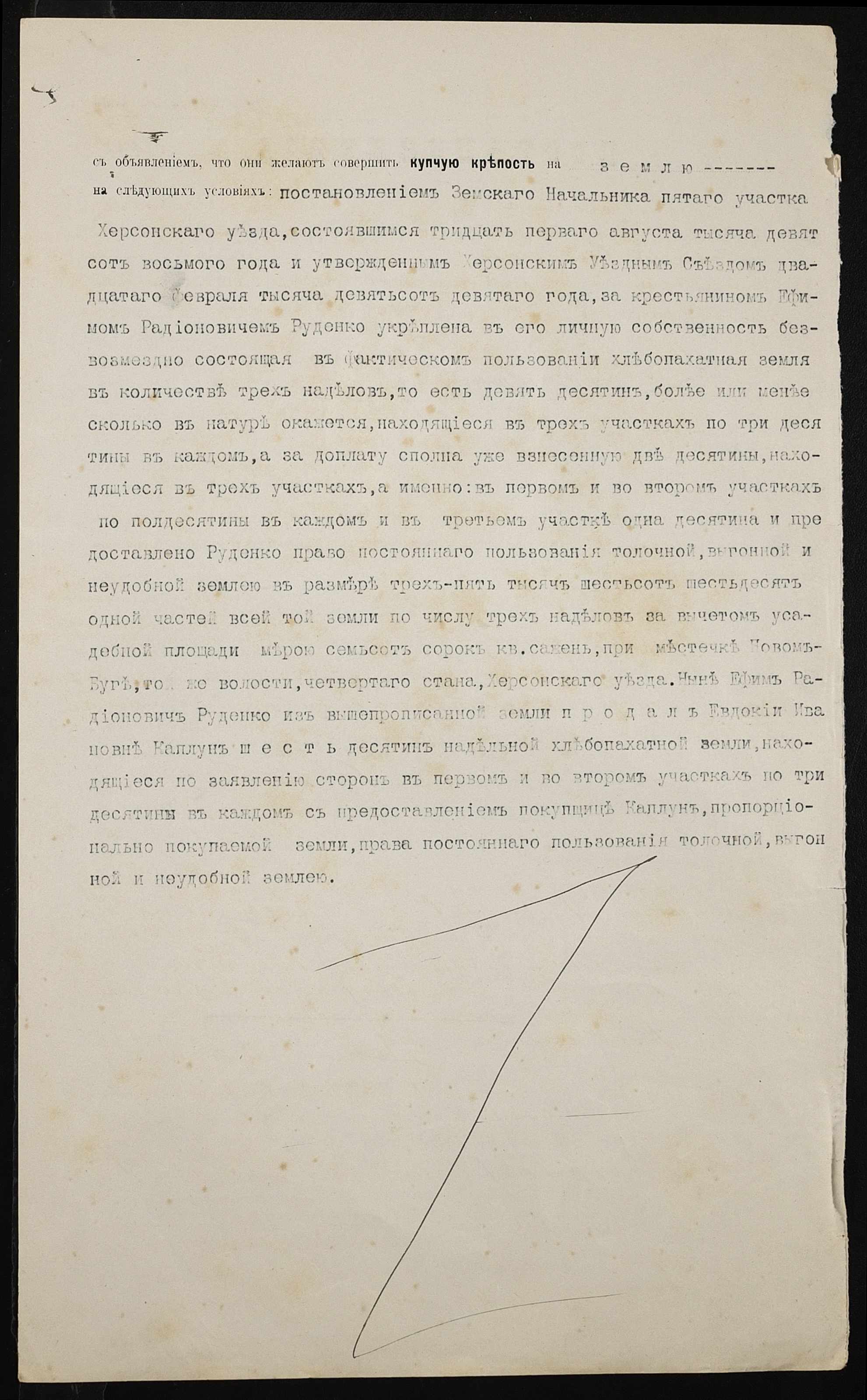 • • • • Справа № 371 “Справа про вчинення купчої про продаж землі селянином Руденком Юхимом Радіоновичем (Руденко Ефимом Радионовичем) на користь селянки Каплун Євдокії Іванівни (Евдокии Ивановны)”