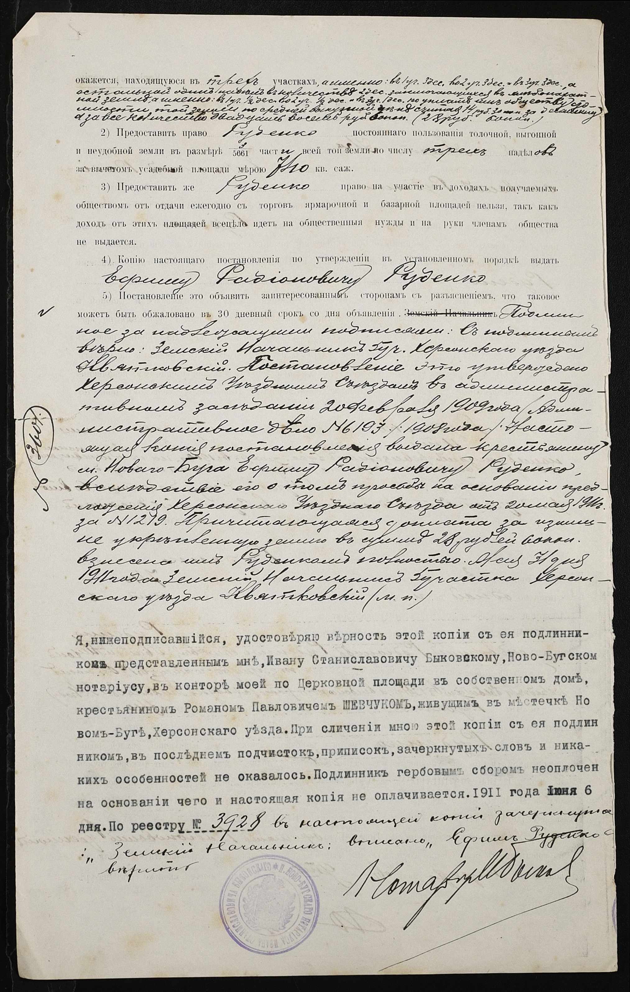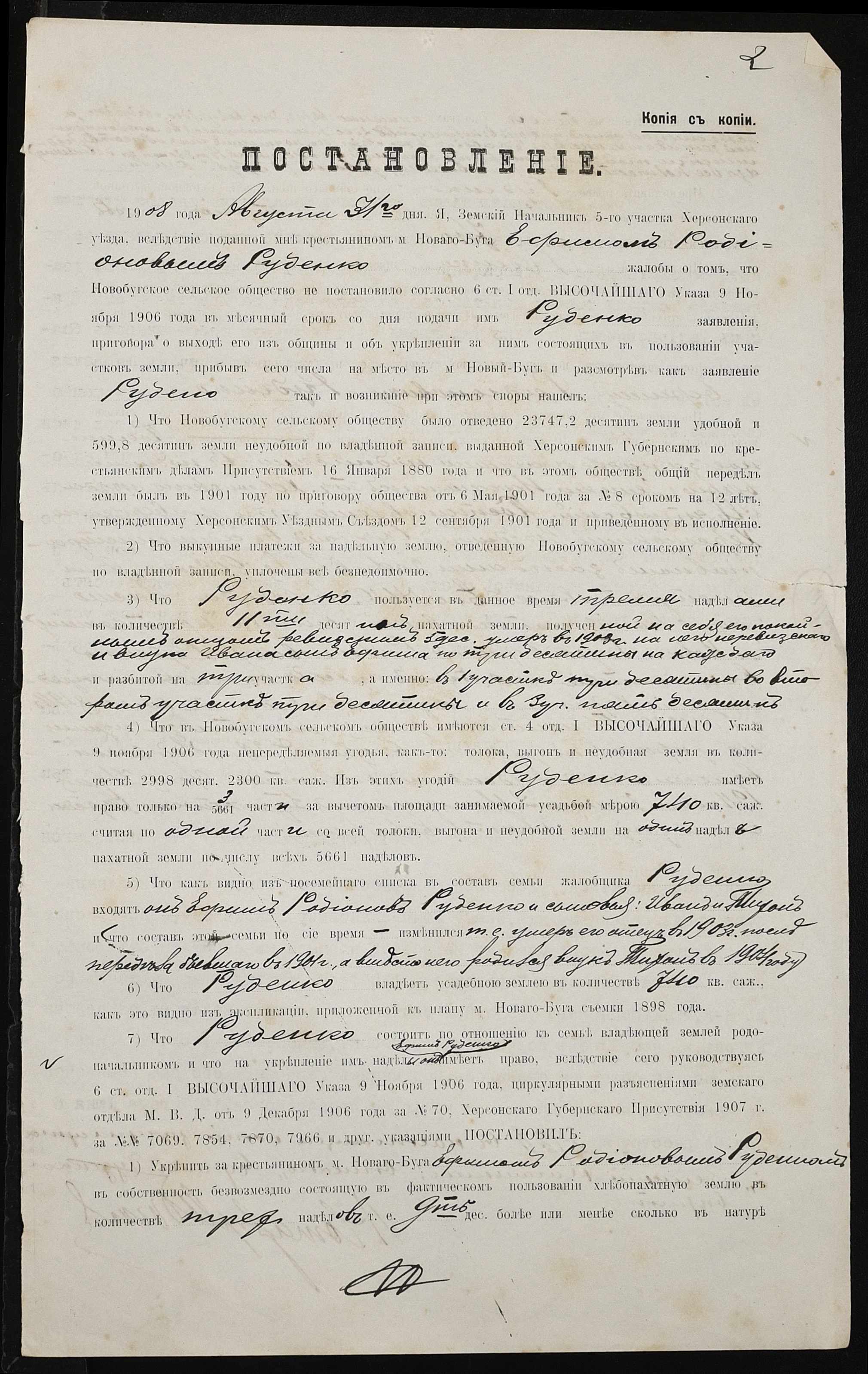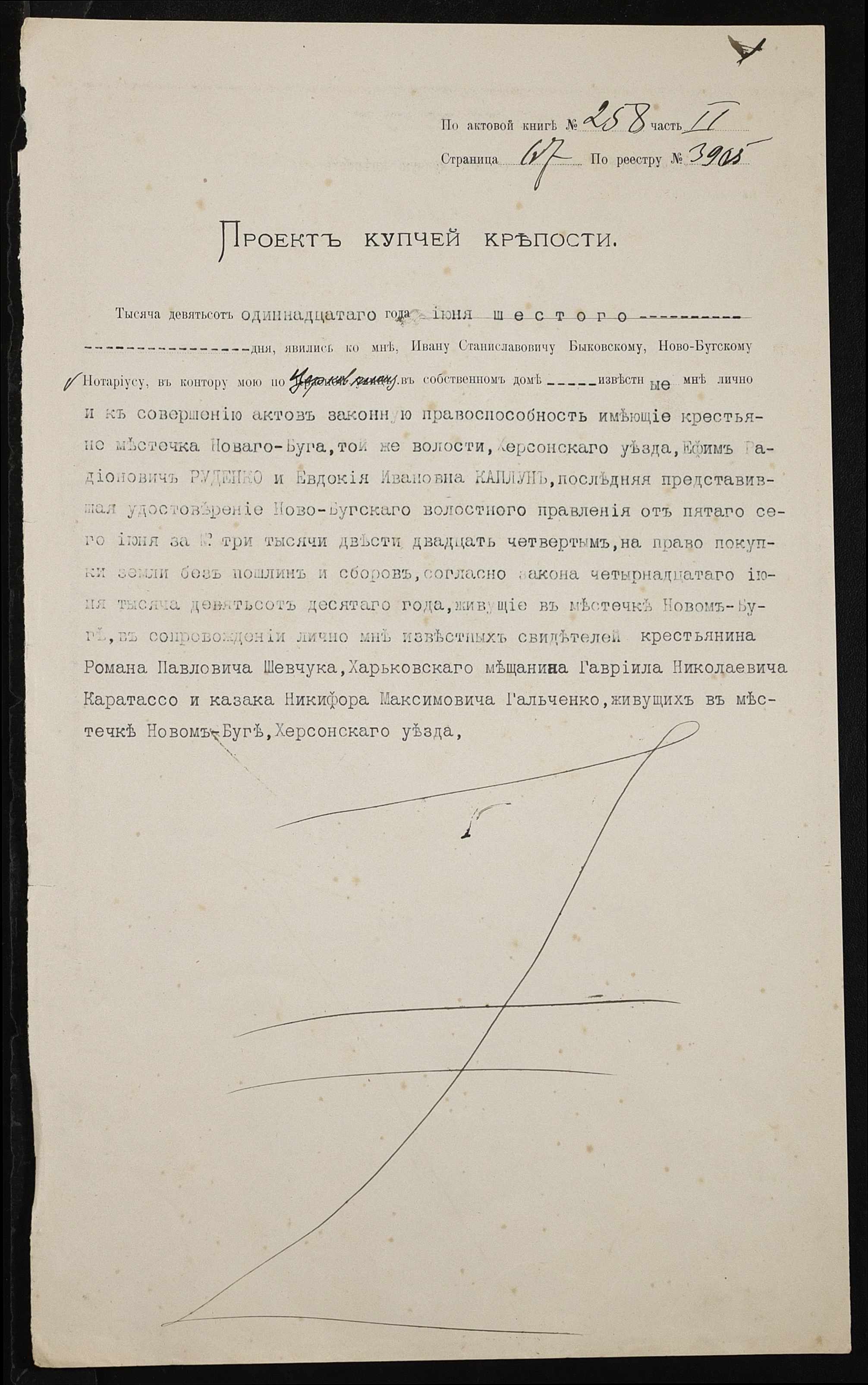 • • • • Справа № 371 “Справа про вчинення купчої про продаж землі селянином Руденком Юхимом Радіоновичем (Руденко Ефимом Радионовичем) на користь селянки Каплун Євдокії Іванівни (Евдокии Ивановны)”