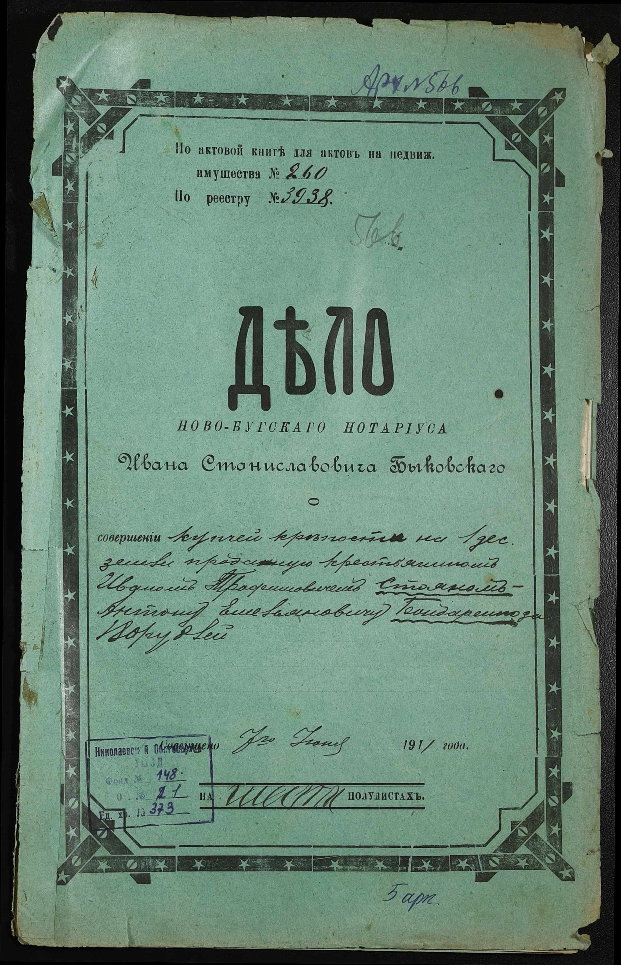 ◦ ◦ Фонд № 148 “Контора новобузького нотаріуса Биковського Івана Станіславовича”