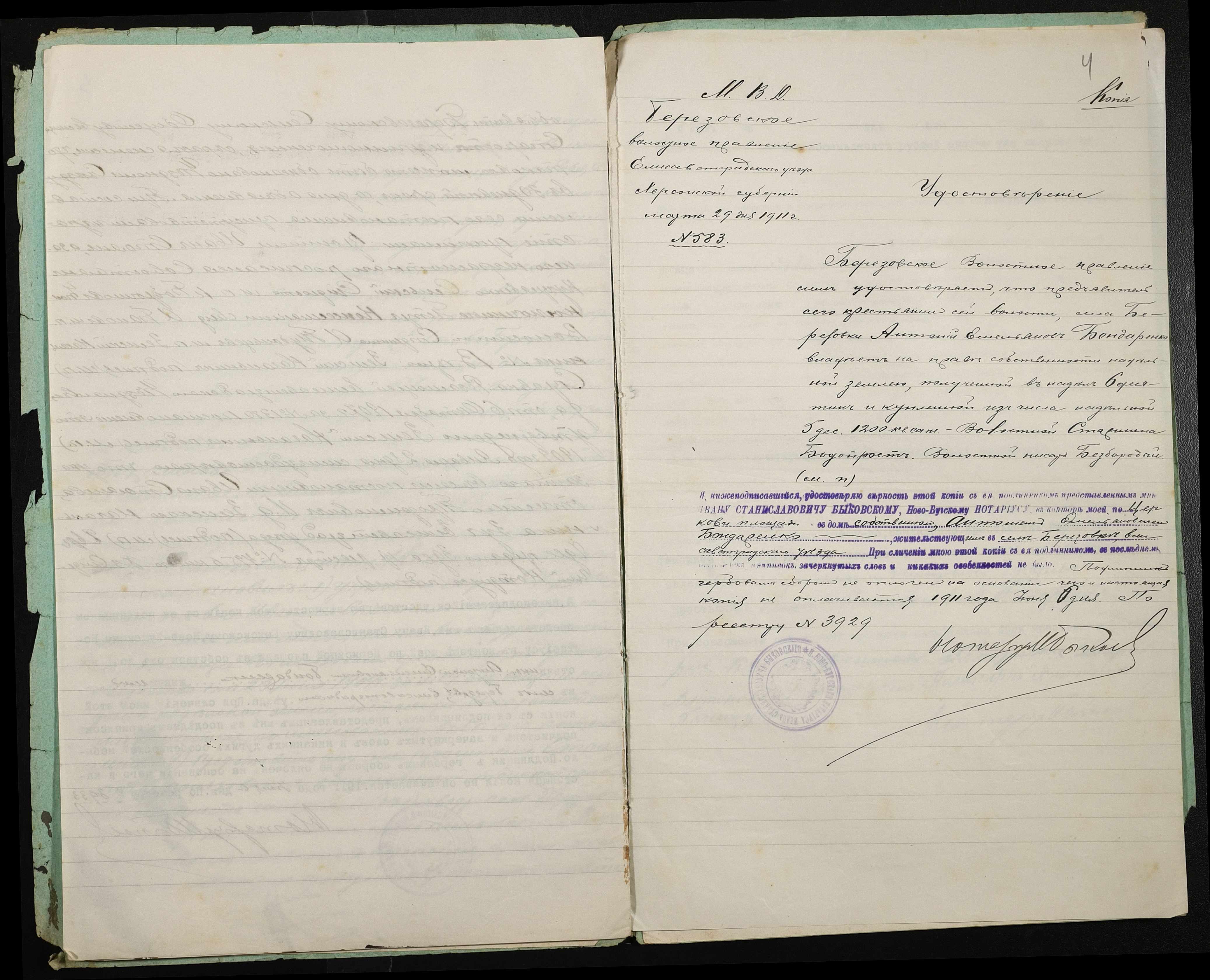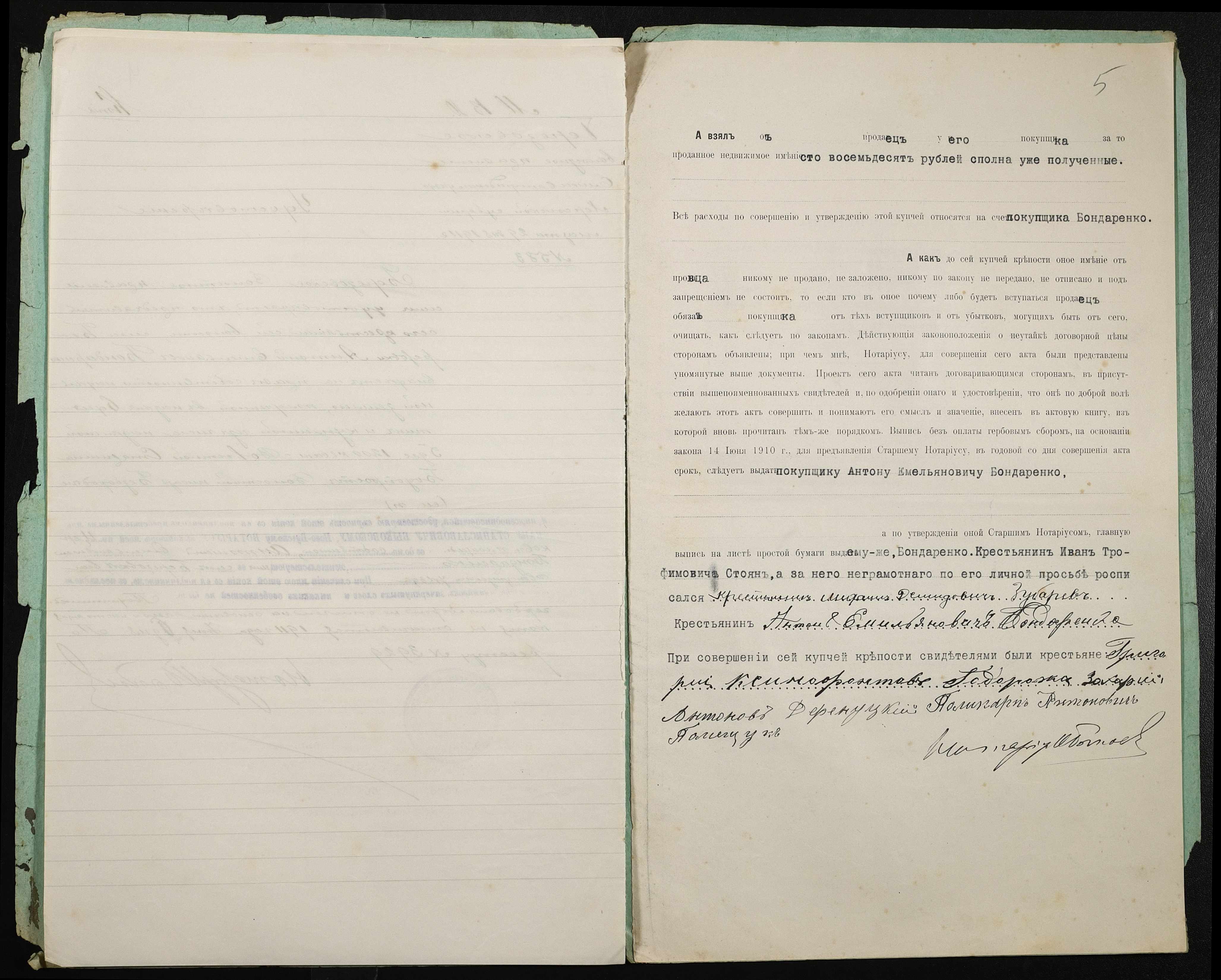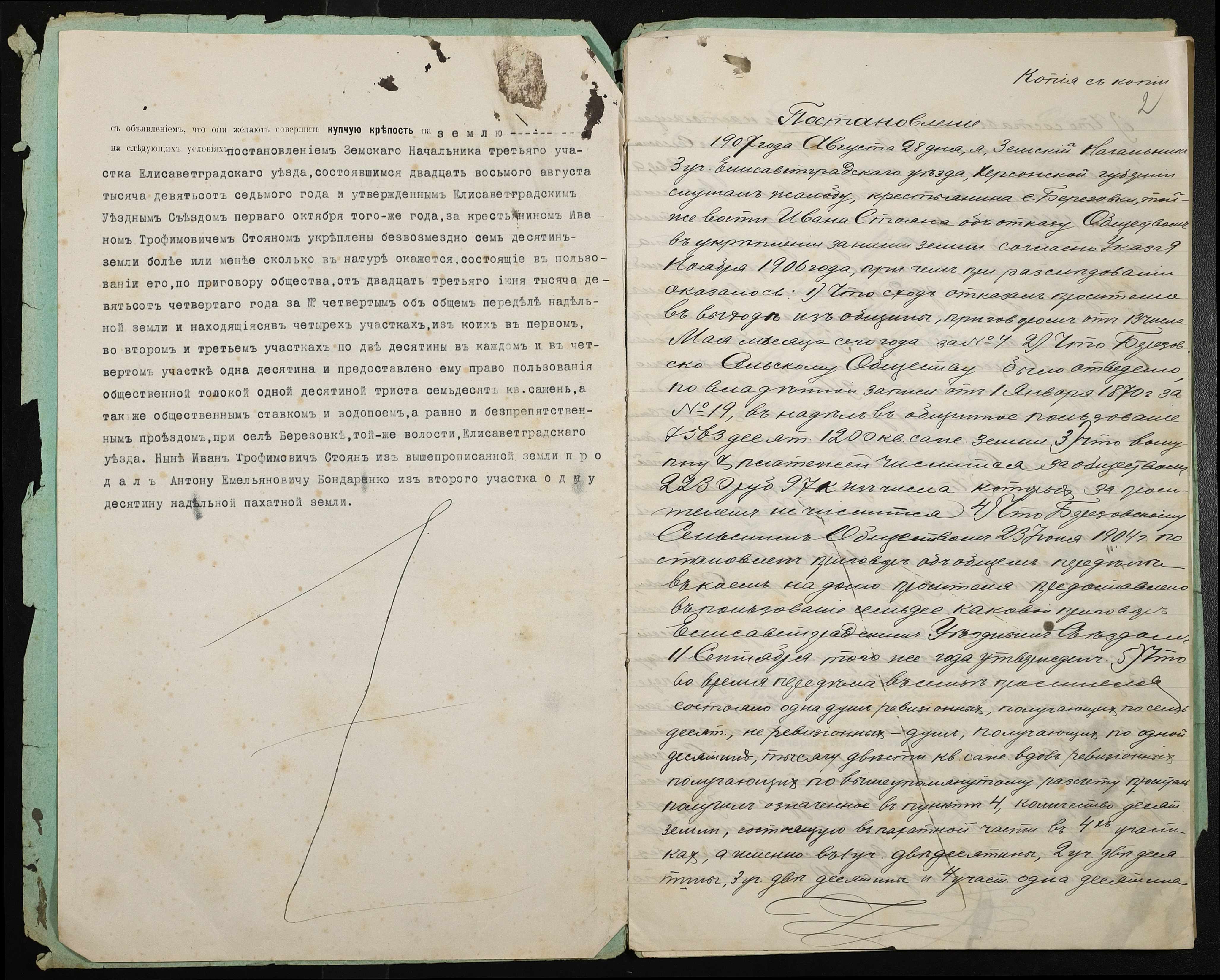 • • • • Справа № 373 “Справа про вчинення купчої про продаж землі селянином Стояном Іваном Трохимовичем (Иваном Трофимовичем) на користь селянина Бондаренка (Бондаренко) Антона Омеляновича (Емельяновича)”