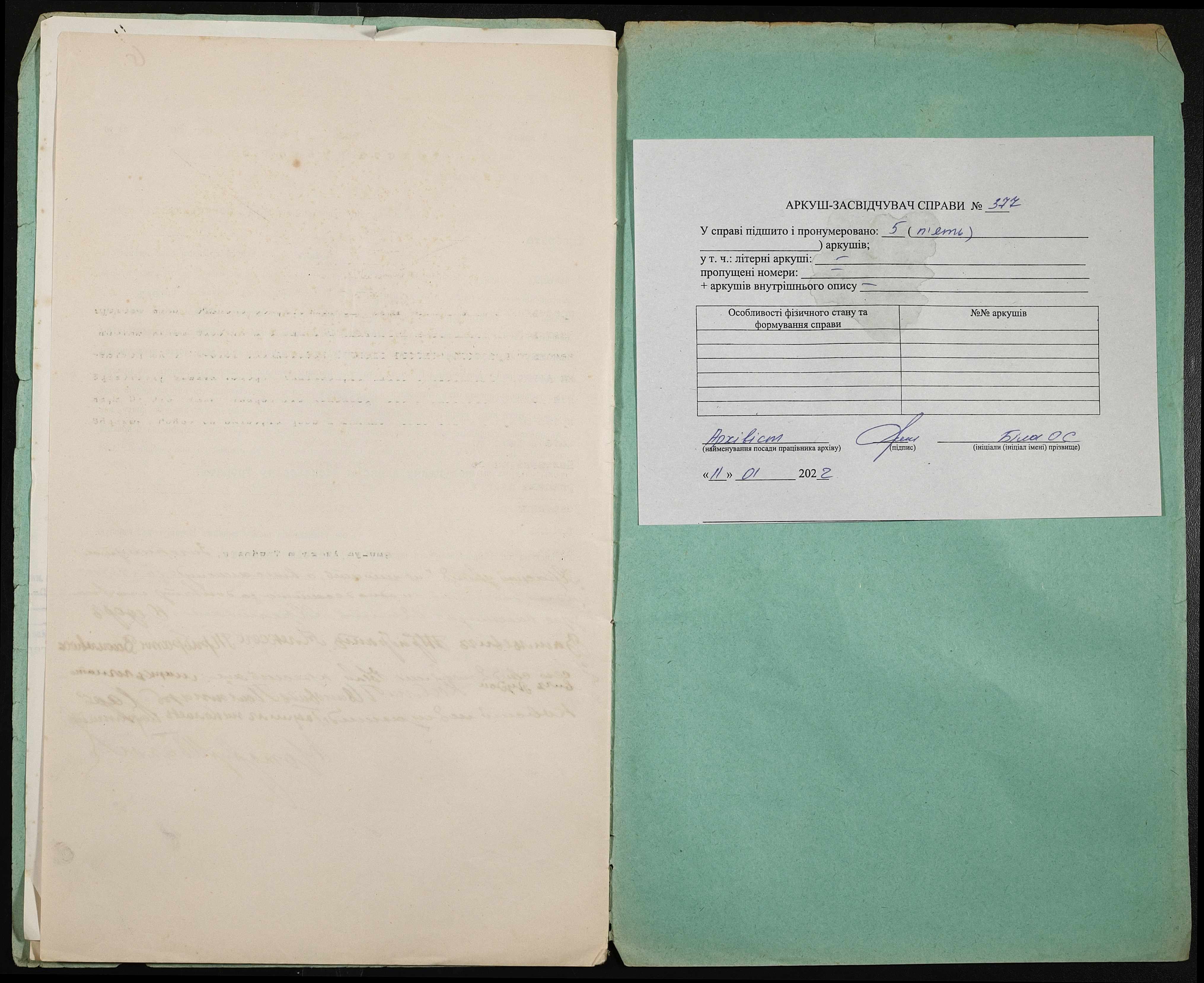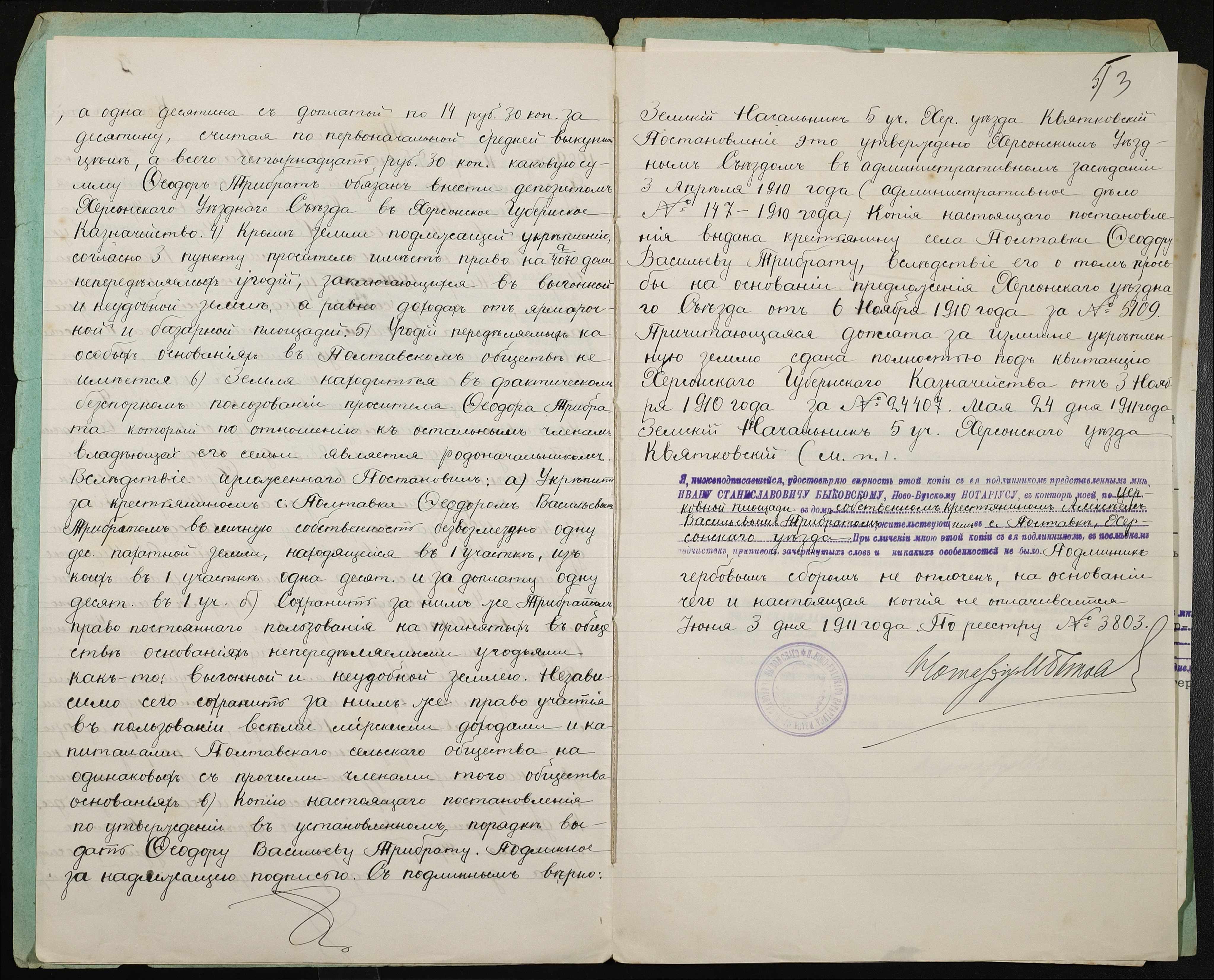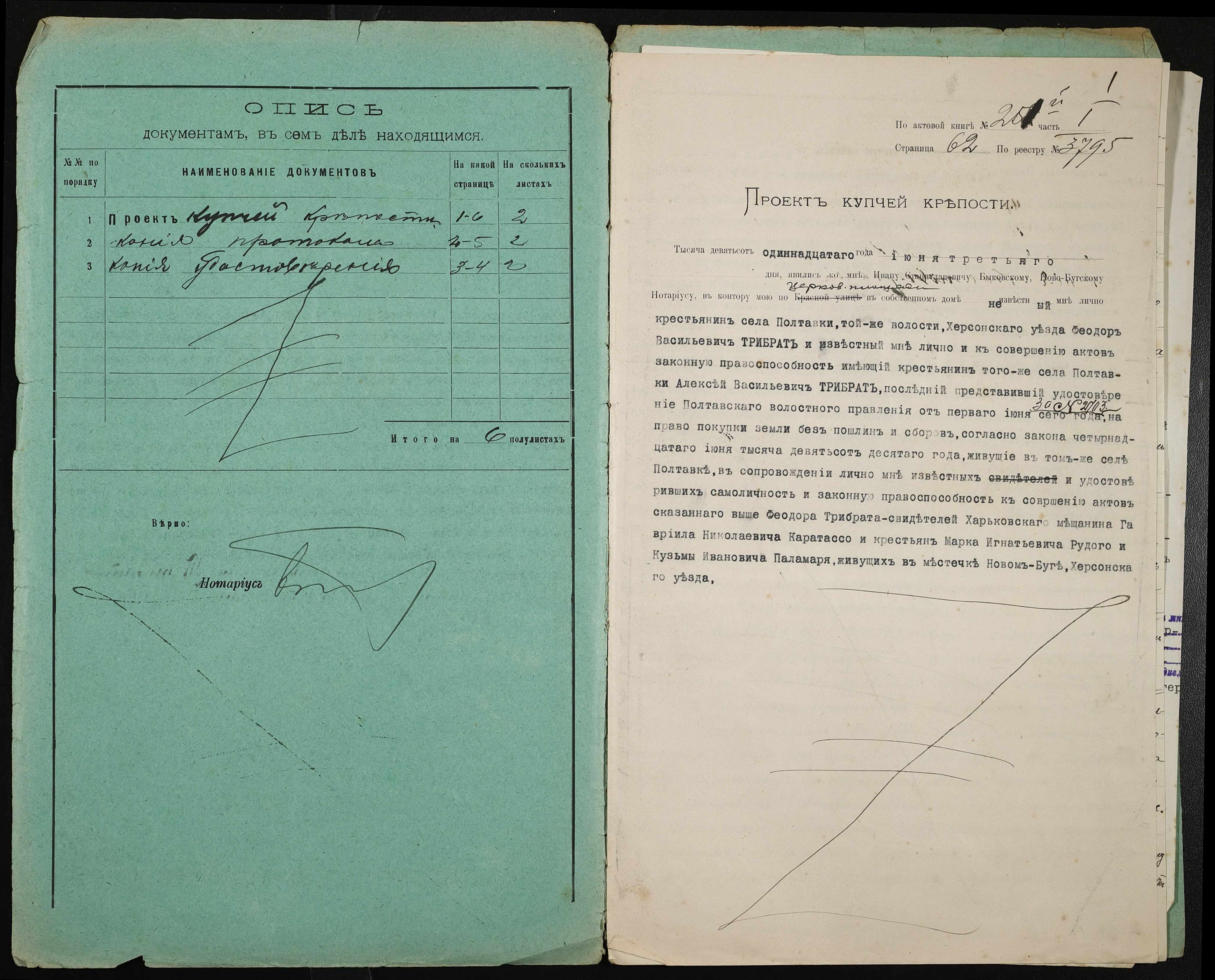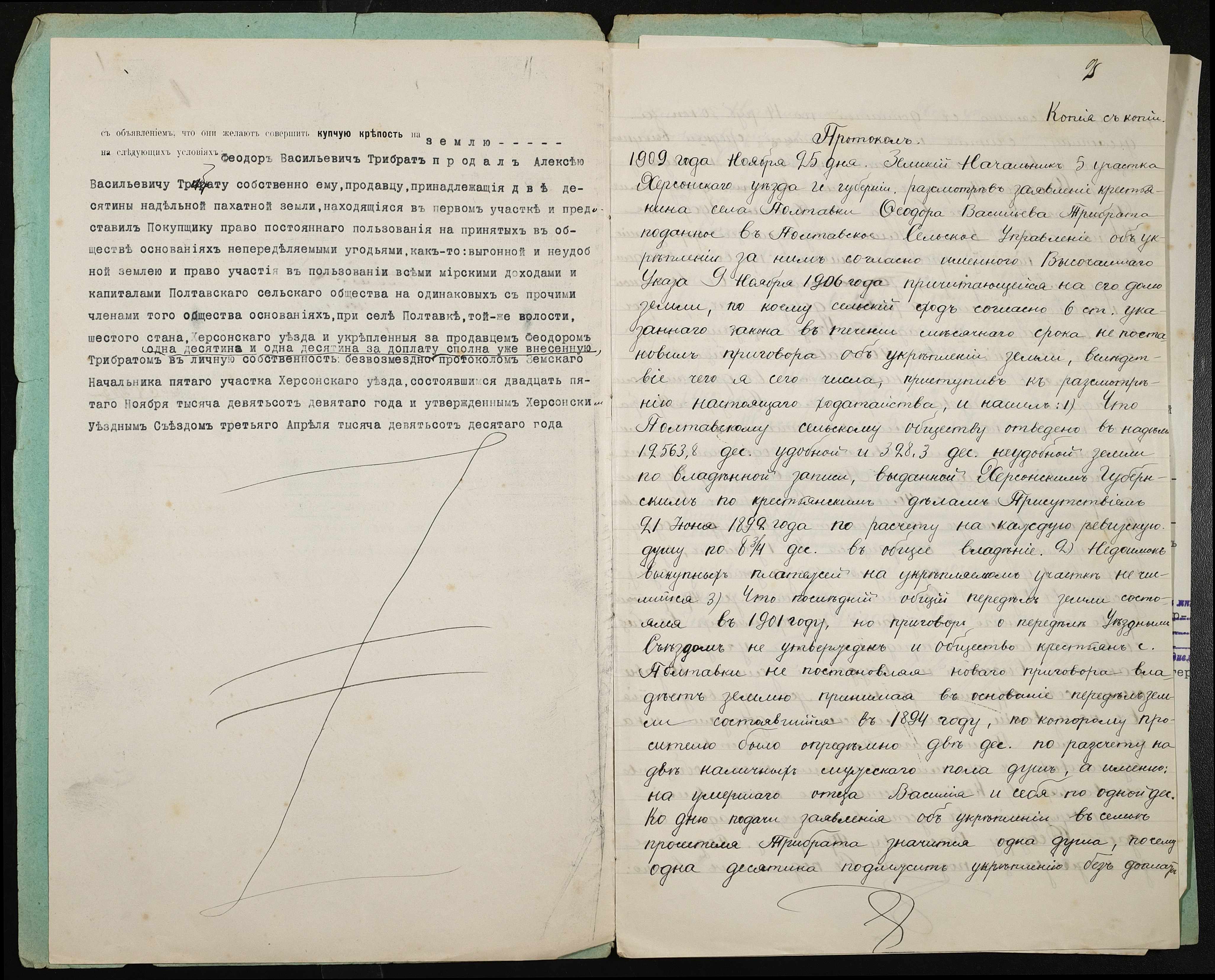 • • • • Справа № 377 “Справа про вчинення купчої про продаж землі селянином Трибратом Федором Васильовичем (Васильевичем) на користь селянина Трибрата Олексія Васильовича (Алексея Васильевича)”