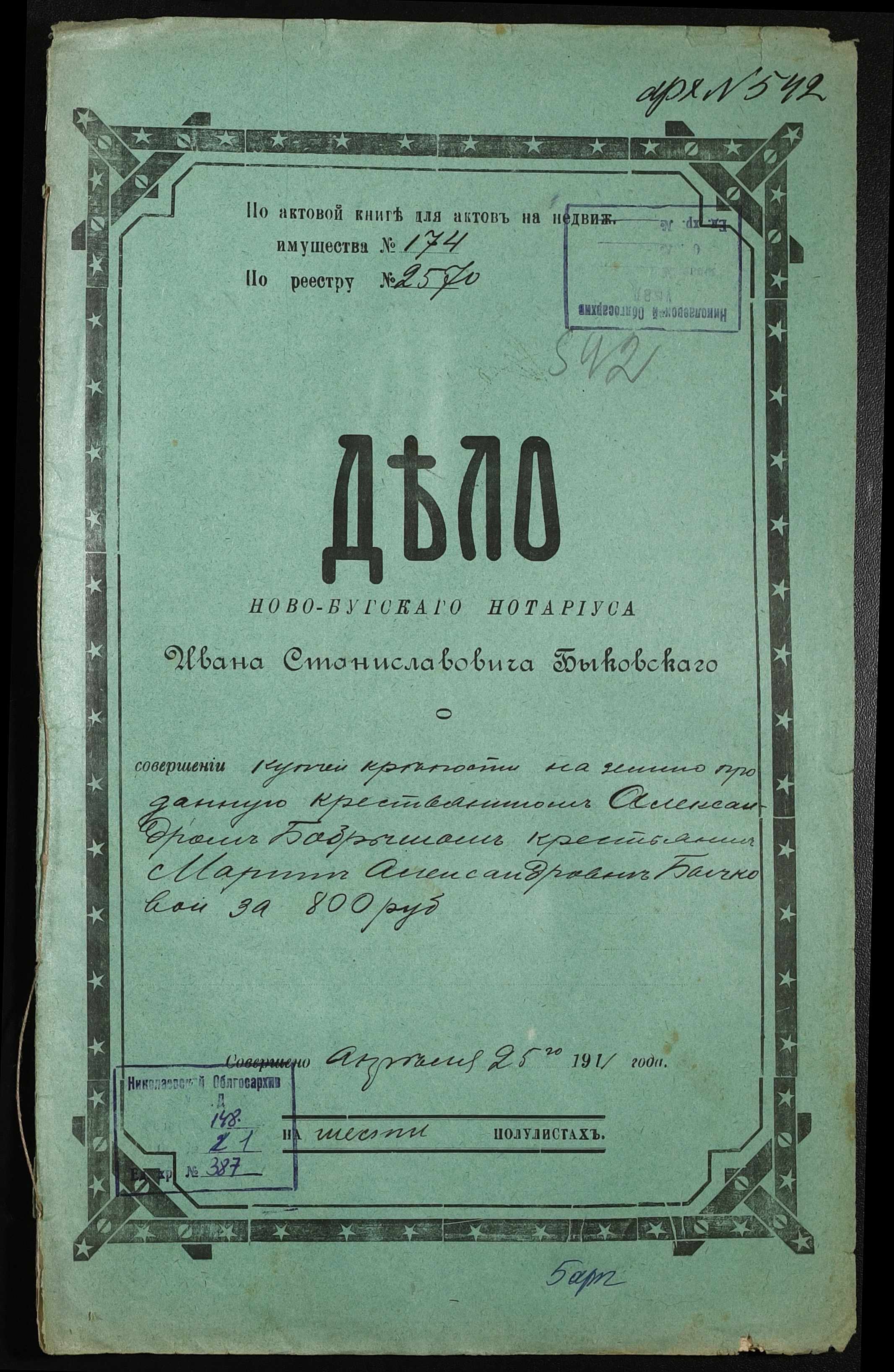 ◦ ◦ Фонд № 148 “Контора новобузького нотаріуса Биковського Івана Станіславовича”
