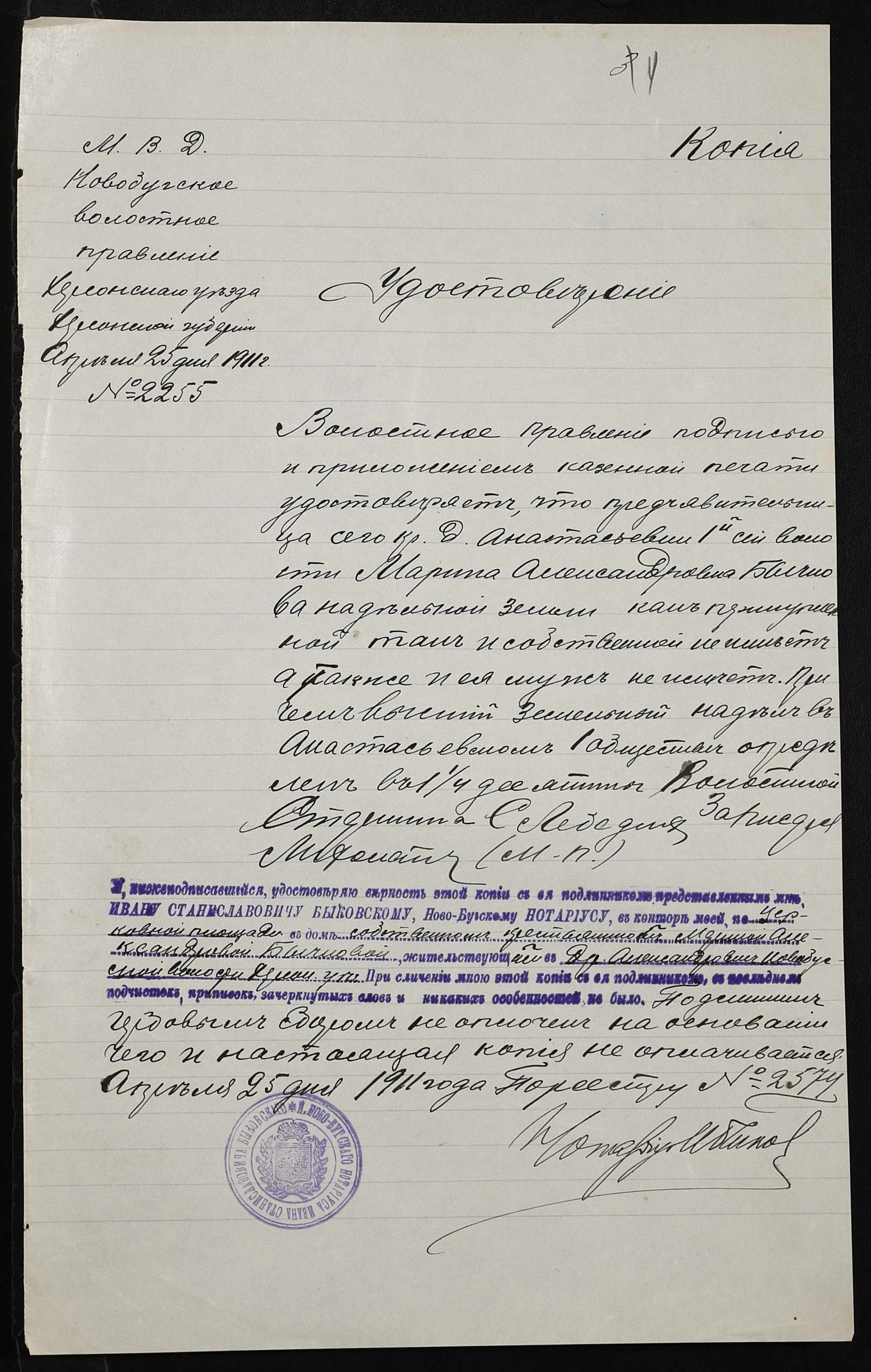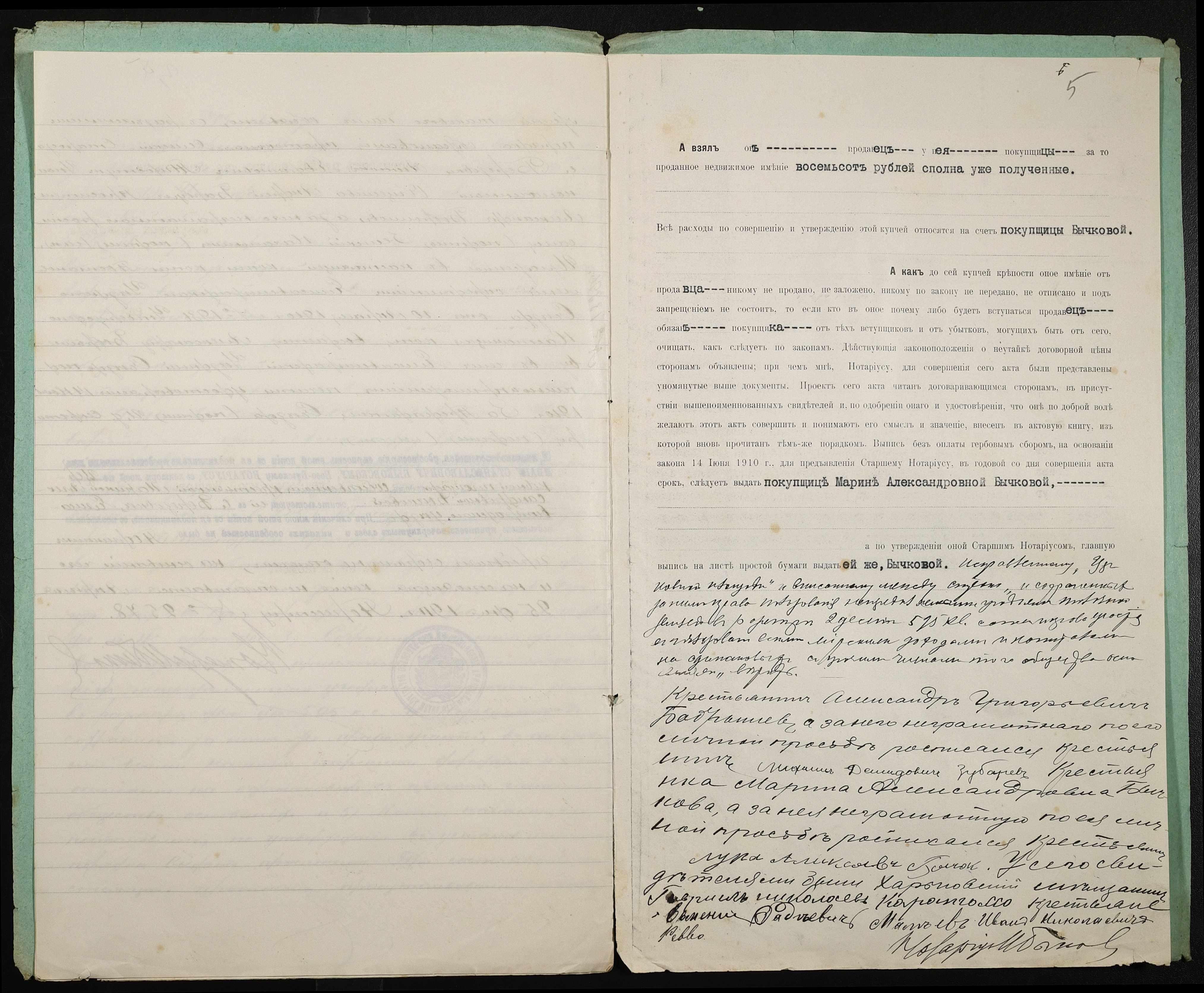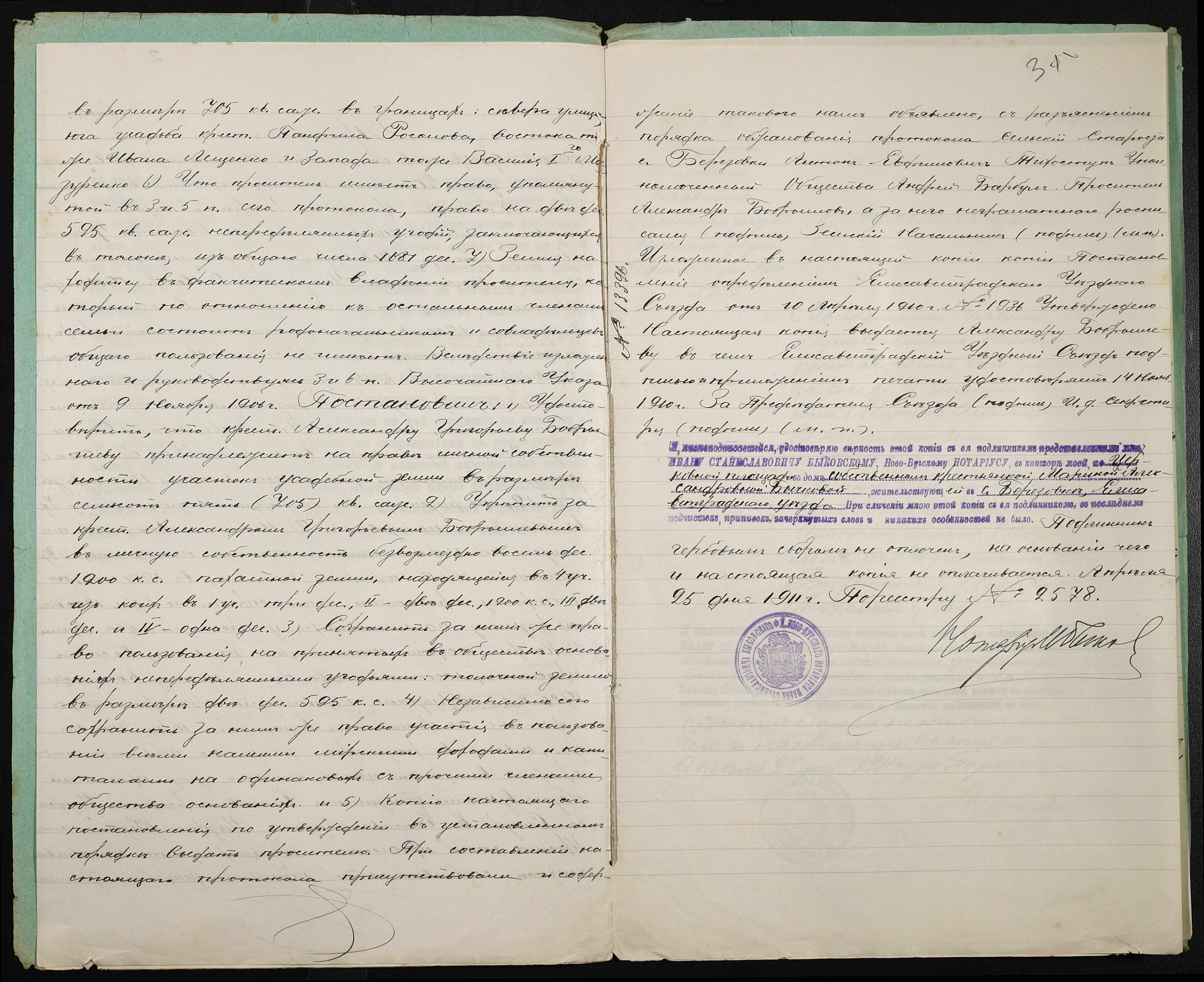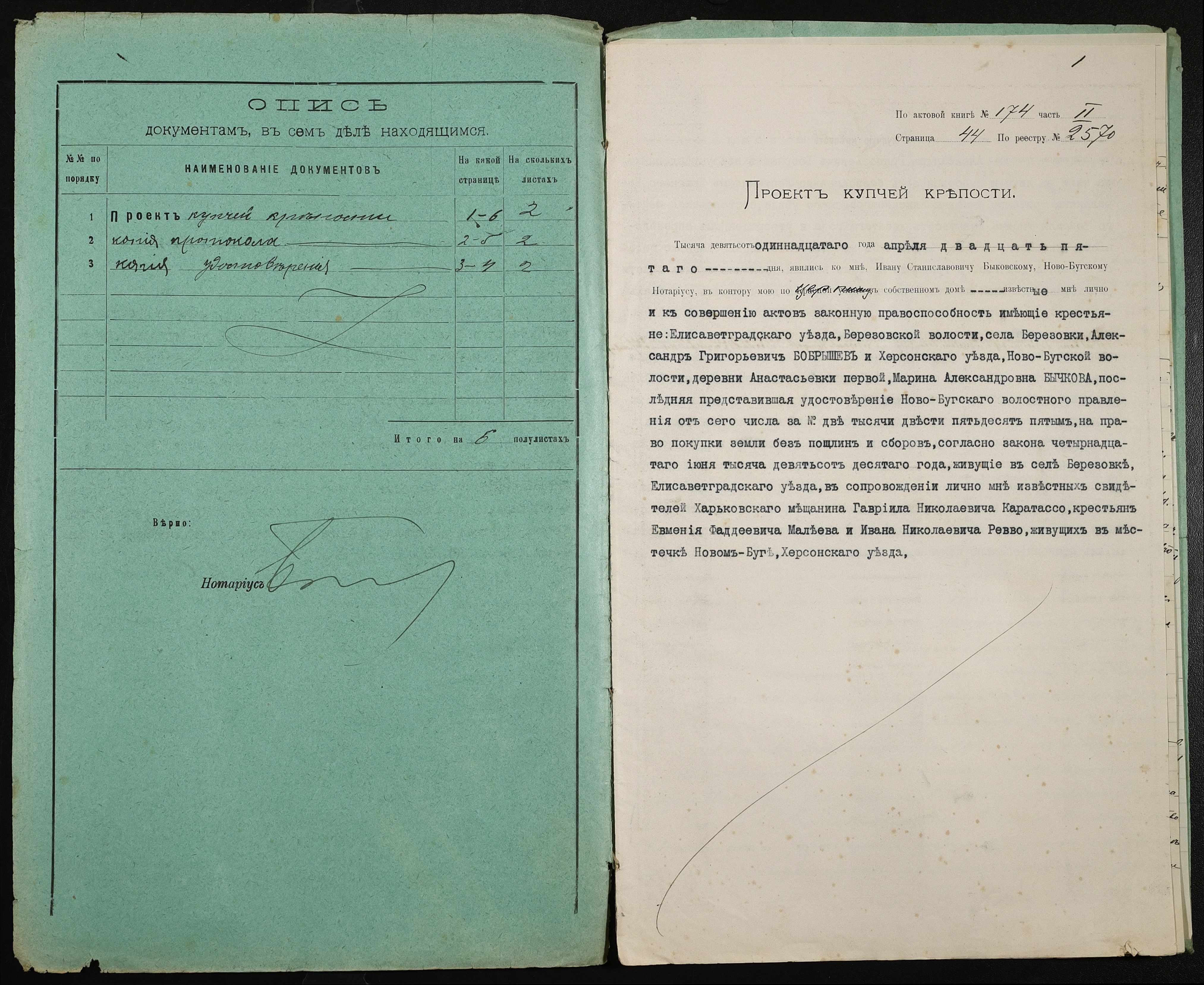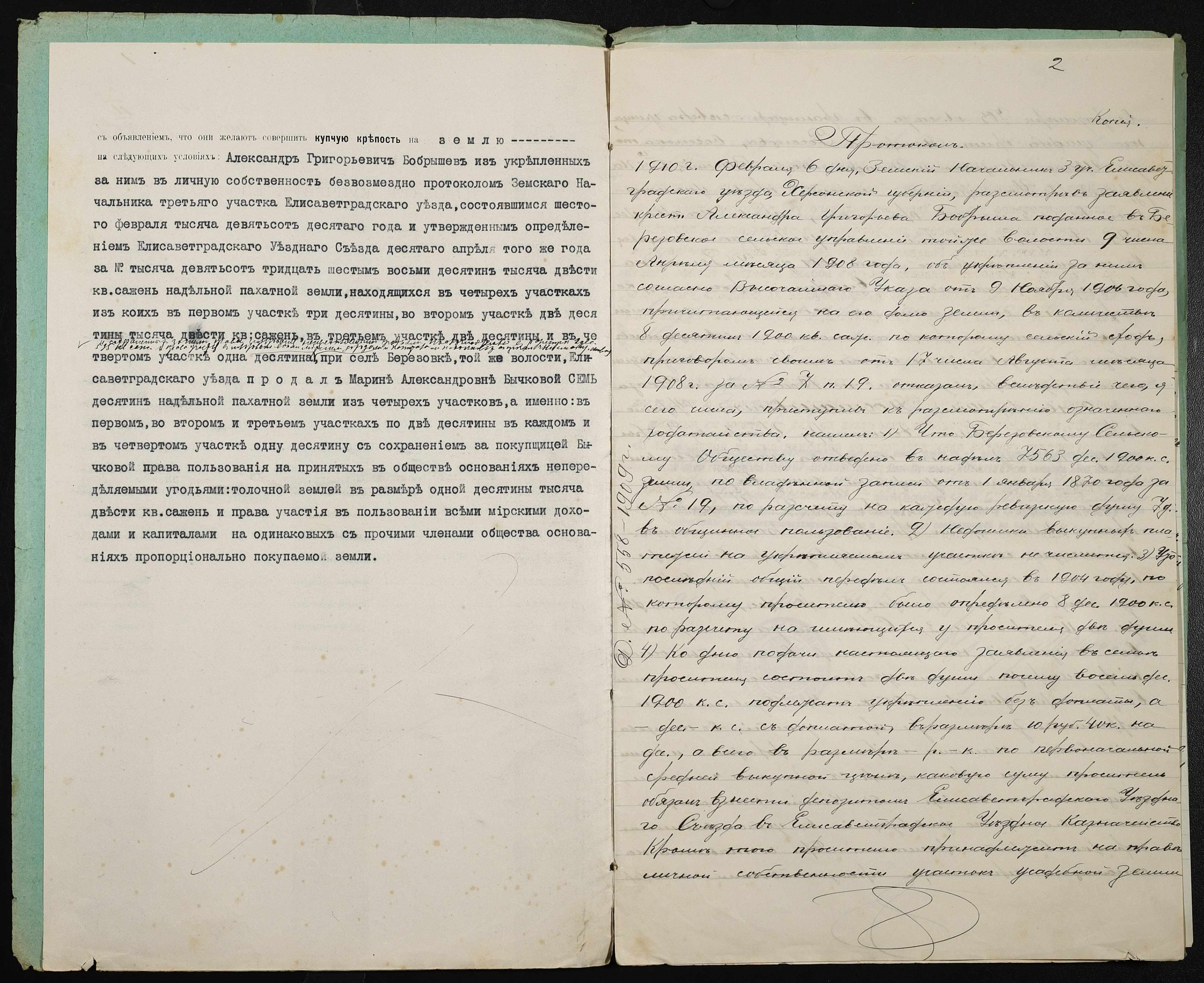 • • • • Справа № 387 “Справа про вчинення купчої про продаж землі селянином Бобришевим Олександром Григоровичем (Бобрышевым Александром Григорьевичем) на користь селянки Бичкової Марини Олександрівни (Бычковой Марины Александровны)”