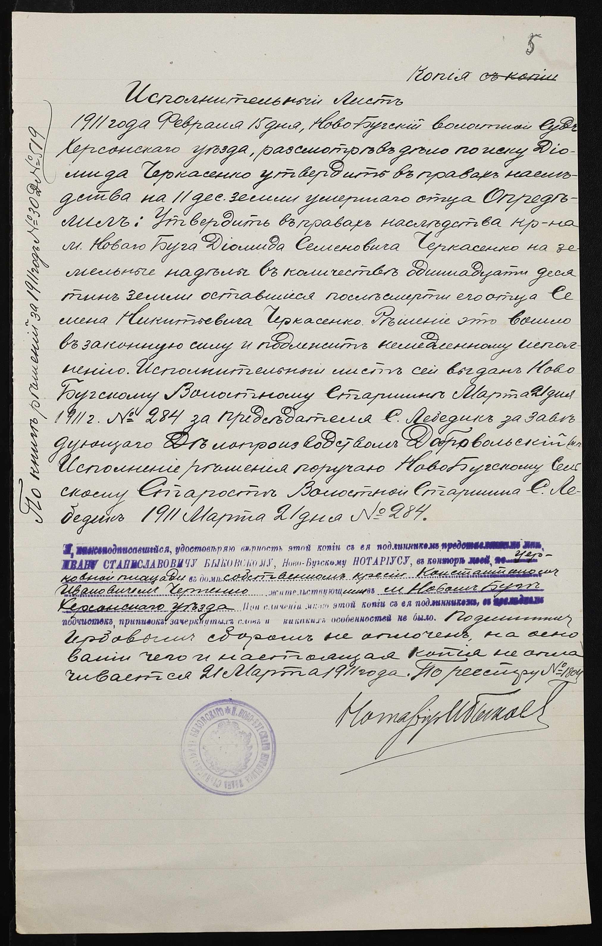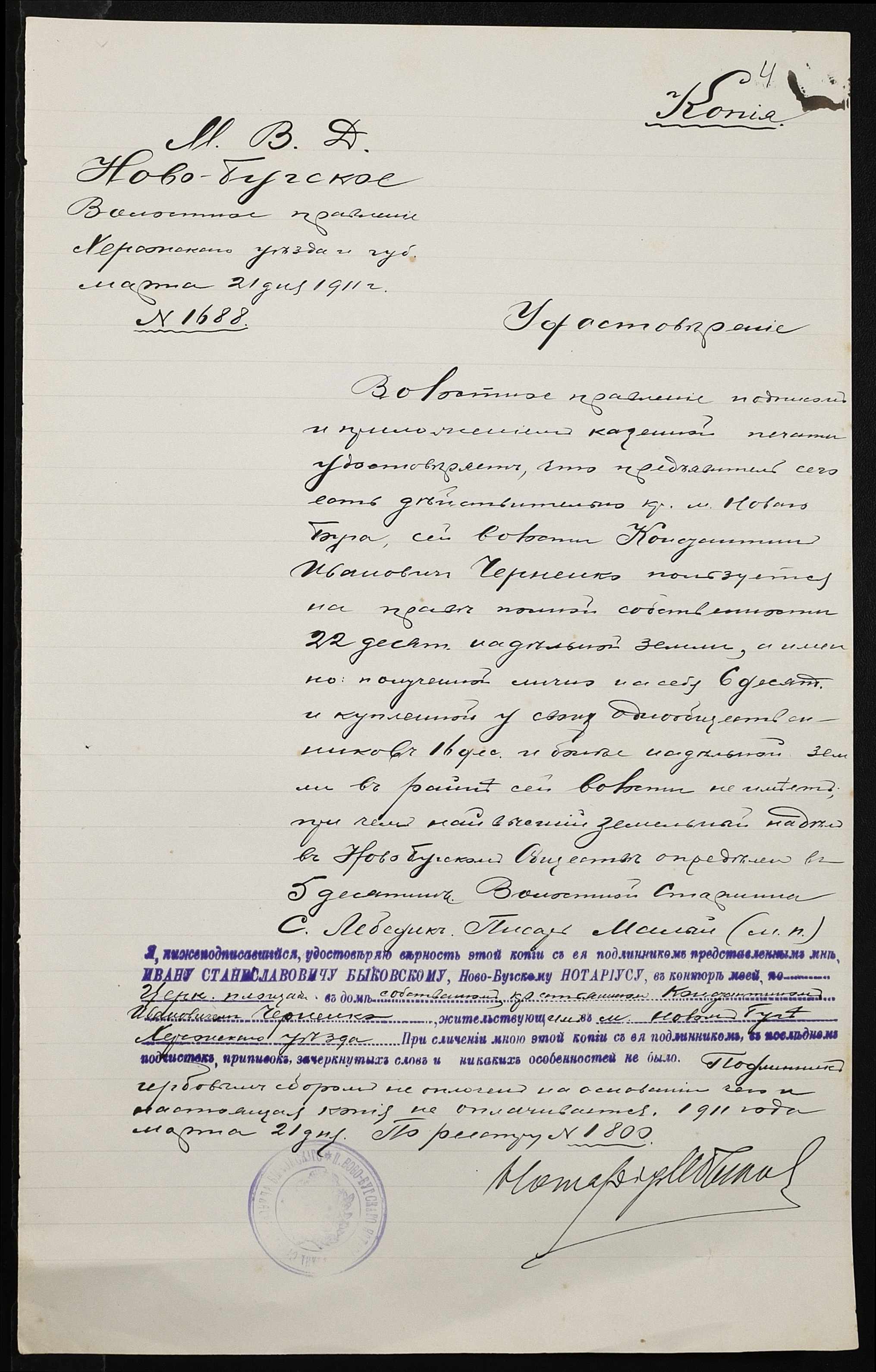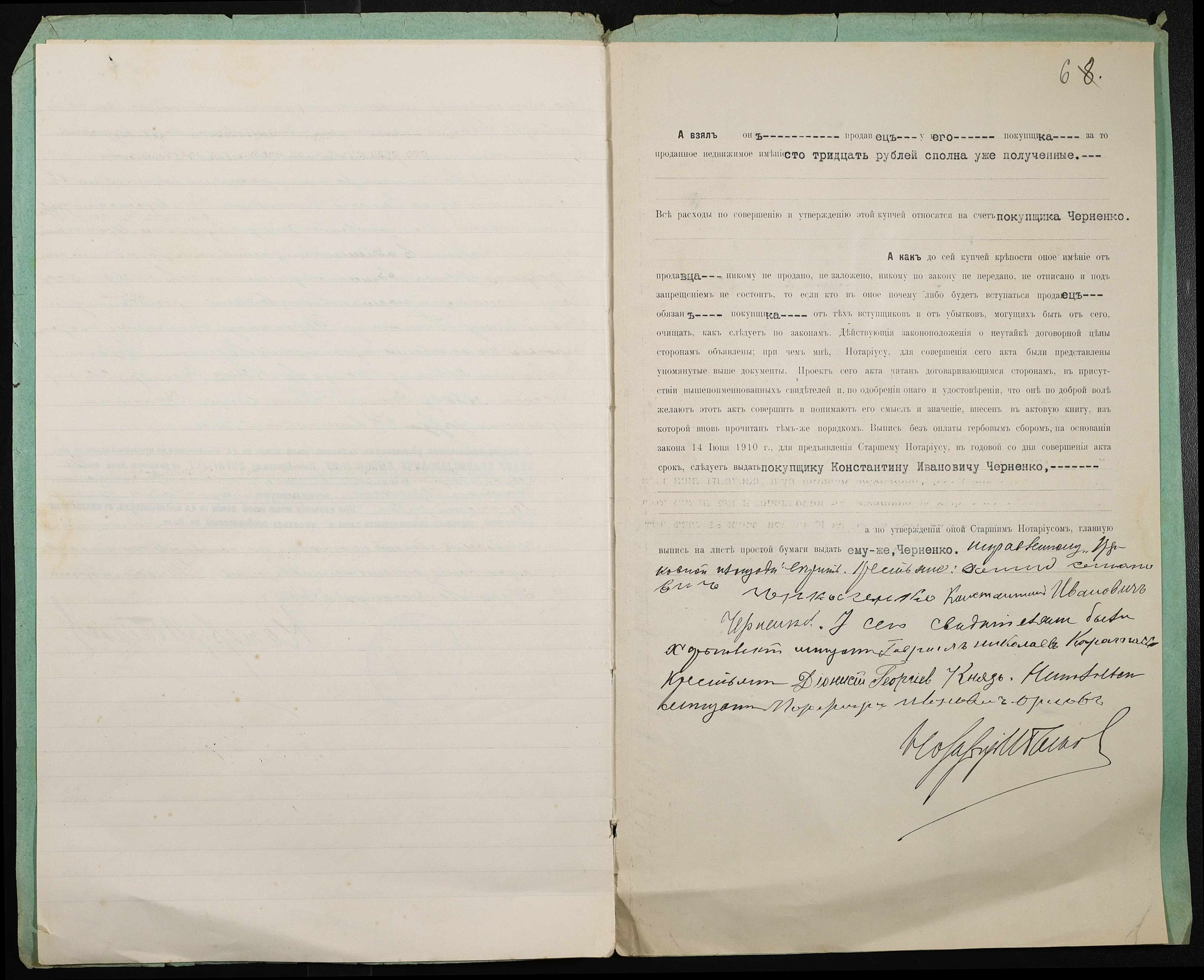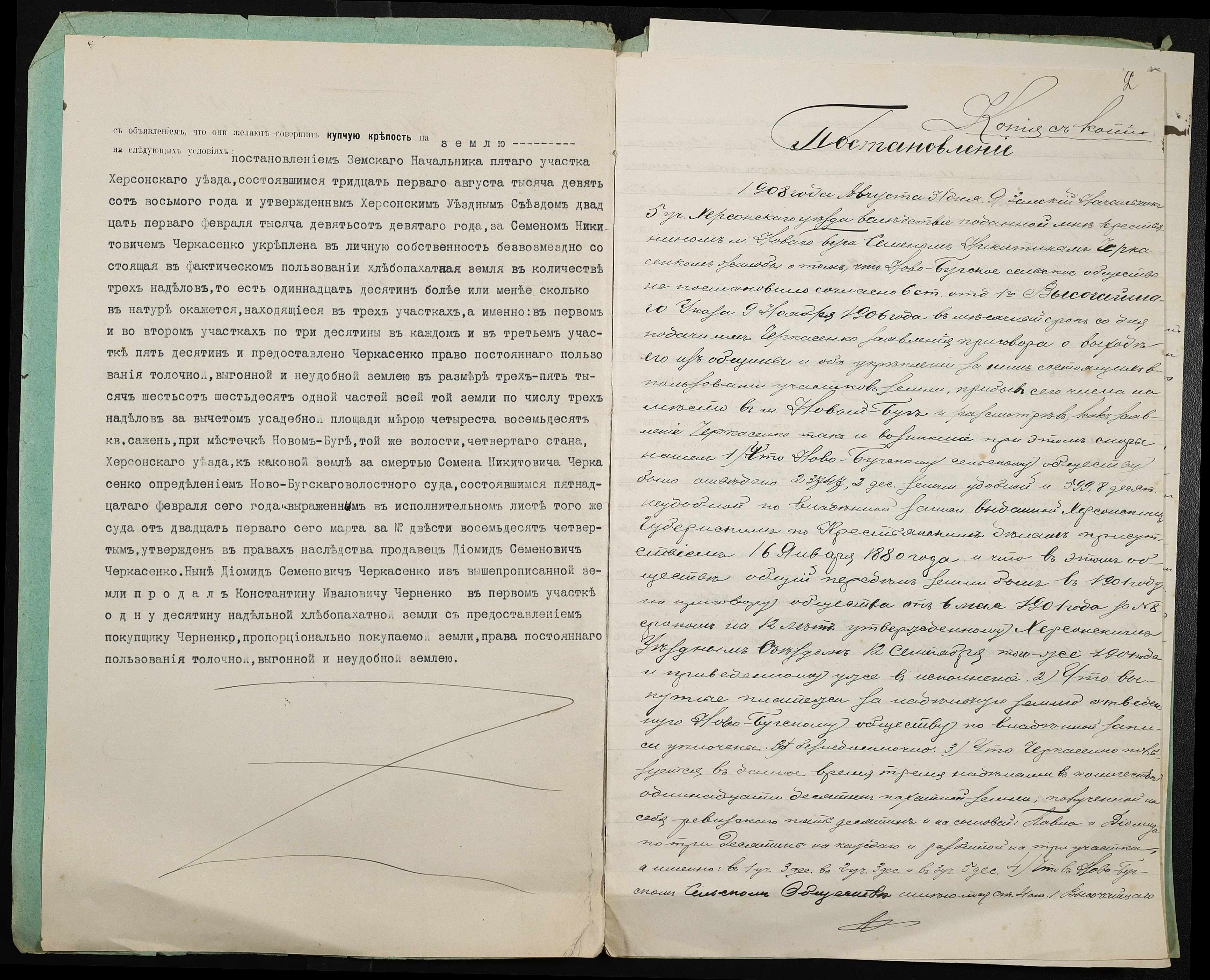 • • • • Справа № 389 “Справа про вчинення купчої про продаж землі селянином Черкасенком (Черкасенко) Демидом Семеновичем на користь селянина Черненка Костянтина Івановича (Черненко Константина Ивановича)”