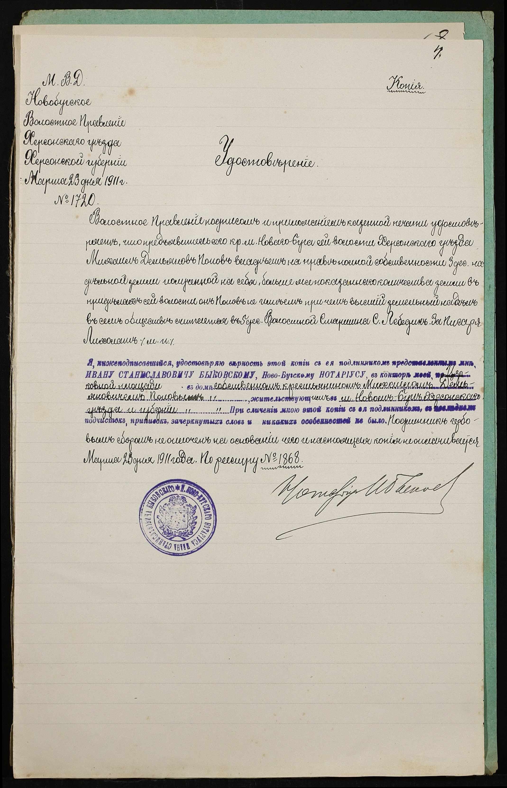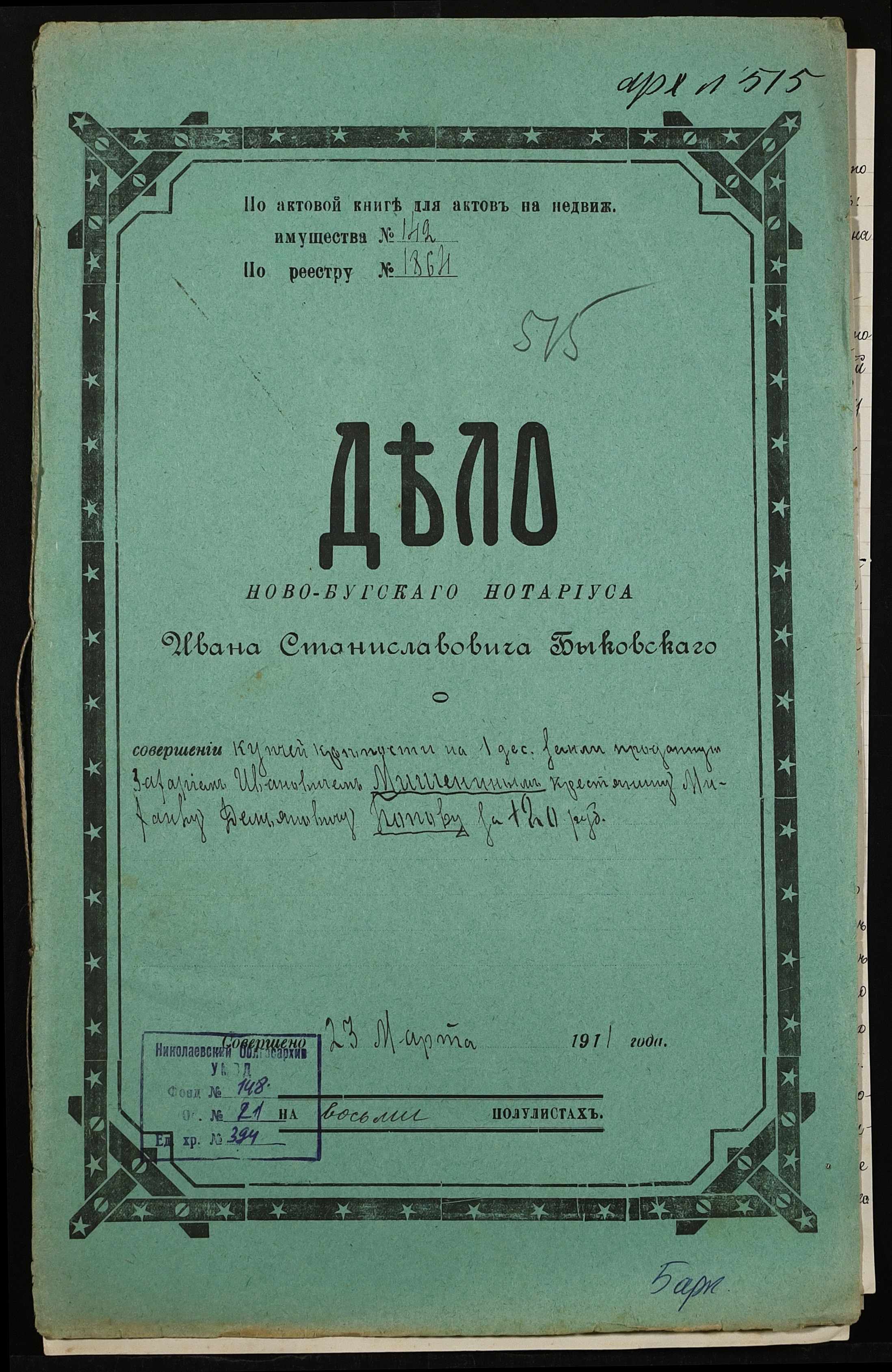 ◦ ◦ Фонд № 148 “Контора новобузького нотаріуса Биковського Івана Станіславовича”
