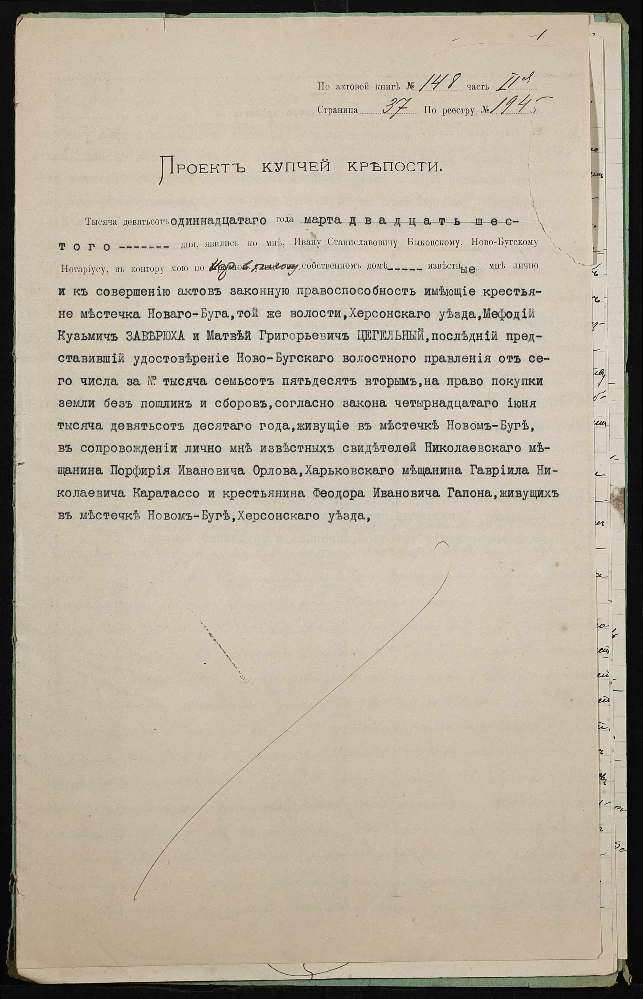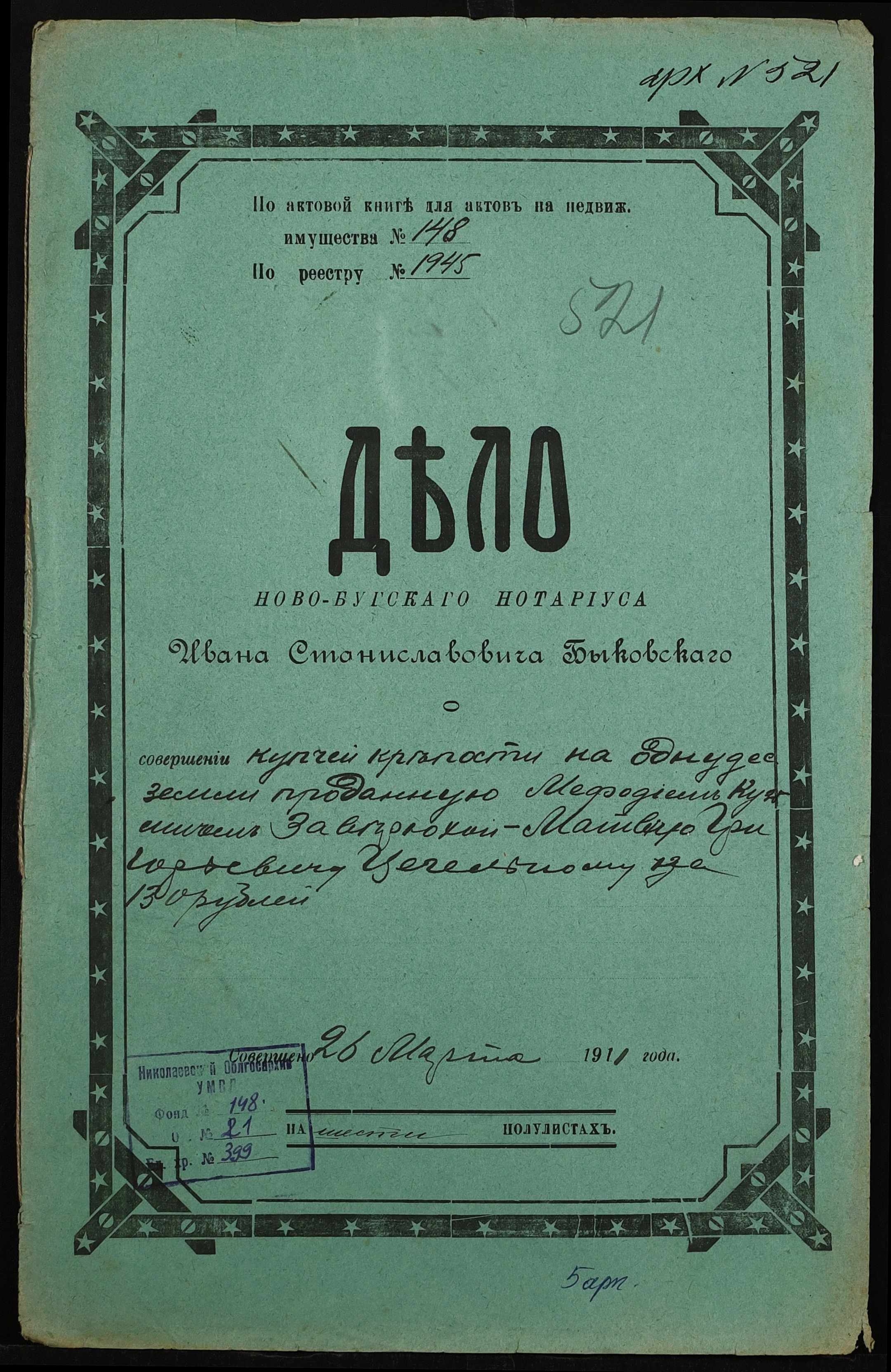 ◦ ◦ Фонд № 148 “Контора новобузького нотаріуса Биковського Івана Станіславовича”