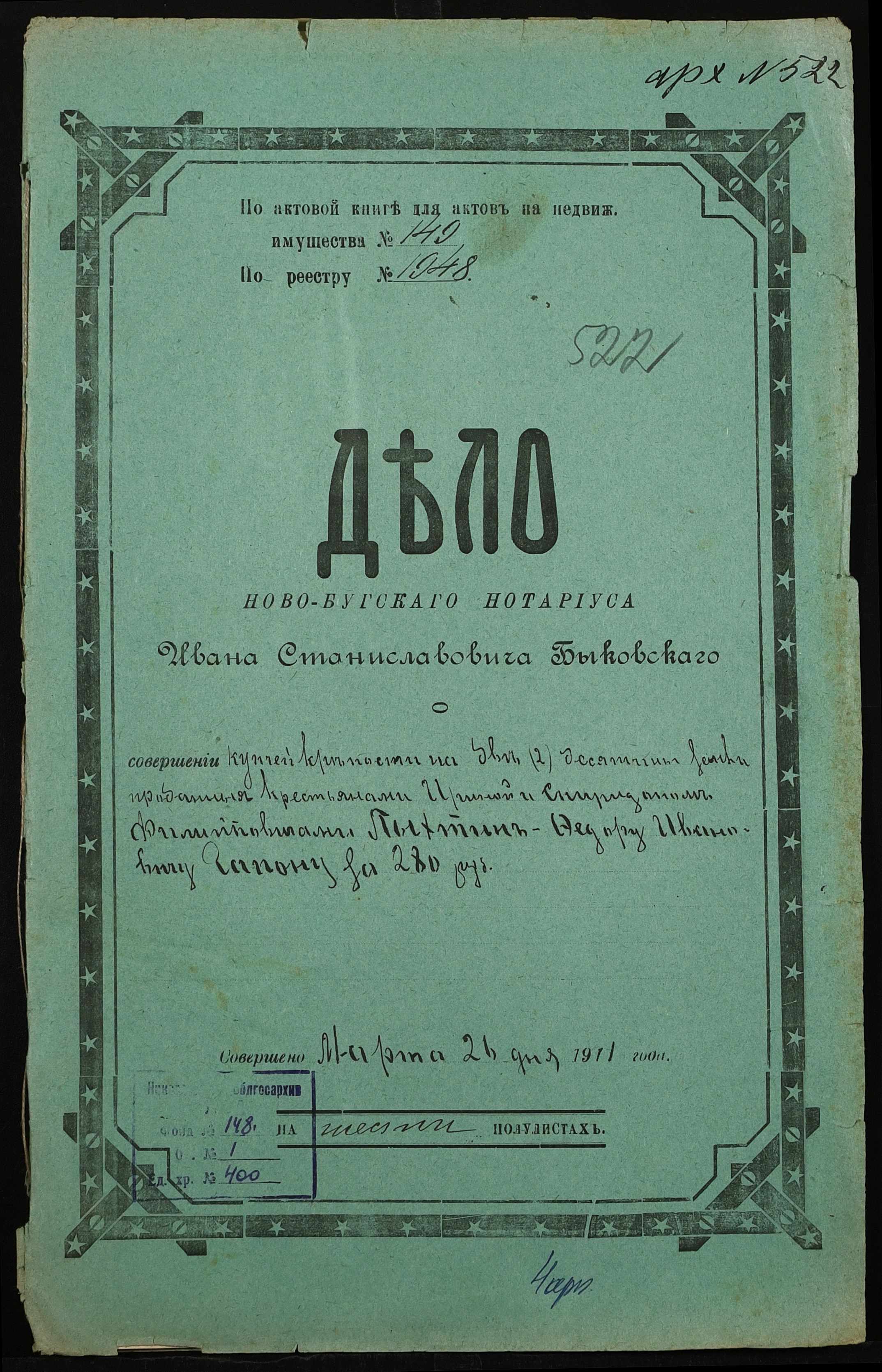 ◦ ◦ Фонд № 148 “Контора новобузького нотаріуса Биковського Івана Станіславовича”