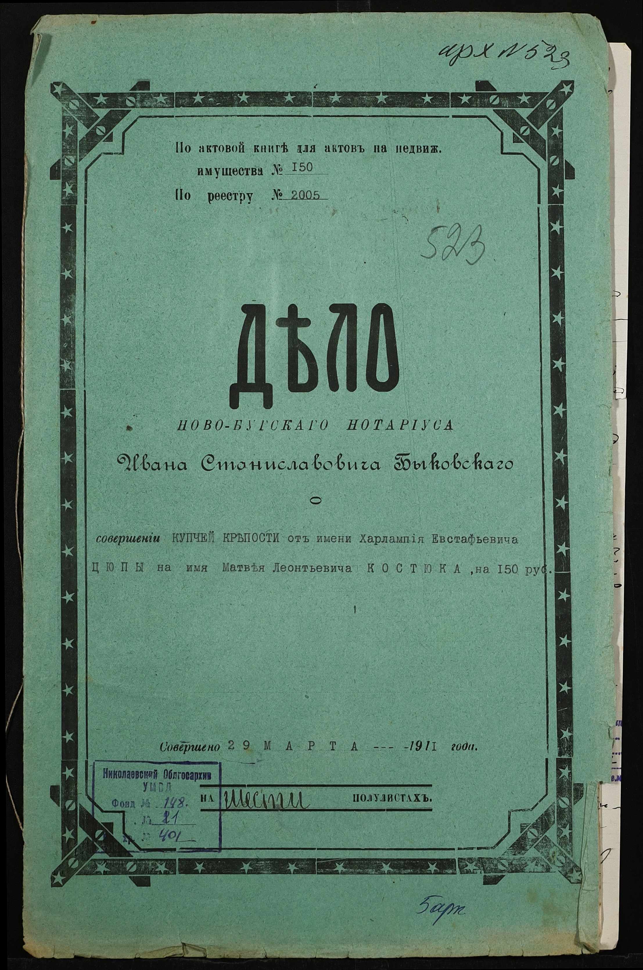 ◦ ◦ Фонд № 148 “Контора новобузького нотаріуса Биковського Івана Станіславовича”